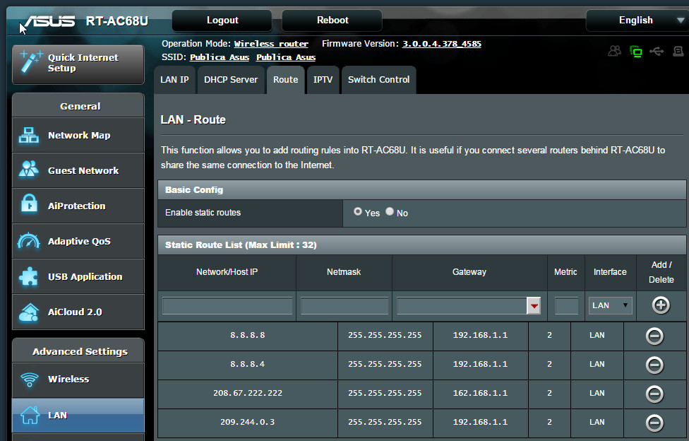 Here is the LAN Route Settings to make Chromecast to work with Netflix on ViewCast