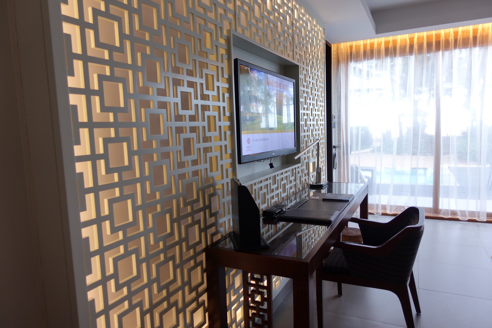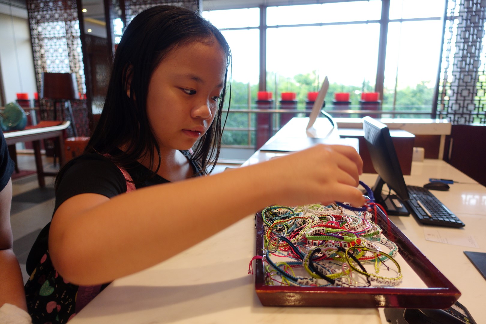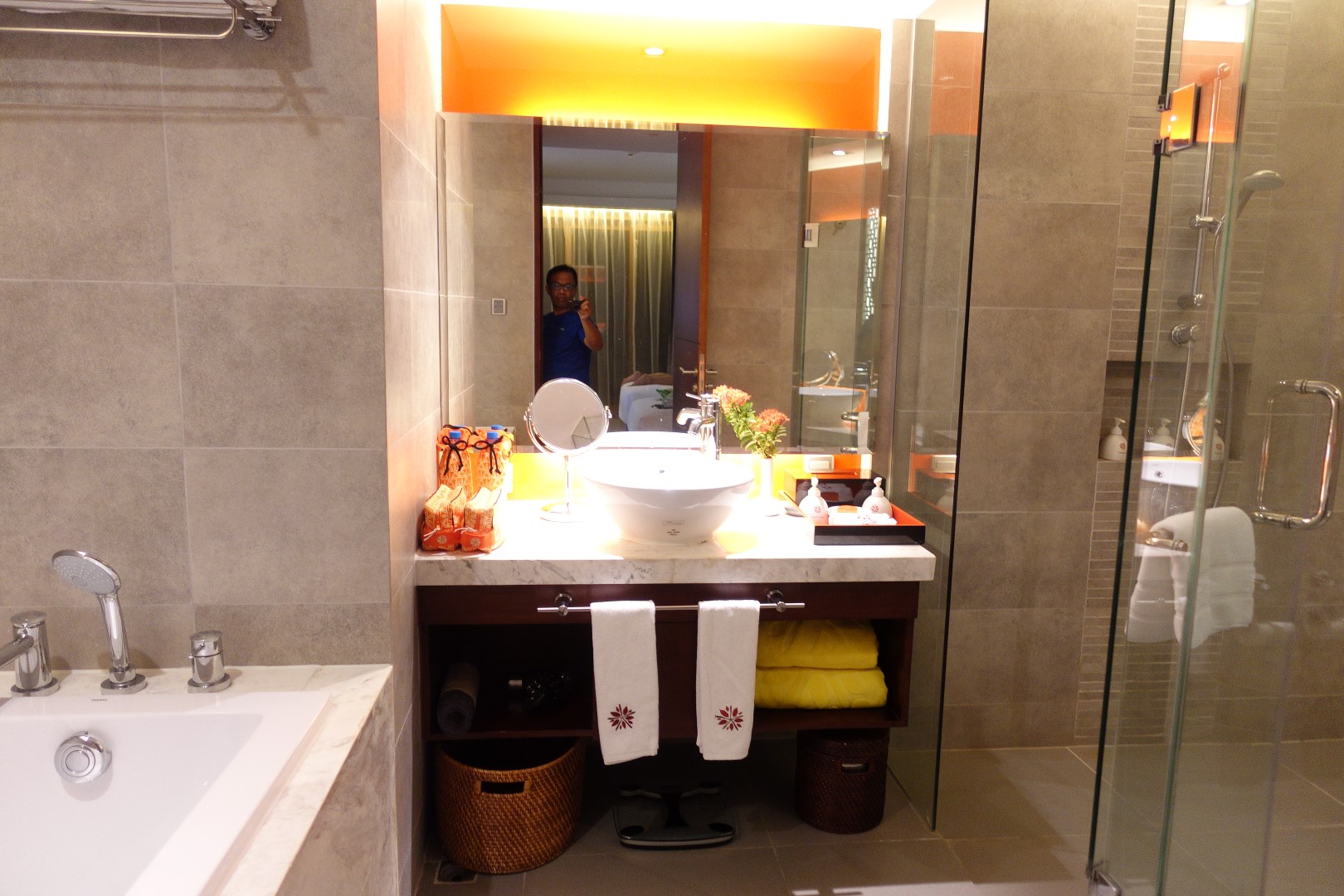The Angsana was next to another, more expensive resort called the Banyan Tree. The cheaper, more economical option that we were staying at was not an individual bungalow, but we were able to get a ground floor room, which allowed us direct access to the beach. We entered the lobby, where we were greeted with the free gifts of Macaroons and wrist bands. This was a nice surprise as we did not expect anything of the sort. We also had a quick tour of the hotel by the friendly staff and we laughed as we saw just how big the Angsana was. It reminded us very much of the Venetian and how far we had to walk to get to our car as well.