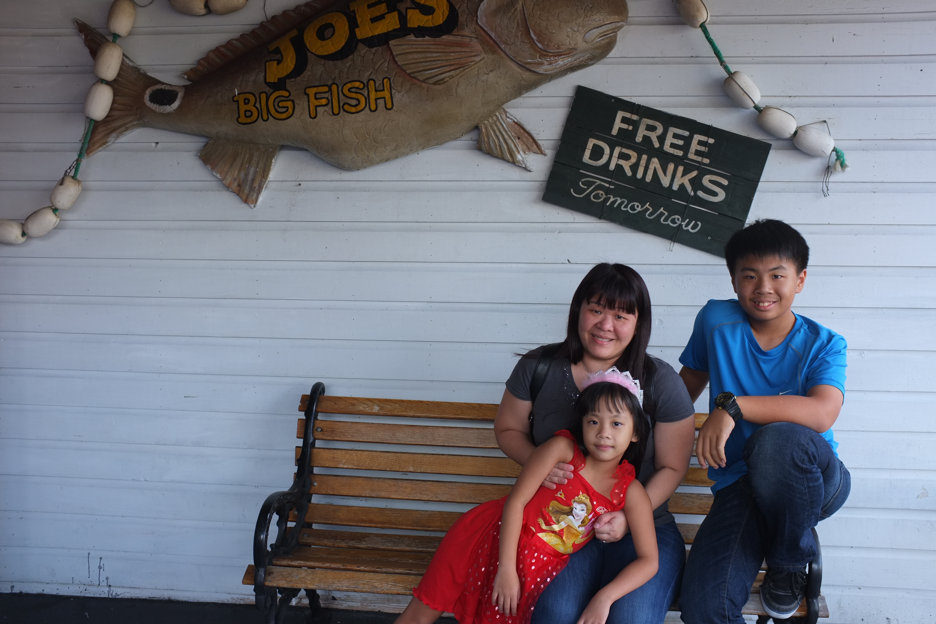 The restaurant was rather empty perhaps because it was already 2.30pm. Our server, Matt was very good at recommending dishes to try. We decided to get an appetiser sampler, a jumbo shrimp and a bucket of queen crab to share. Not to mention, Ashley had the Macaroni and Cheese. We enjoyed our lunch, especially throwing the crab shells into the metal bucket. The food was really good; the crab and prawn were fresh and sweet. After lunch, Ashley went to the playgound outside the restaurant.