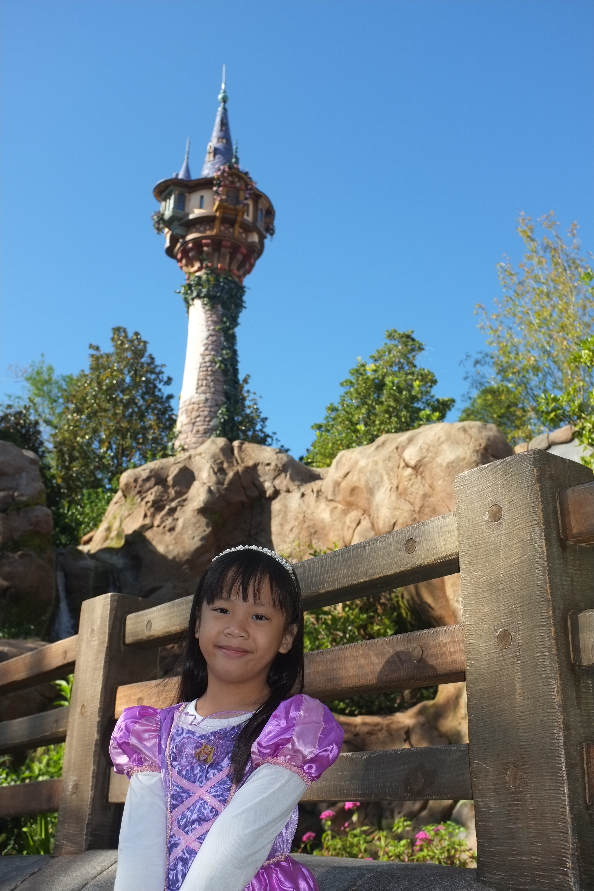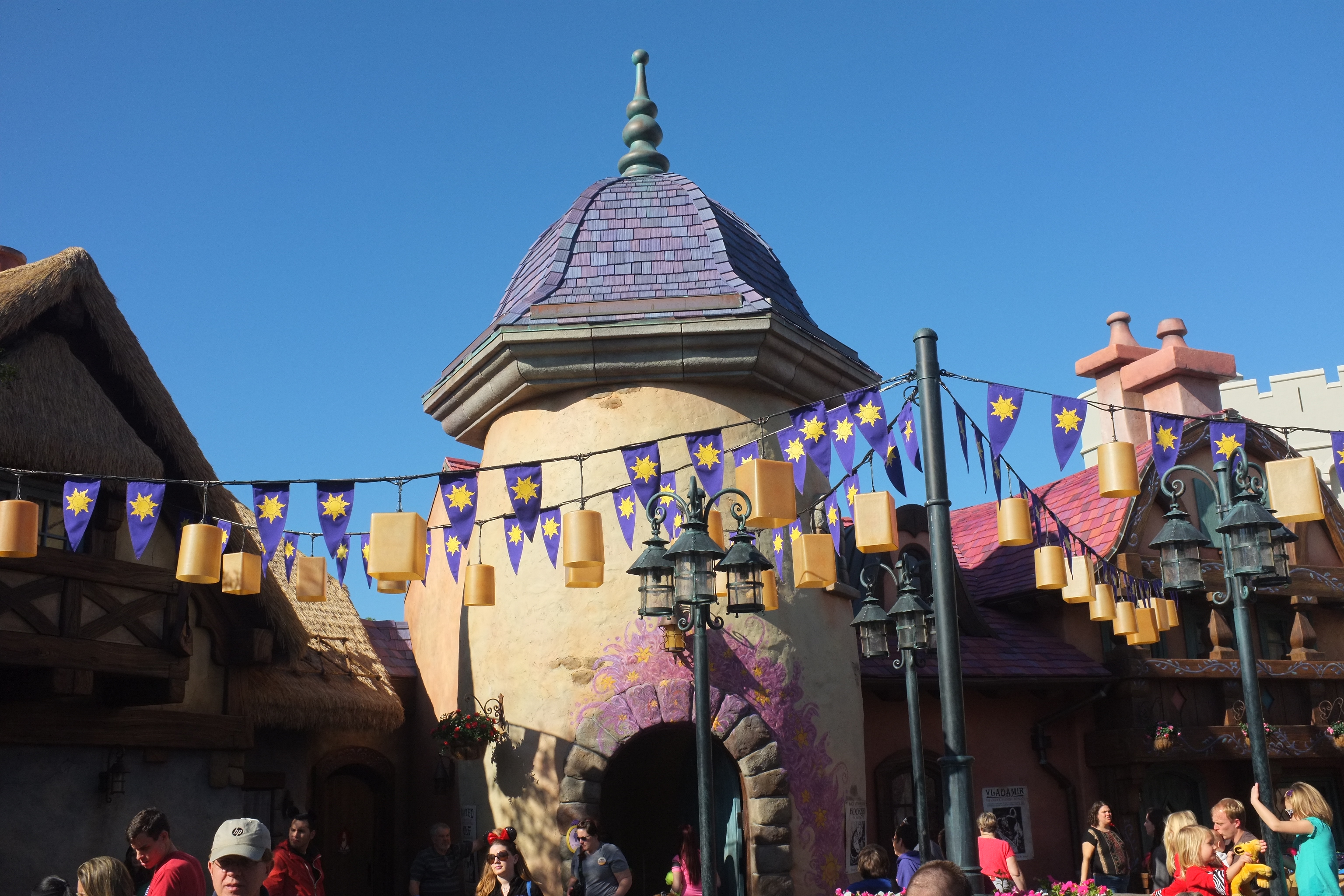 We entered Frontierland and grabbed FastPasses for Big Thunder Mountain Railroad and walked towards Fantasyland and Ashley posed for some photos at Rapunzel’s village and spotted various Pascal hidden amid the greenery.
