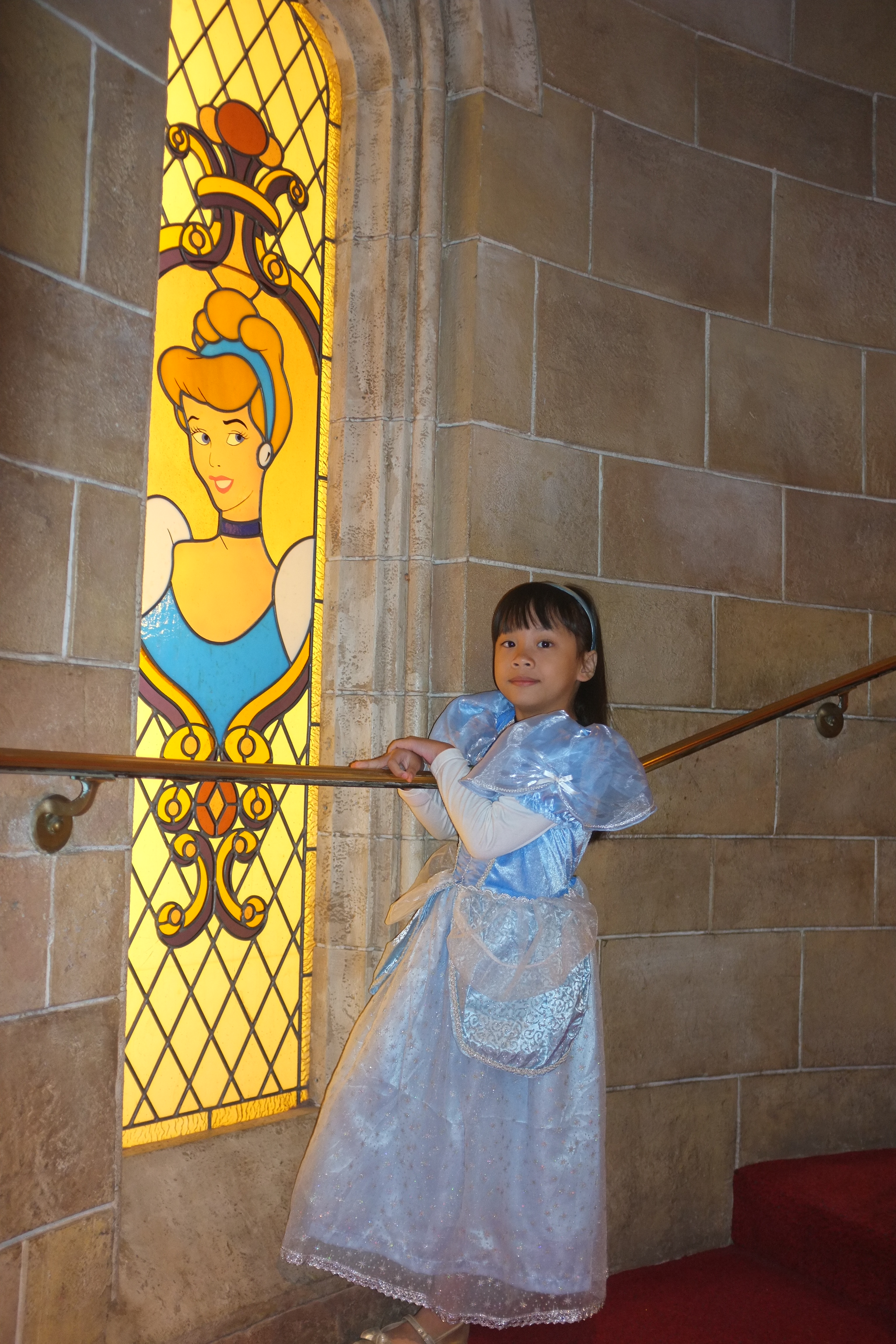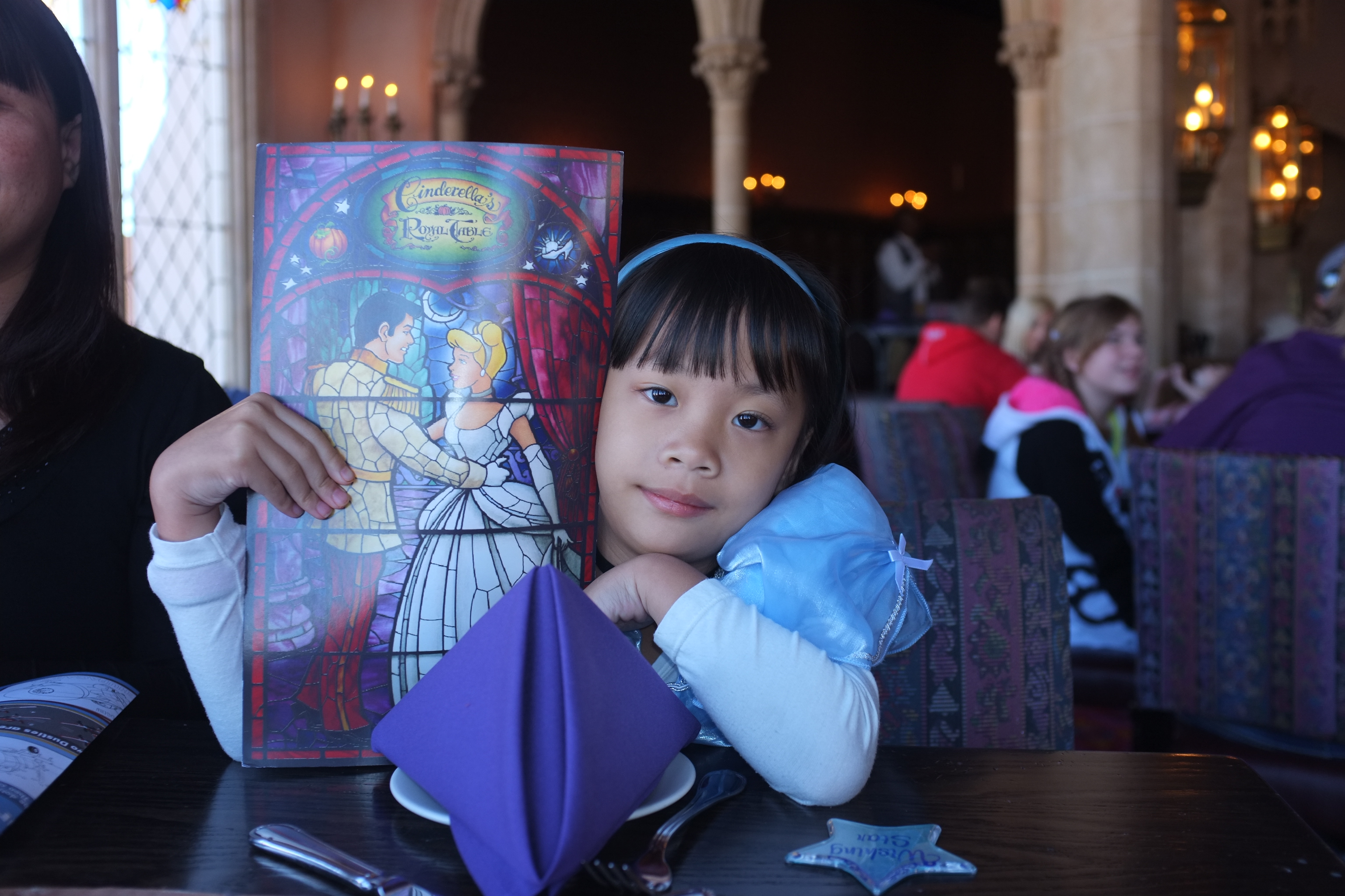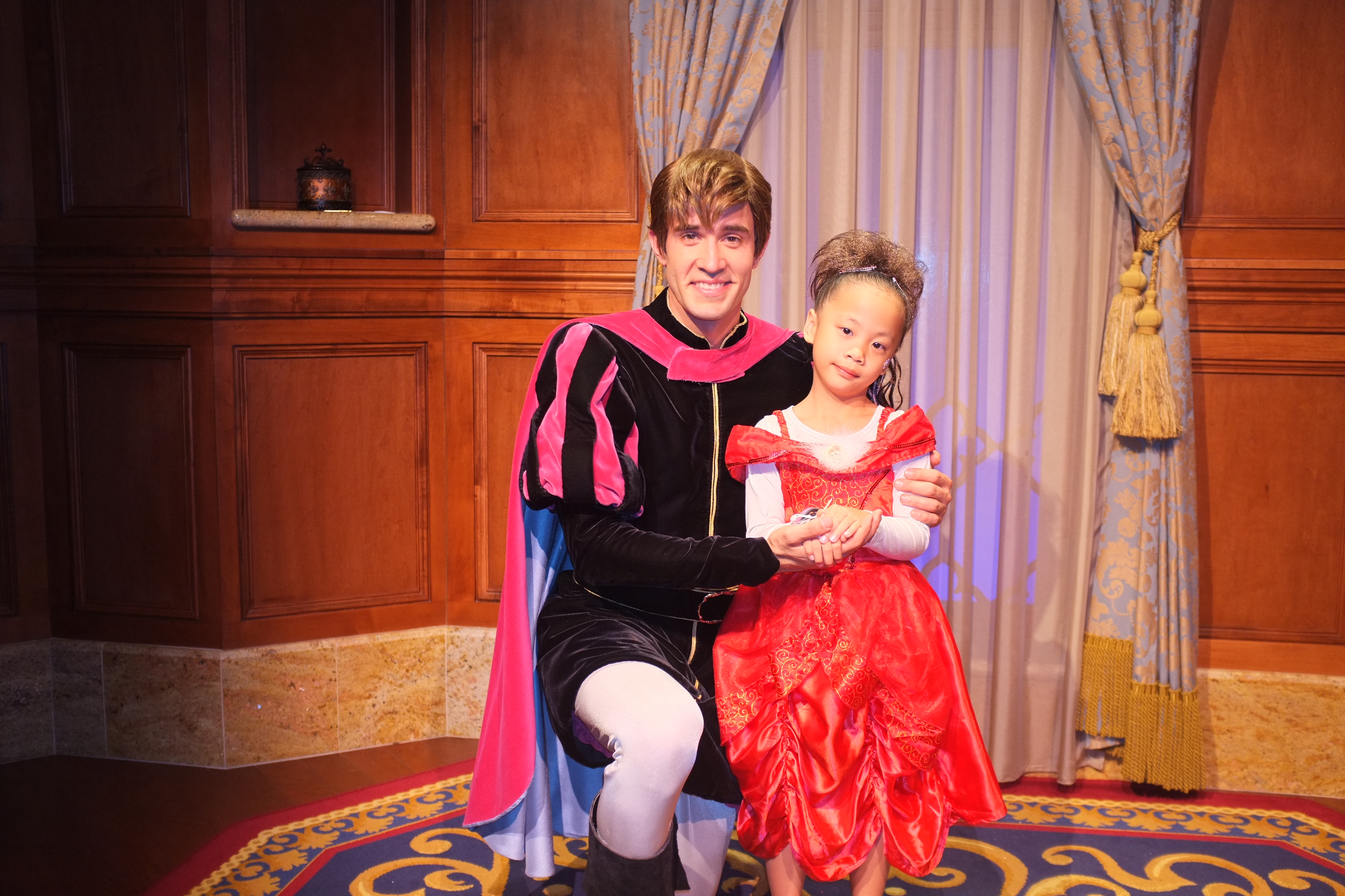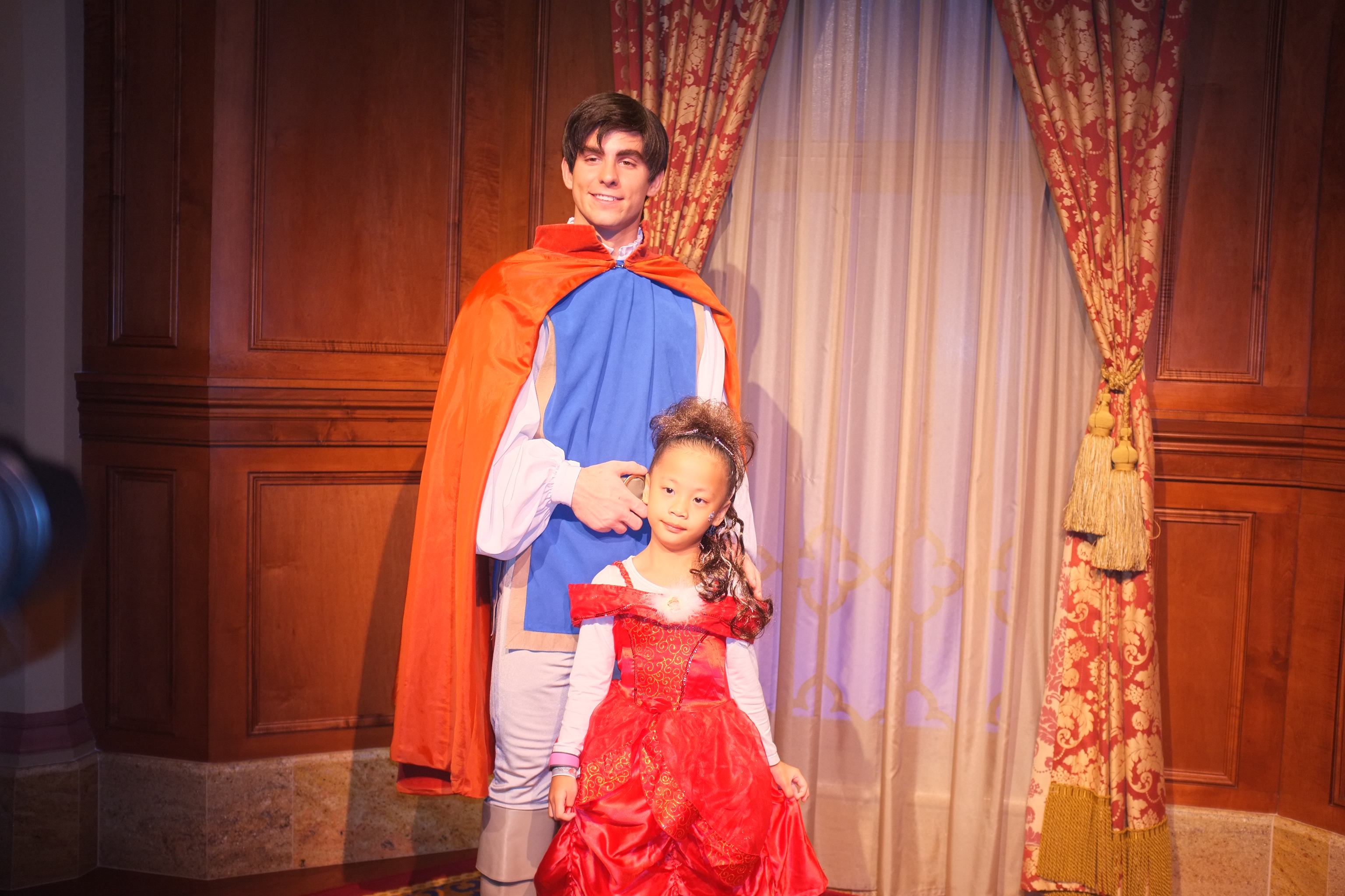We left the shop and headed towards Cinderella’s castle, We had a reservation at Cinderella’s Royal Table. Eating inside Cinderella’s Castle is a quintessential experience as it gives you the best taste of the royal residence itself. The interior of Cinderella Castle is every bit as grand as the outside. We were first ushered into The Grand Hall where we had the opportunity for a meet and greet with Cinderella. After which, we took the red carpeted spiral staircase to the Royal Banquet Hall. As we finally walk into the Banquet Hall, the scene that unfolds is really incredible. Even Jarod couldn’t help and marveled at the exquisite details. We were lucky enough to get one of the window seats and could see Beast’s castle from our view. The server brought wishing stars and magic wands for Ashley and me and a sword for Jarod.