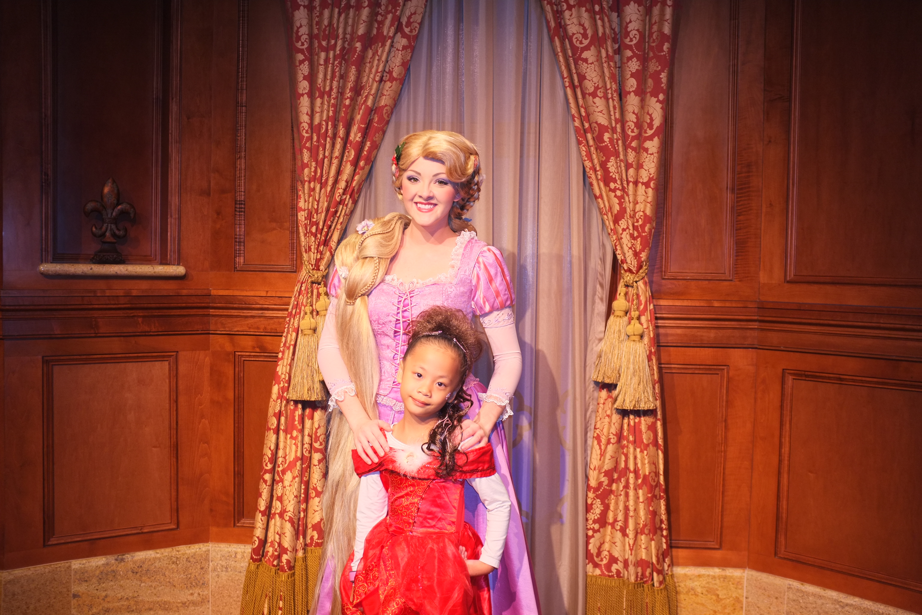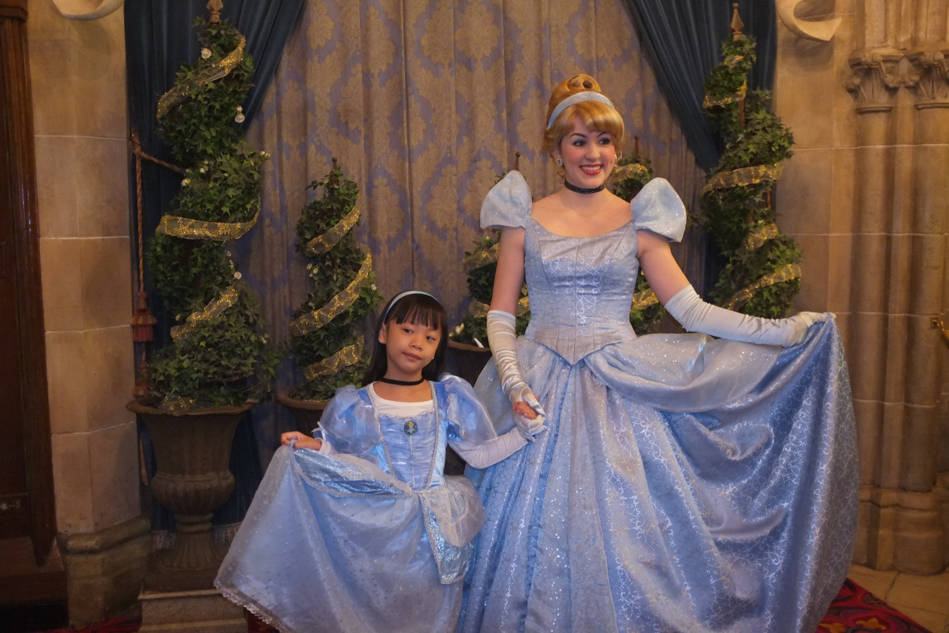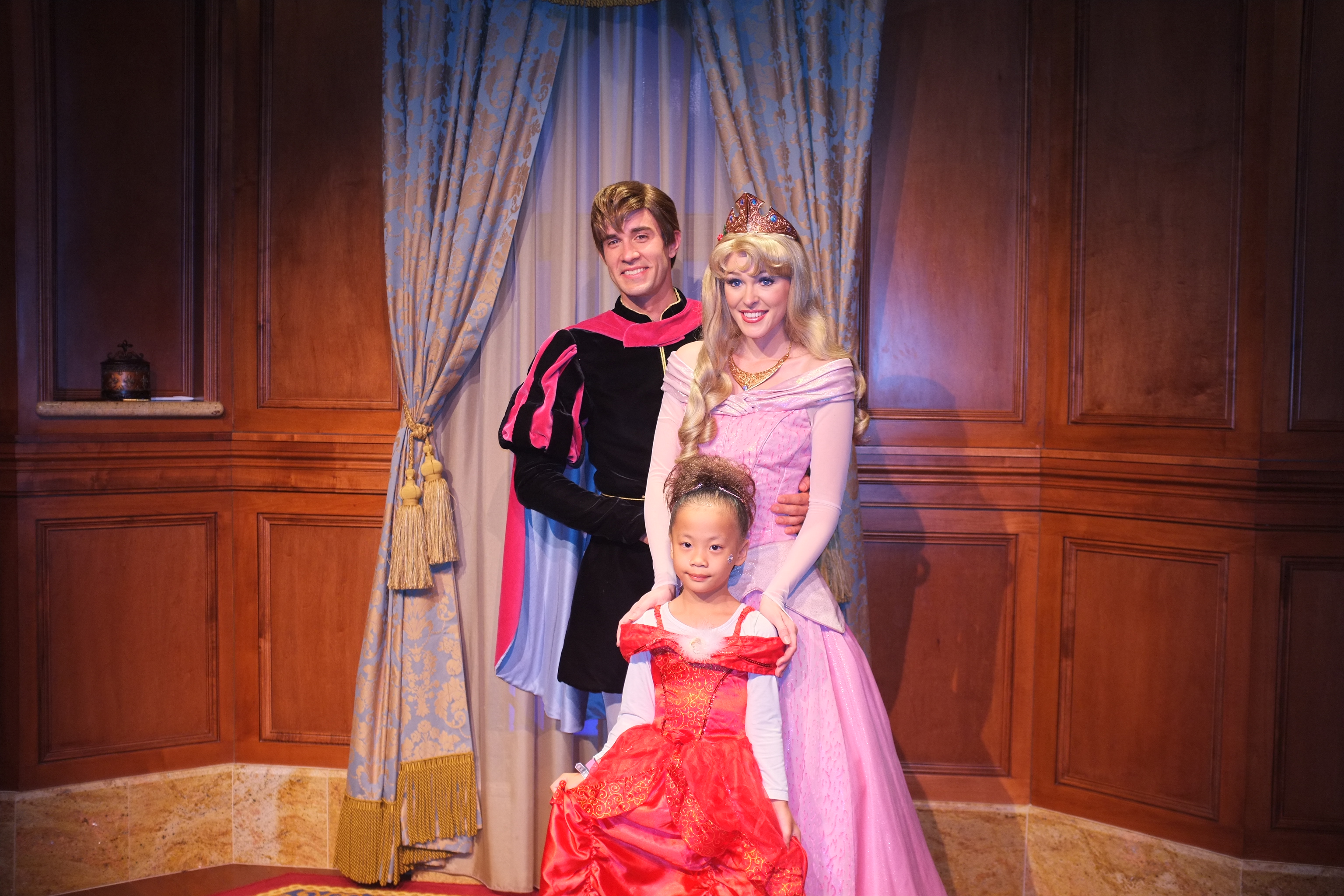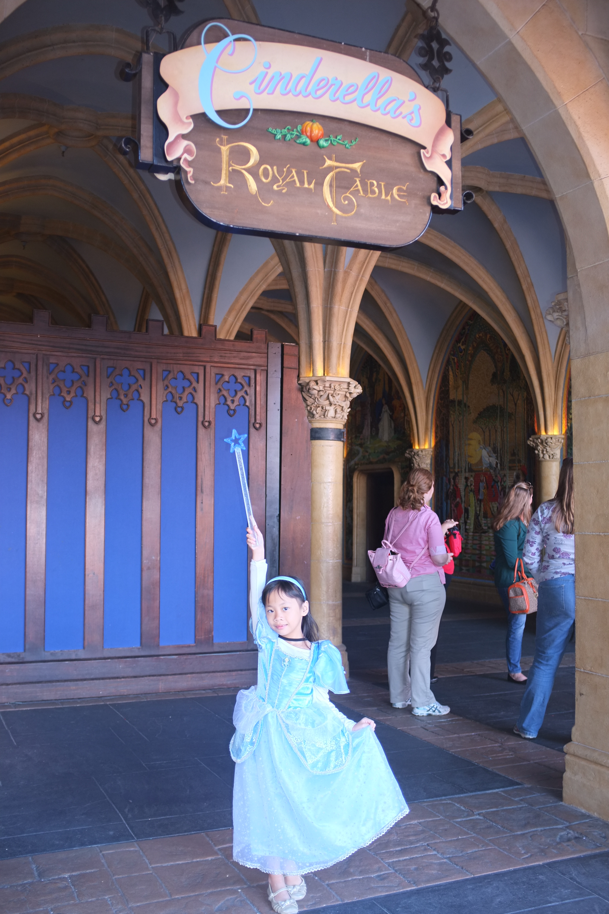 We left the shop and headed towards Cinderella’s castle, We had a reservation at Cinderella’s Royal Table. Eating inside Cinderella’s Castle is a quintessential experience as it gives you the best taste of the royal residence itself. The interior of Cinderella Castle is every bit as grand as the outside. We were first ushered into The Grand Hall where we had the opportunity for a meet and greet with Cinderella. After which, we took the red carpeted spiral staircase to the Royal Banquet Hall. As we finally walk into the Banquet Hall, the scene that unfolds is really incredible. Even Jarod couldn’t help and marveled at the exquisite details. We were lucky enough to get one of the window seats and could see Beast’s castle from our view. The server brought wishing stars and magic wands for Ashley and me and a sword for Jarod.