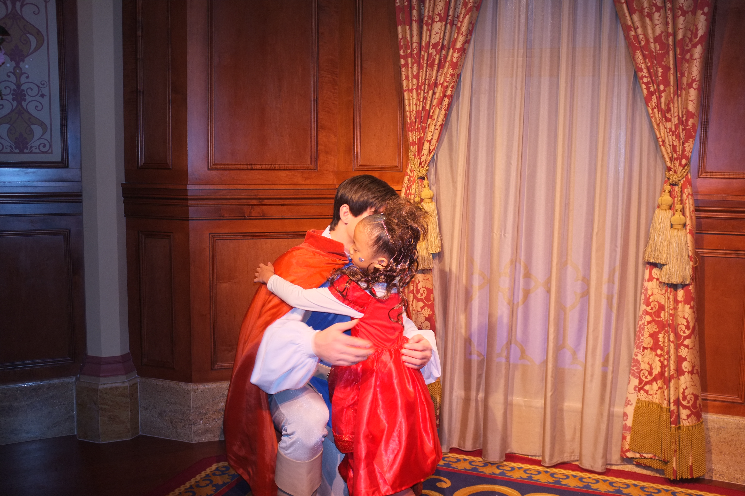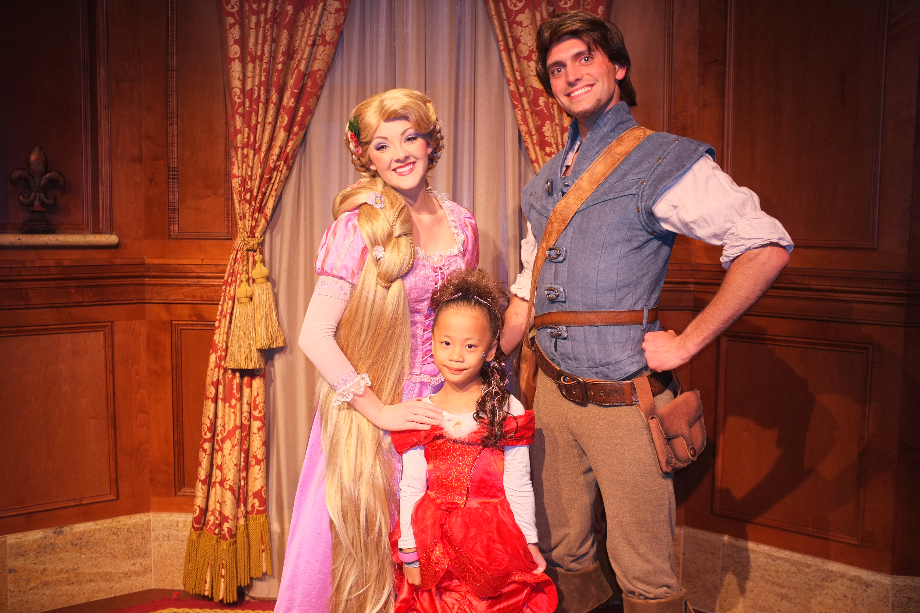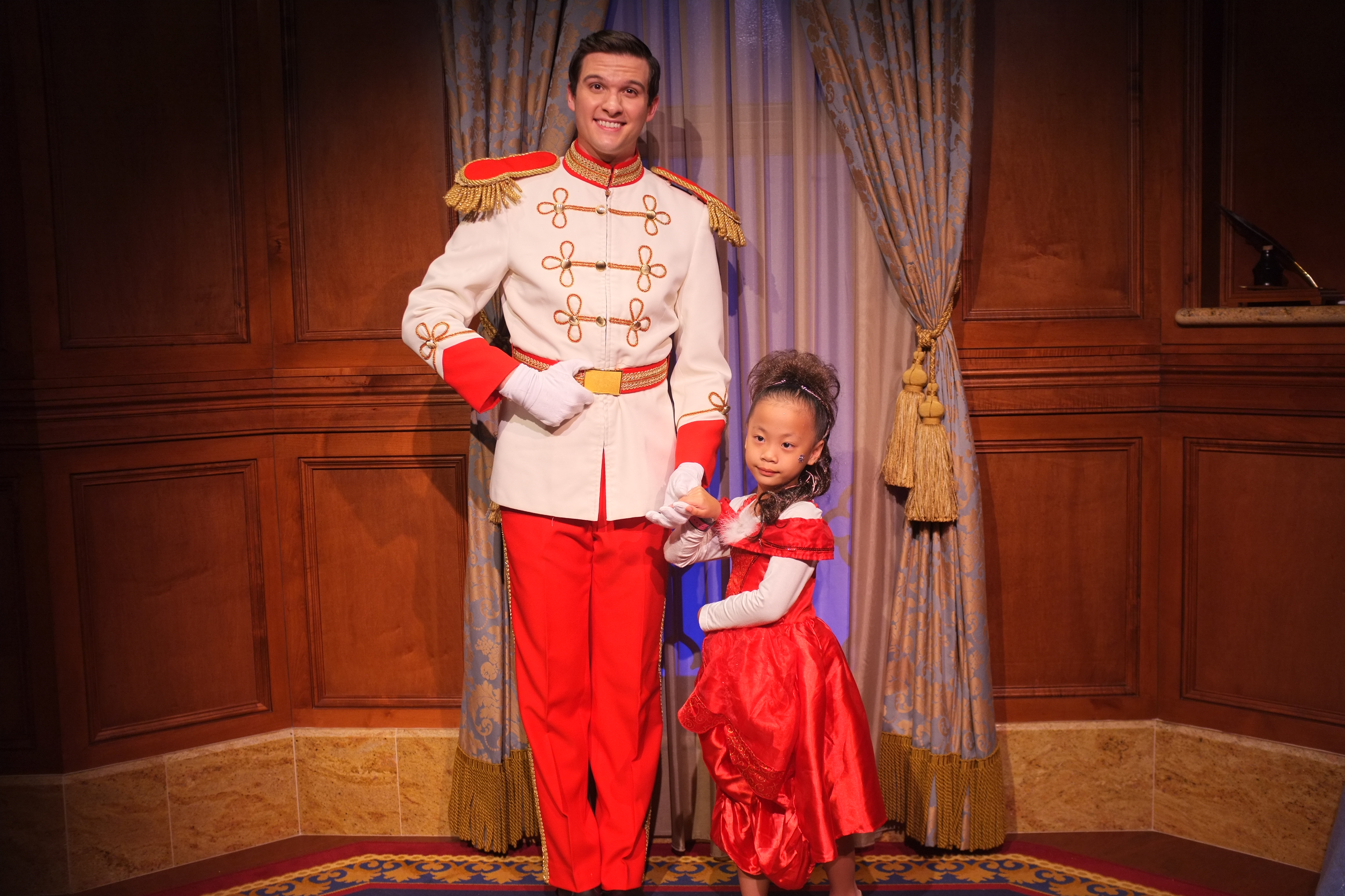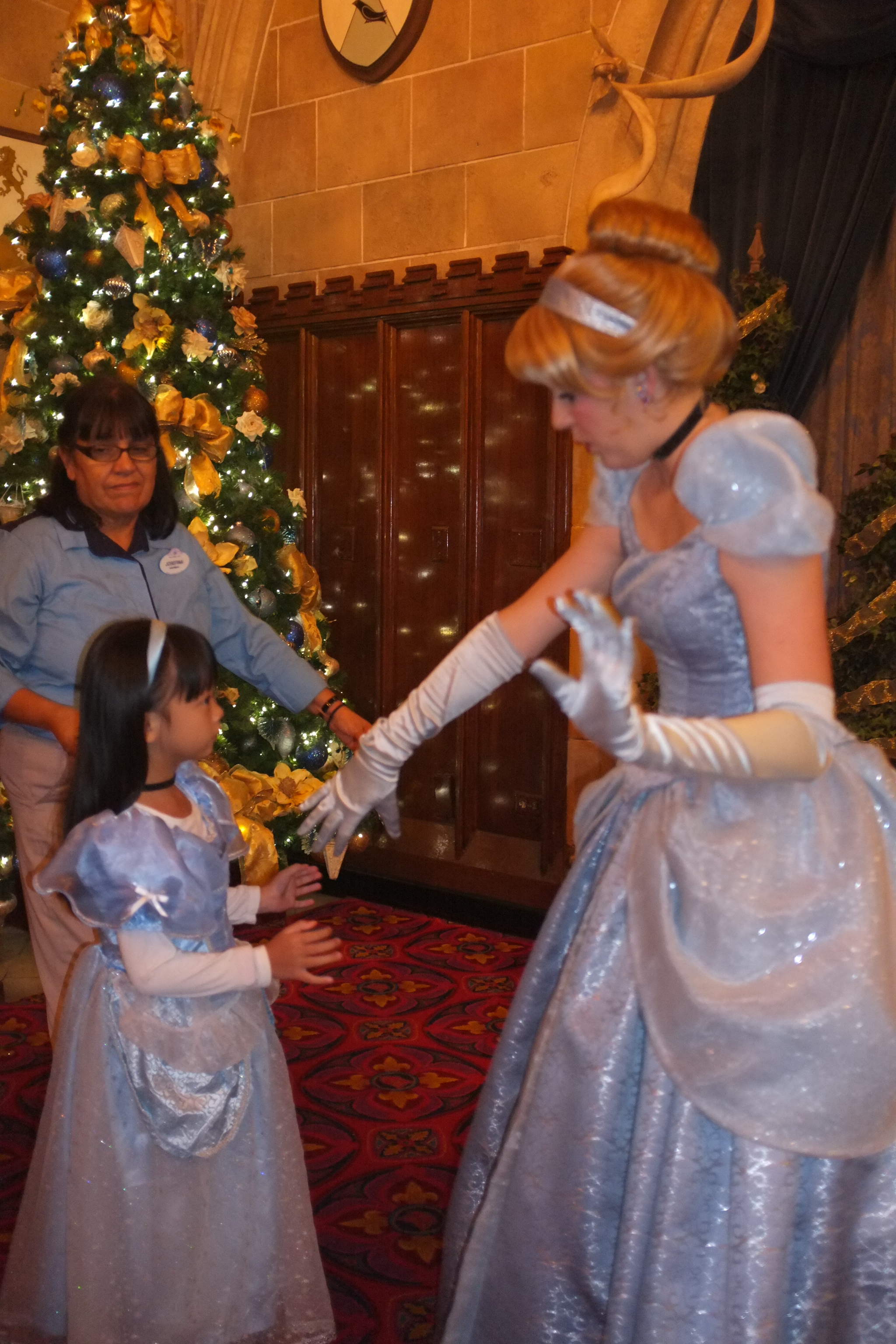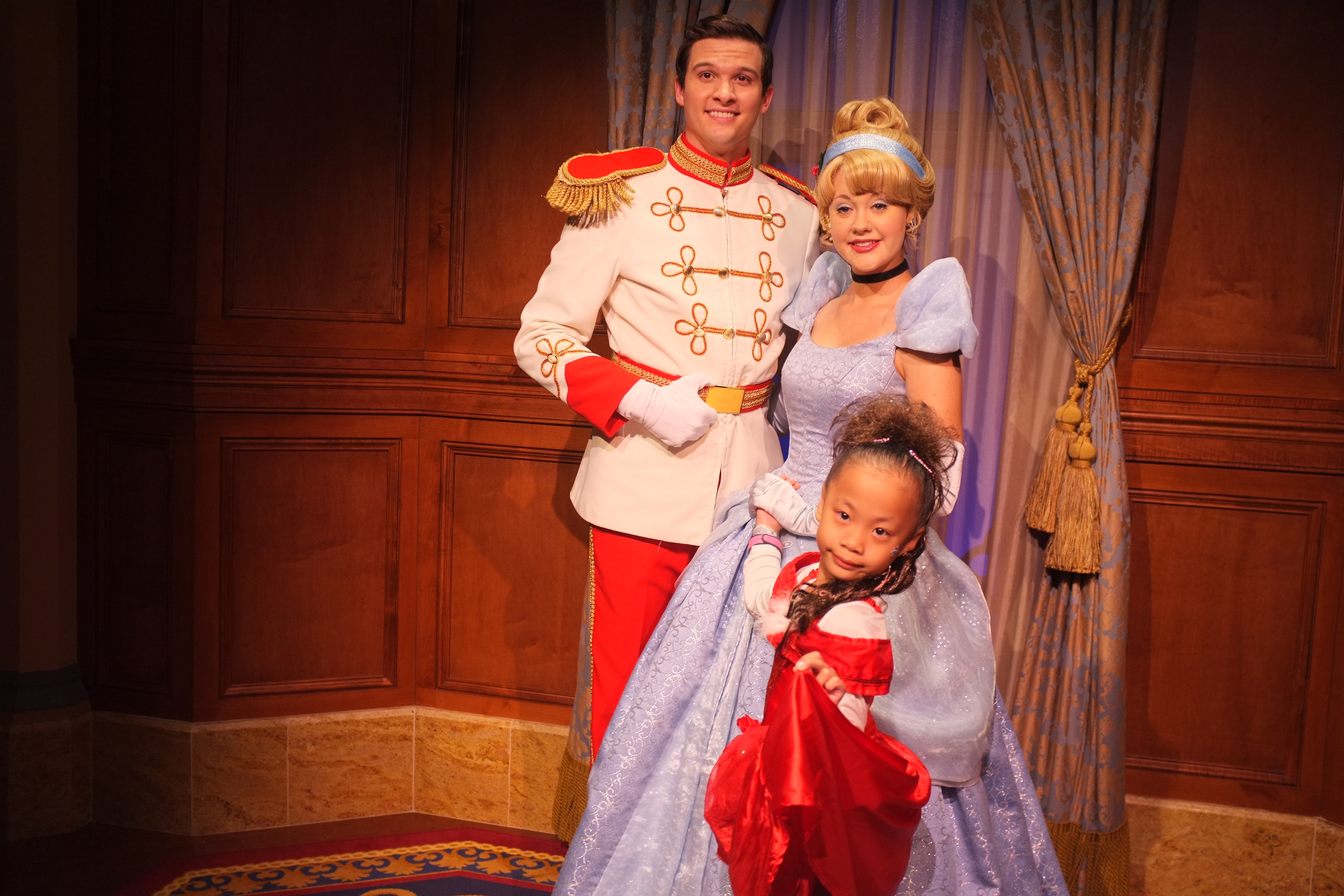 We left the shop and headed towards Cinderella’s castle, We had a reservation at Cinderella’s Royal Table. Eating inside Cinderella’s Castle is a quintessential experience as it gives you the best taste of the royal residence itself. The interior of Cinderella Castle is every bit as grand as the outside. We were first ushered into The Grand Hall where we had the opportunity for a meet and greet with Cinderella. After which, we took the red carpeted spiral staircase to the Royal Banquet Hall. As we finally walk into the Banquet Hall, the scene that unfolds is really incredible. Even Jarod couldn’t help and marveled at the exquisite details. We were lucky enough to get one of the window seats and could see Beast’s castle from our view. The server brought wishing stars and magic wands for Ashley and me and a sword for Jarod.