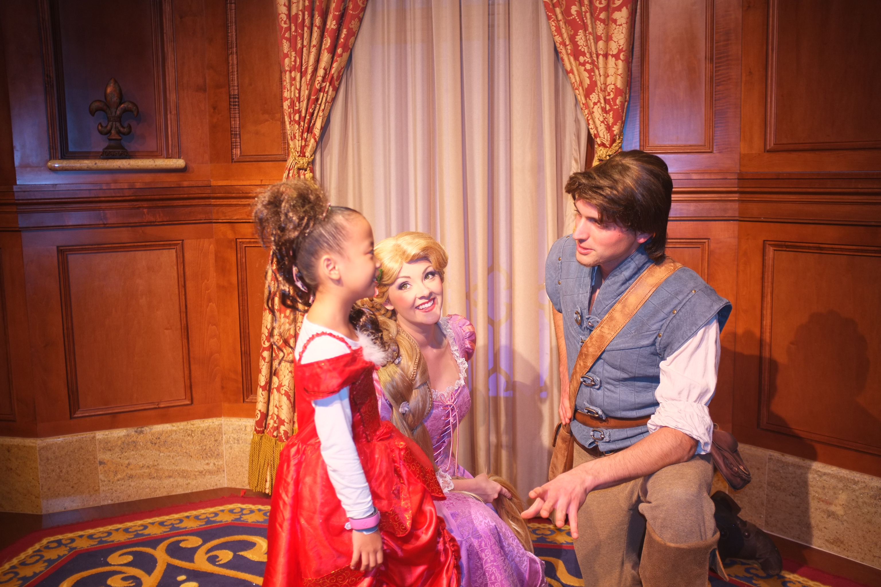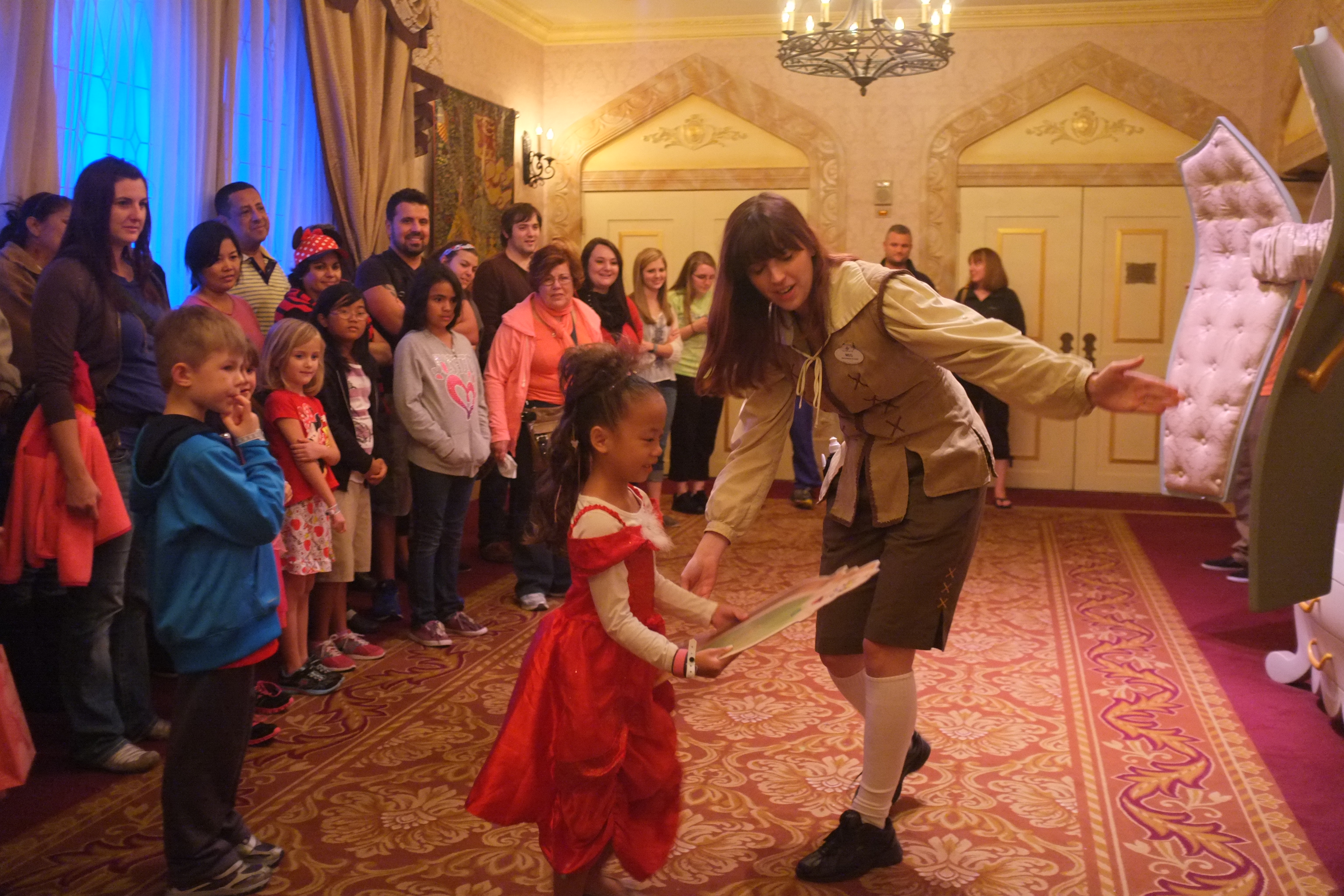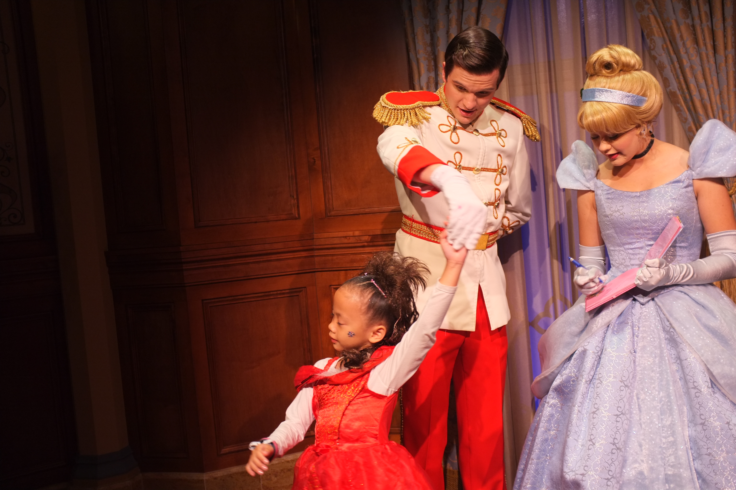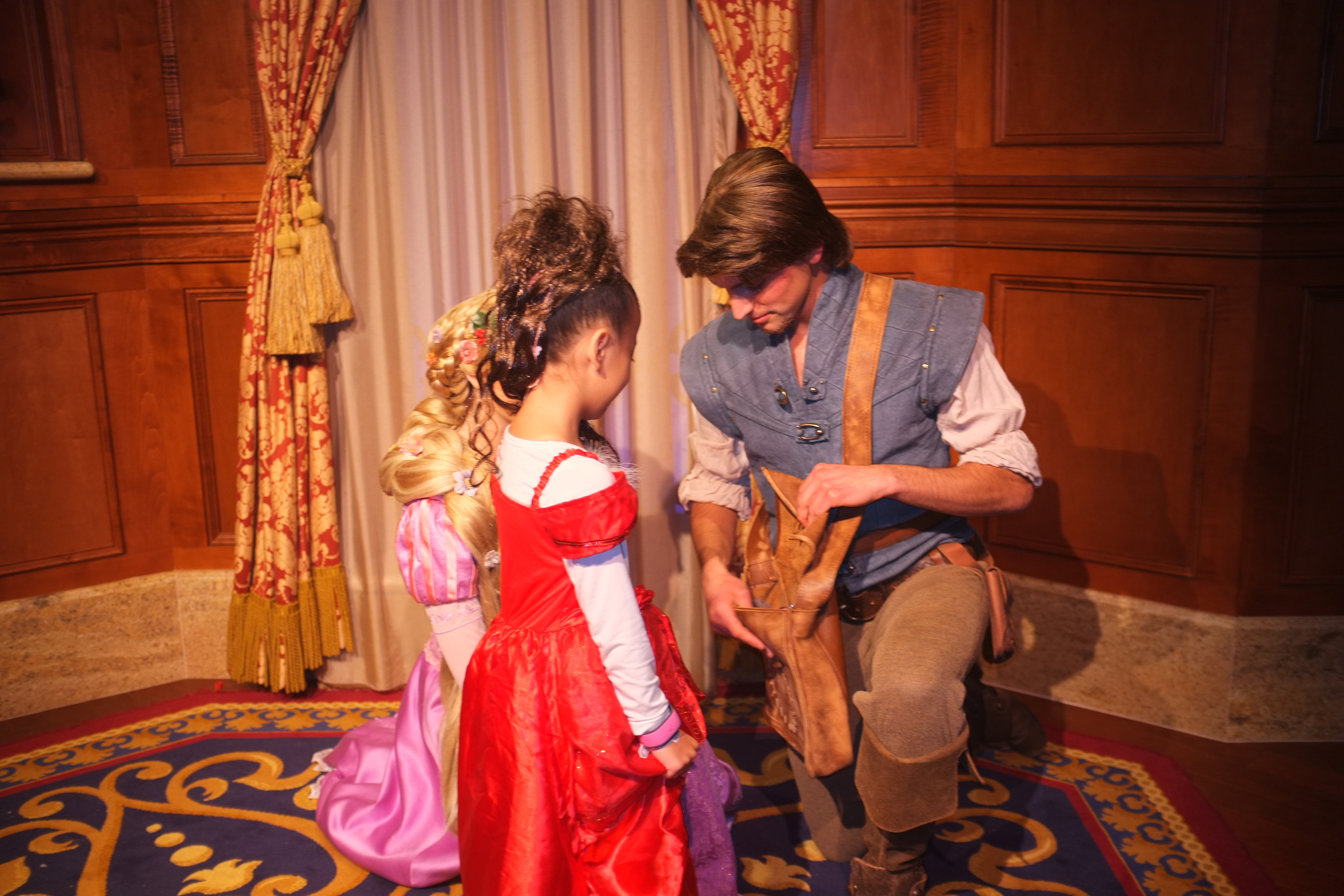 We left the shop and headed towards Cinderella’s castle, We had a reservation at Cinderella’s Royal Table. Eating inside Cinderella’s Castle is a quintessential experience as it gives you the best taste of the royal residence itself. The interior of Cinderella Castle is every bit as grand as the outside. We were first ushered into The Grand Hall where we had the opportunity for a meet and greet with Cinderella. After which, we took the red carpeted spiral staircase to the Royal Banquet Hall. As we finally walk into the Banquet Hall, the scene that unfolds is really incredible. Even Jarod couldn’t help and marveled at the exquisite details. We were lucky enough to get one of the window seats and could see Beast’s castle from our view. The server brought wishing stars and magic wands for Ashley and me and a sword for Jarod.