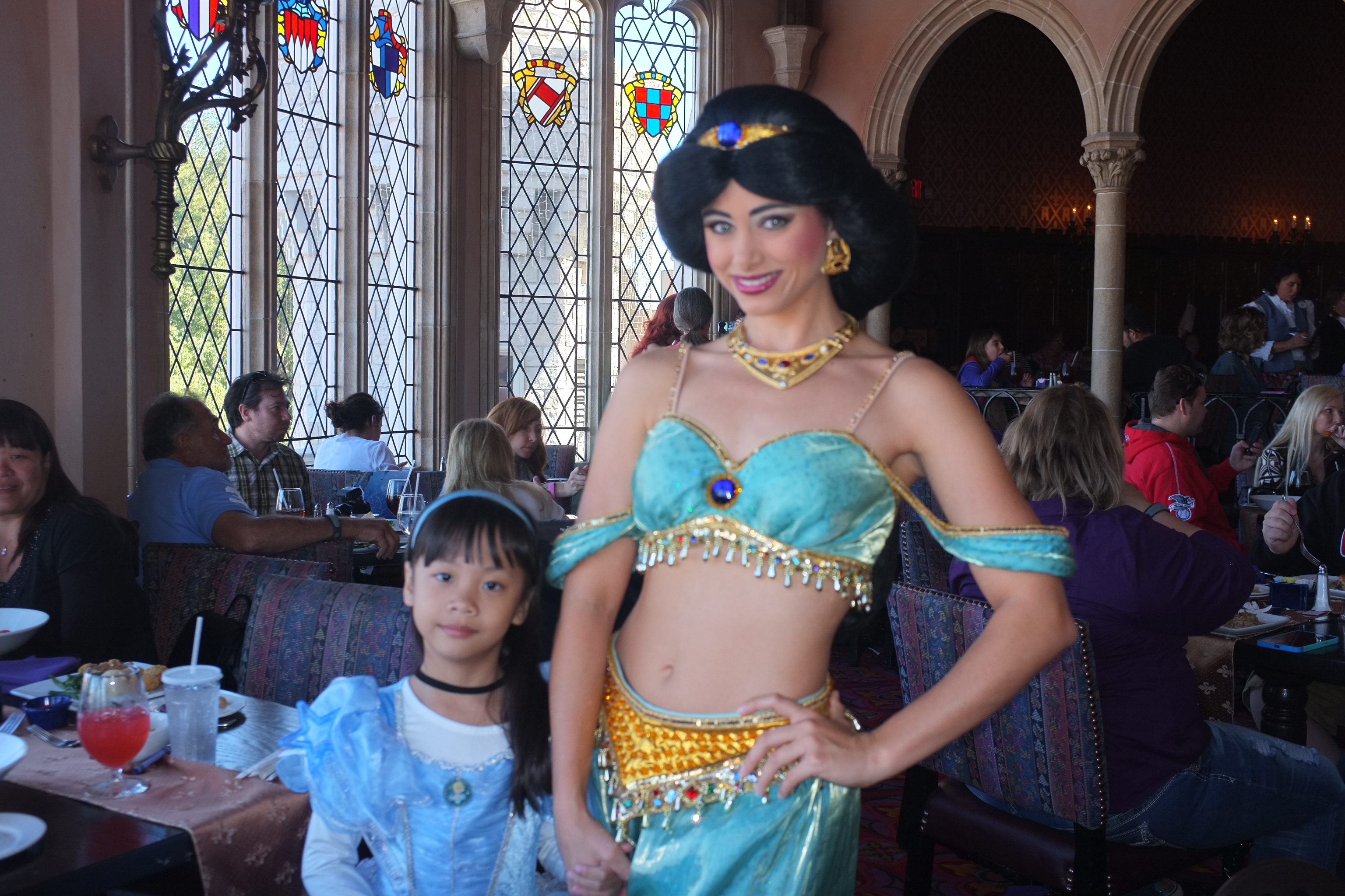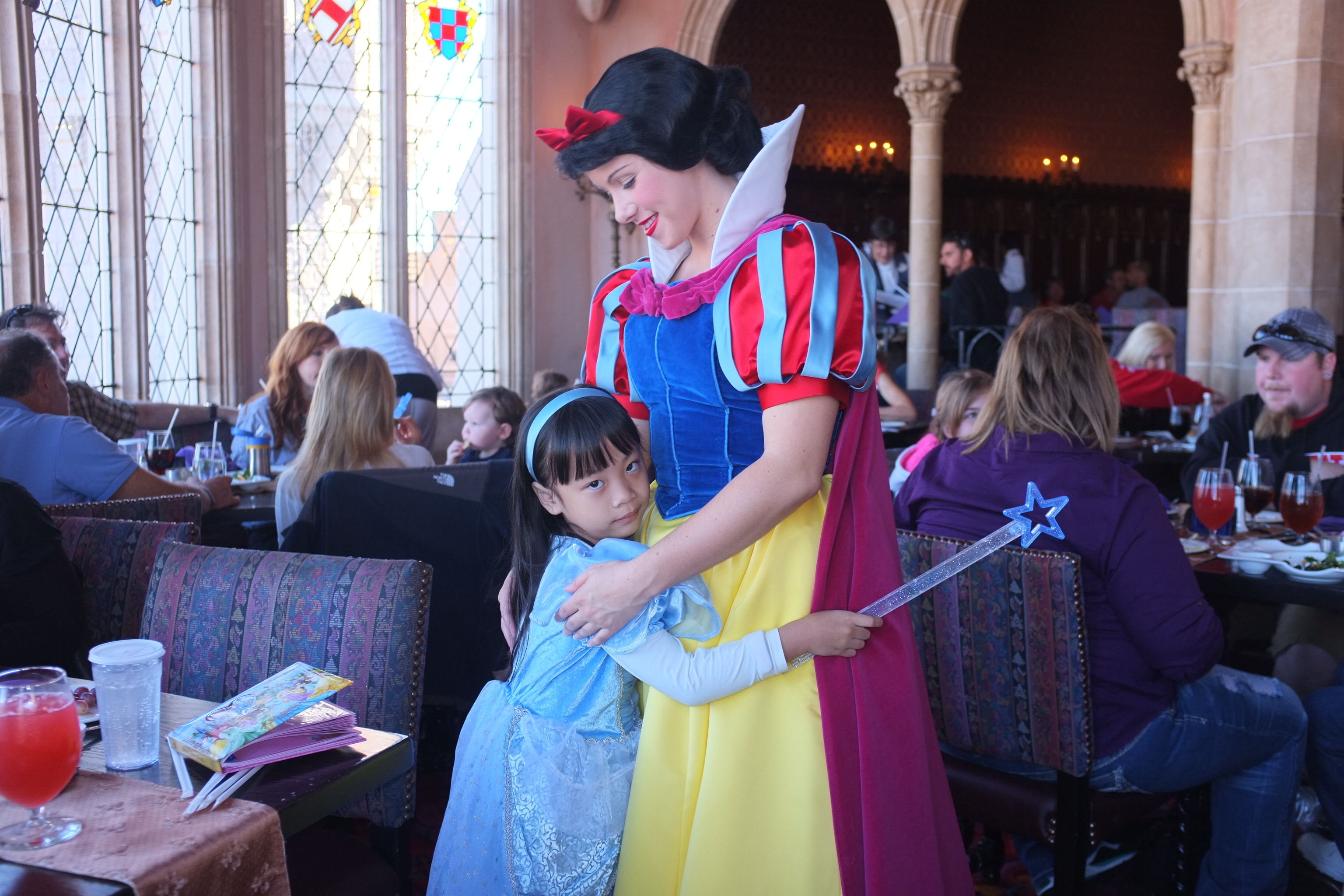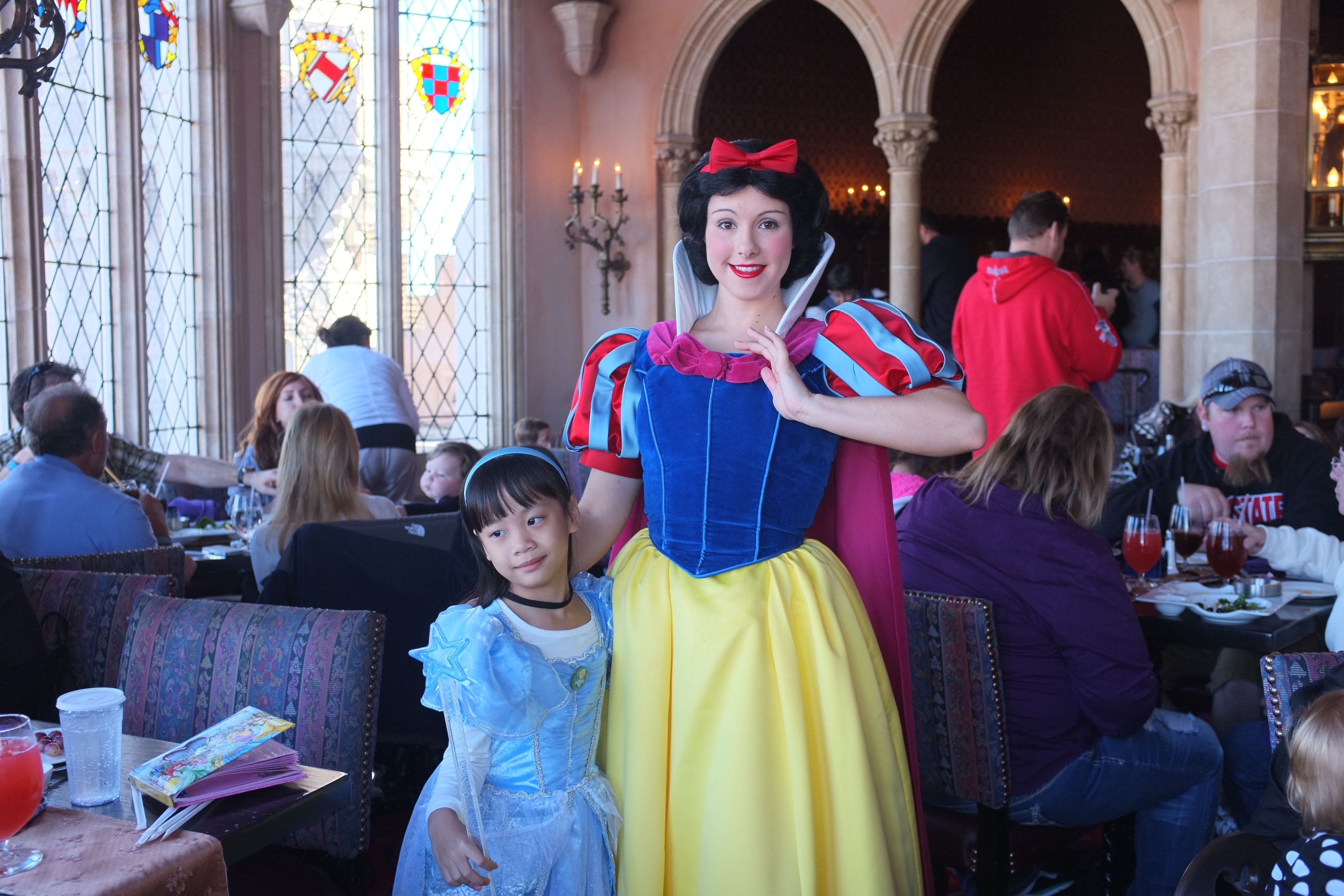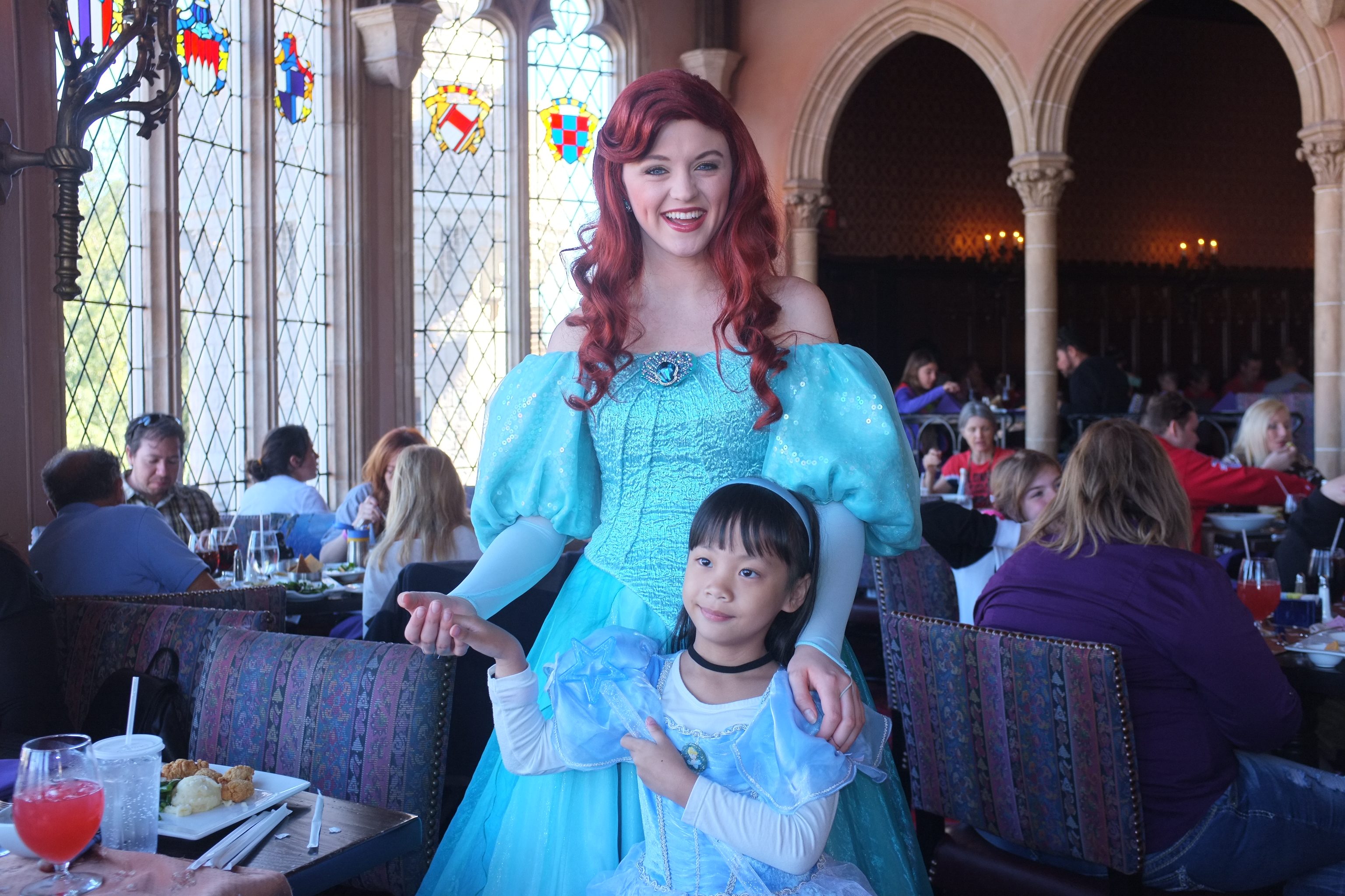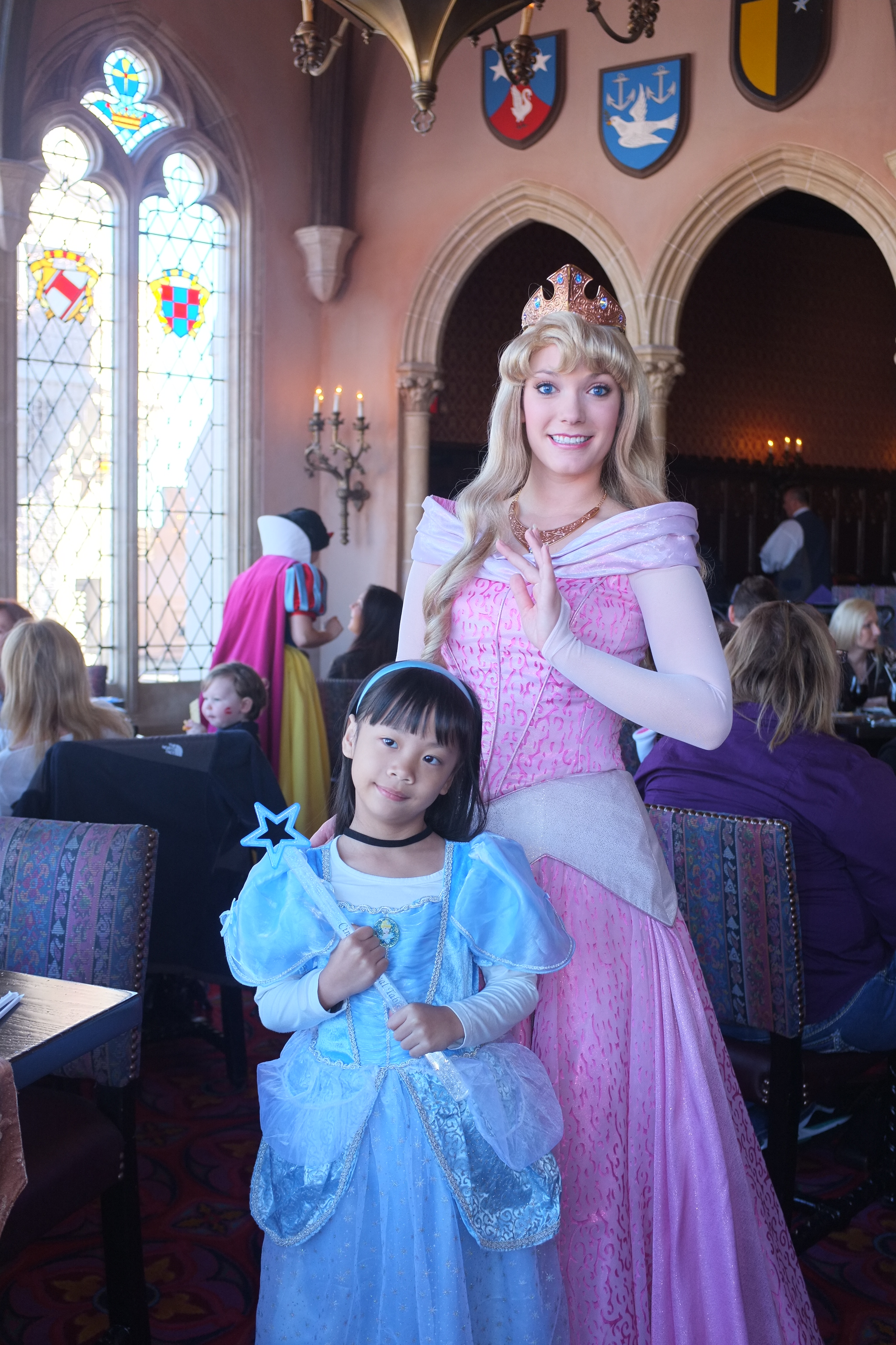 Throughout our meal, Disney princesses would make a grand entrance and visited every table to sign autographs and take pictures. We had the chance to meet Ariel, Aurora, Jasmine and Snow White. We were kept very busy until the last Princess visited our table. We were also given a complimentary photo package.