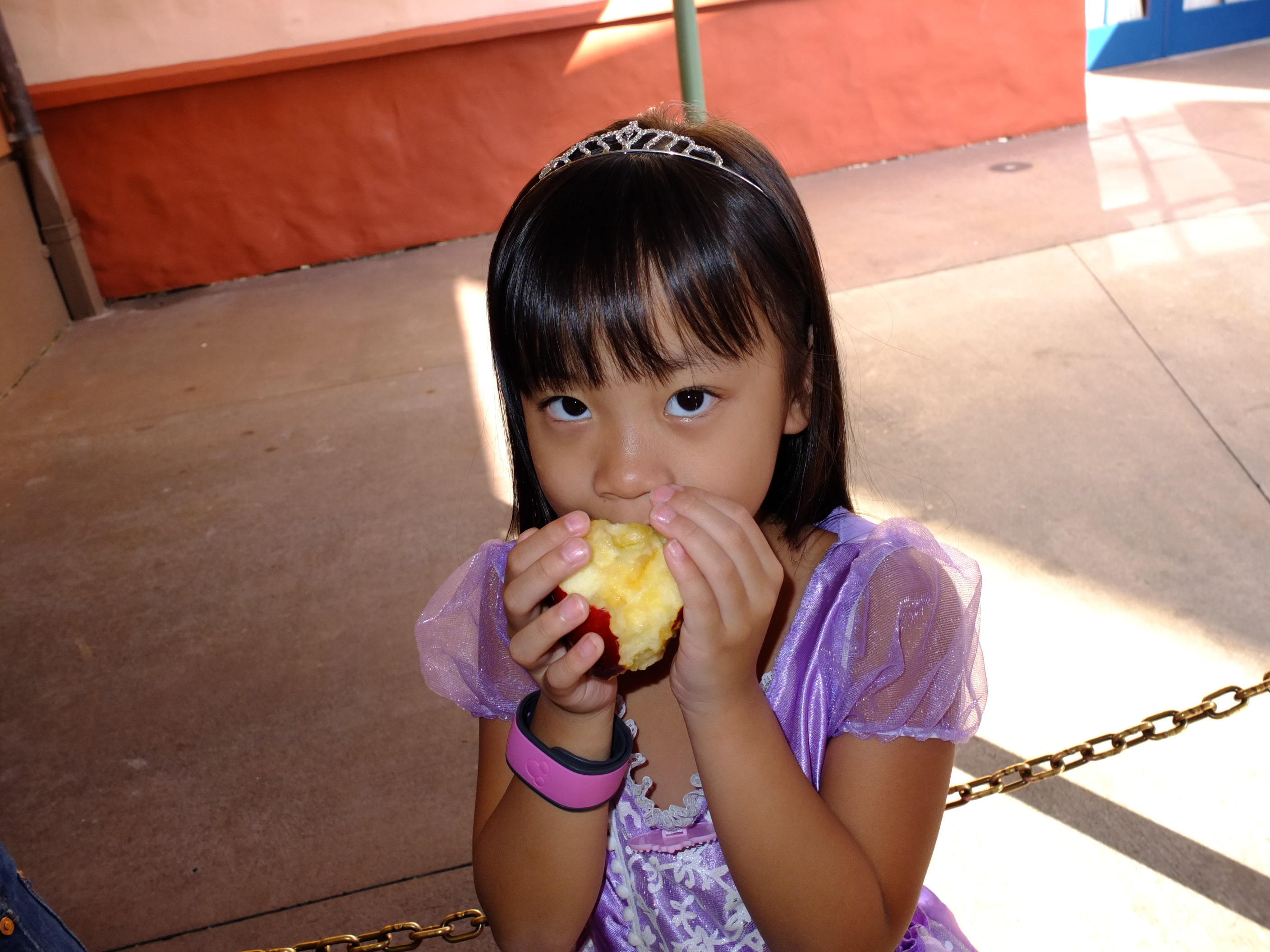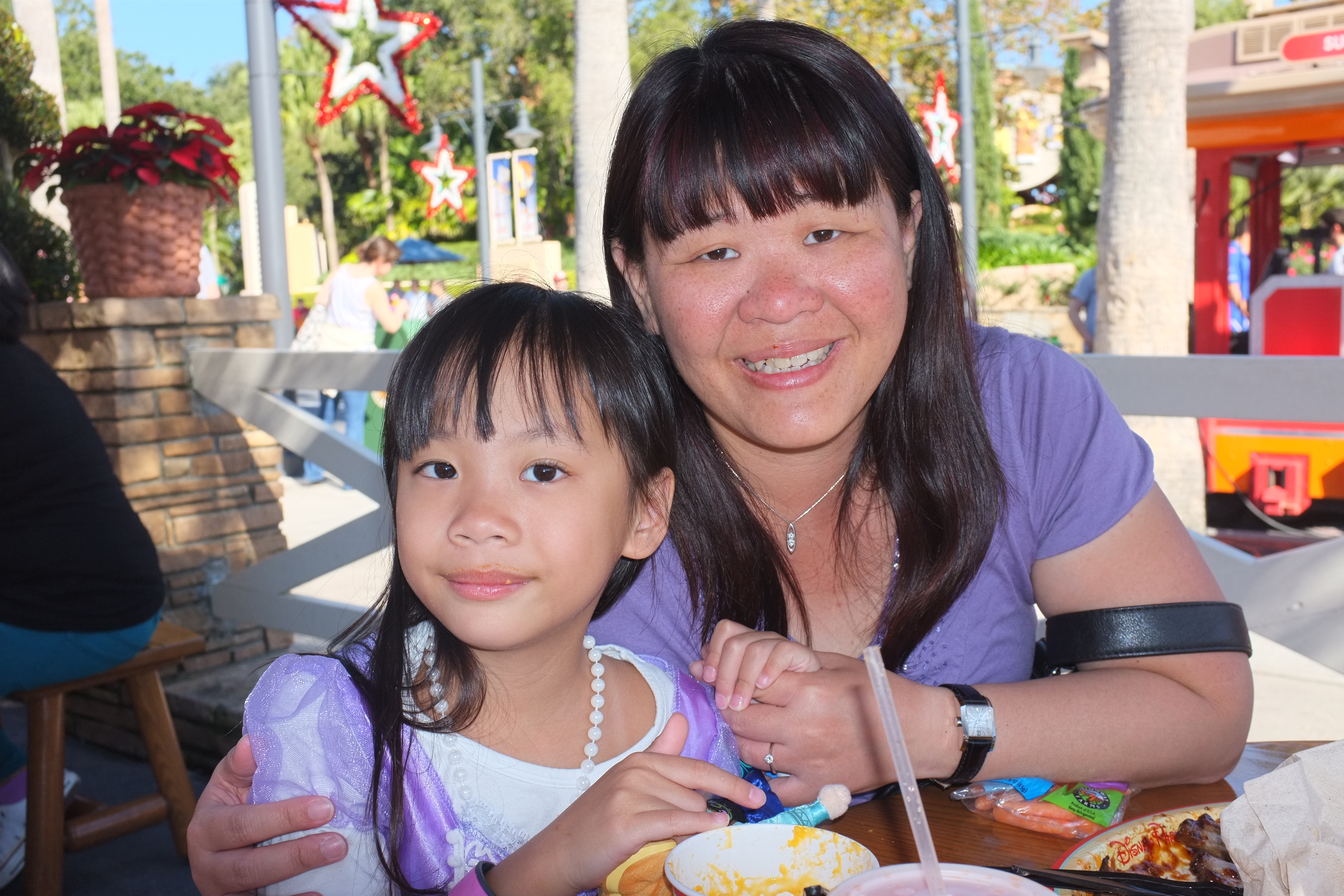 They returned before noon and seemed to have a great time. We then headed to Disney’s Hollywood Studios. When we arrived at the park, we stopped at Fairfax Fare for lunch. Ashley had her usual Macaroni and Cheese which she is so addicted to. ZA had a pizza while Jarod and I had Chicken and Ribs. While Jarod and Ashley enjoyed their lunch, ZA and I felt it was not as good as those we had. We had Parfait for dessert and did not like them. So we went over to Starring Rolls Cafe and redeemed a Butterfinger Cupcake and a Napoleon using our snack credit. Ashley had an apple for dessert.