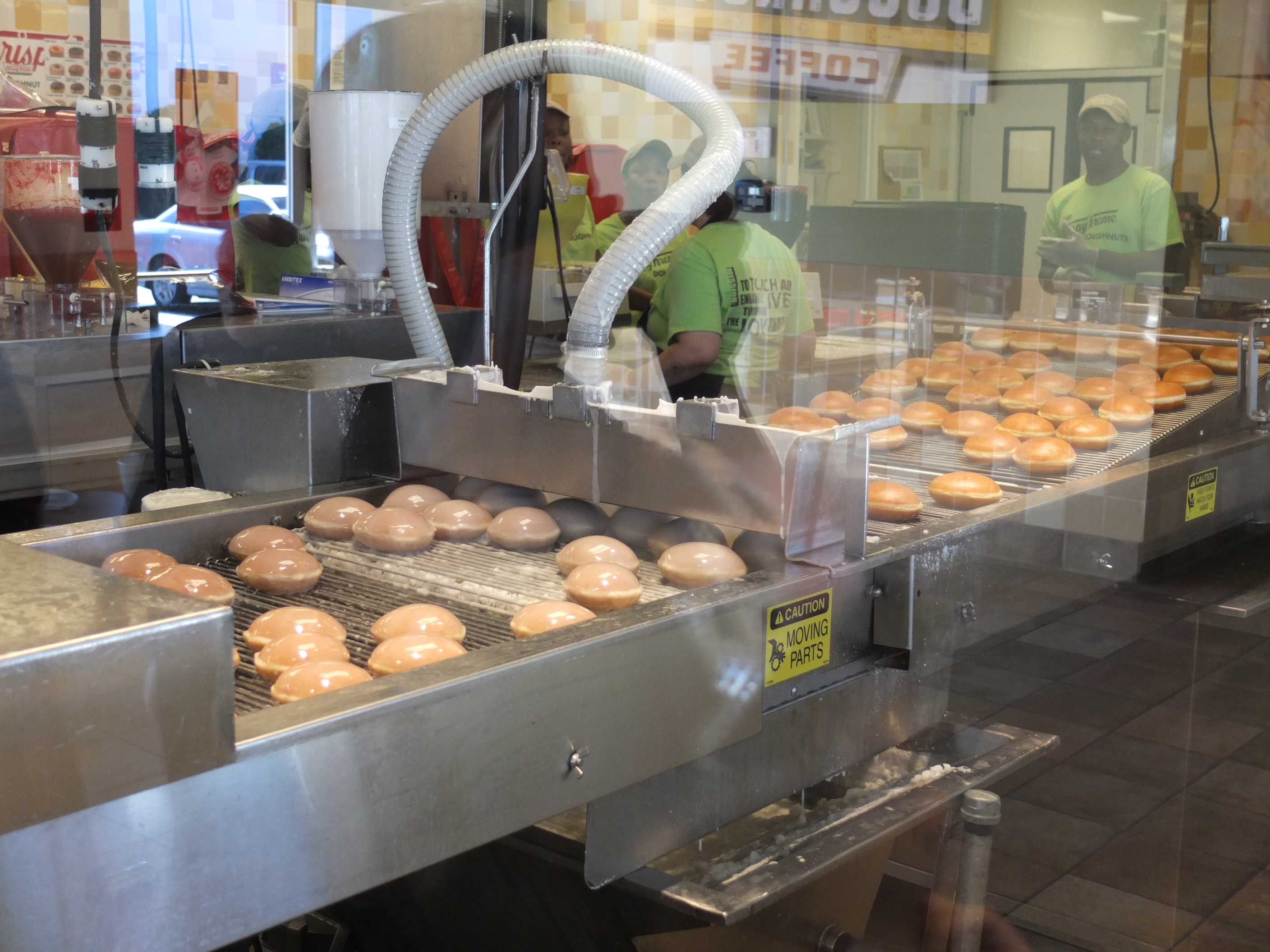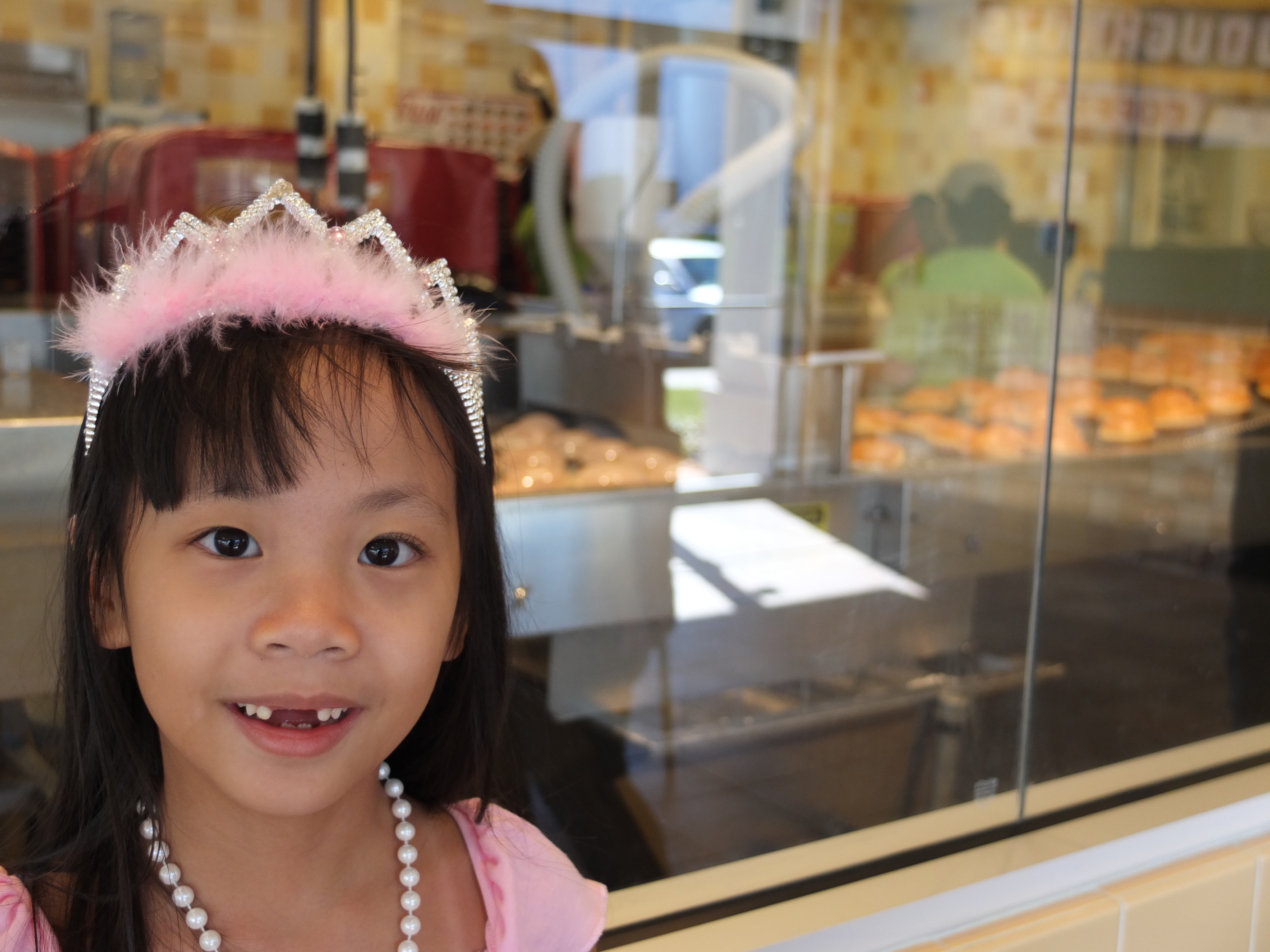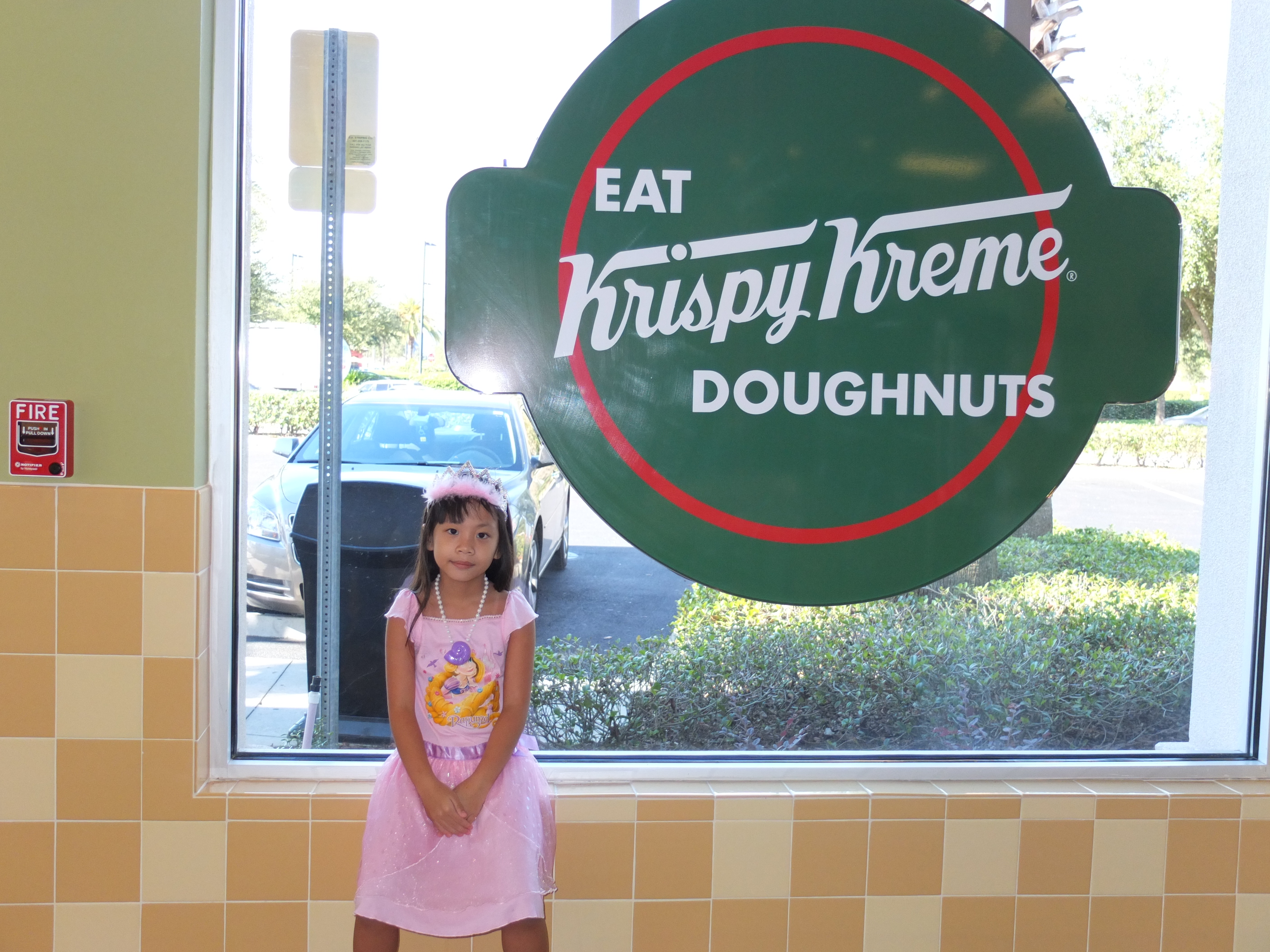 Next, we stopped by Krispy Kreme and ordered a dozen of donuts for take-out. Even though Krisp Kreme is finally opened in Singapore, we have yet to lay our hands on them, being deterred by the long queue and high price. It’s US$8.99 a dozen here. Ashley also witnessed the baking process for the donuts and found it ‘cool’.