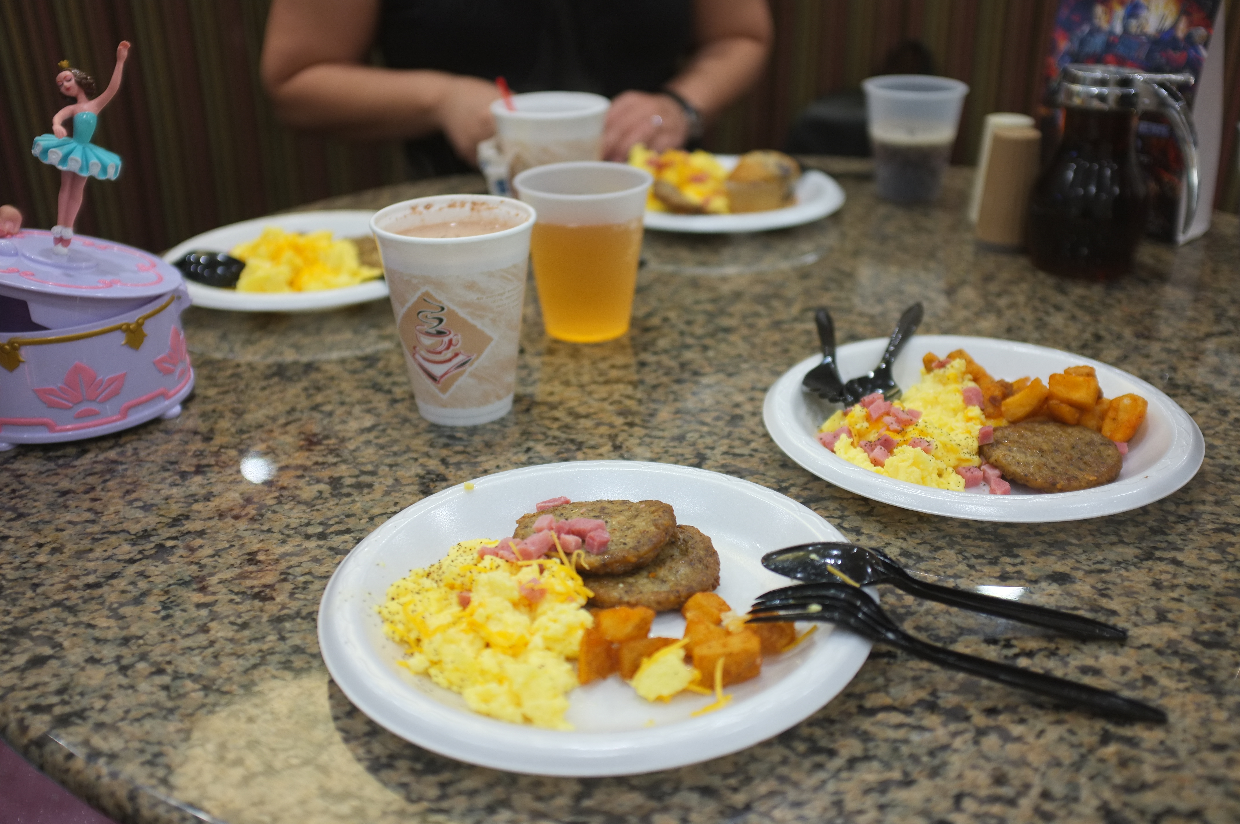 We started off our day having the free breakfast at Drury again. The spread was the same but we are not sick of it just yet.