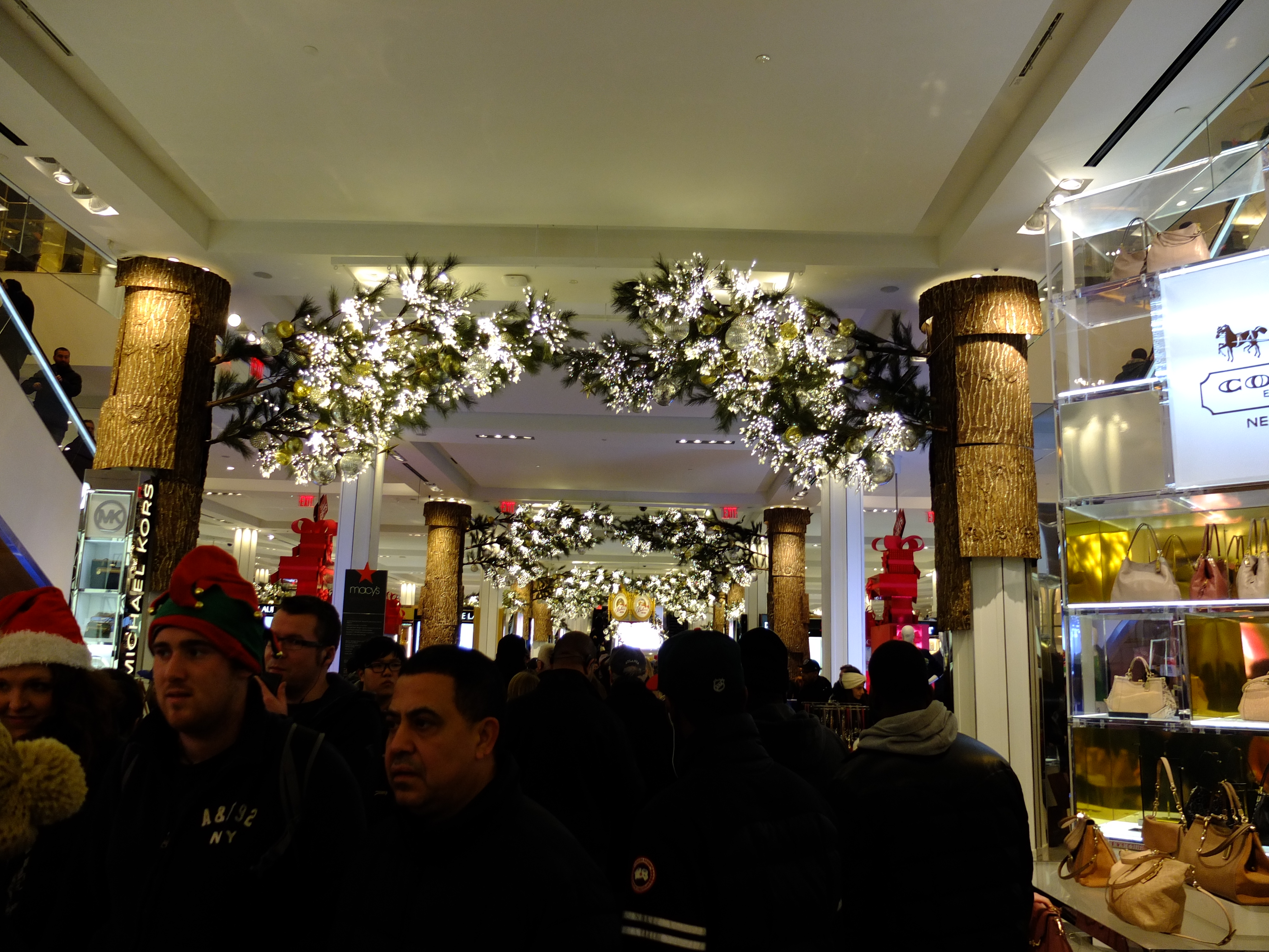 Next, we went to Macy’s at Herald Square, claimed to be the world’s largest store. The holiday window display was interesting and there was an interactive display which allows you to wave and control the snowflakes. It was indeed large and we had problem finding the products. We needed to get an extra luggage to fit in all the new purchases. We were surprised that most of the luggages on sale did not come with locks. In the end, we settled for a High Sierra Pack-and-Go. It is folded and is 30 inches when opened. We bought a separate TSA lock. Ashley was disappointed that the toys section was small and there were not much selection. However, it was interesting to see wooden escalators still in use within the store. We did not visit the Santaland where you get to meet Santa as it was known to have a long line.