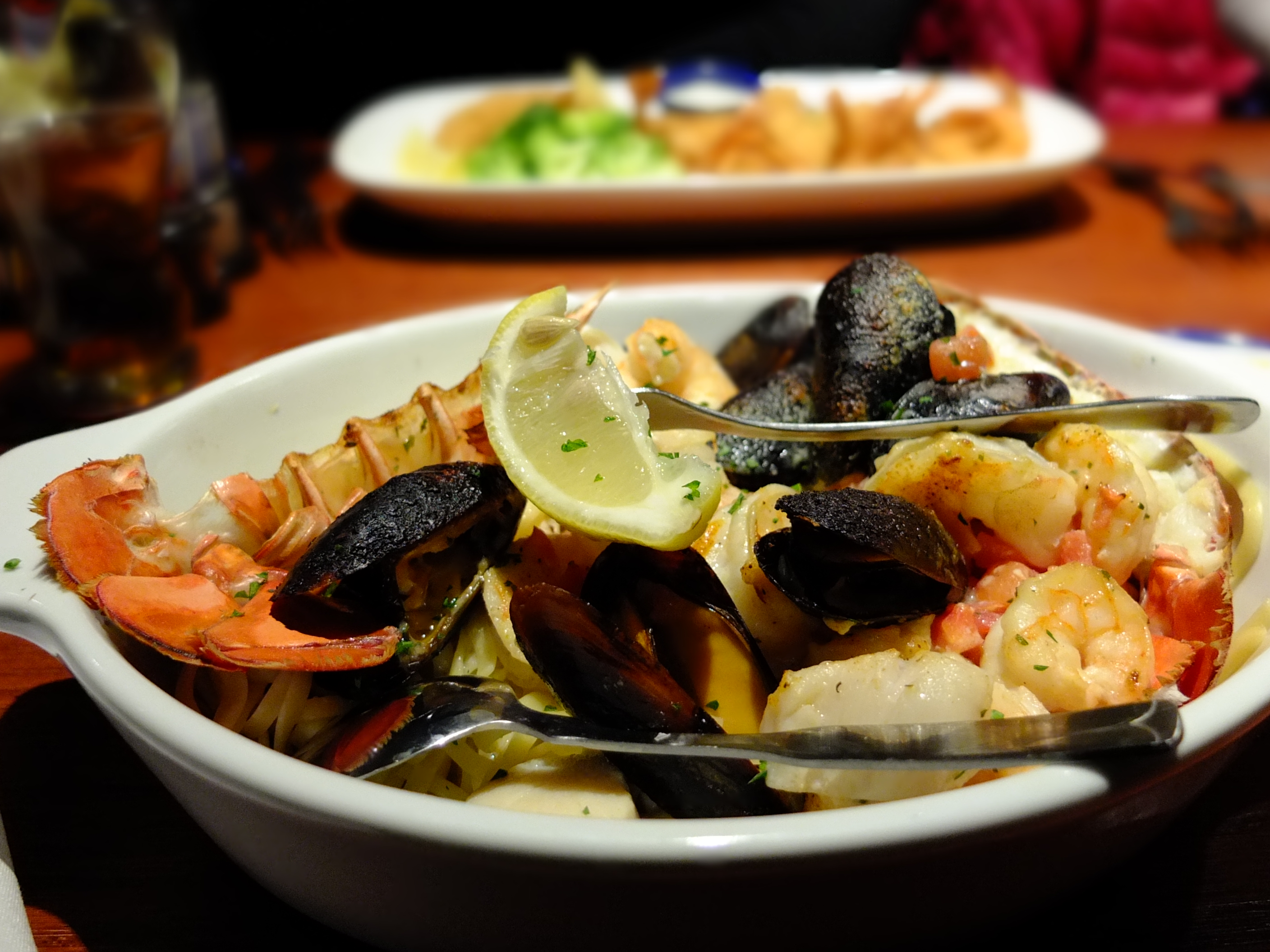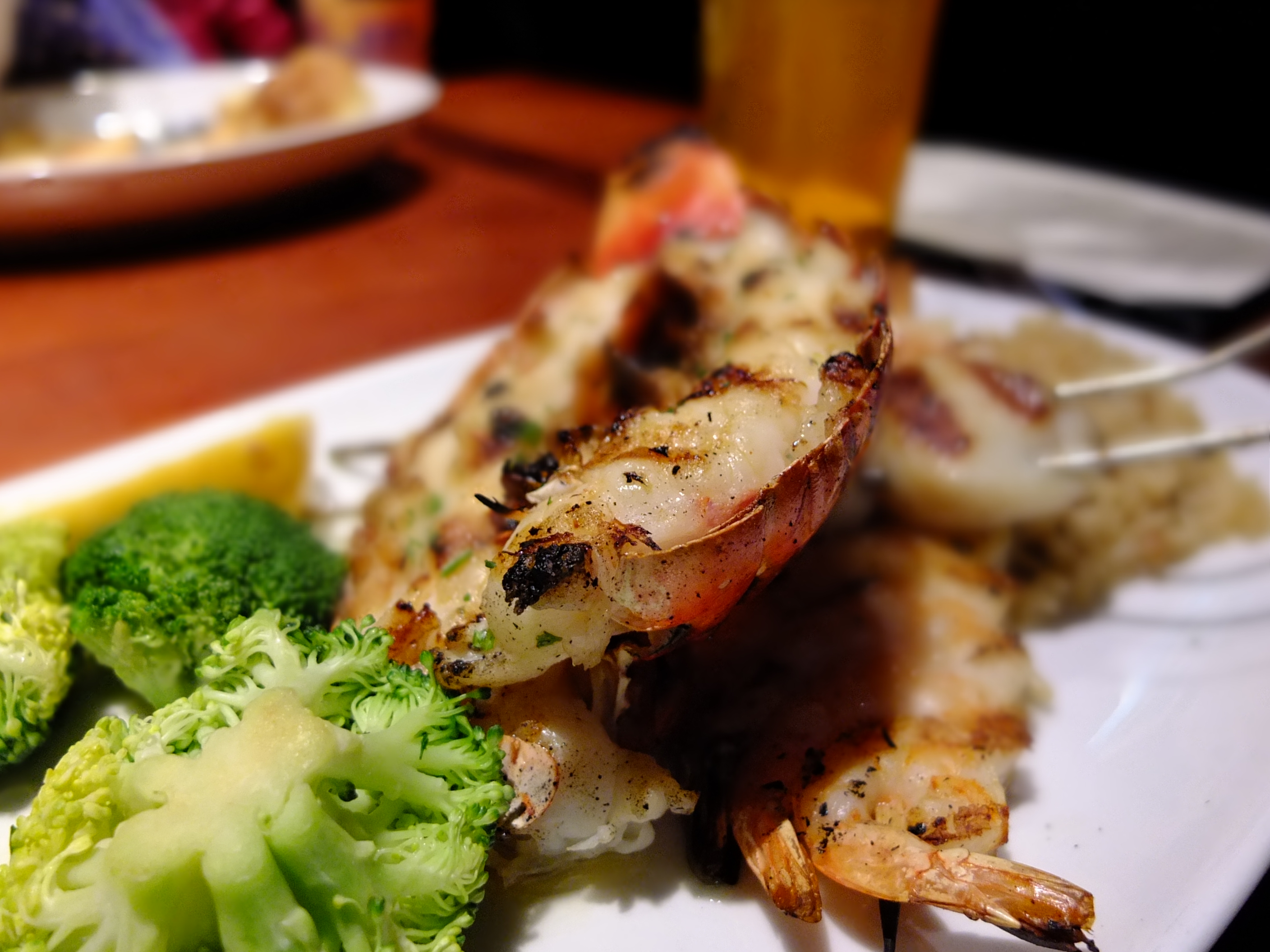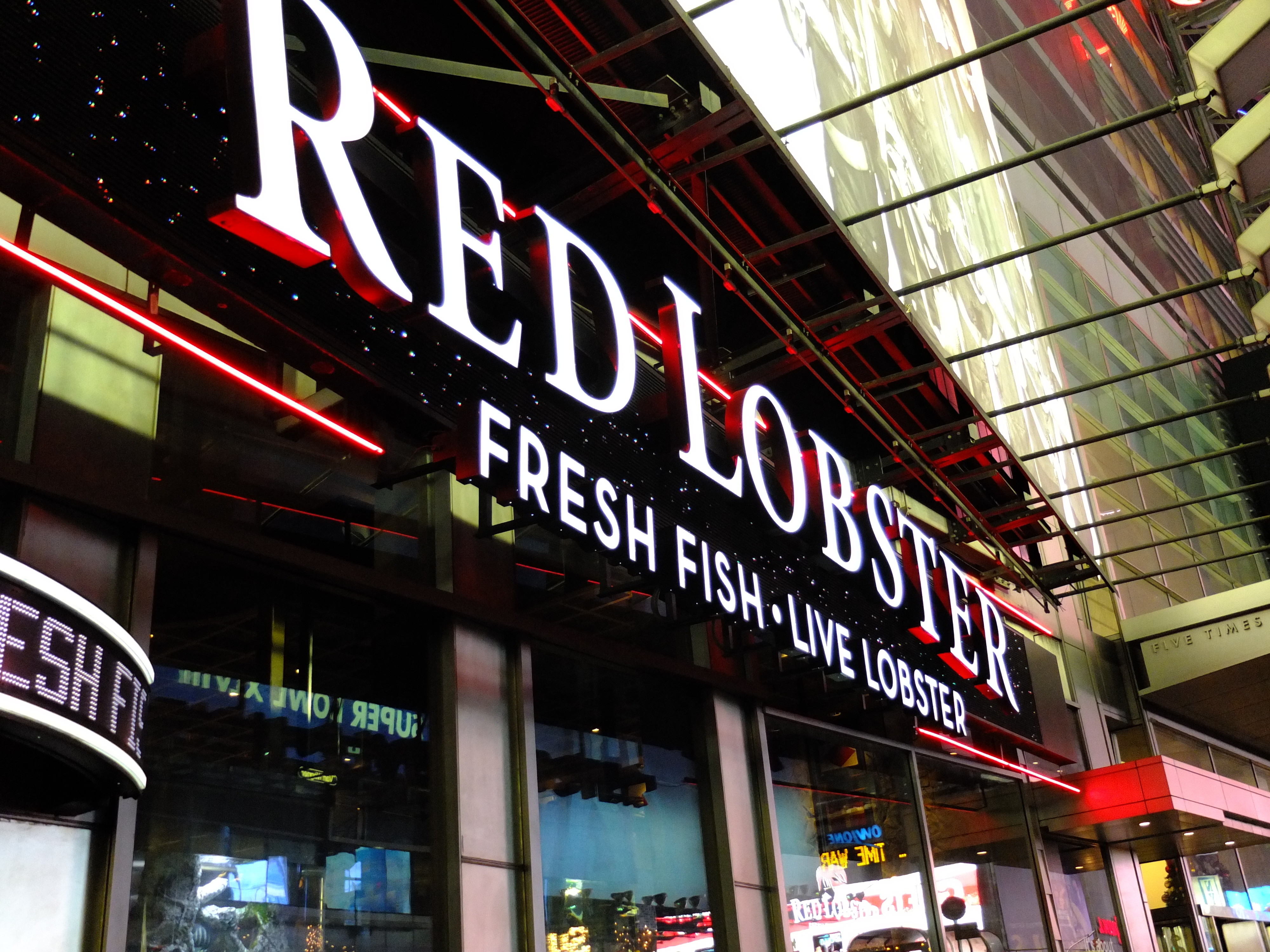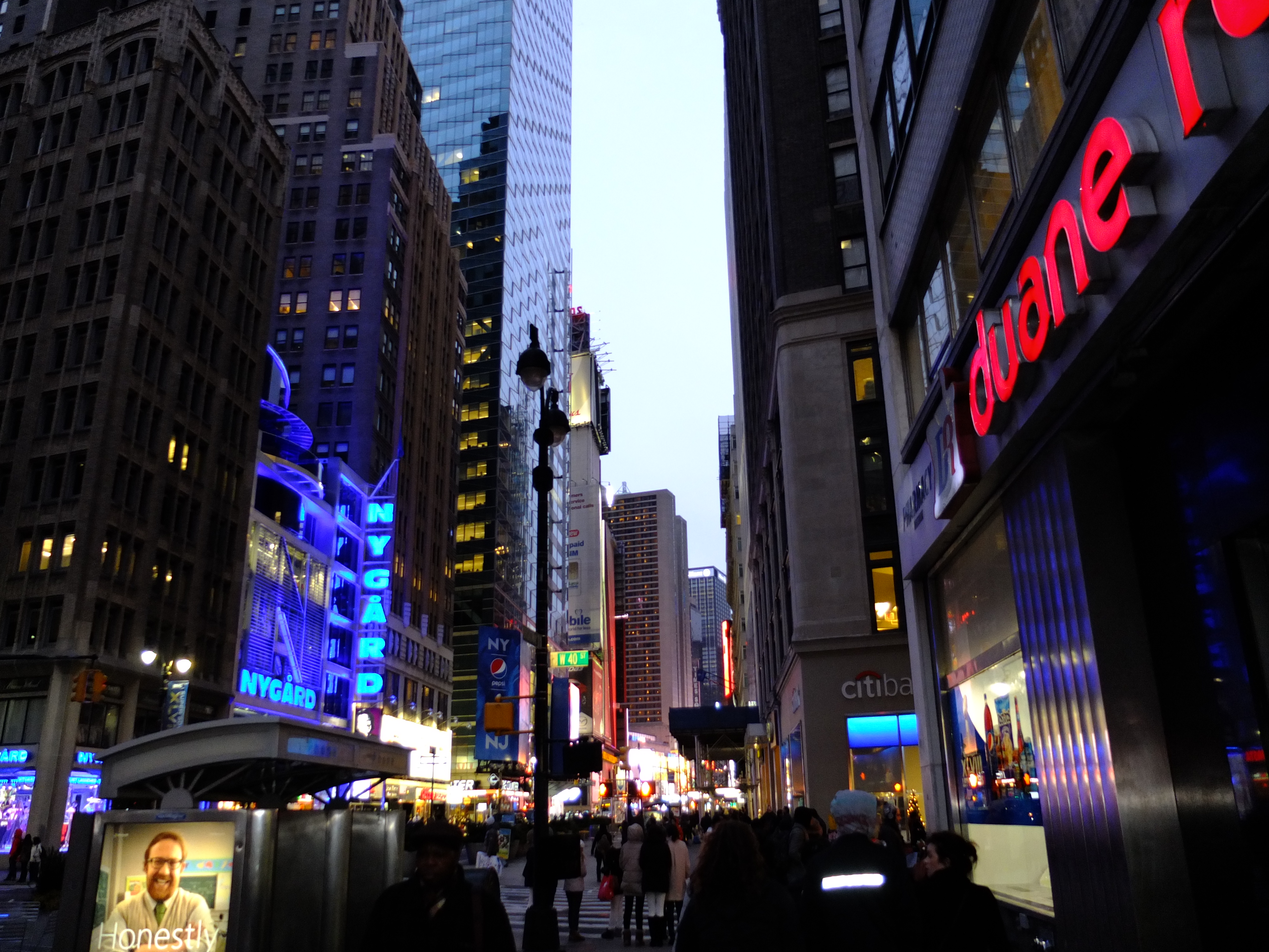 It was dark when we finally left the store and headed to Red Lobster for dinner. There was a long line of people waiting to be seated and we were told wait time of 30 minutes. We checked out the nearby Hard Rock Cafe with similar wait time and decided to wait at Red Lobster. Considering that it was Christmas Eve, the wait was not too bad. We were seated 20 minutes into our wait. The interior is spread out over three floors and we were seated at the second floor. It had a nice and cosy ambience. Our server was friendly and attentive although he had to serve the third floor as well. After taking our drinks order, he brought a basket of Cheddar Biscuits. They were soft and cheesy and definitely the best we have tasted so far. Ashley ordered her Macaroni and Cheese, Jarod had the Admiral Feast, ZA had the Bar Harbor Lobster Bake and a Samuel Adams Winter Brew and I had the Wood-Grilled Lobster, Shrimp and Scallops. The accompanying Caesar Salad that Jarod and ZA had and my Garden Salad with Bleu Cheese dressing were really good. Our seafood were plentiful, delicious and wonderfully cooked although I preferred ZA’s lobster. Ashley loved her Mac and Cheese too and enjoyed sharing our lobster and scallops. However, the star of the platter was the shrimp skewer, it was succulent and luscious. We enjoyed our dinner. The one thing to note in New York City was the ever presence of police. This was our first time seeing a policeman stationed in a restaurant.
