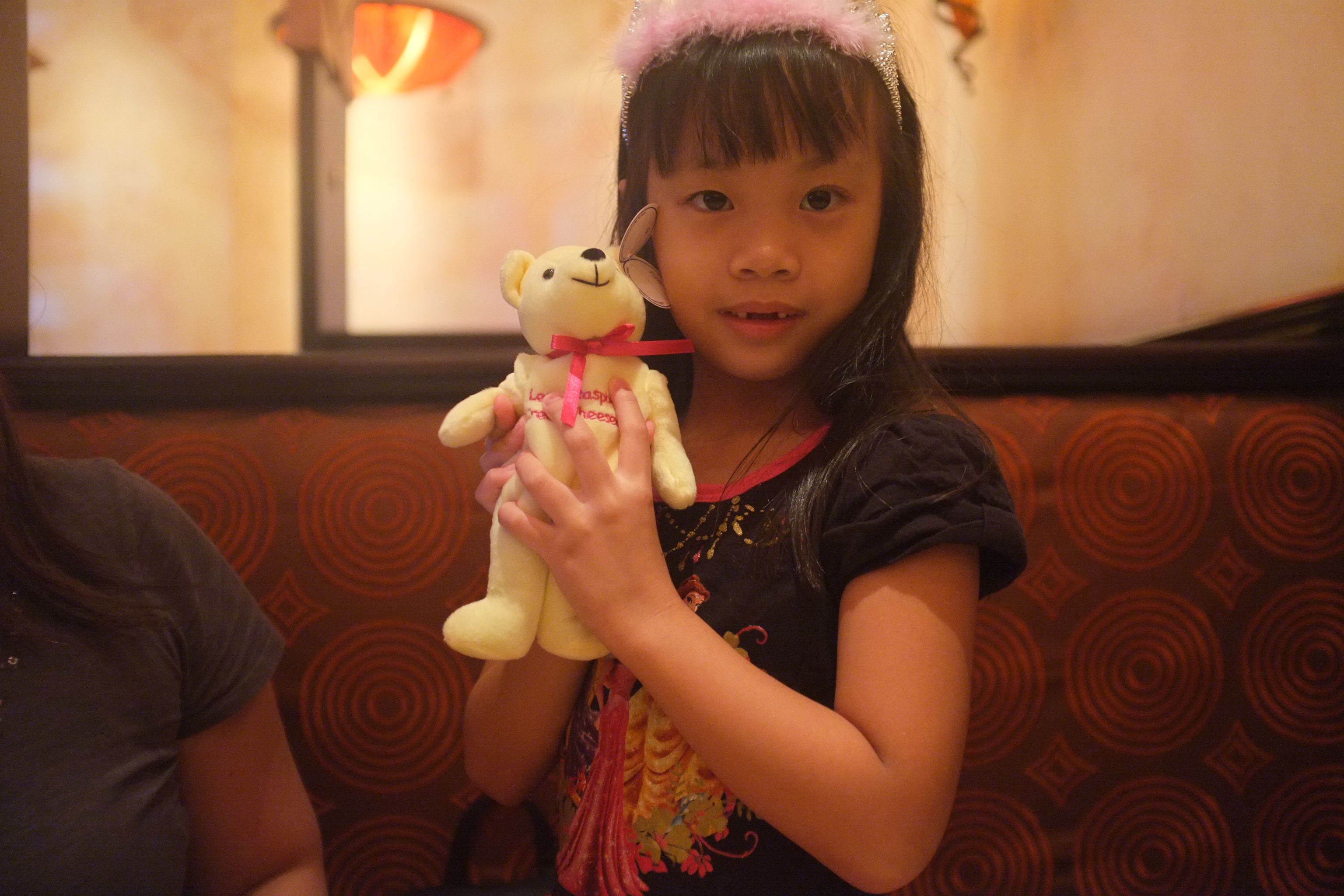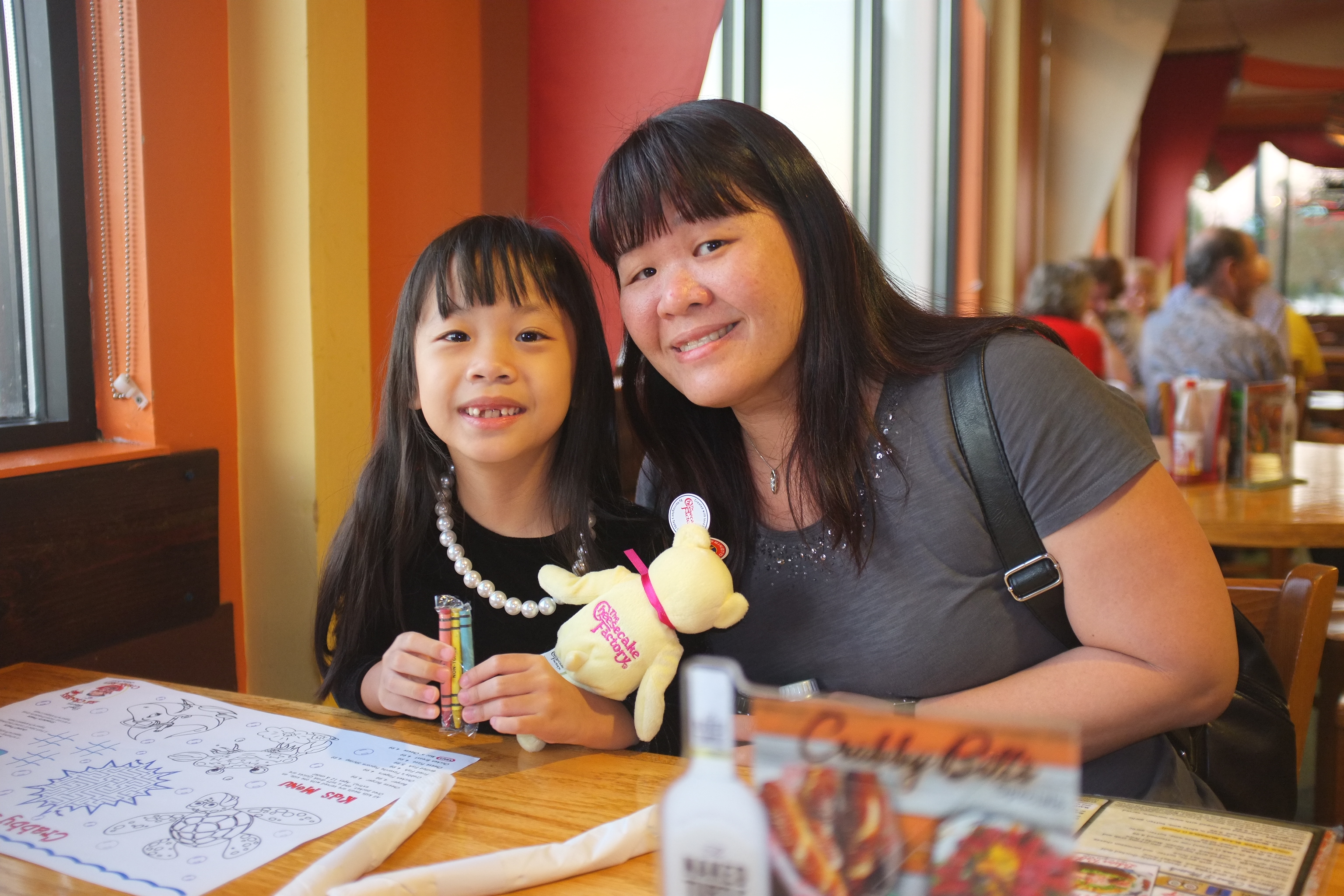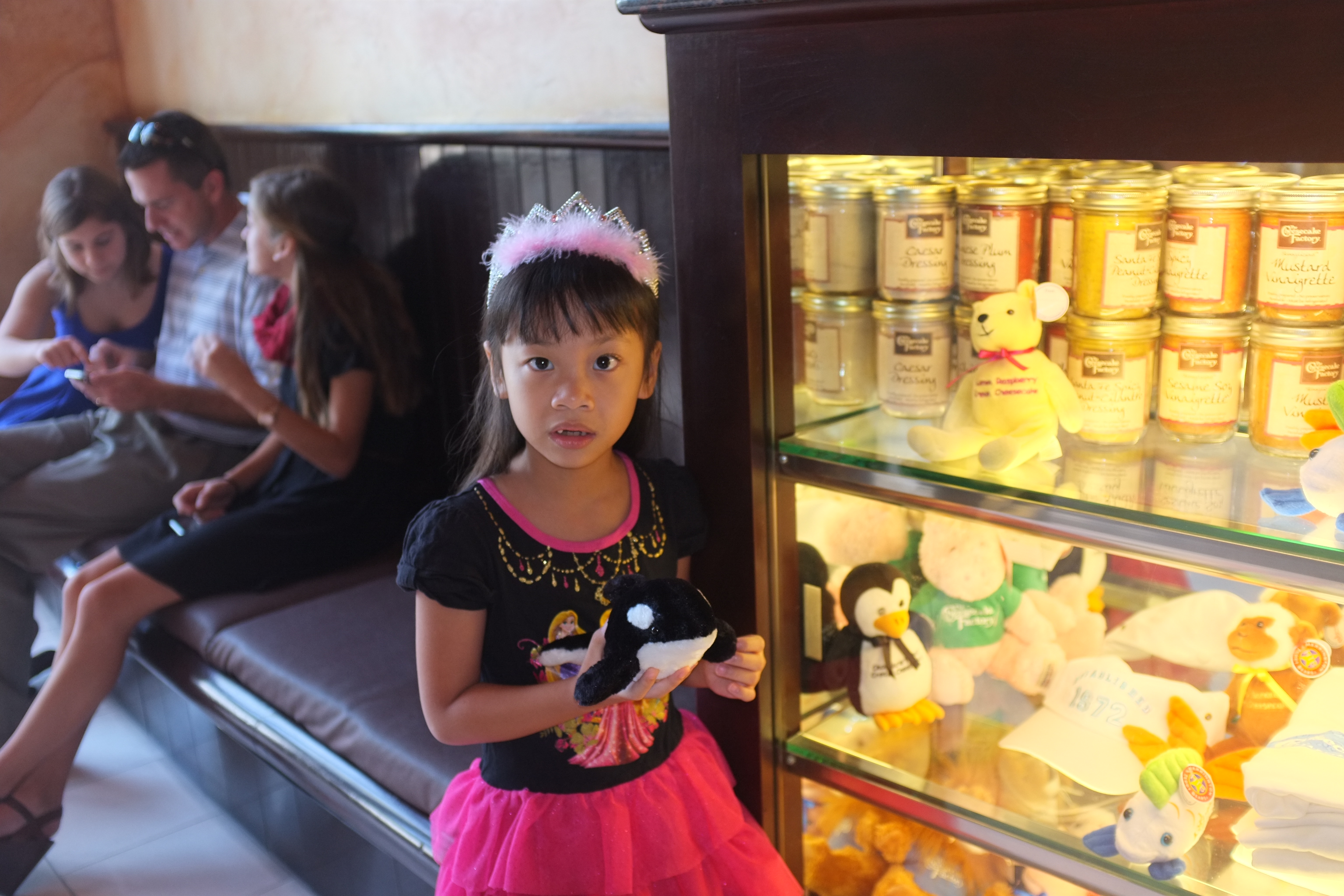 We reached The Cheesecake Factory at The Mall at Millenia at 11am and it was already packed but there were still tables available. While waiting, we ogled at the cheesecake selection, trying very hard to decide which to have. Ashley was instead ogling at the souvenir window display and eyed the Lemon Raspberry Cream Cheesecake teddy plush. Soon, we were brought to our table. After taking a break from Macaroni and Cheese yesterday, Ashley wants to have it today. She also wanted the Corn Dogs for appetiser. Jarod ordered the Roadhouse Burger and ZA and I shared the Factory’s Famous Meatloaf. The food arrived quickly and the portion is really HUGE! As always, the food did not disappoint and we enjoyed the meal. We ordered one Original Cheesecake and one Reese’s Peanut Butter Cheesecake to share and Ashley ordered vanilla ice cream. The cakes are to die for but we could not finish them. ZA obliged and bought the plush for Ashley and she was thrilled.