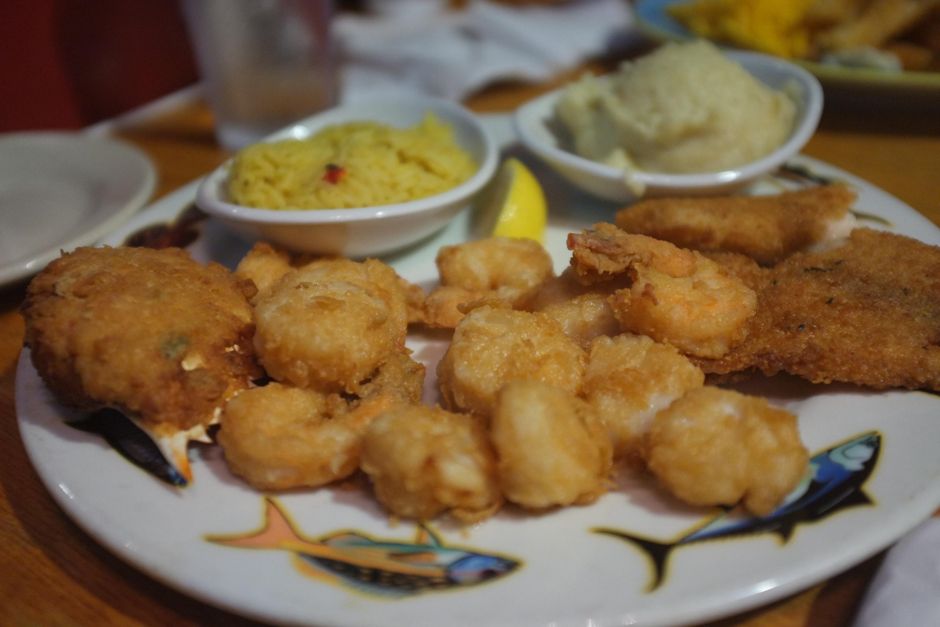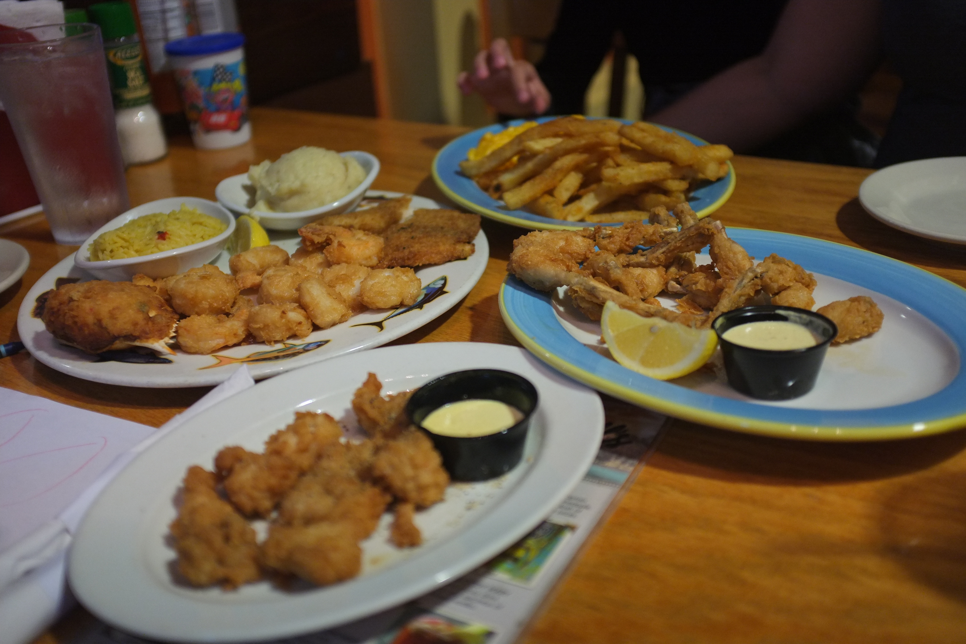 Crabby Bill’s is located at St Cloud Marina and offers great views of Lake Tohopekaliga. We were not quite hungry yet after the scrumptious lunch this afternoon so we ordered 2 appetisers, Alligator Bites and Frog Legs as well as a Seafood Platter Entree to share. Ashley decided to get Macaroni and Cheese again. I wonder when she will get sick of it. The food arrived soon and they looked good. The Alligator Bites were tasty but was on the salty side while we liked the Frog Legs. The Seafood Platter had fish, shrimps, scallops and stuffed crab and the seafood were fresh. Ashley’s Macaroni and Cheese had Fries as side and were good too. We enjoyed the dinner.