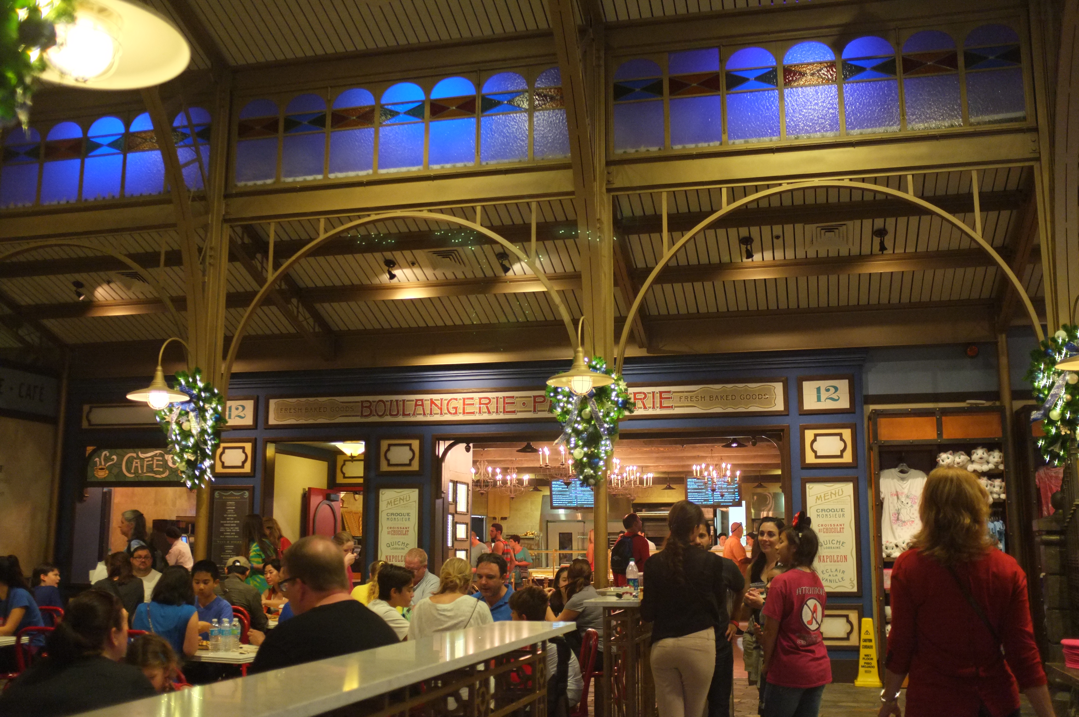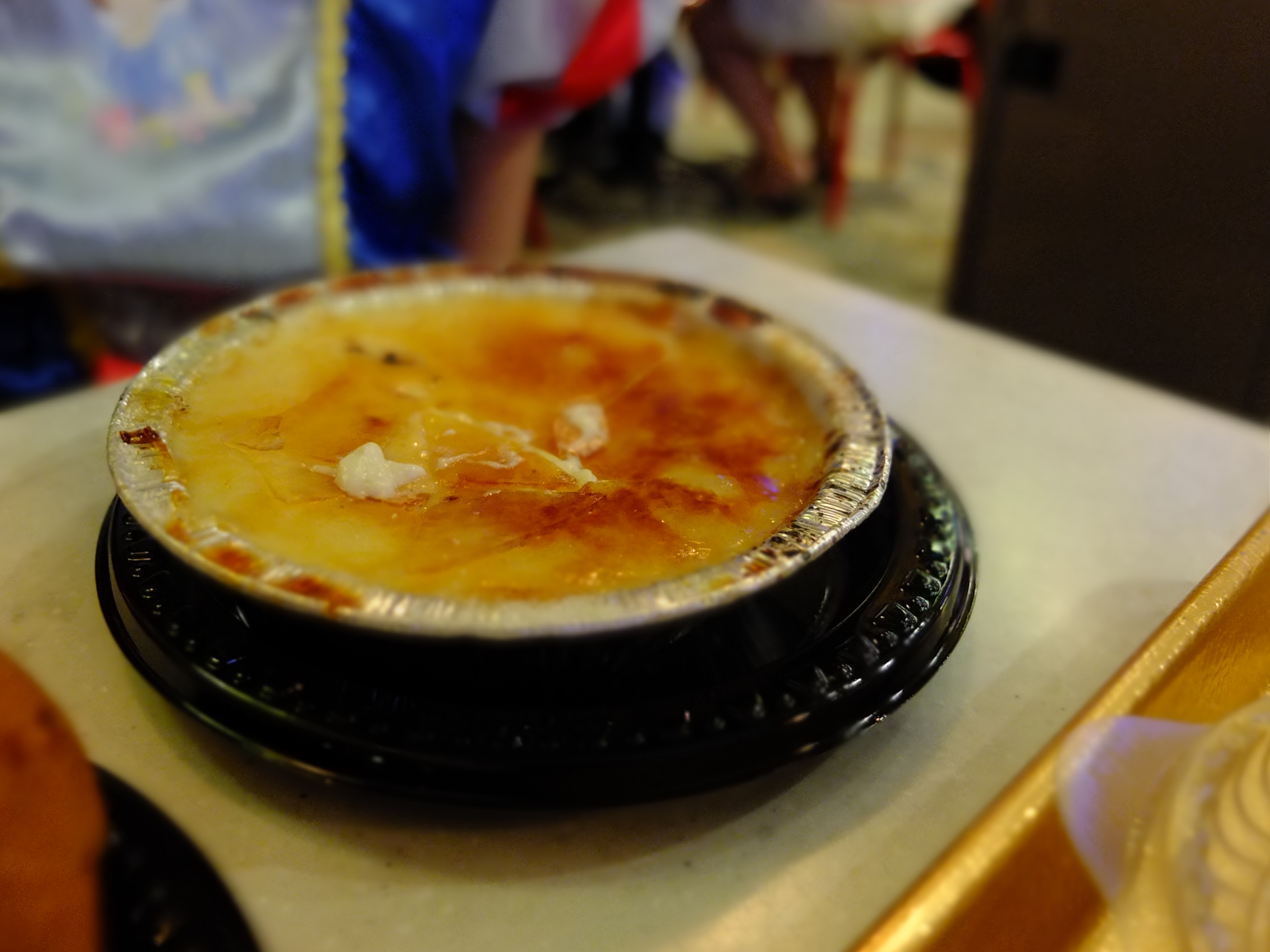 We crossed back to the World Showcase since I promised that I would stop at Les Halles Boulangerie Patisserie for one of the mouth watering snacks. We ordered the Creme Brulee, Brioche Choco and Bisque de Homard (Lobster Bisque). The Lobster Bisque came from the same kitchen as that of Chefs de France and were delicious. Ashley loved the Brioche Choco but we did not like the Creme Brulee which was served cold.