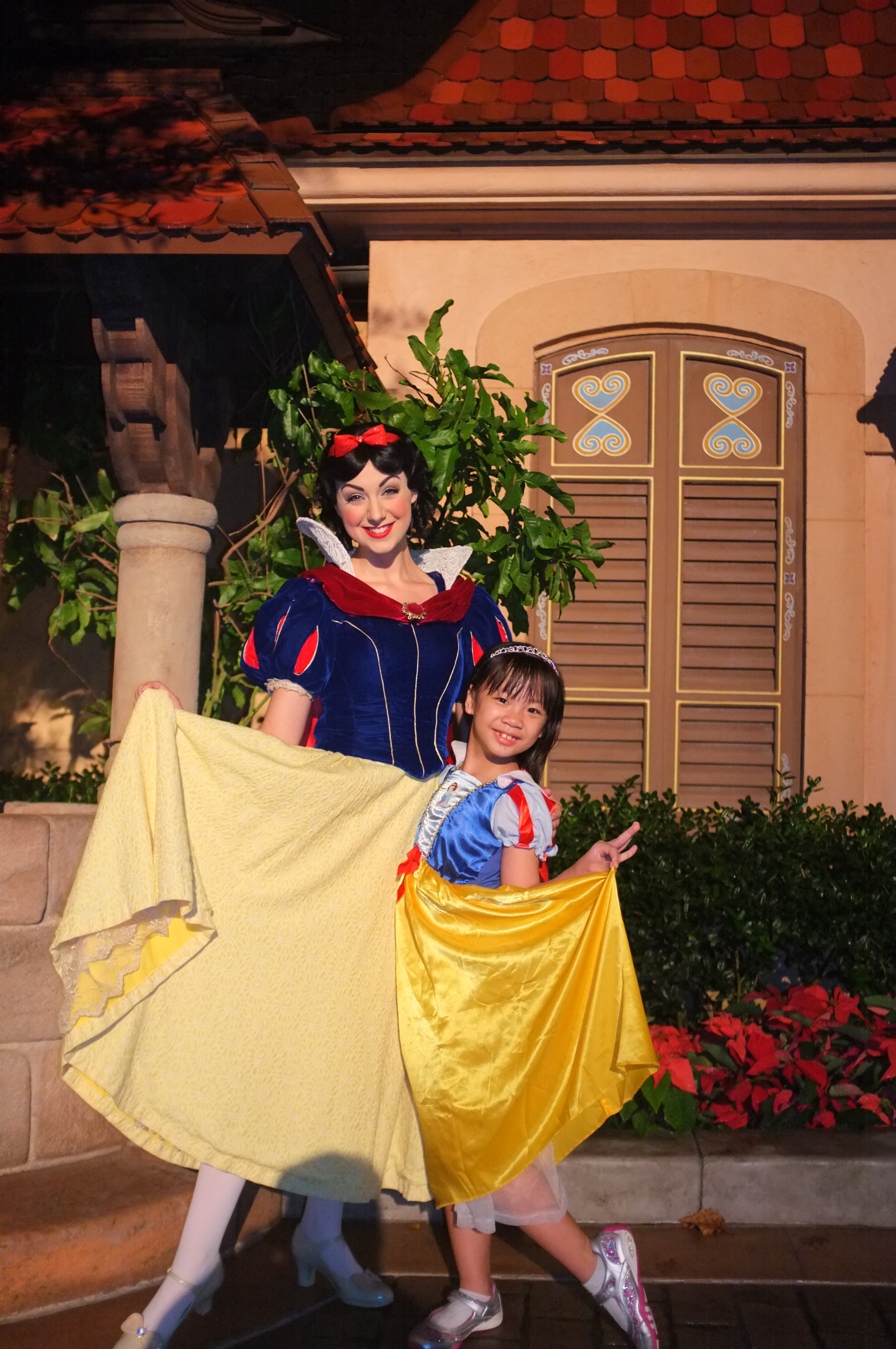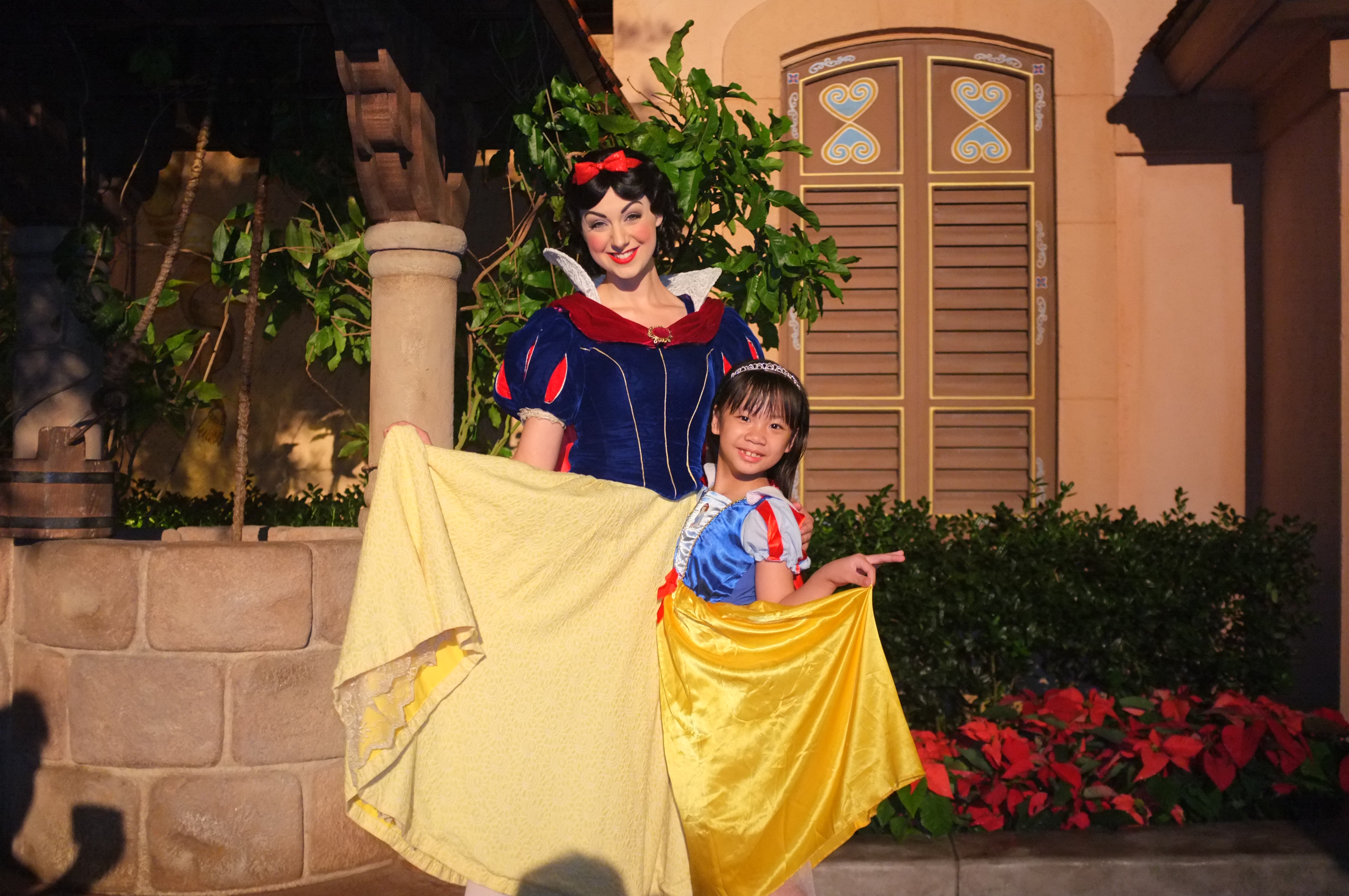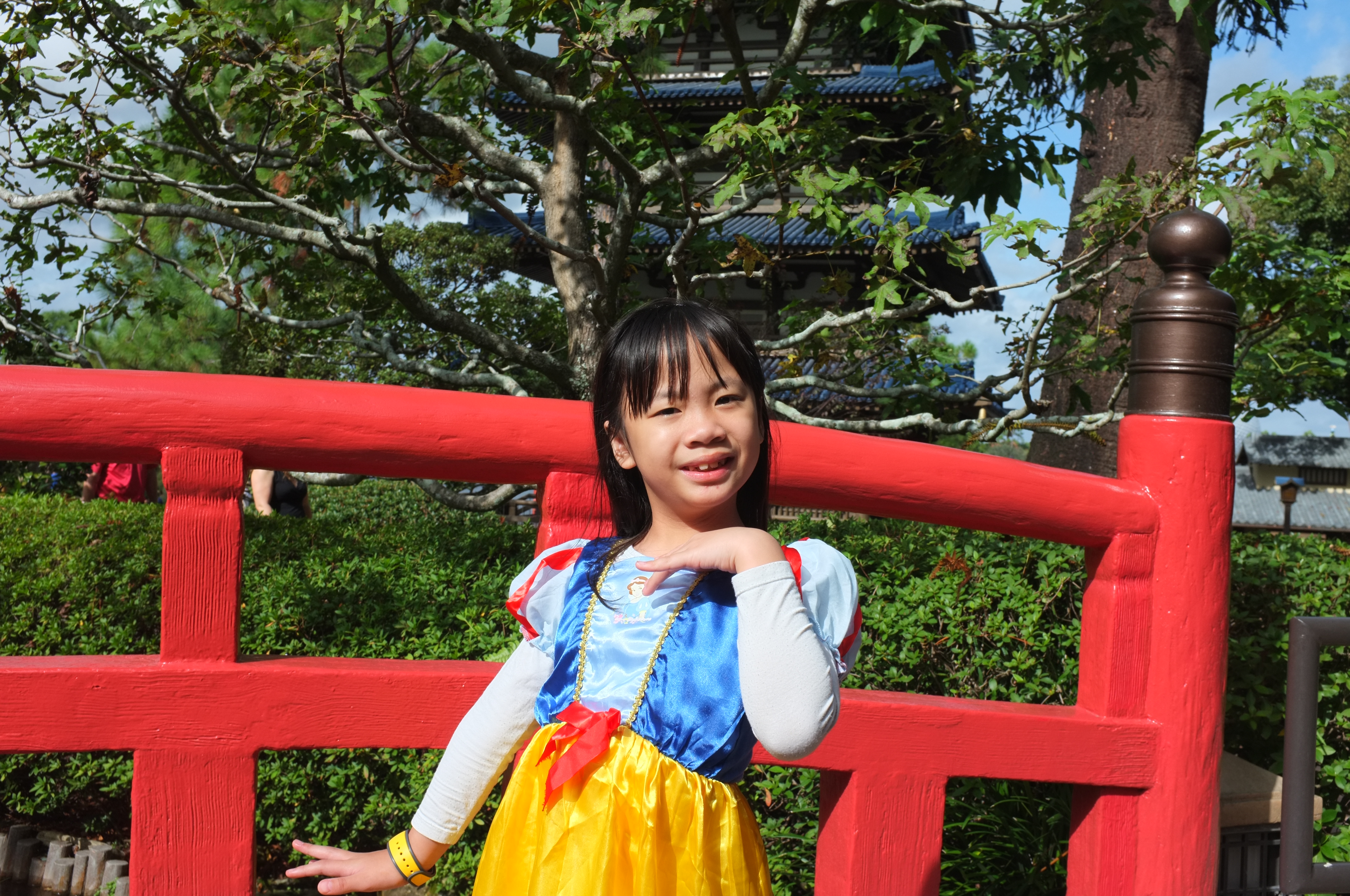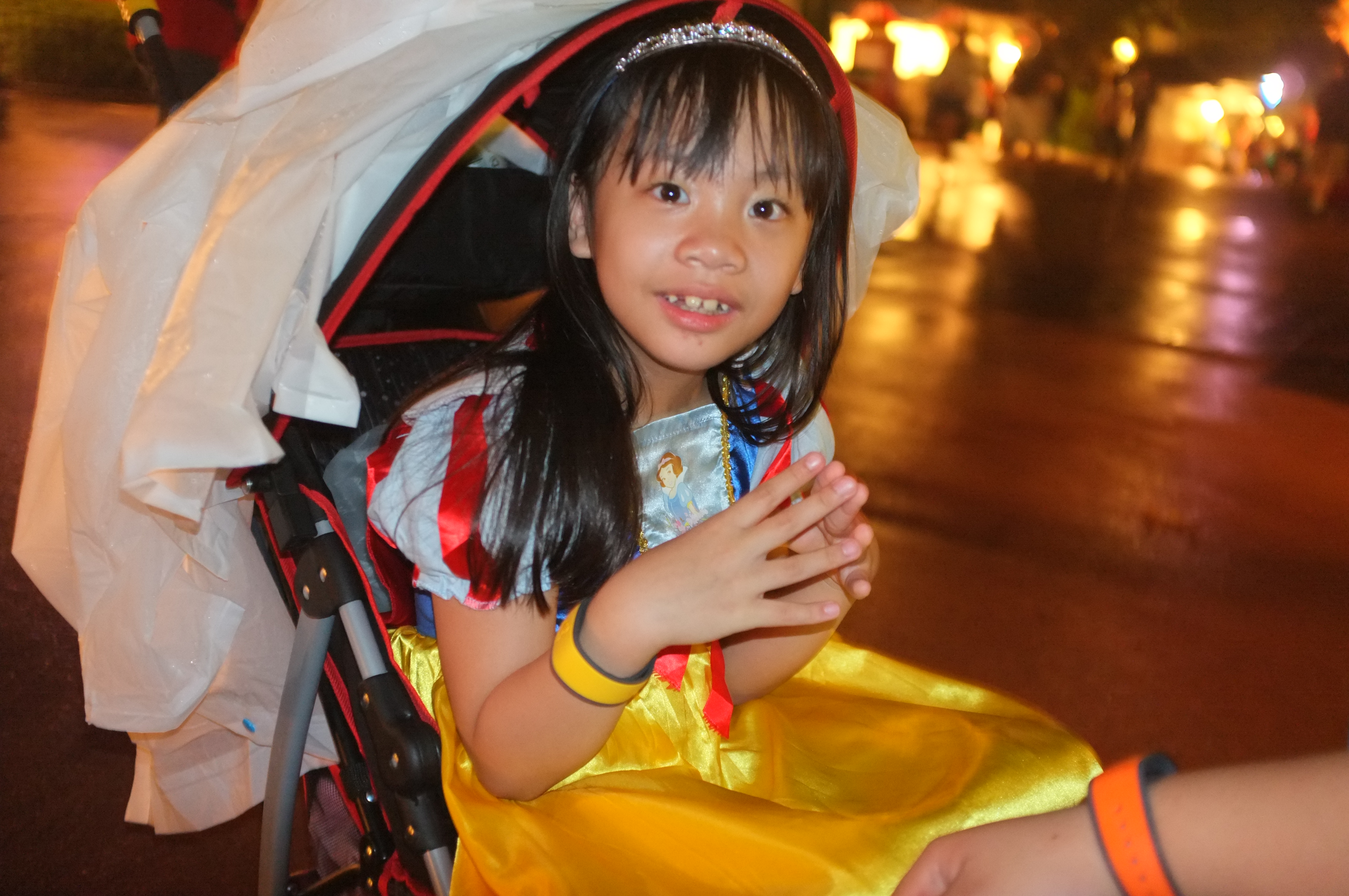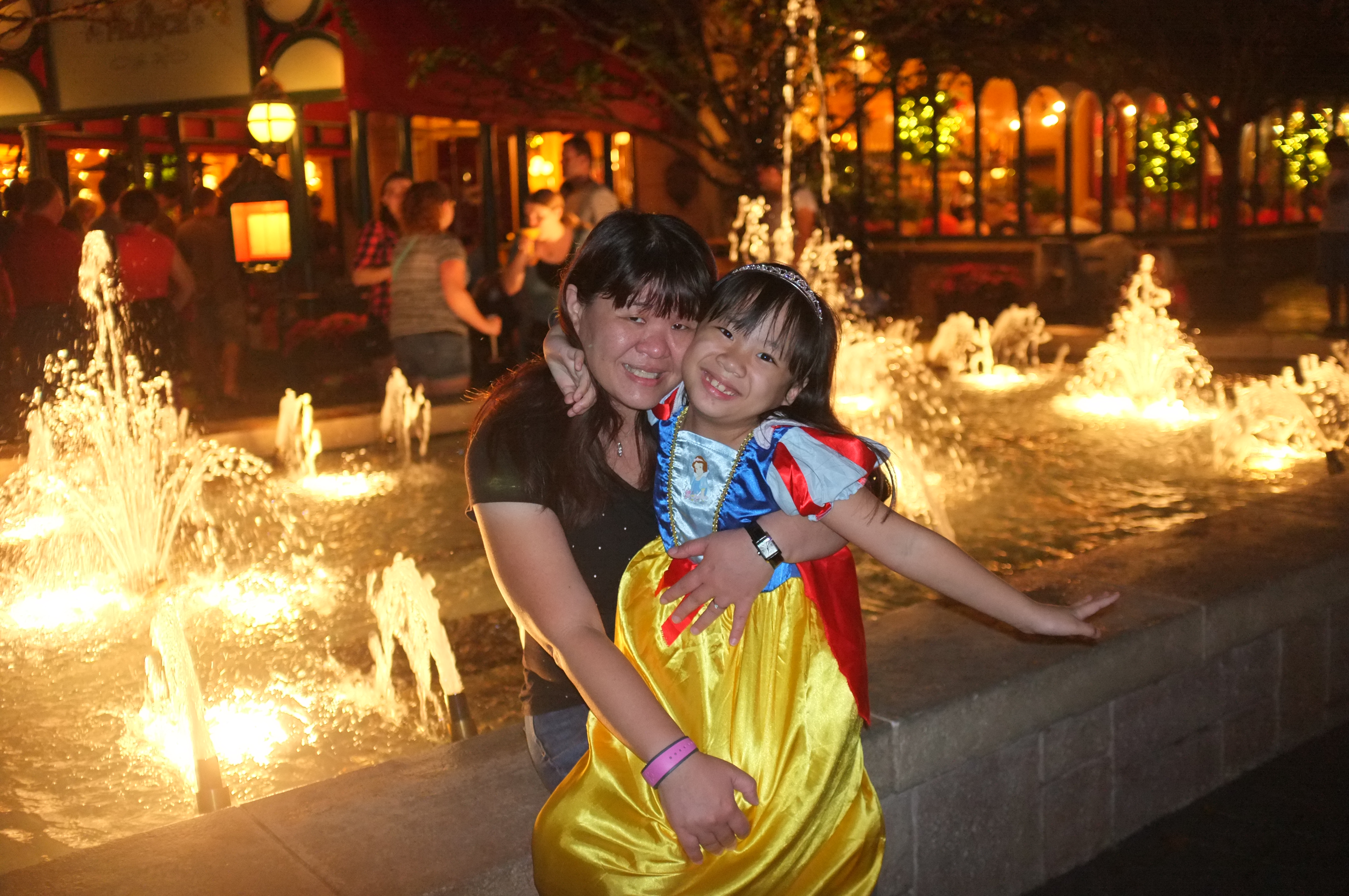 We walked towards Germany next for Meet and Greet with Snow White. We already have photos with Snow White but Ashley had wanted to do it again since she was dressed as Snow White, As we walked, it began to drizzle but made it to be the last in queue for the current session. Ashley made friends with some girls in the queue and played bubbles together, Unfortunately, it began to pour and Snow White left to ‘comfort Dopey’ who was extremely afraid of the rain according to the cast member. Ashley decided to stay put and remained the first in line for the Meet and Greet while all her friends left. Snow White eventually appeared and Ashley enjoyed chatting and dancing with her.