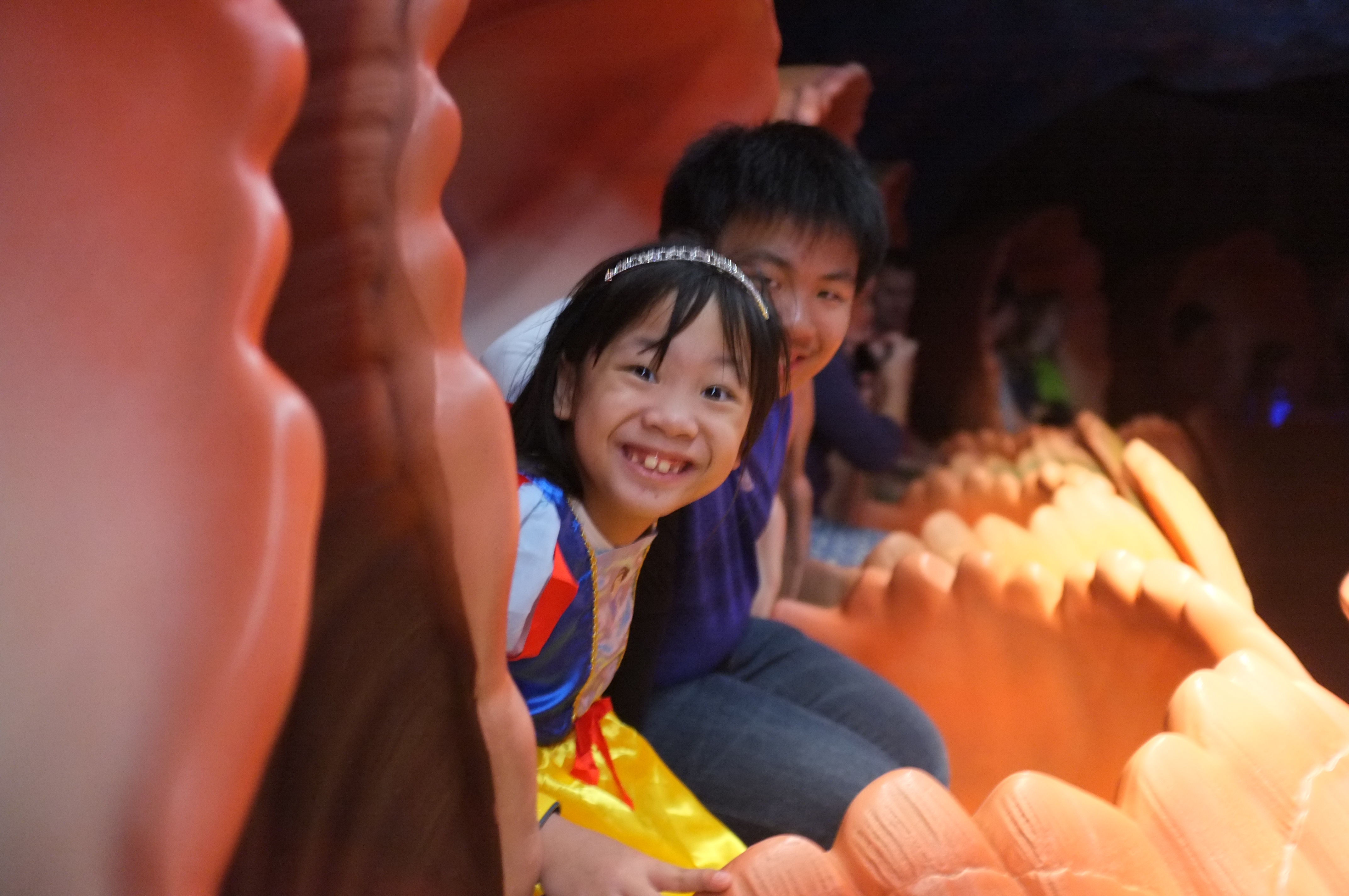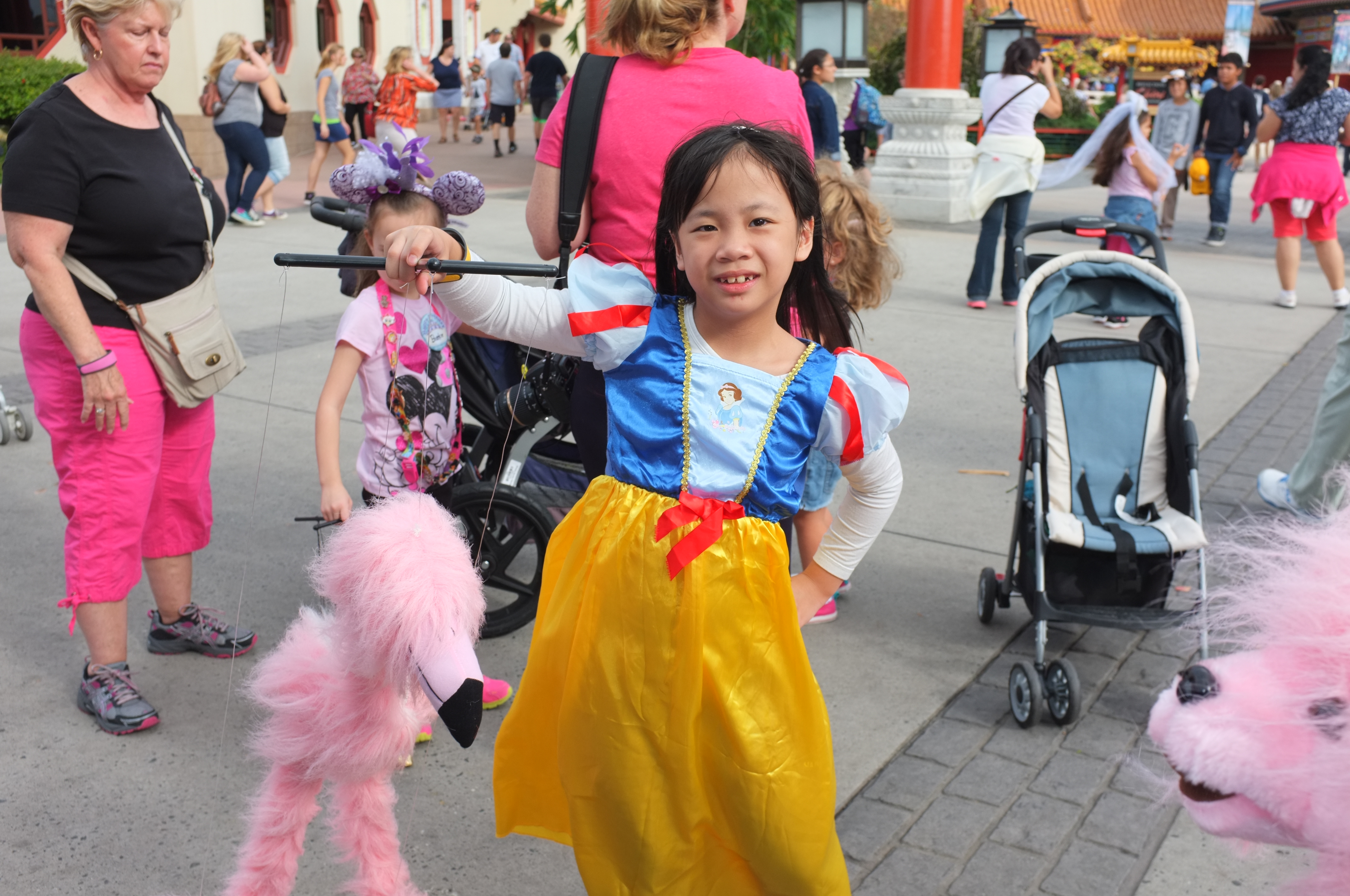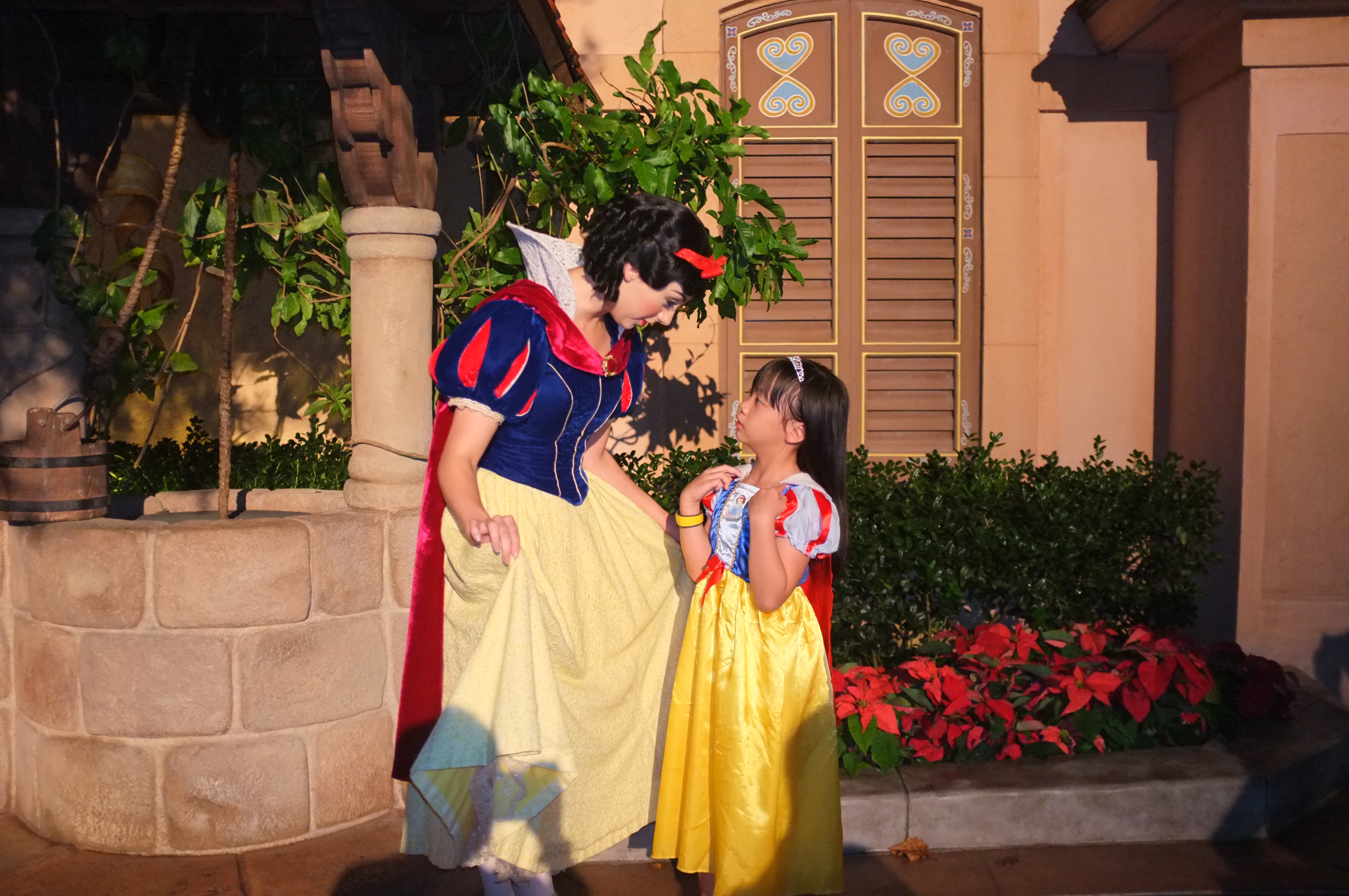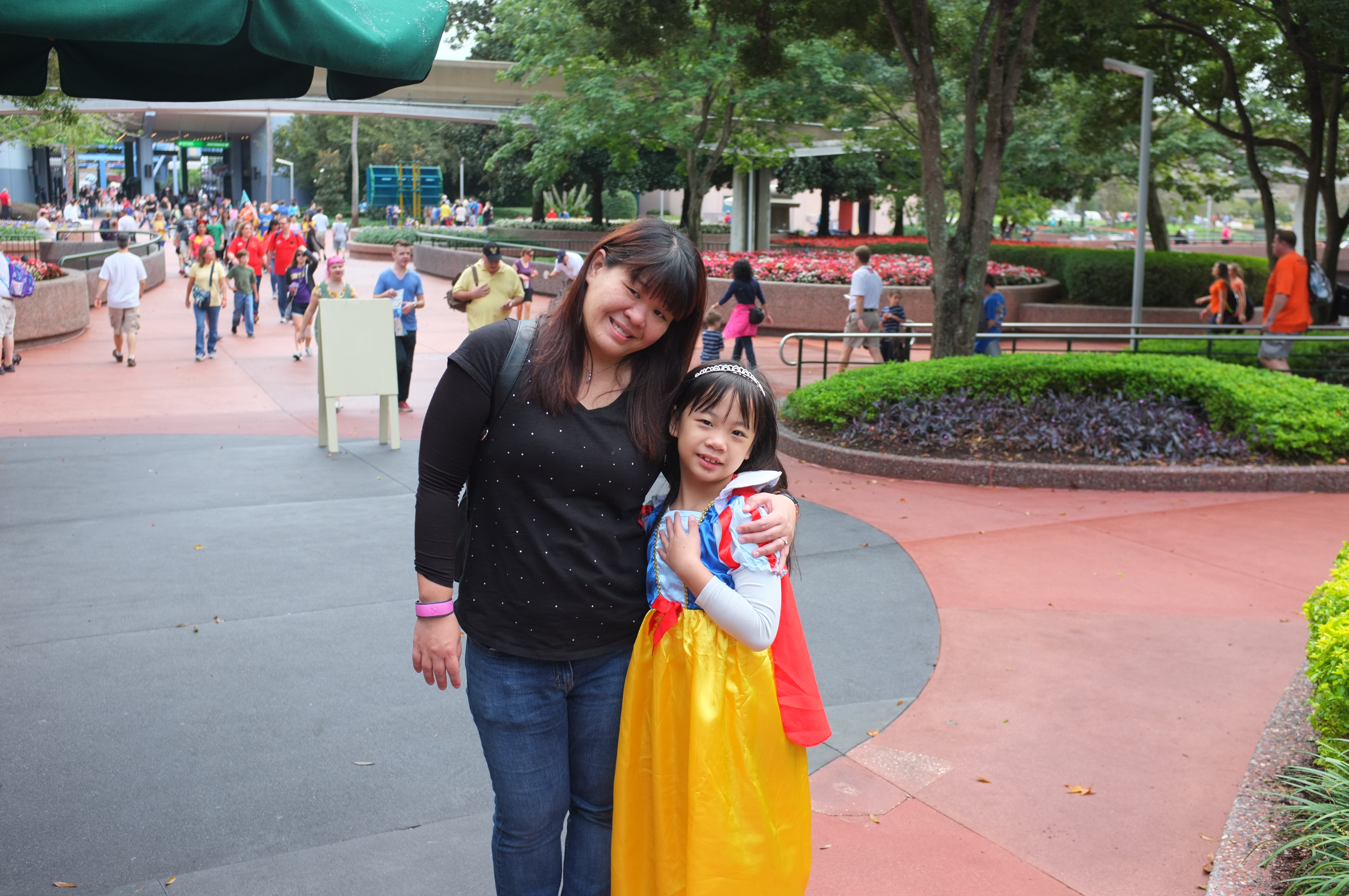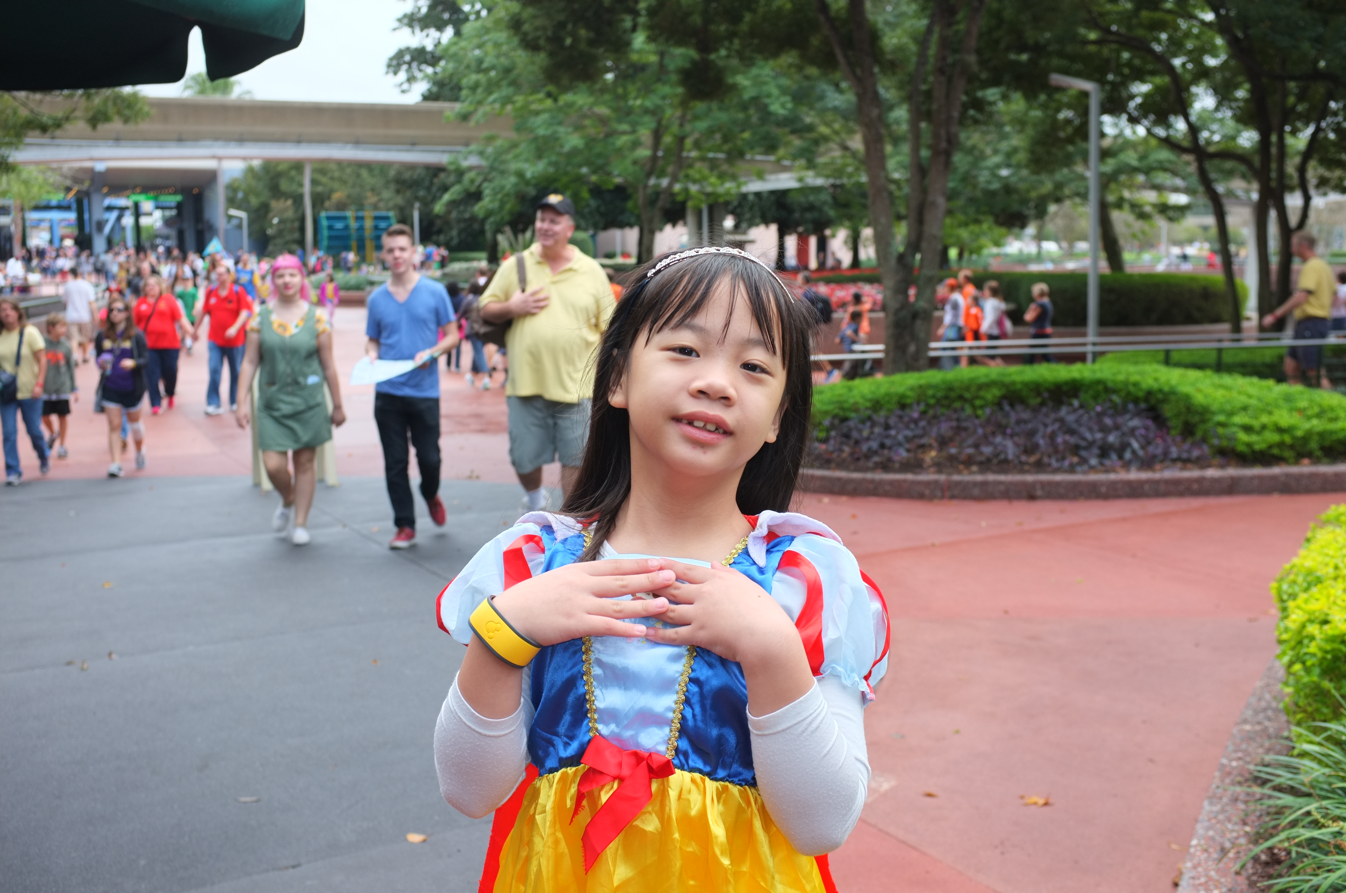 We walked towards Germany next for Meet and Greet with Snow White. We already have photos with Snow White but Ashley had wanted to do it again since she was dressed as Snow White, As we walked, it began to drizzle but made it to be the last in queue for the current session. Ashley made friends with some girls in the queue and played bubbles together, Unfortunately, it began to pour and Snow White left to ‘comfort Dopey’ who was extremely afraid of the rain according to the cast member. Ashley decided to stay put and remained the first in line for the Meet and Greet while all her friends left. Snow White eventually appeared and Ashley enjoyed chatting and dancing with her.