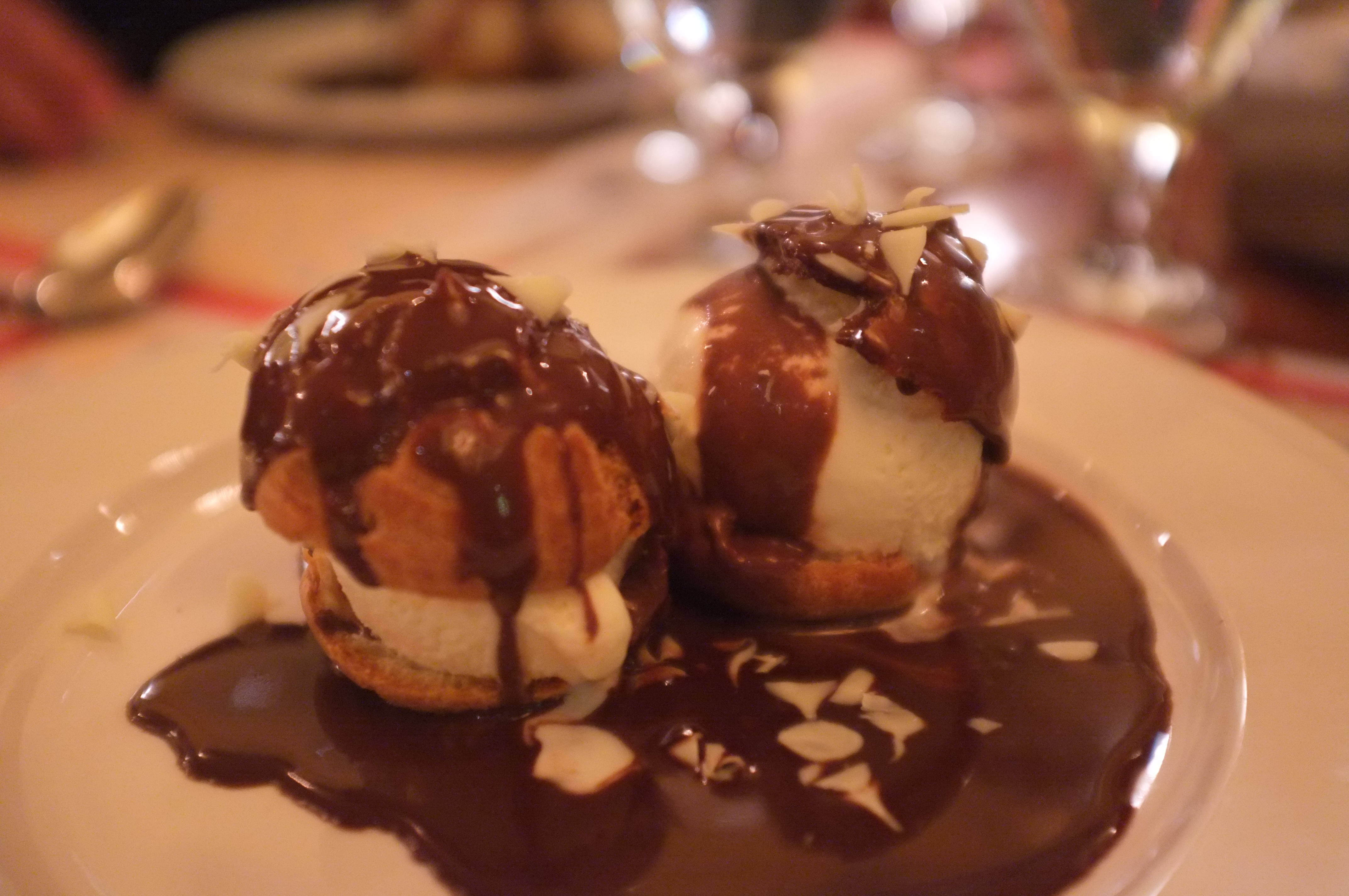 We had dinner reservation at Chefs de France and there were many people waiting to be seated. We were seated very soon though and we had a hard time understanding our server who is a French and spoke softly. Ashley ordered the Breaded Chicken Strip with Pasta, Jarod ordered the Grilled Tenderloin while ZA and I had the Duck Confit with Cherries. For desserts, Ashley had Vanilla Ice Cream, Jarod had the Chocolate Mousse and both ZA and I the Profiteroles au Chocolat. We enjoyed our dinner but Ashley got so tired and was almost falling asleep at the dining table.