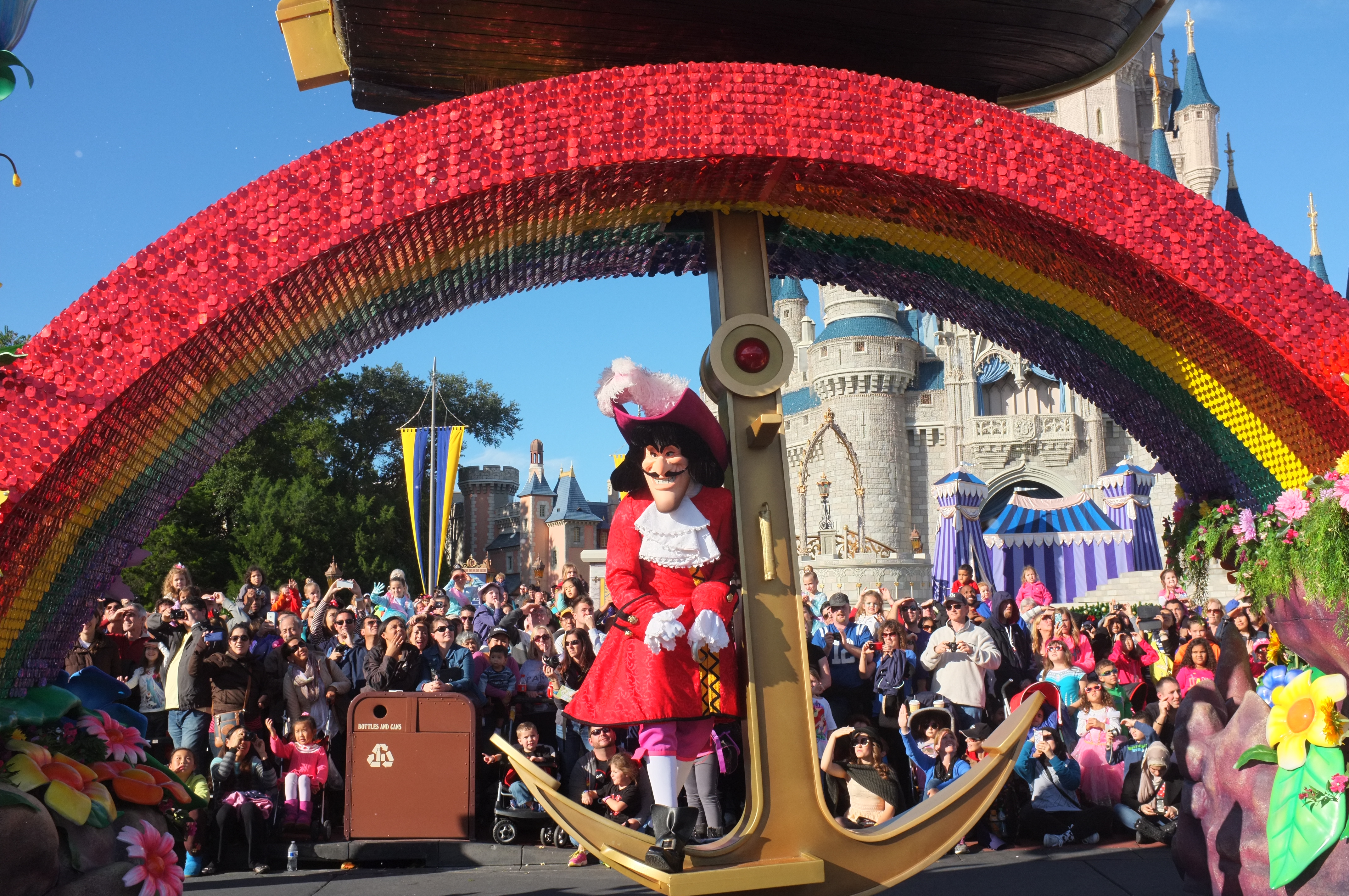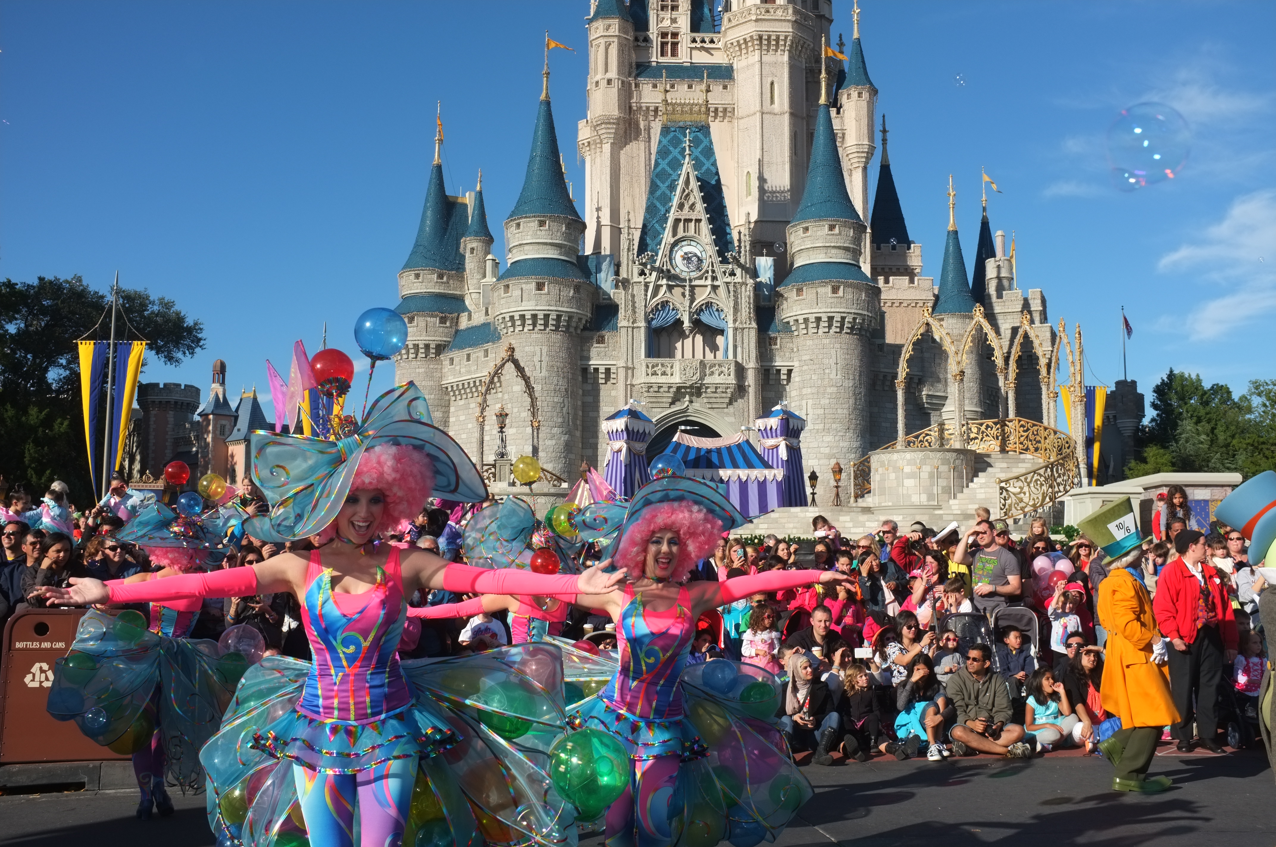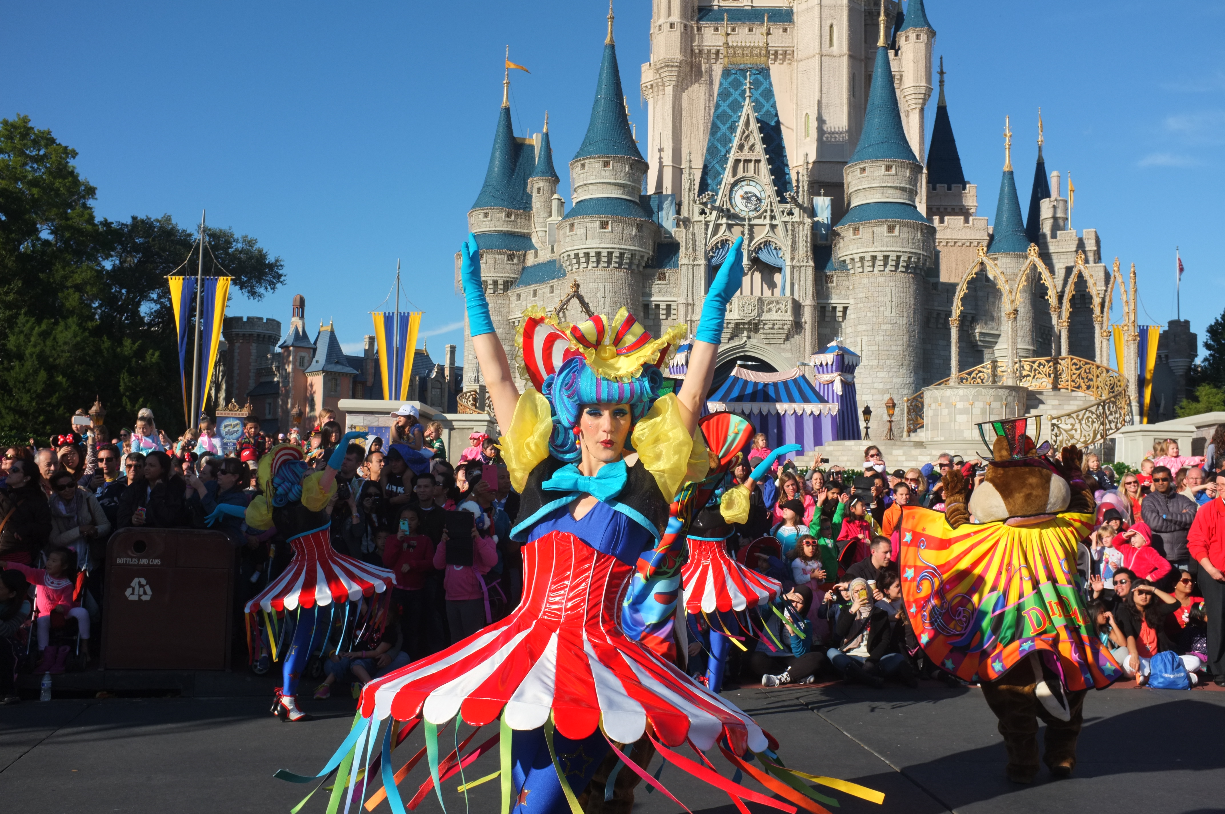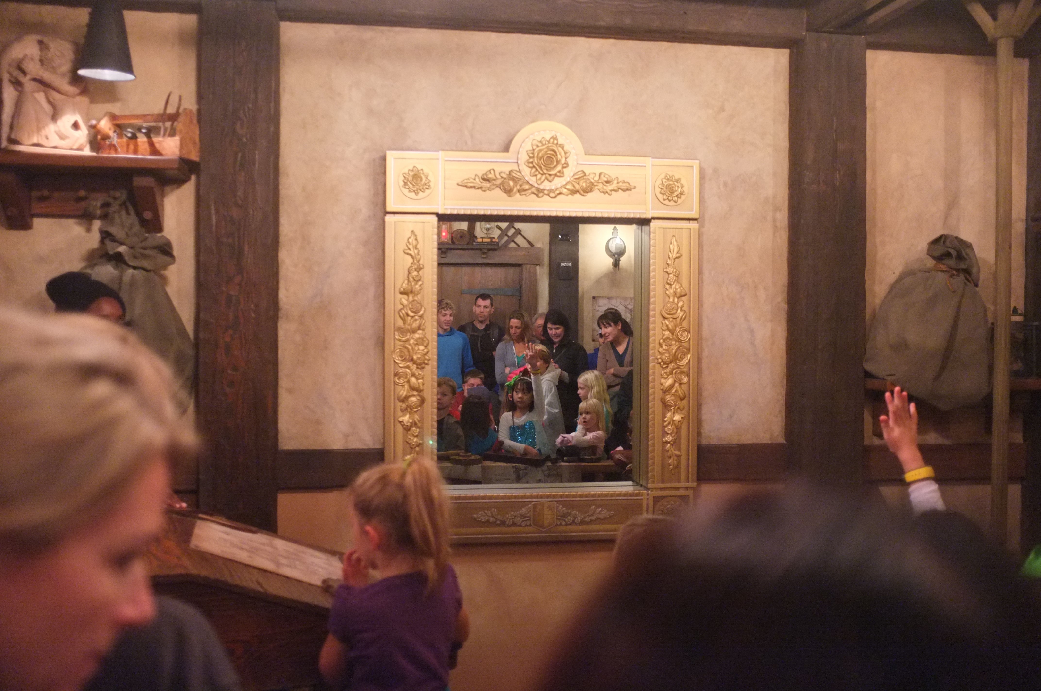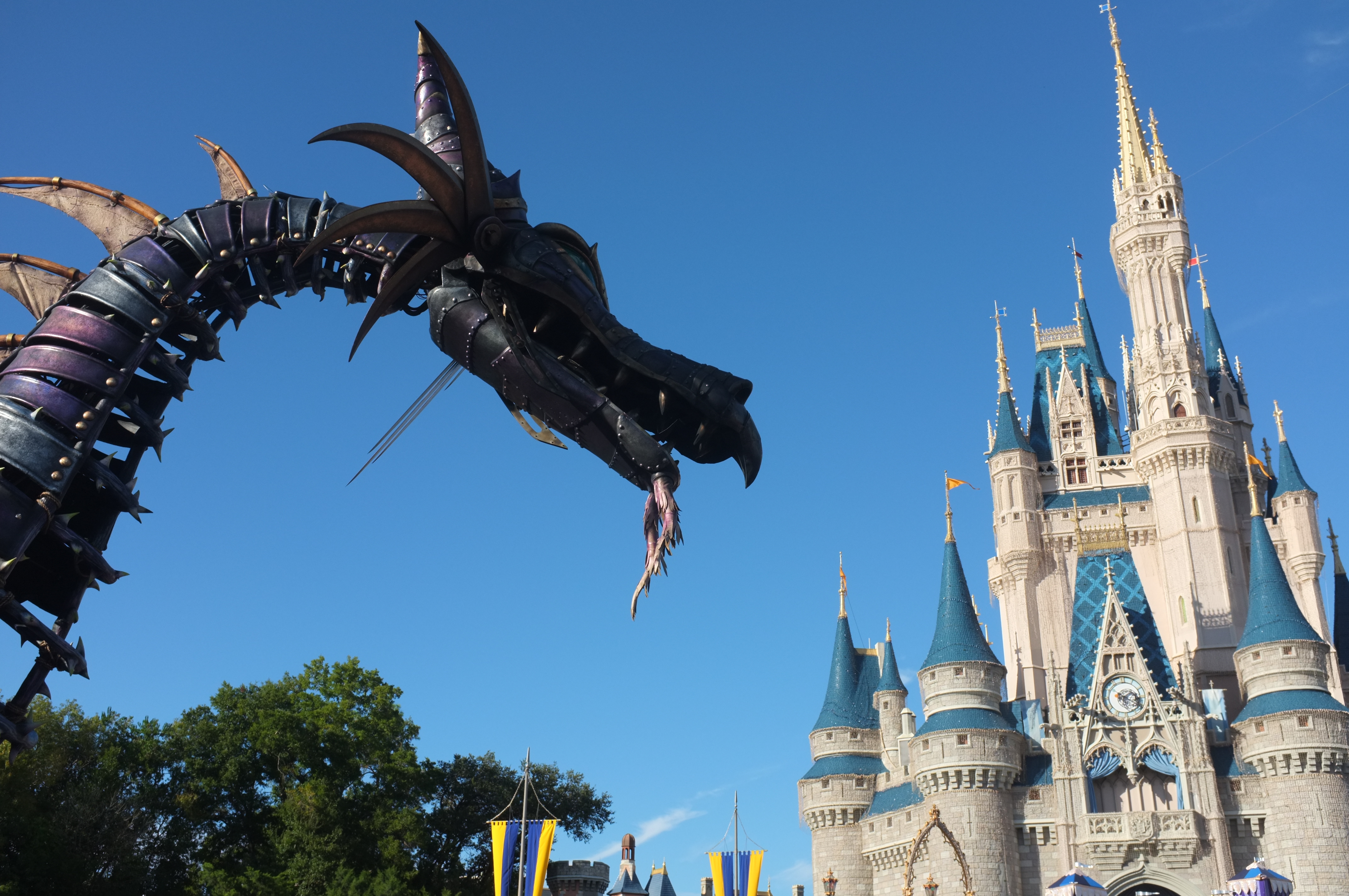 We bought a hot chocolate which comes in a souvenir mug to enjoy in this cool weather. New for 2014, this daytime parade brings vibrantly costumed characters and new music to a daily procession of innovative floats in Magic Kingdom. There are more that 100 live performers accompanying floats based on The Little Mermaid, Brave, Tangled, Peter Pan, Sleeping Beauty (along with a 26-foot-tall Maleficent in dragon form), princesses (including Anna and Elsa from Frozen), Mickey and Minnie on an airship, and more! The most impressive float was that of the fire-breathing dragon. Ashley also enjoyed a special moment when one of the dwarfs stopped and took her hand. It happened too quickly, we did not figure out which dwarf he was. She was elated.