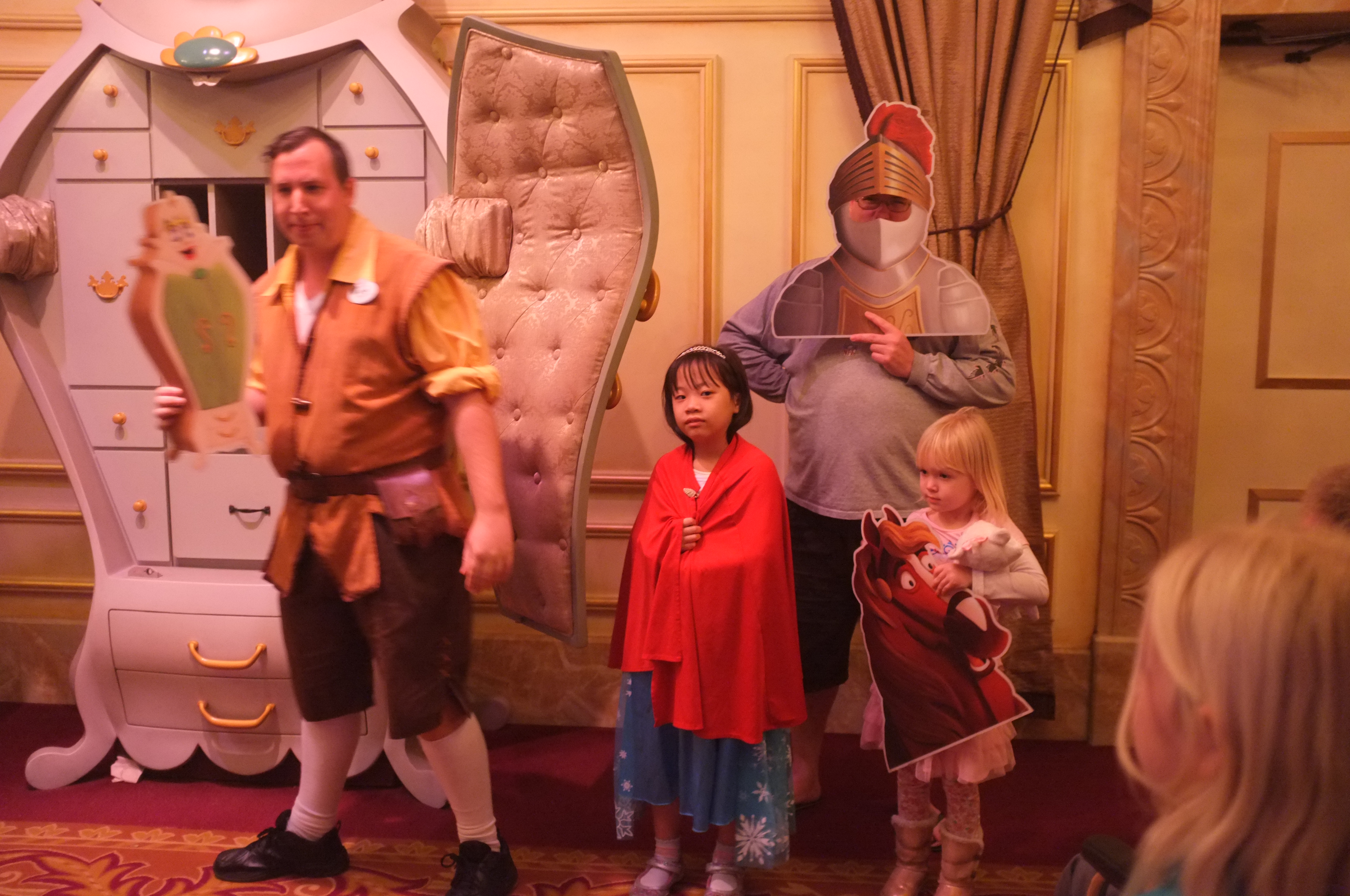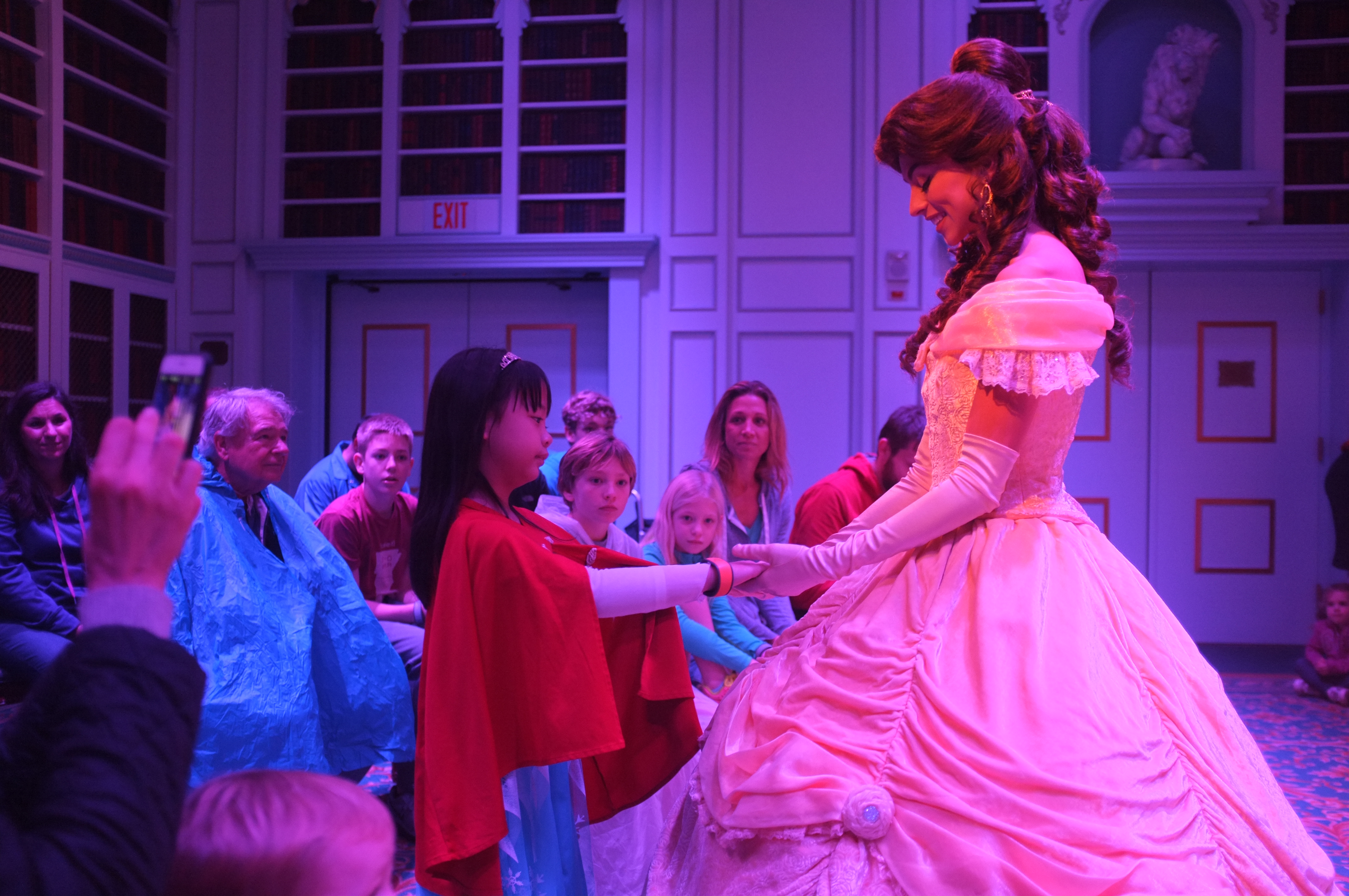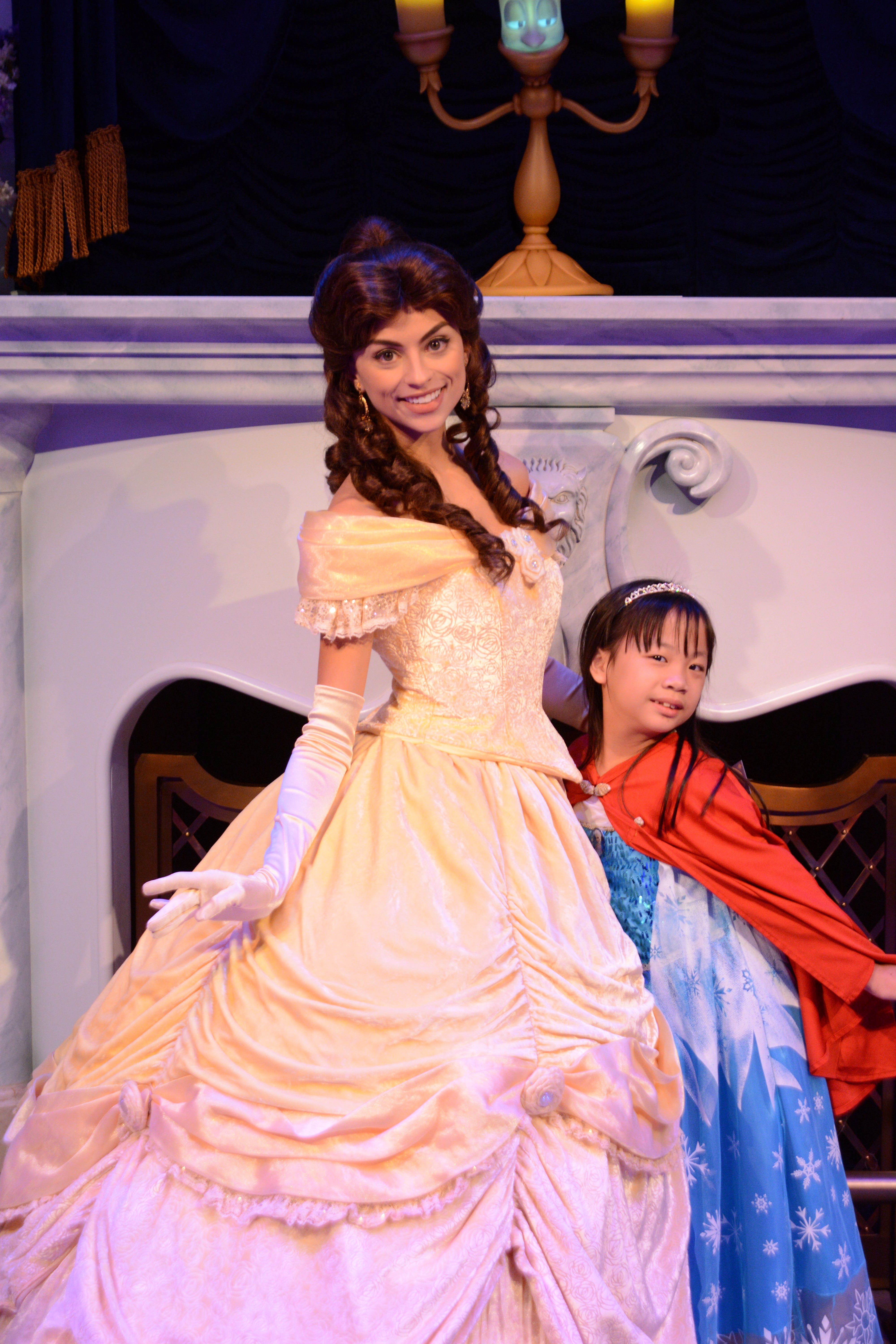 After lunch, the rain stopped. We went over to Fantasyland where we enjoyed an interactive story adventure featuring Belle and Lumiere. Guests were magically transported from Maurice’s cottage to the Beast’s library for a delightful storytelling experience and may even be invited to play a part in the story. Ashley had already in mind which role she wanted to land. When the cast member asked for a roar, she roared with all her might that even he was frightened. Yes, she was selected for the role of the Beast which she wanted, This is the best role where the ‘Beast’ got to dance with Belle, At the end of the story, Belle posed for a photo with her and presented her a special bookmark.