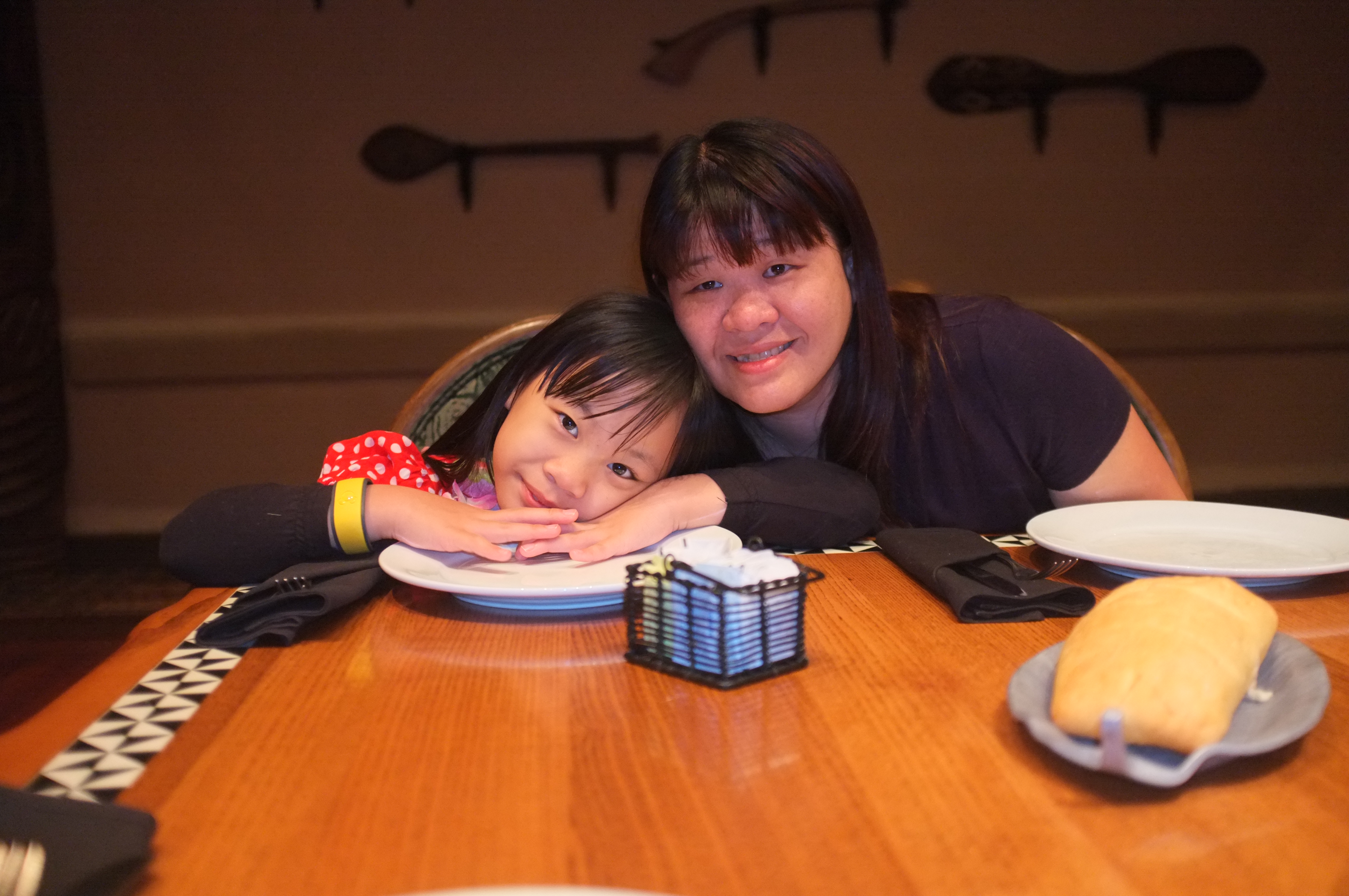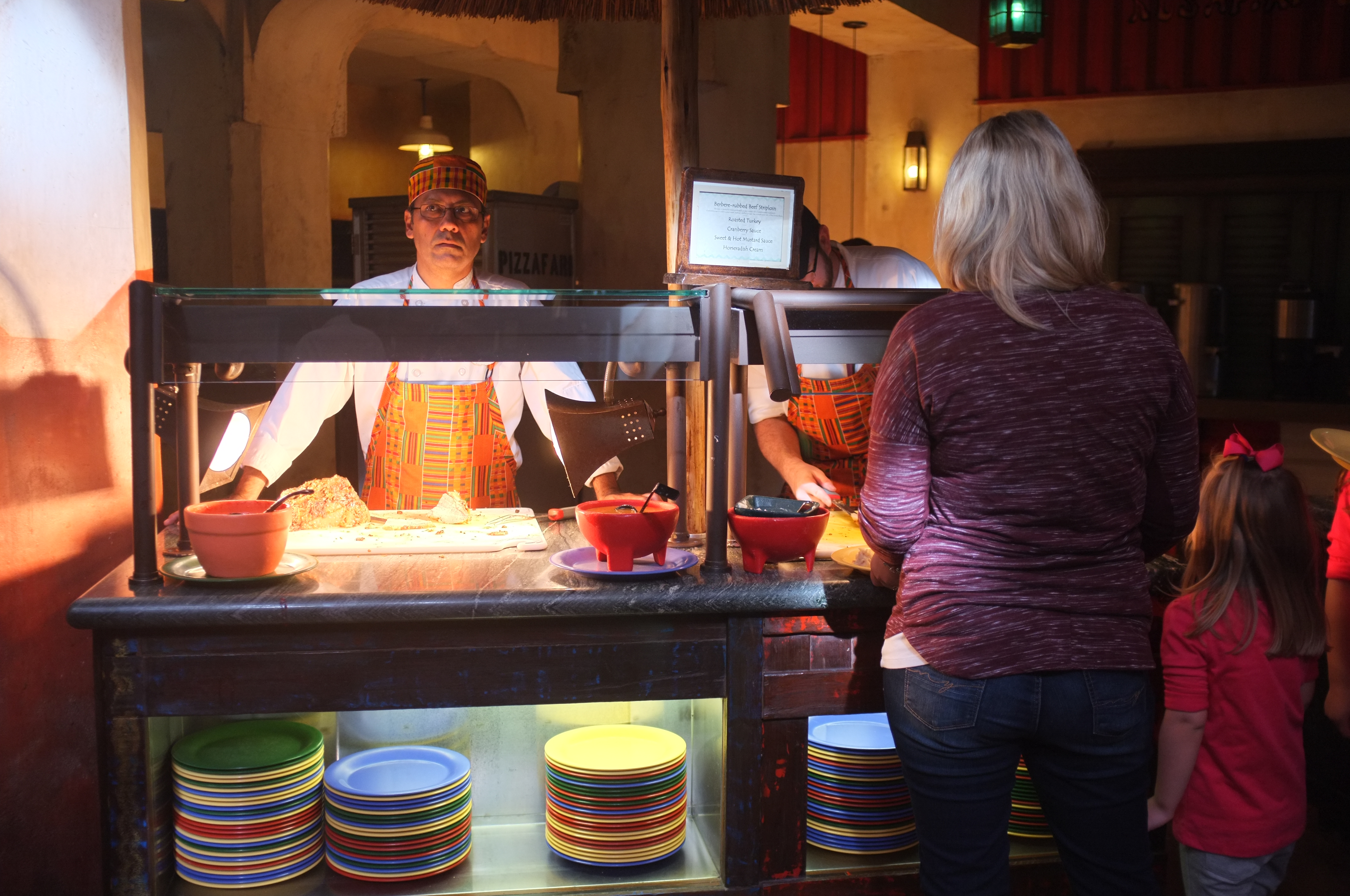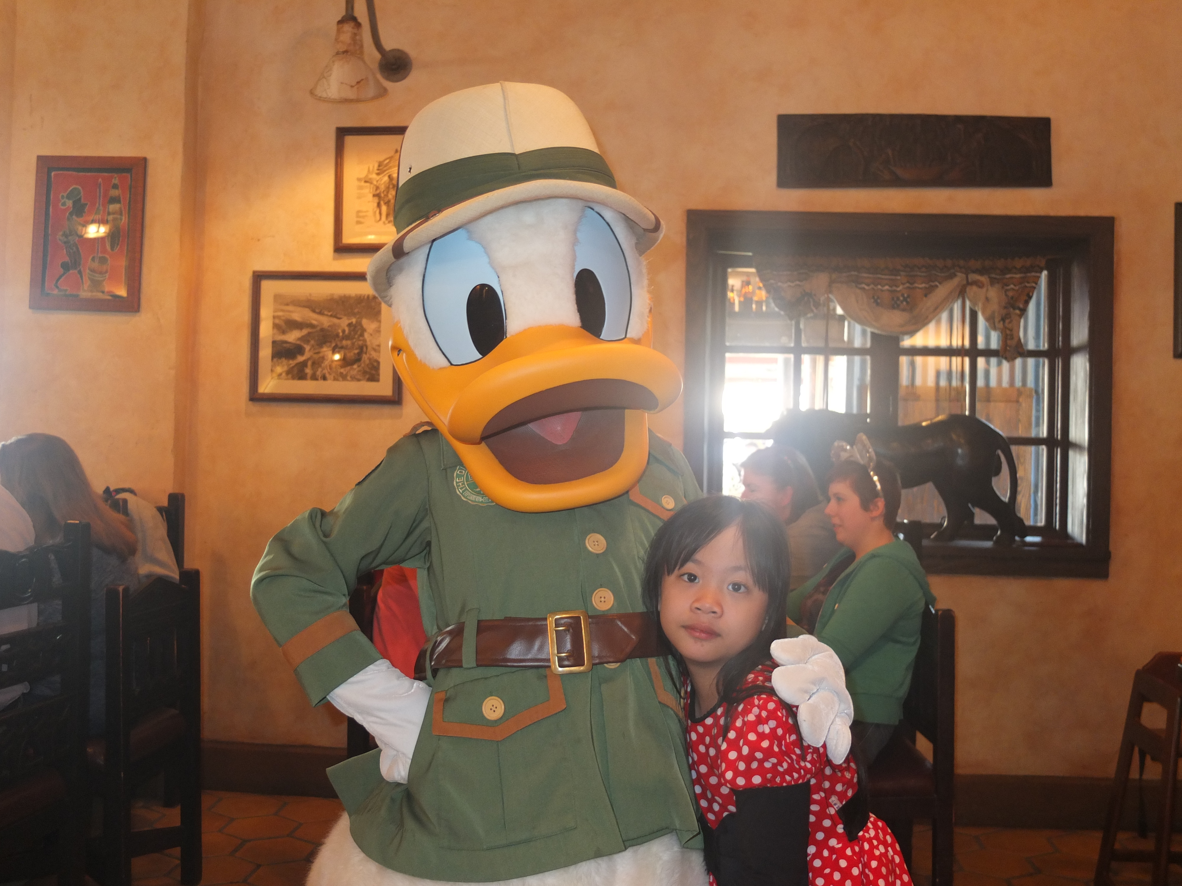 After the show, we rushed over to Tusker House for our Thanksgiving Lunch reservation as we were incredibly late. The wait time apparently had been longer than expected earlier. Tusker House is a character buffet with a mix of African cuisine and some standard American fare. The theming at Tusker House is top notch, with incredible attention to detail and a lot fun little touches. It actually looks like a weathered marketplace you might find in Africa. Mickey, Donald, Daisy and Goofy appeared for autographs and photos in their fun safari gear. The food that stood out here are the Seafood Stew and the Cape Malay Curried Chicken which we ate with the Basmati Rice. As with every Disney buffet, there’s a section that’s set up just for kids. Ashley loaded her plate with Mac and Cheese and Corndog Nuggets. We mainly skipped dessert as we were saving up for our dinner which was one of the highlights in our trip last year. All in all, it was an enjoyable experience although we rushed a little in order to squeeze in everything we wanted to do at Animal Kingdom.