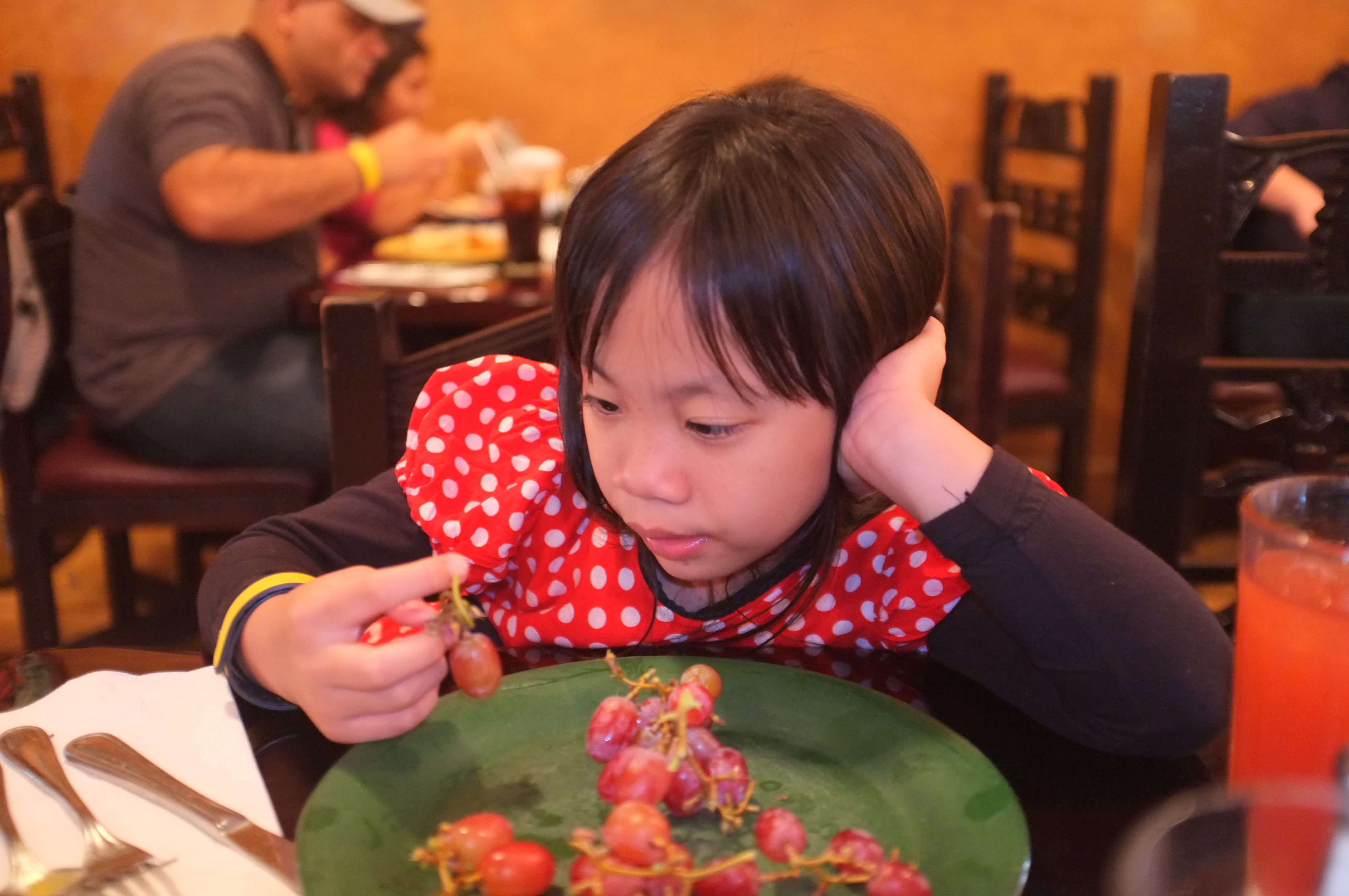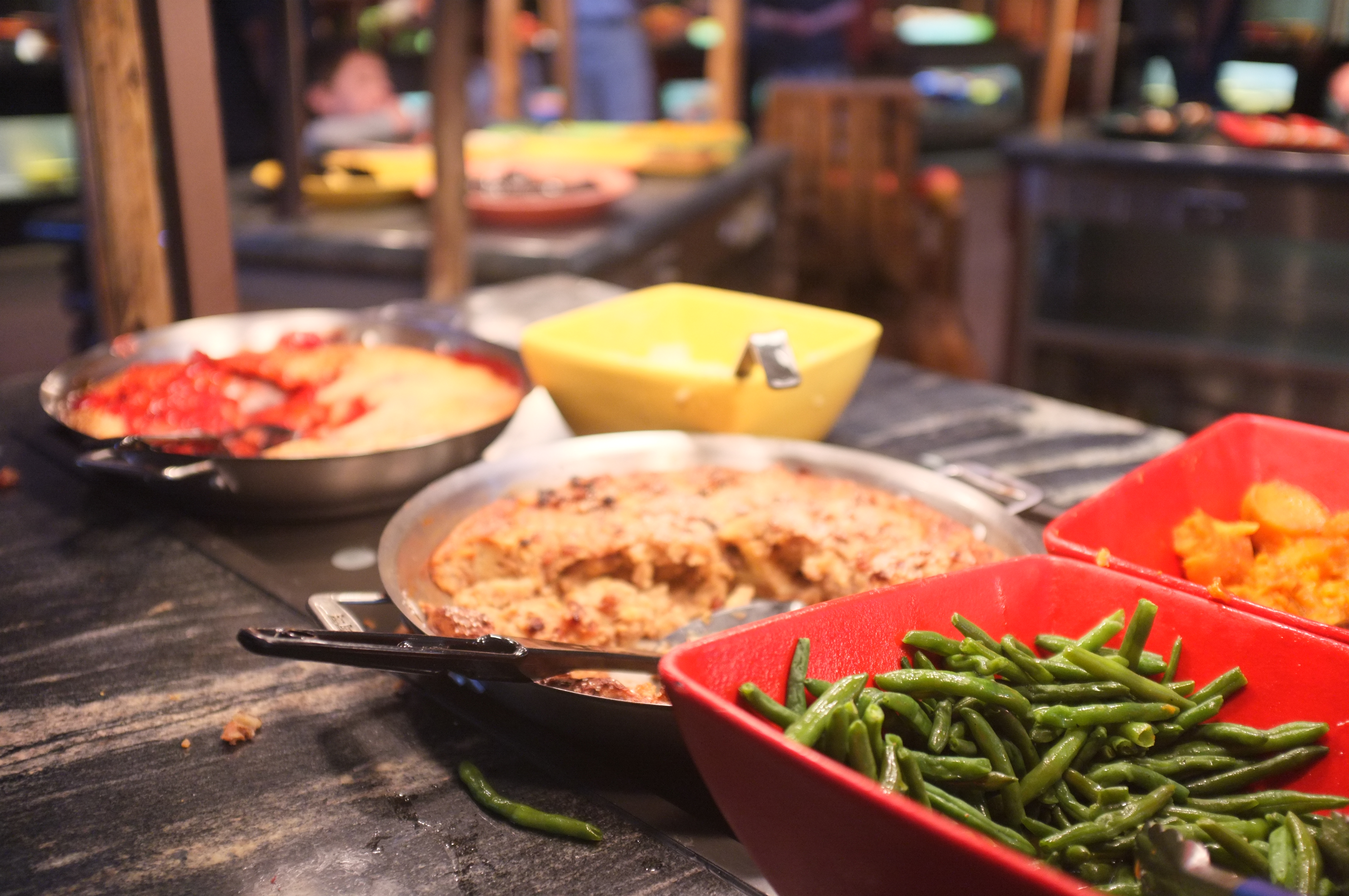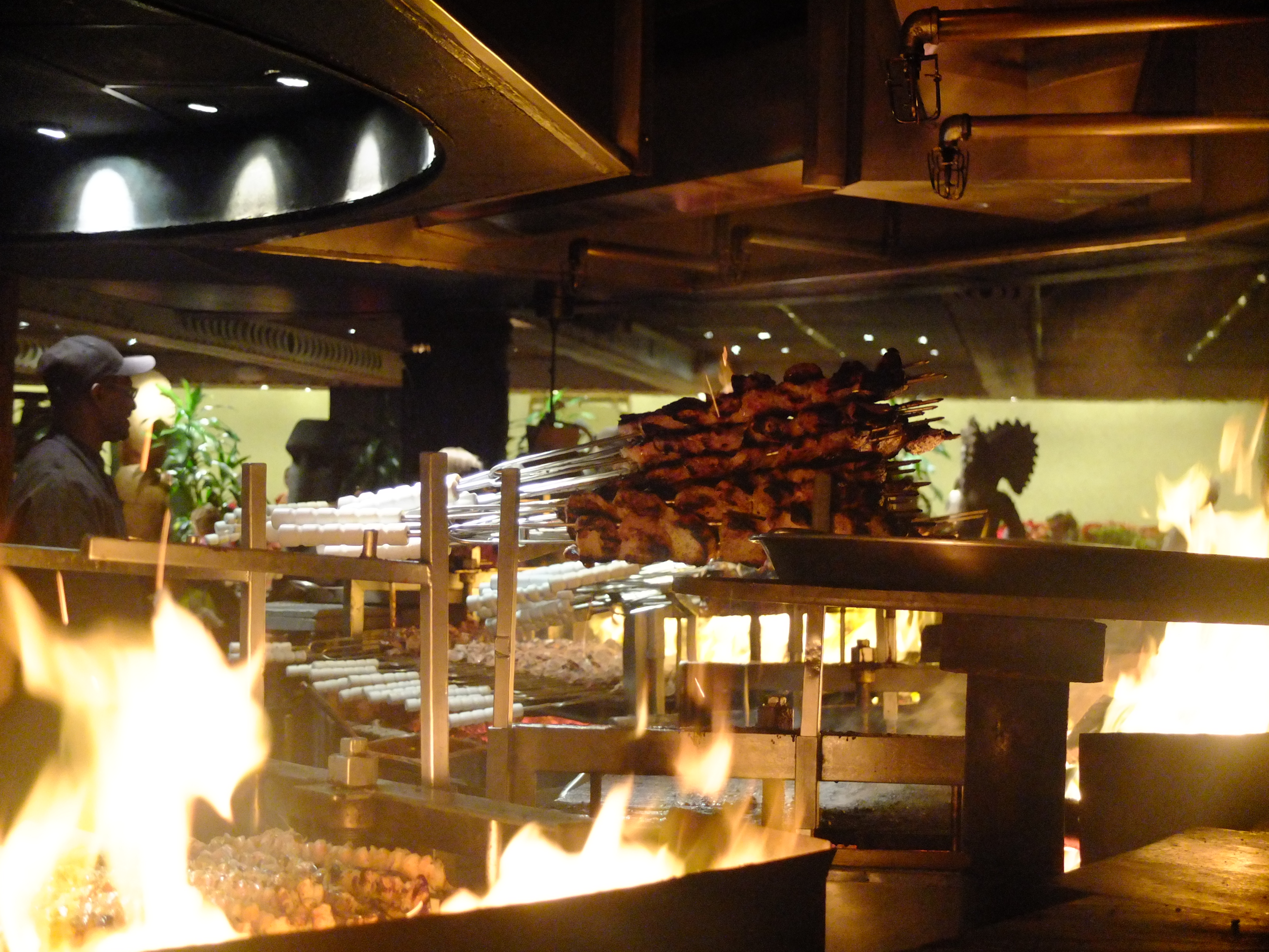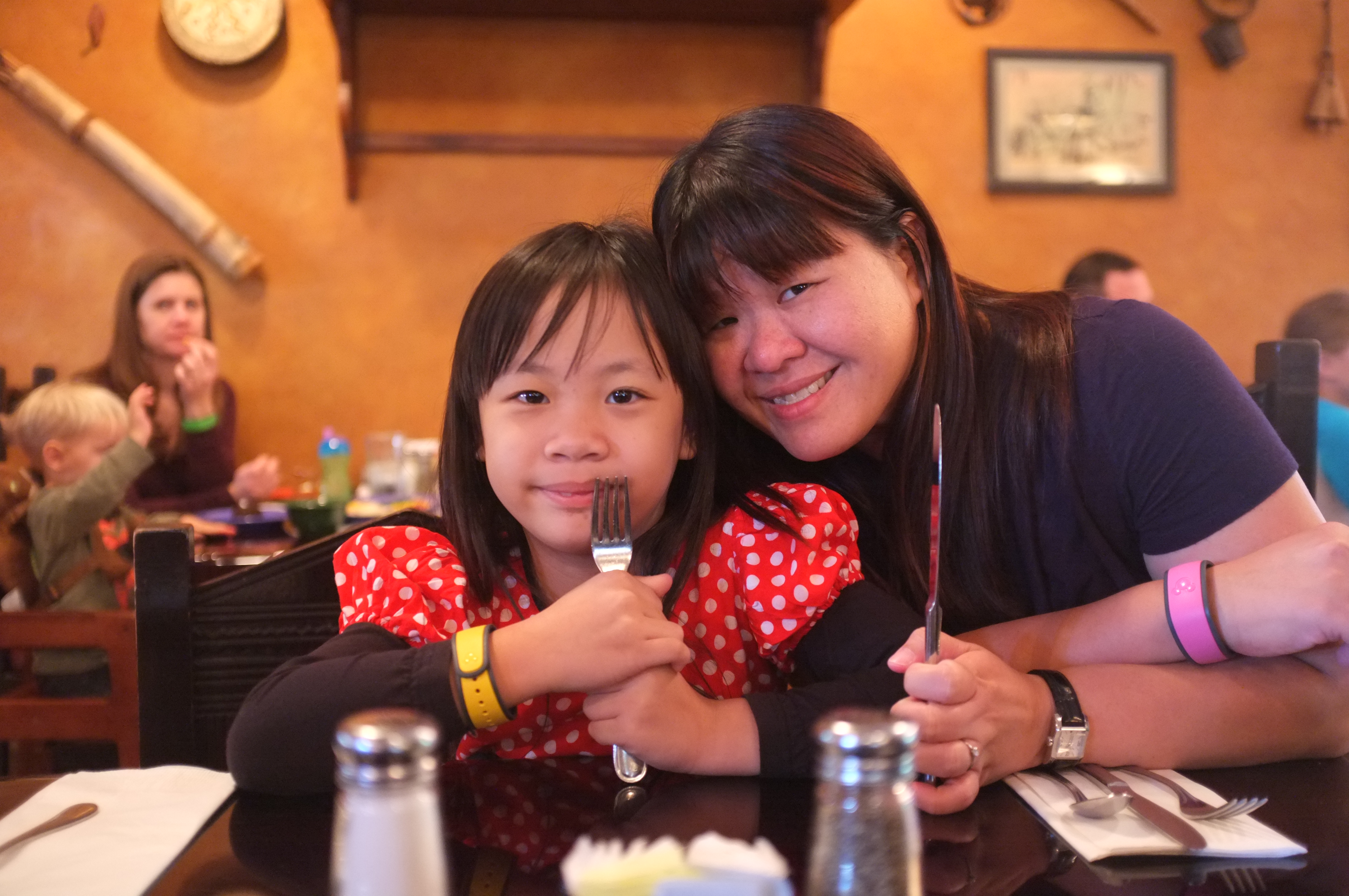 After the show, we rushed over to Tusker House for our Thanksgiving Lunch reservation as we were incredibly late. The wait time apparently had been longer than expected earlier. Tusker House is a character buffet with a mix of African cuisine and some standard American fare. The theming at Tusker House is top notch, with incredible attention to detail and a lot fun little touches. It actually looks like a weathered marketplace you might find in Africa. Mickey, Donald, Daisy and Goofy appeared for autographs and photos in their fun safari gear. The food that stood out here are the Seafood Stew and the Cape Malay Curried Chicken which we ate with the Basmati Rice. As with every Disney buffet, there’s a section that’s set up just for kids. Ashley loaded her plate with Mac and Cheese and Corndog Nuggets. We mainly skipped dessert as we were saving up for our dinner which was one of the highlights in our trip last year. All in all, it was an enjoyable experience although we rushed a little in order to squeeze in everything we wanted to do at Animal Kingdom.