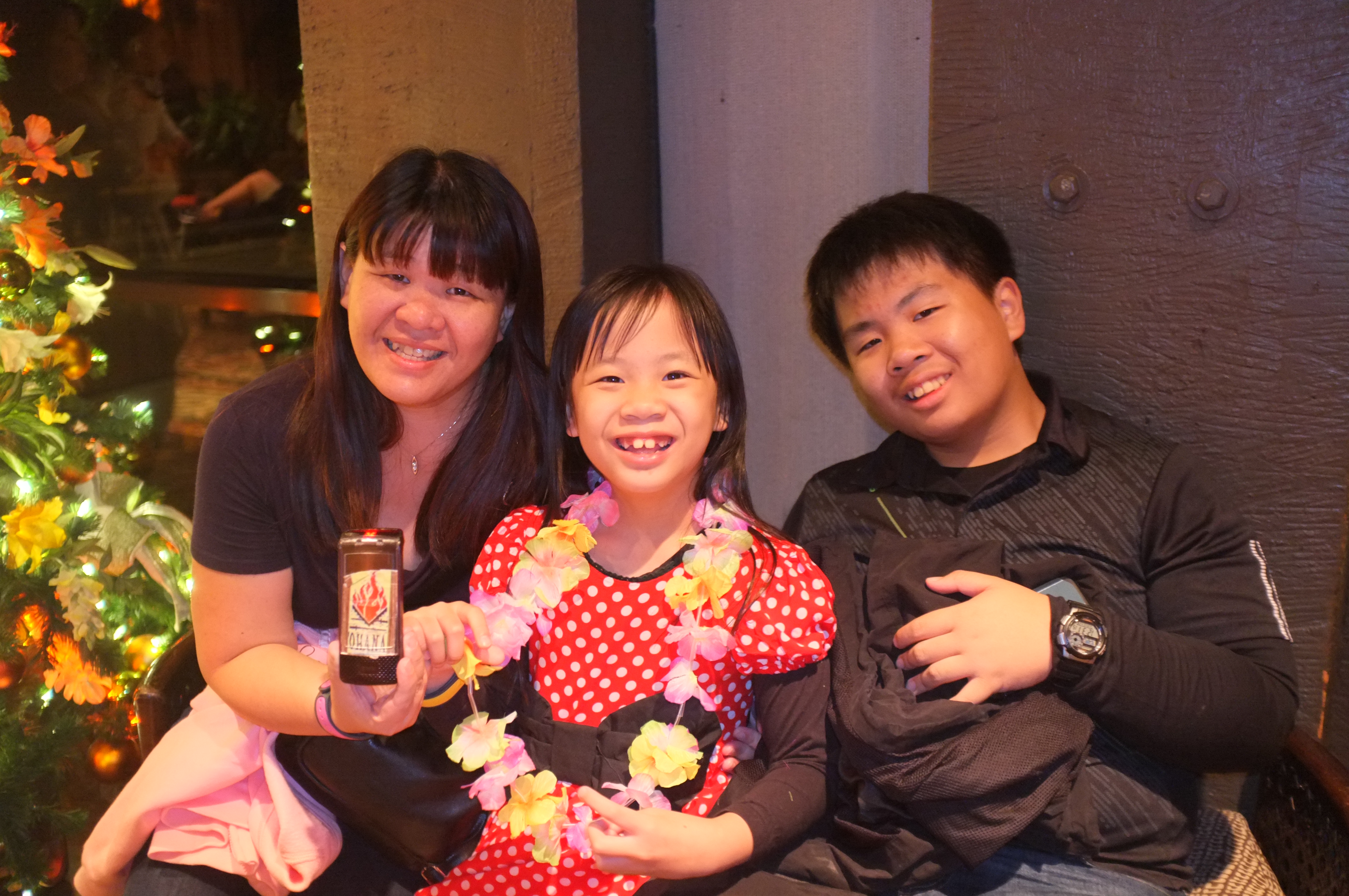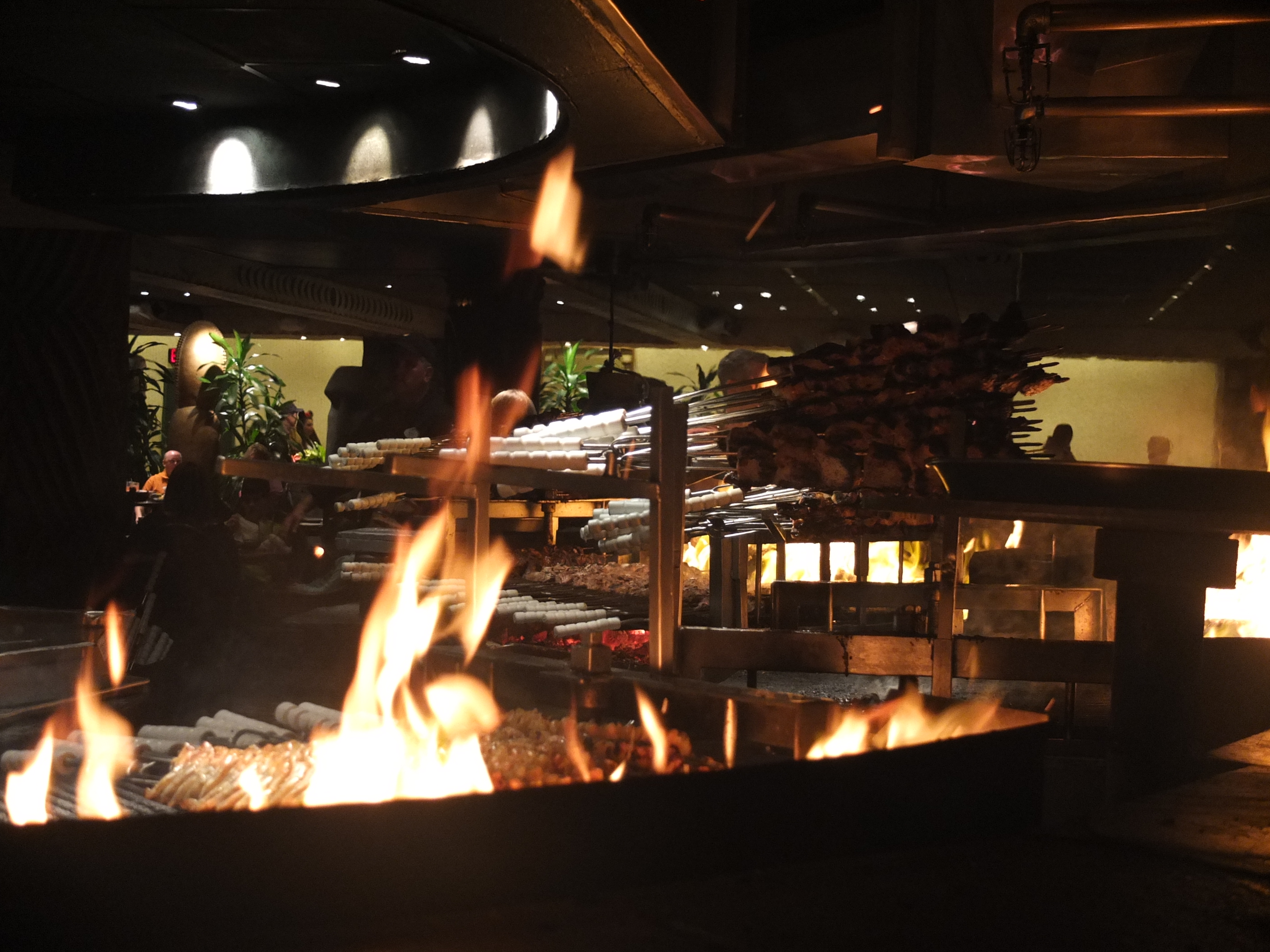 Our last event lined up for today was the highly anticipated dinner at ‘Ohana at Disney’s Polynesian Resort. We were late for our reservation and upon arrival, there was a large crowd waiting. i feared for a long wait but to our surprise, we were whisked to our table shortly. The word ‘Ohana, meaning family proved to be more than simply the name of the restaurant. Everything – from the unending salads and appetizers to the main course and dessert – would be served family style. Even the servers are considered honorary ‘cousins’. After taking our drinks order, we were served a Welcome Bread and a bowl of salad. Next came the honey-coriander chicken wings, dumplings and noodles with vegetables. These wings were incredibly tasty and remained the best wins I have ever tasted. Our table afforded an excellent view of the grilling area, where skewers upon skewers of meat and shrimp served a reminder that the best was yet to come. Soon, our servers arrived with the skewers and piled our plates high with meats and shrimps. While the Sirloin Steak was good, our favourite was the Peel and Eat Shrimp. Saving the best for last, ‘Ohana’s famous dessert Bread Pudding a la mode with accompanying banana-caramel sauce arrived. The bread pudding was rich and moist and was the perfect end to the perfect meal.