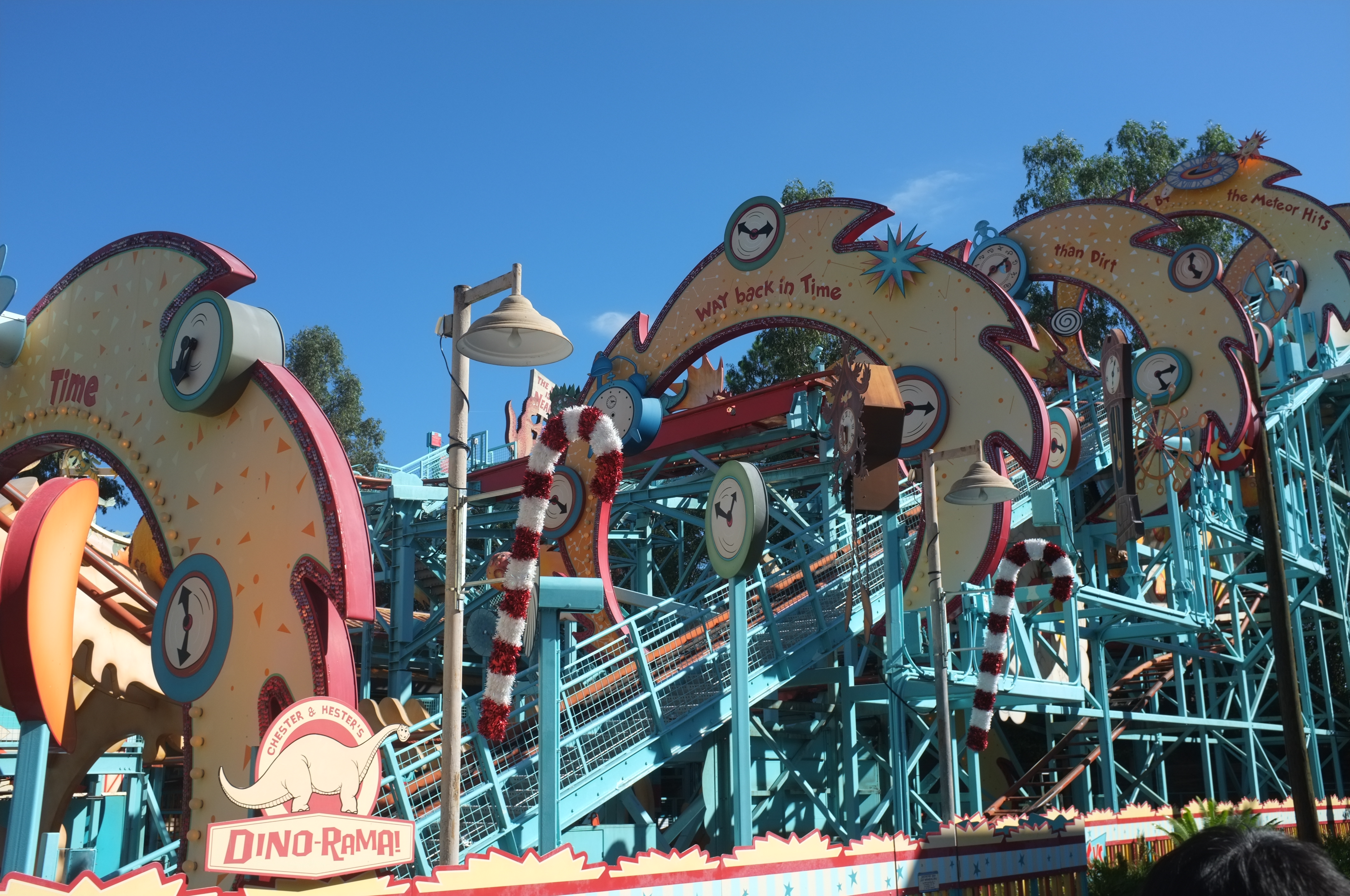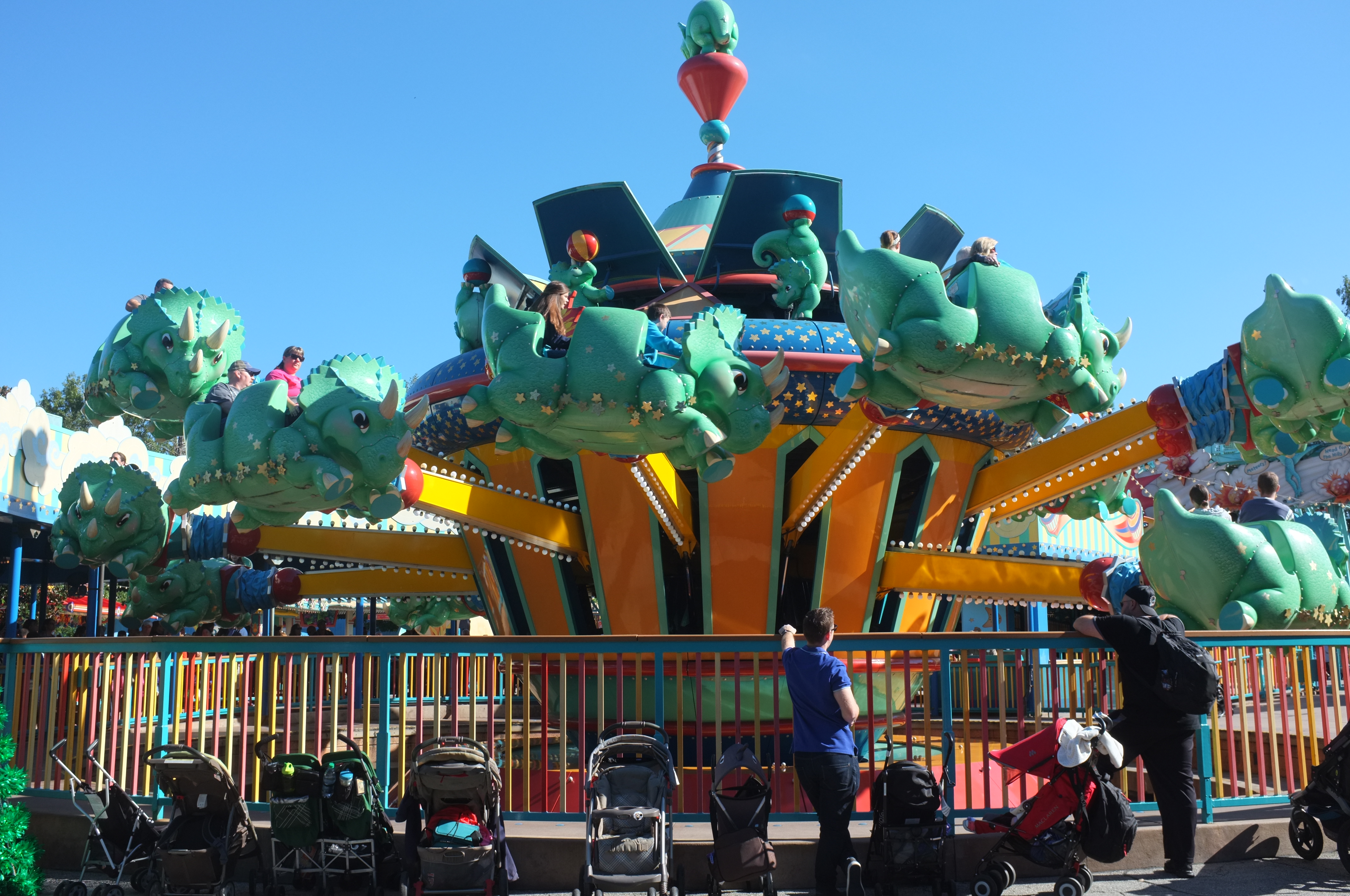 We lined up next 2 FP+ – rides which we did not attempt during our trip last year. The first being Primeval Whirl which Ashley had wanted so badly to ride but did not meet the height requirement of 48″ then. She was so excited to be able to do this! We measured her height before we left and she was almost 48″. However, to our surprise, she seemed 2″ taller than that now. We took a trip aboard a spinning rollercoaster in this dinosaur-themed carnival-style attraction. We were swept through a series of sudden dips and hairpin turns as our time machine unpredictably spinned on its own path. I would describe this as a rollercoaster, viking and teacup ride all in one. We had fun.