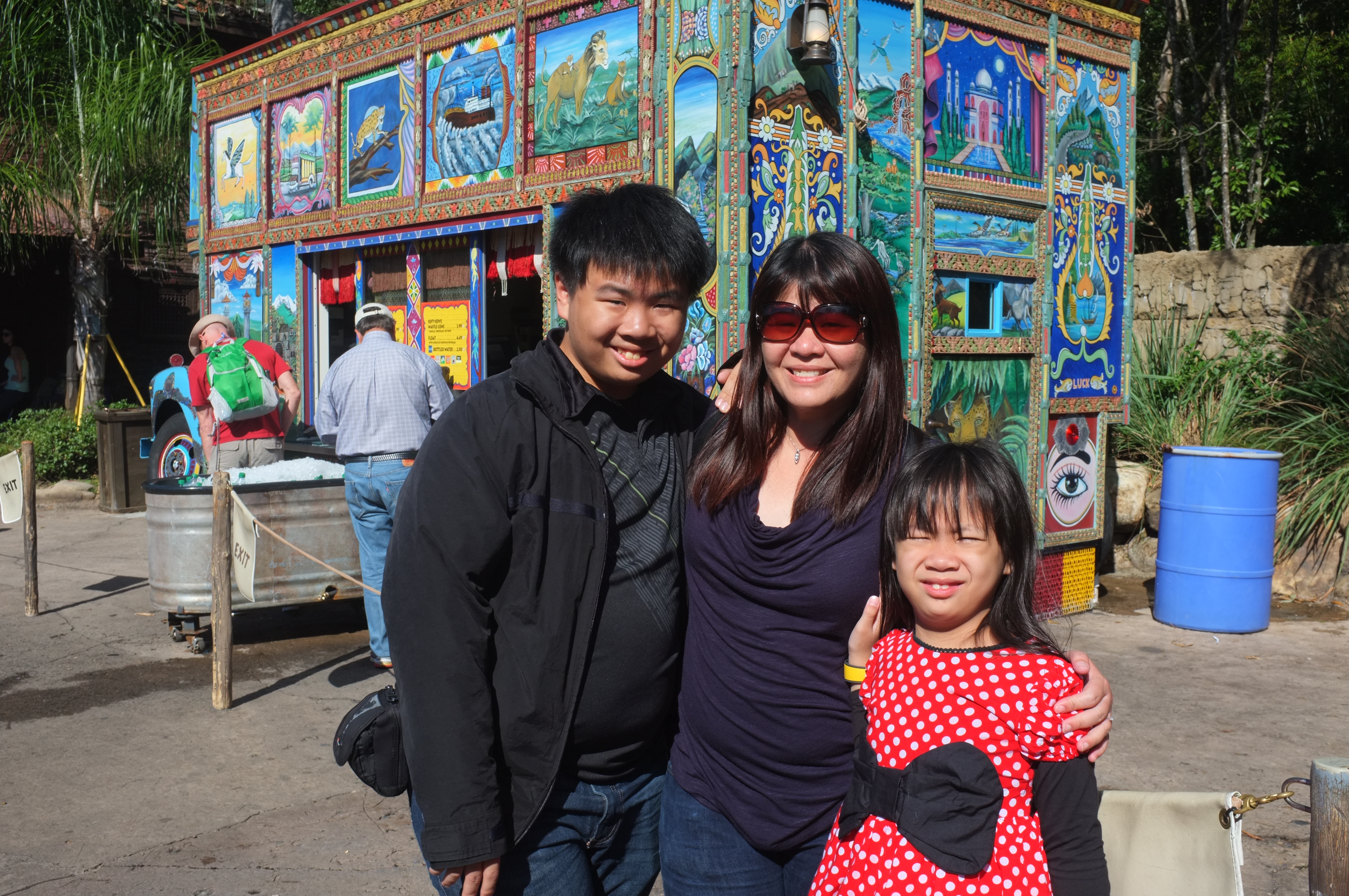 We spent the rest of our day repeating our favourite rides – Primeval Whirl and Expedition Everest – Legend of the Forbidden Mountain. This time round, Ashley rode with ZA and Jarod with me. The woman behind me was screaming hysterically all the way which was really funny. We had also wanted to ride Dinosaur which had been temporarily closed in the morning. We stood in line and waited for nearly half an hour when the ride was closed again. This time round, the ride was closed as I think a child was lost. The mother called out her name in a quivering voice over the PA system hoping to find her but did not. We held on to Ashley as we could not imagine what could happen if it had been her. We decided to leave the queue and bade farewell to Animal Kingdom. Ashley had hoped to return again but was not willing to sacrifice the other parks.