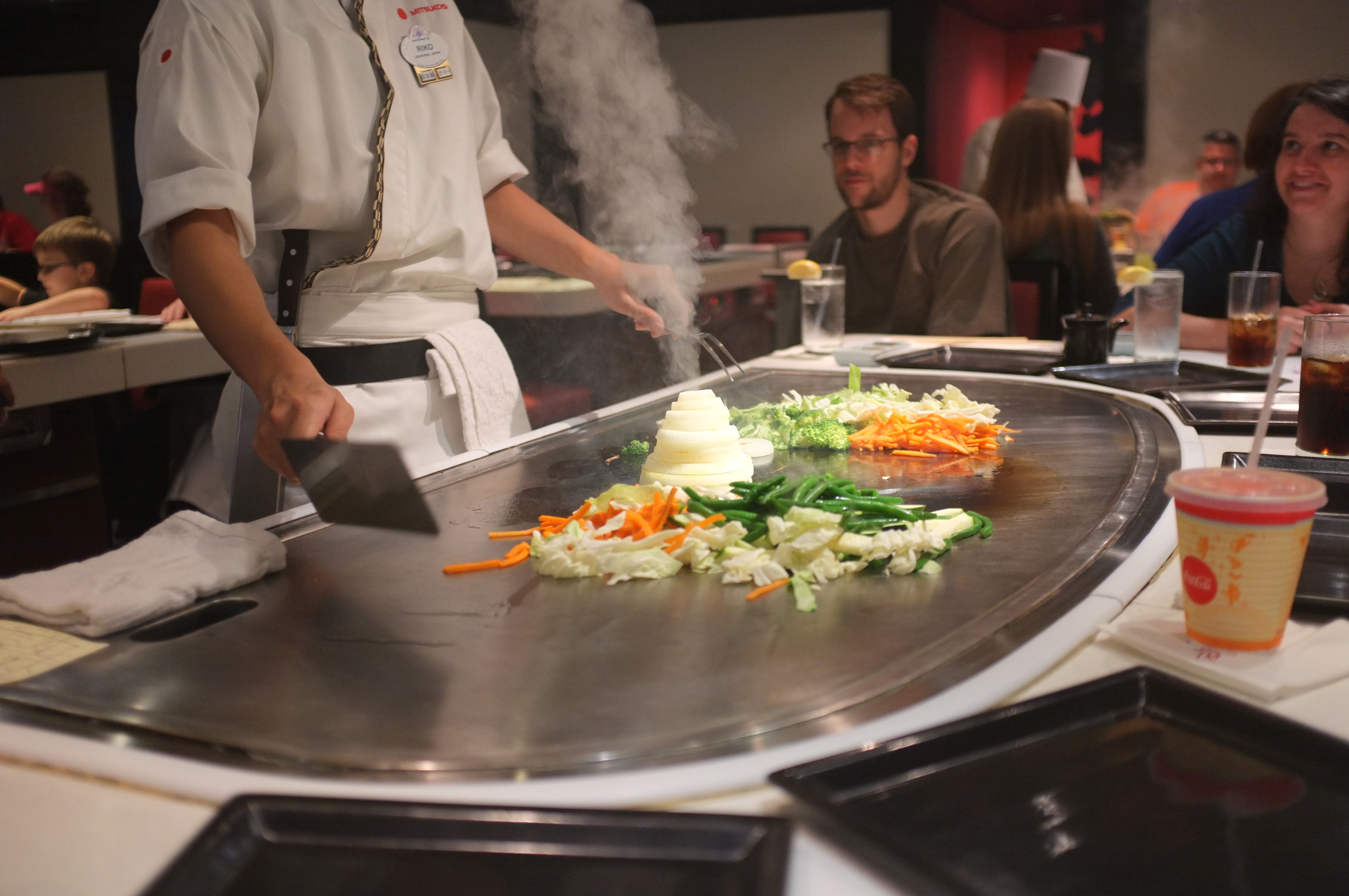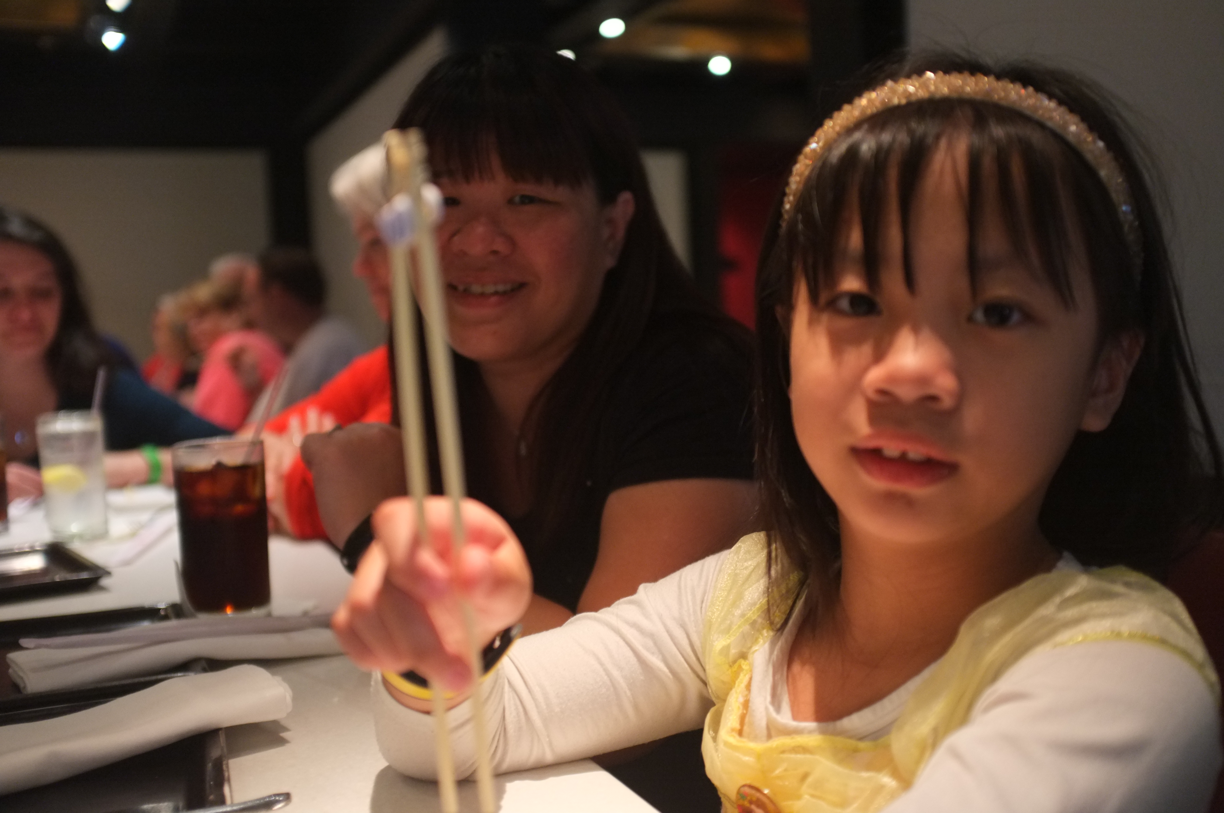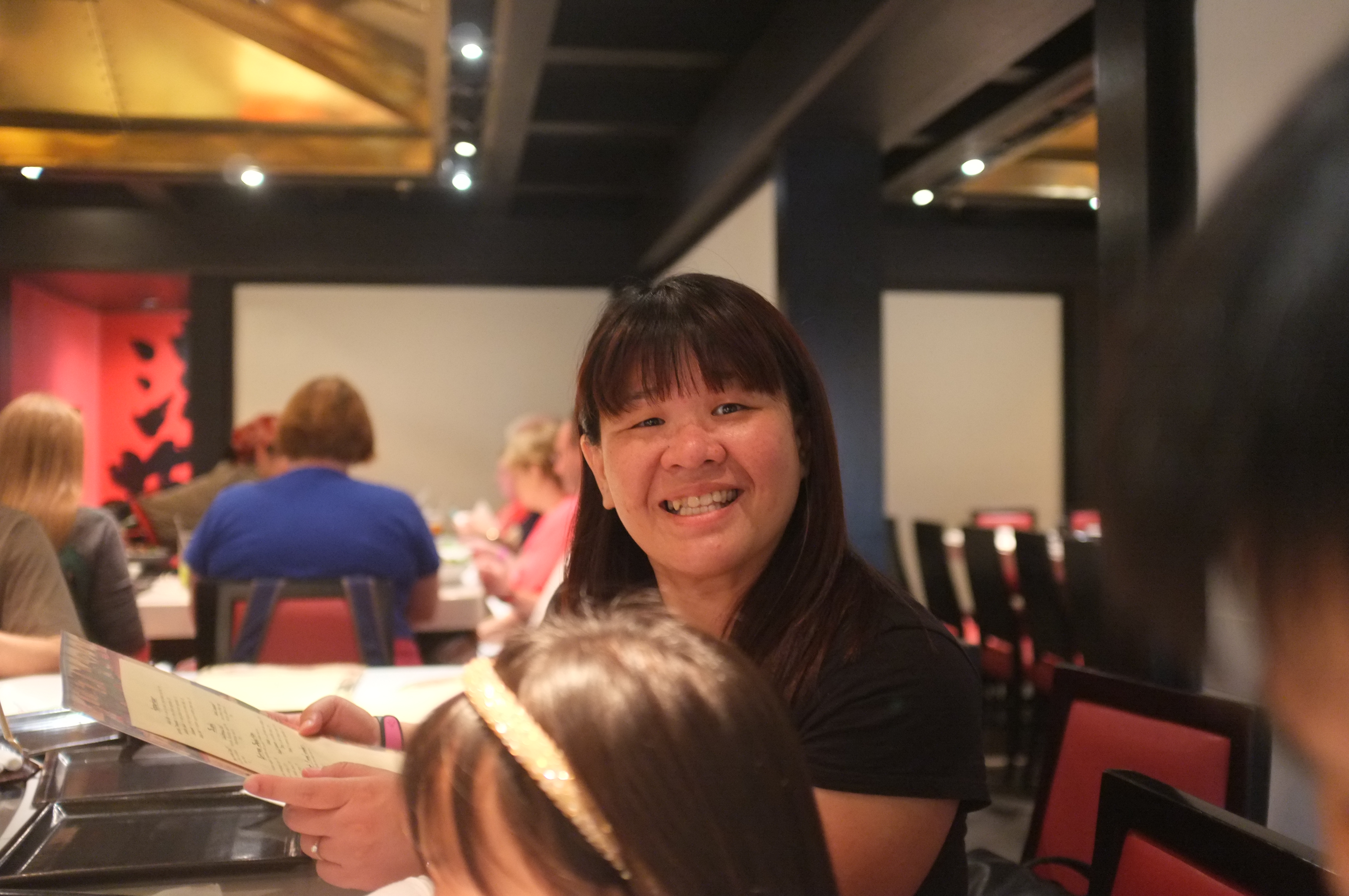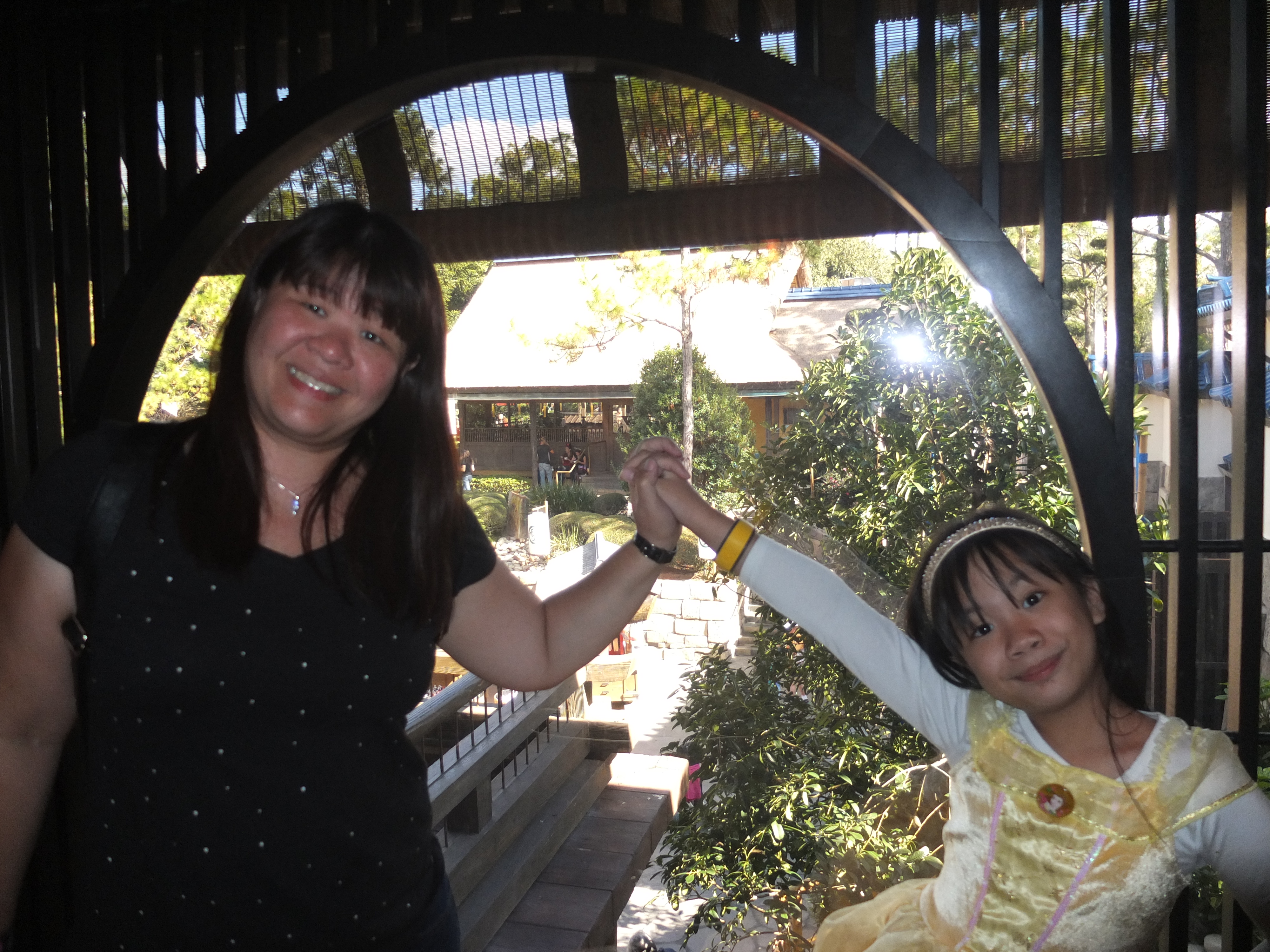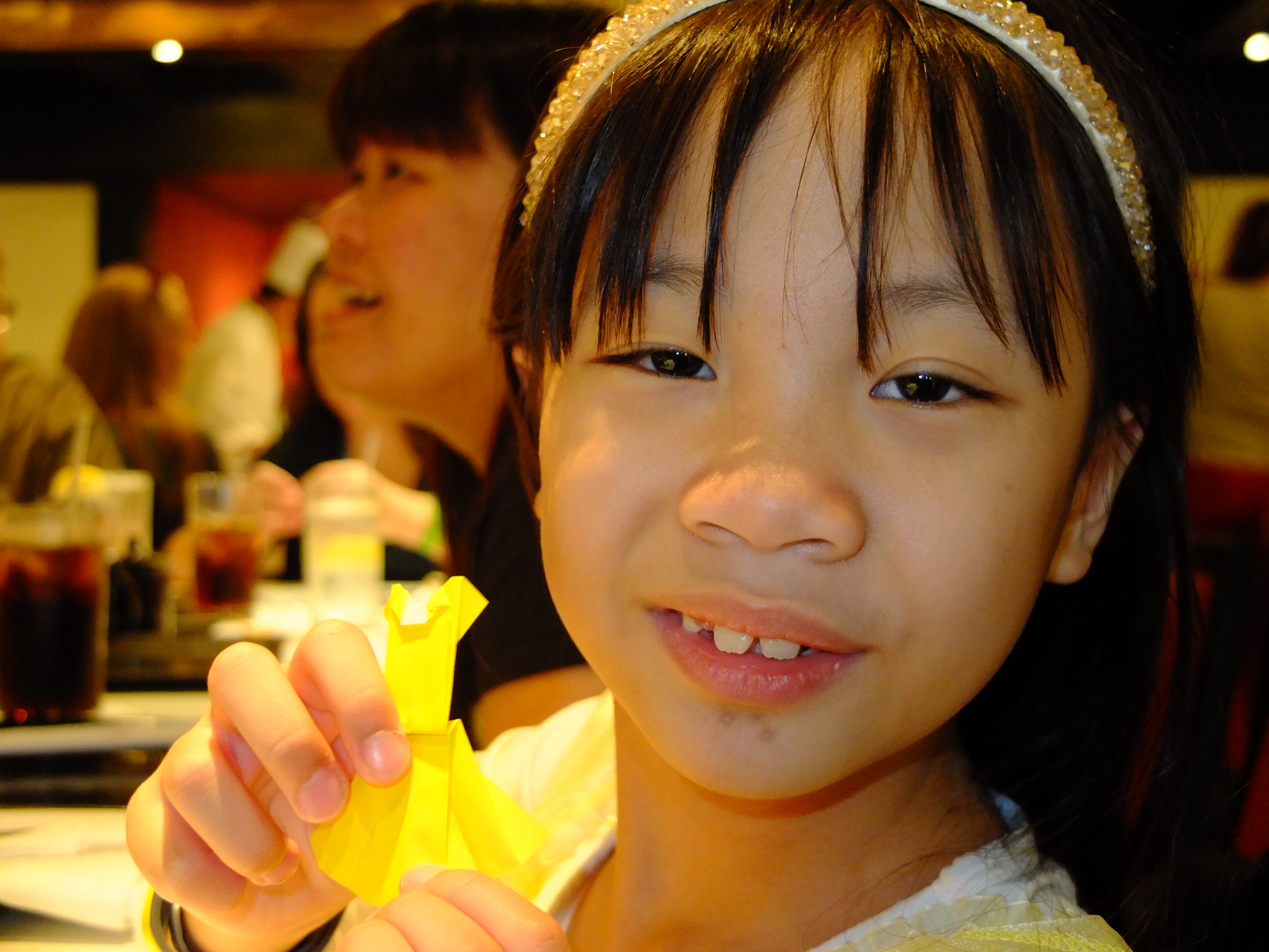 It was time for lunch and we headed to Teppan Edo in Japan the World Showcase next. This restaurant promises a dining experience featuring Teppanyaki style cuisine and time-honored Japanese hospitality in an atmosphere of traditional majesty. We had a conservative chef last year and we were really hoping for a fun and delicious experience this time. We were seated immediately and since Teppan Edo seats guests at communal table, there was already a party of 3 awaiting. Soon, a server greeted us and took our drinks and food order. She also kept us entertained by making origami for Jarod and Ashley. She had more tricks up her sleeve as she turned the pair of chopsticks into kids’ training chopsticks by tying them together with a rubber band. For our entrees, Ashley picked the Ebi, ZA decided to try Kajiki Maguro which is a swordfish steak while Jarod and I went for the Filet Mignon. Our chef soon took the stage and introduced herself. After she confirmed our orders, she set to work preparing dipping sauces for the meal which included a mustard sauce, a ginger sauce, and what our Chef called “yum-yum” sauce or Japanese mayonnaise. She started with some fancy knife work while she worked on to prepare the udon noodles with vegetables. She was funny and awesome as she did many of the tricks that are famous in Japanese steakhouse circles. Our favourites were the onion volcanoes and the tricks such as shrimp toss and the pepper grinders. Soon, the cooktop was full of meats, vegetables and udon noodles. As she cooked, the smell was incredible and we couldn’t wait to dig in. Our entrees also came with Sukiyaki Beef Rice which was very tasty. We were all very satisfied with our choices and they were well seasoned and perfectly cooked. For desserts, Ashley had a Vanilla Ice Cream and we picked Green Tea Cheesecake which came garnished with raspberry sauce. Teppan Edo is unique in its atmosphere, menu, and presentation, much like the other restaurants around World Showcase and it remains high on our list and thoroughly enjoyed it.