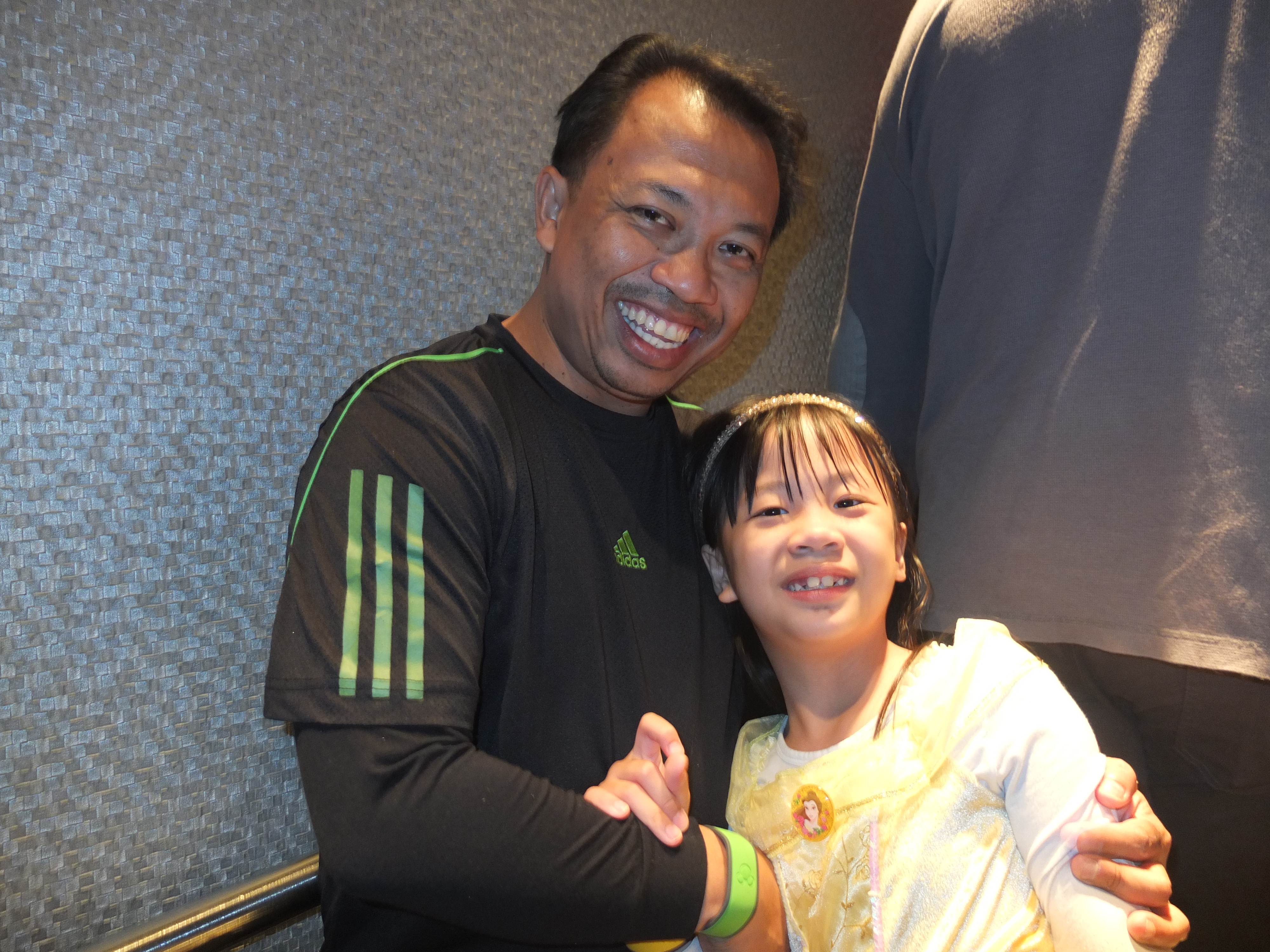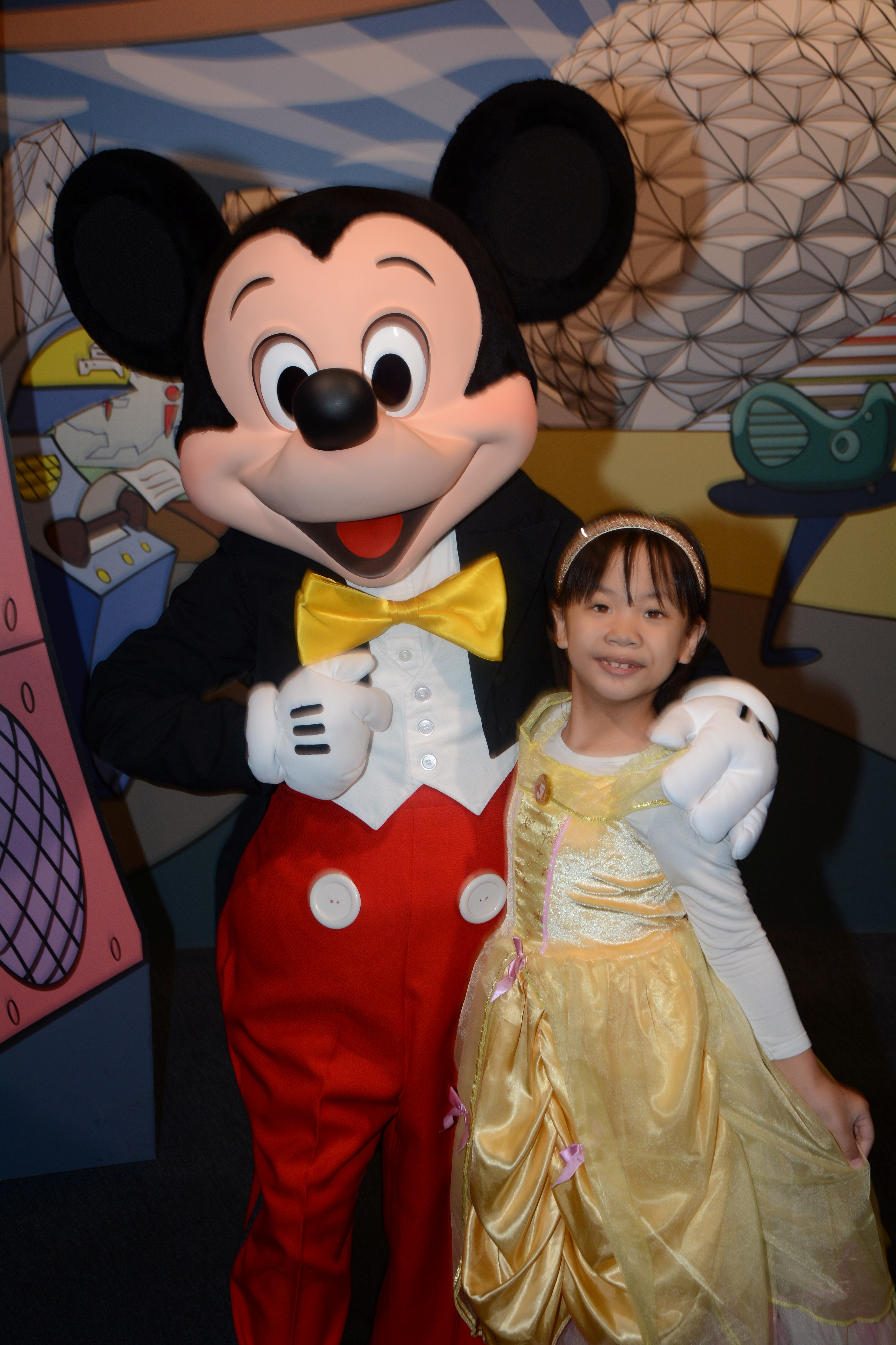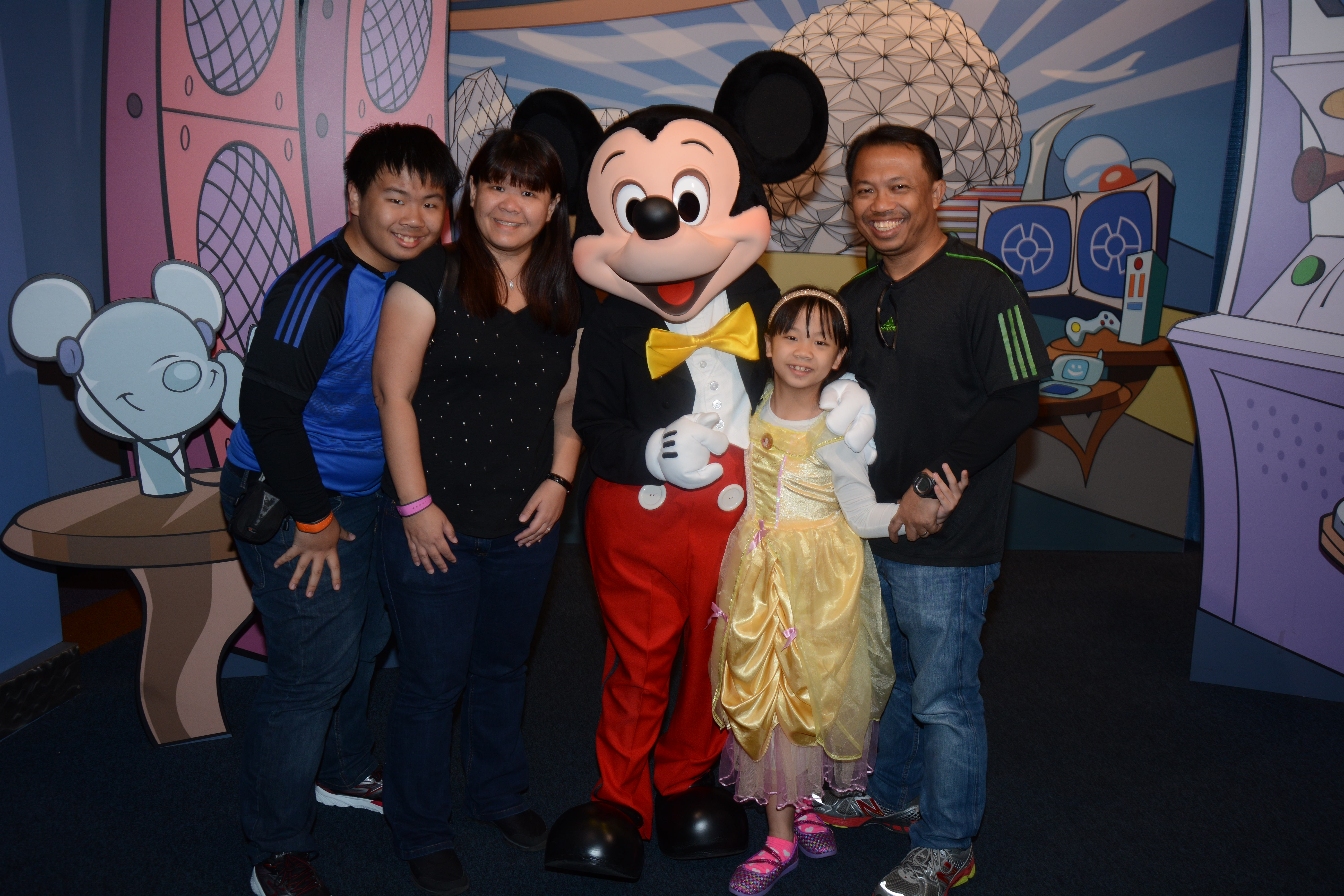 We arrived just in time for our first FP+, Test Track. This time round, Jarod was aiming for the best overall car. He did not succeed but was close enough, trailing behind the best car by 3 points. Nevertheless, we still enjoyed the experience. We stopped at Starbucks next for our coffee fix. Jarod had his Caramel Frappuccino and I had my Latte while enjoying the fountain show. We then walked over to Epcot Character Spot which was steps away to meet Mickey, Minnie and Goofy in this cartoon clubhouse. Ashley always loves interacting with the characters.