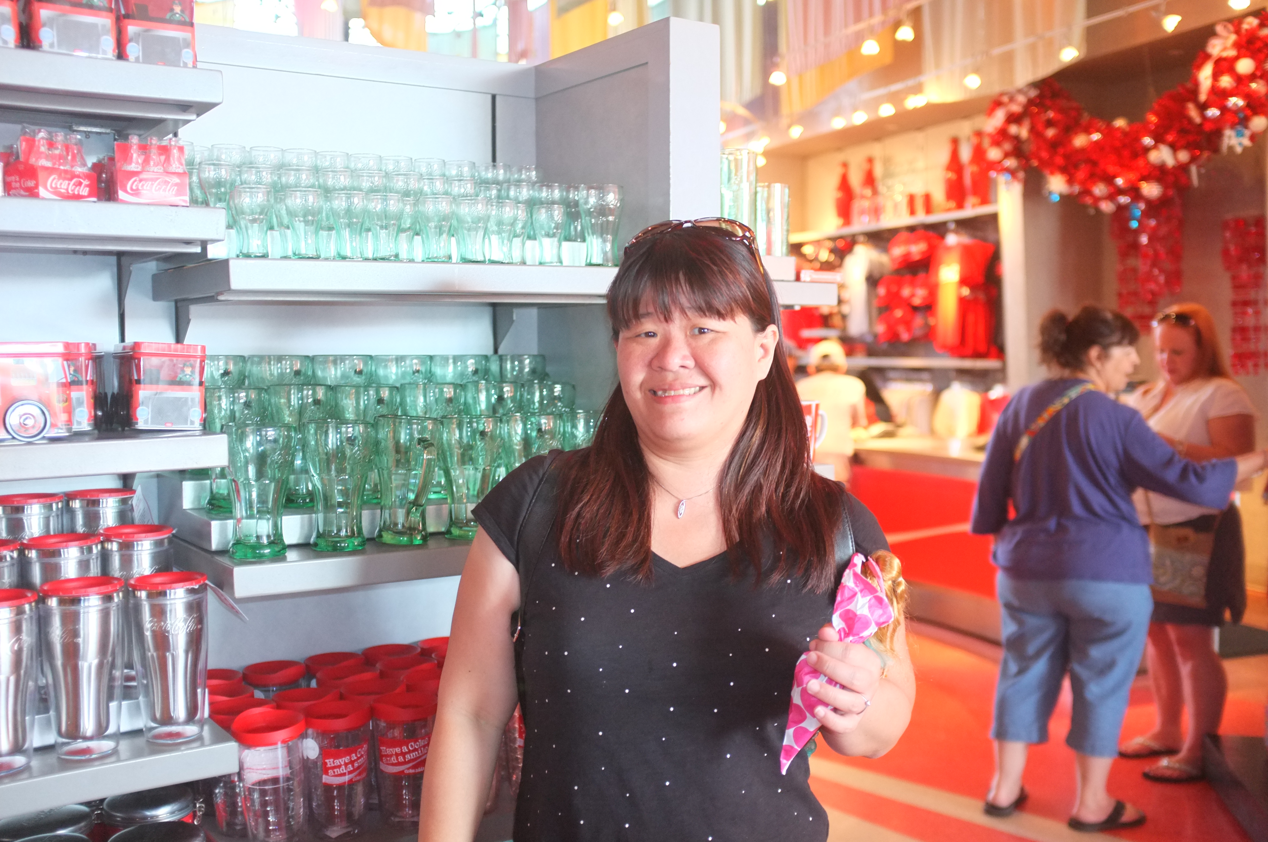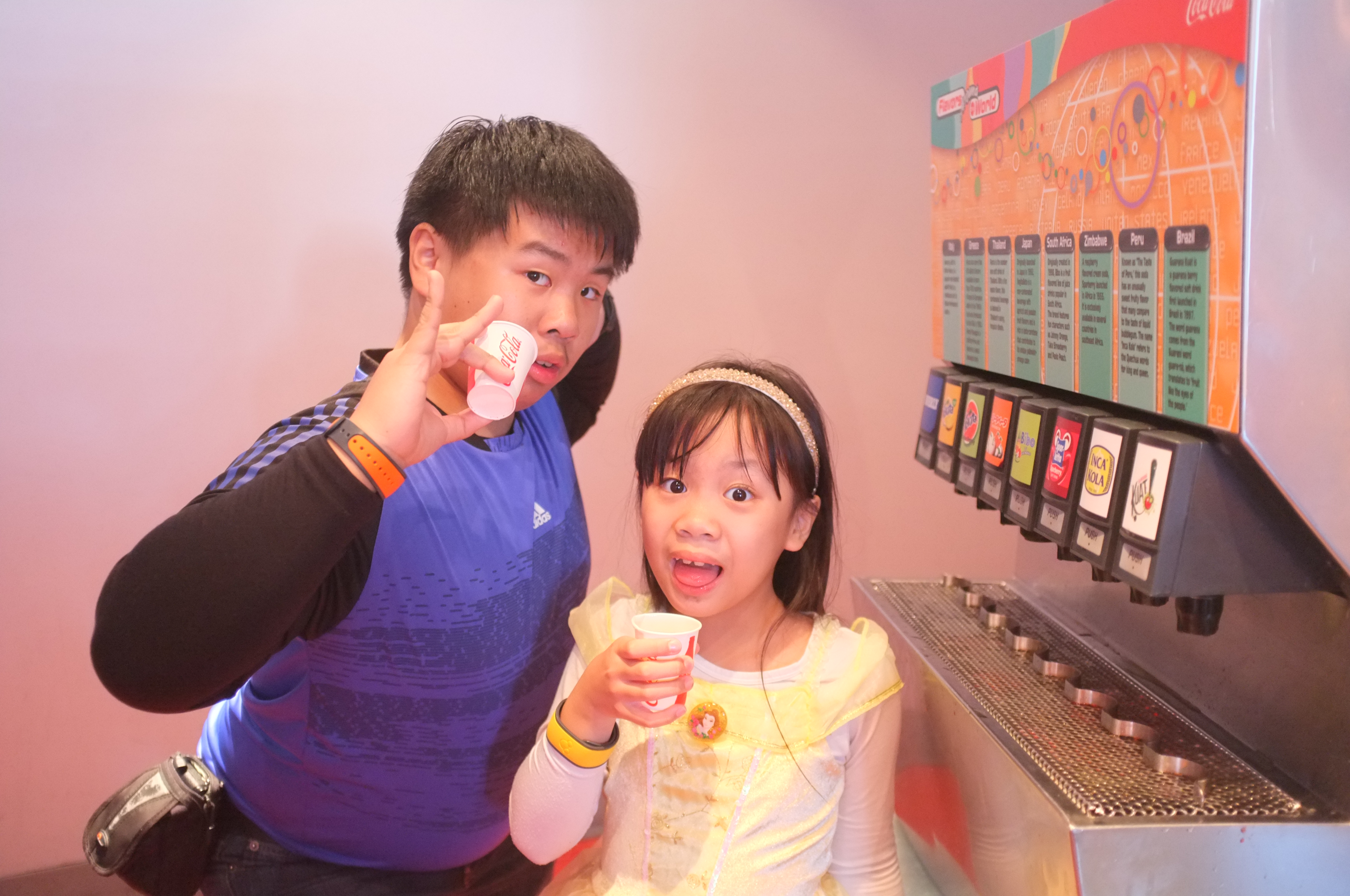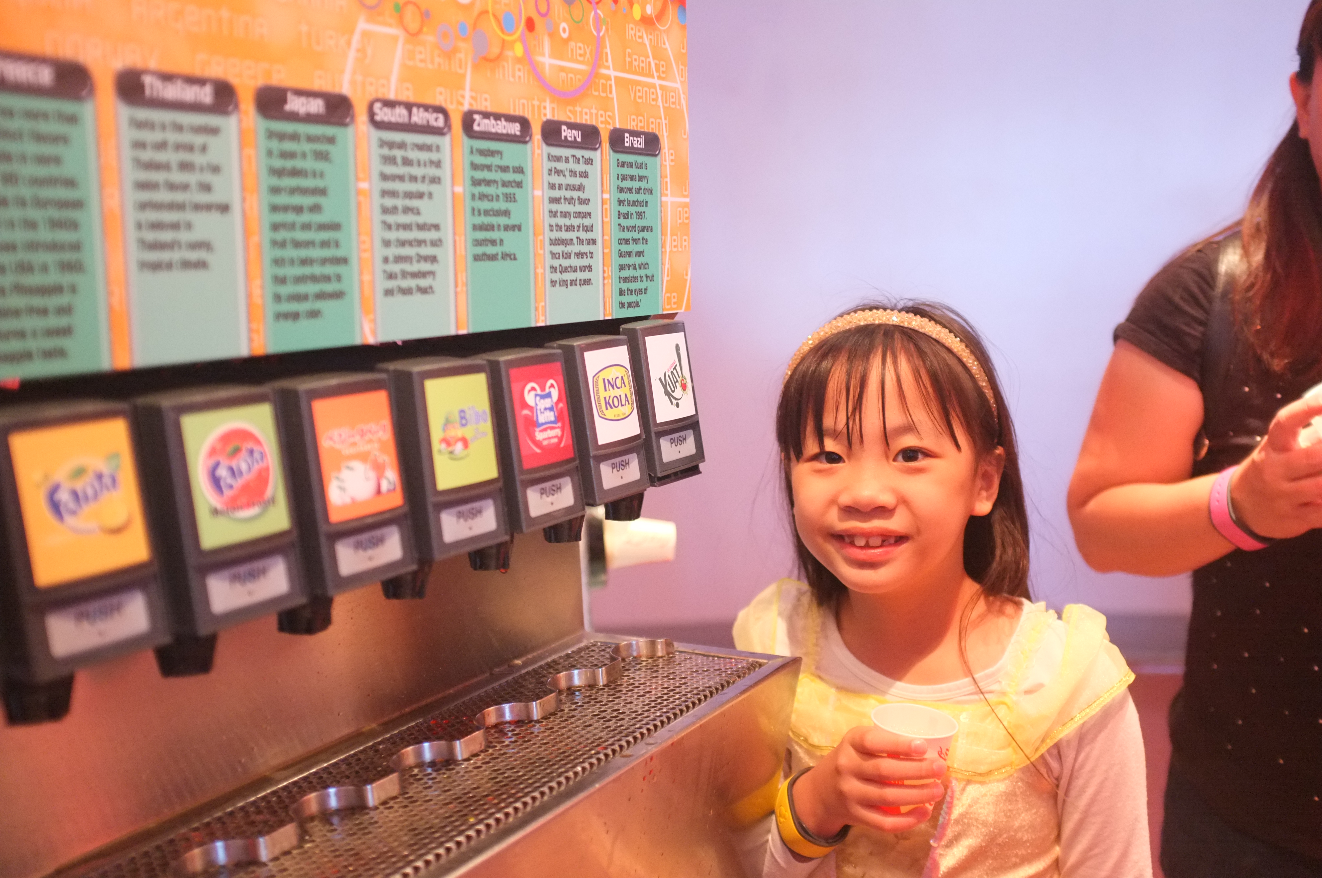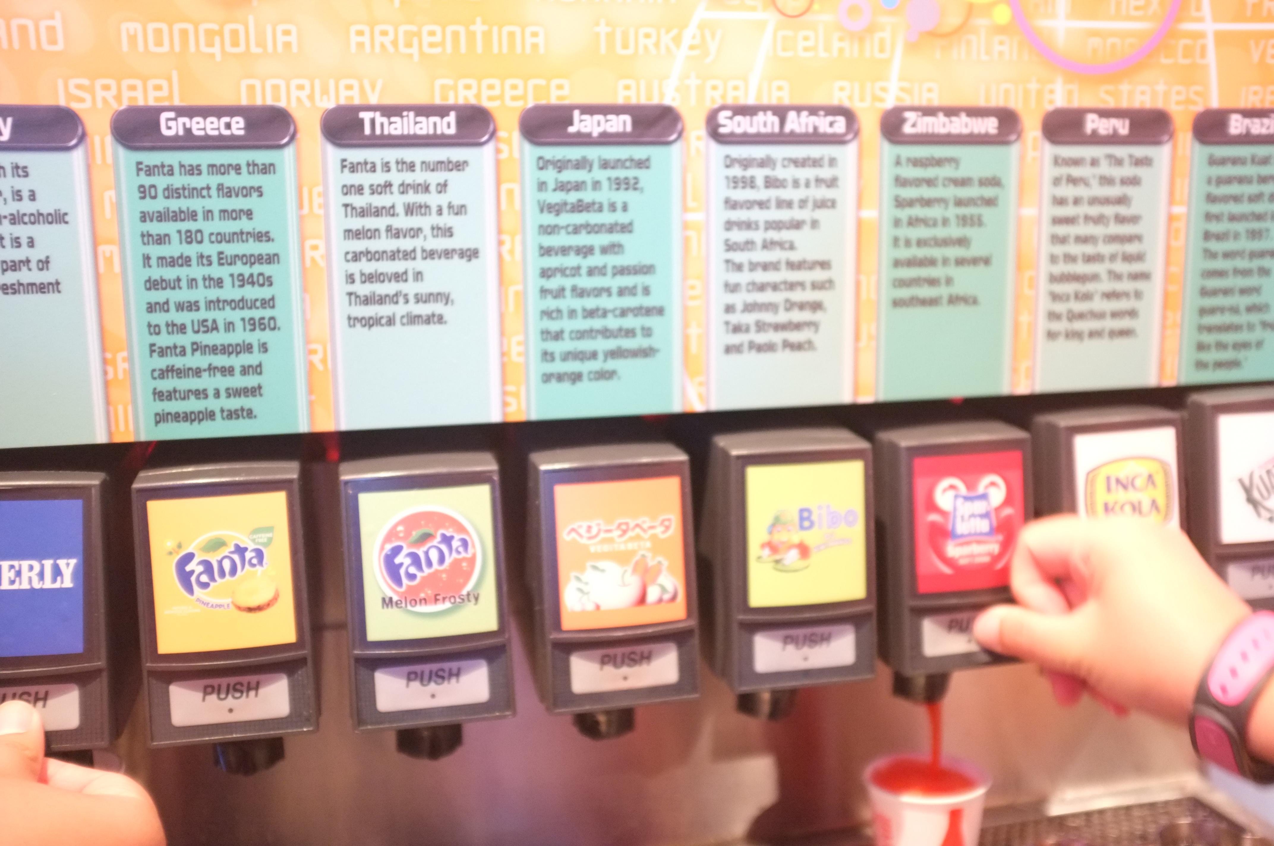 Attached to the fountain side of Innoventions West is a retail space and soda fountain called Club Cool. It doesn’t look like much, which was why we had never stepped in till now. In Club Cool, this Coca-Cola sponsored exhibit provides free unlimited samples of soft drinks from around the world. The flavours included beverages from Zimbabwe, Thailand, South Africa, and Peru. We all have our personal favorites – Jarod and Ashley liked the Fanta Pineapple from Greece, ZA liked the Fanta Melon Frosty from Thailand, I liked the Sparberry from Zimbabwe which tasted like Sinalco, my favourite childhood soda. This is certainly a fun and free pit stop in the middle of a hot day.