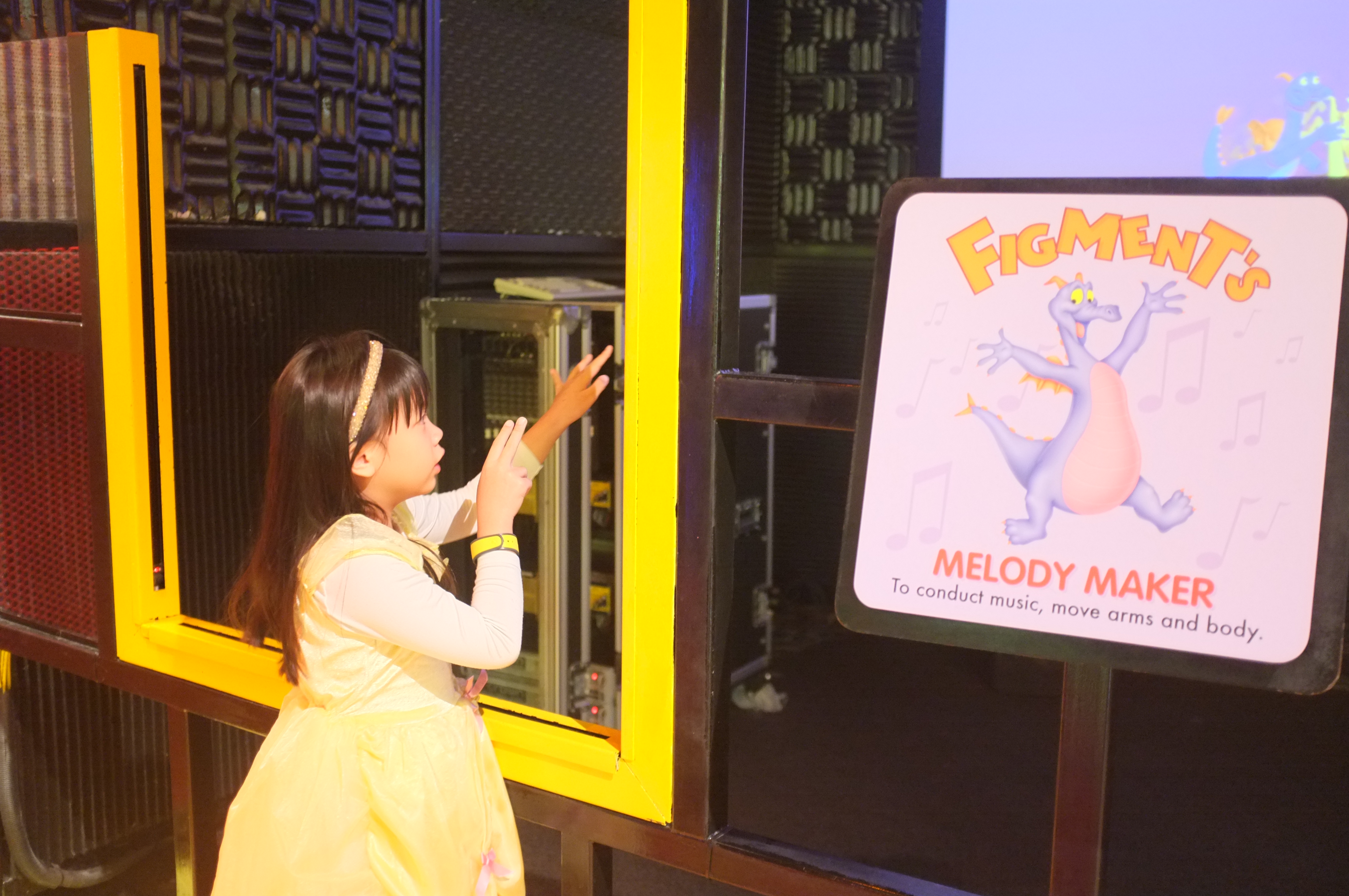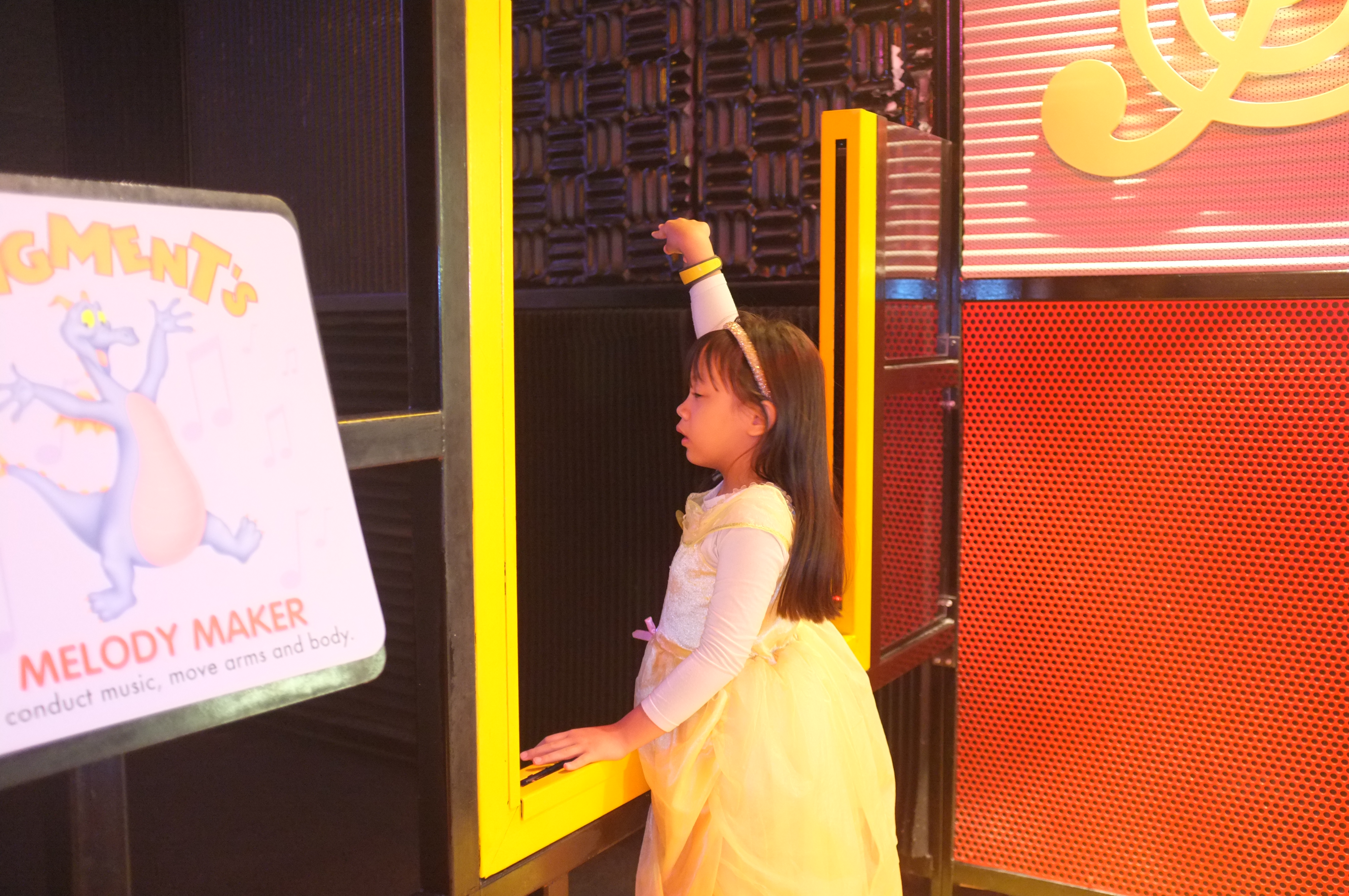 We made our way to Journey Into Imagination With Figment next. We walked past this attraction several times and have not tried it as we had mistaken it for an exhibition. A cast member recommended this to us while we were making additional FastPasses. We climbed aboard a carriage where surprises galore as we travelled through Dr. Channing’s sensory labs. We learnt and laughed about the 5 senses—sound, sight, smell, touch and taste—on this madcap musical trip with Figment. After the ride, we adjourned to ImageWorks, an interactive exhibit area offering the latest in unique, hands-on imagery technology. We used our imagination to make music, digital pictures after which Ashley sent a free photo email of imagination work to herself. It was a pleasant experience.