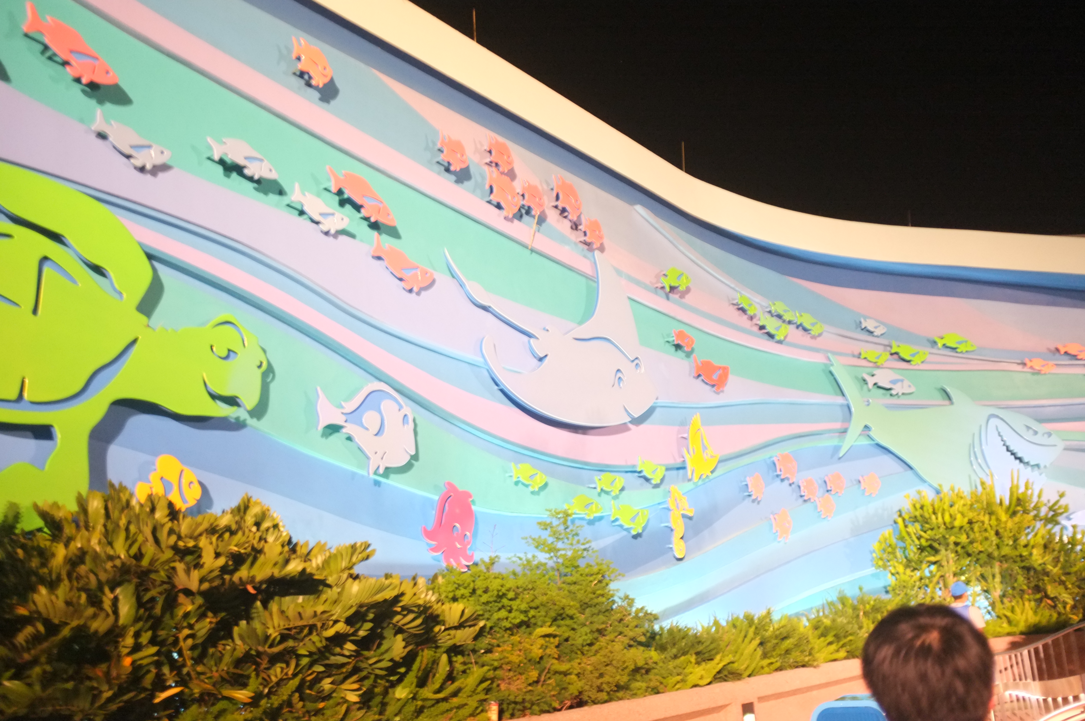 We had wanted to do Turtle Talk With Crush next but decided to ride The Seas With Nemo & Friends again since they were both housed in the same building. We took the opportunity to rest our feet during the ride. Turtle Talk with Crush consists of a mostly unscripted, real-time conversation between Crush, the 150-year-old surfer-dude sea turtle from the Disney Pixar film Finding Nemo, and the audience. Kids are encouraged to sit up front so that they will have a better view of the Window to the Ocean (the movie screen) and Crush. Guests, especially children, are chosen to ask Crush questions and he responds and converses freely with them. Crush looks and moves much as he does in the movie, complete with facial expressions and subtle gestures. Since Ashley had not been chosen last year to communicate with Crush, she was hoping very badly to be able to do so now. She succeeded this time and was brimming with delight. While the focus is on the kids, grownups were just as enchanted by this attraction, with everyone leaving with a smile.