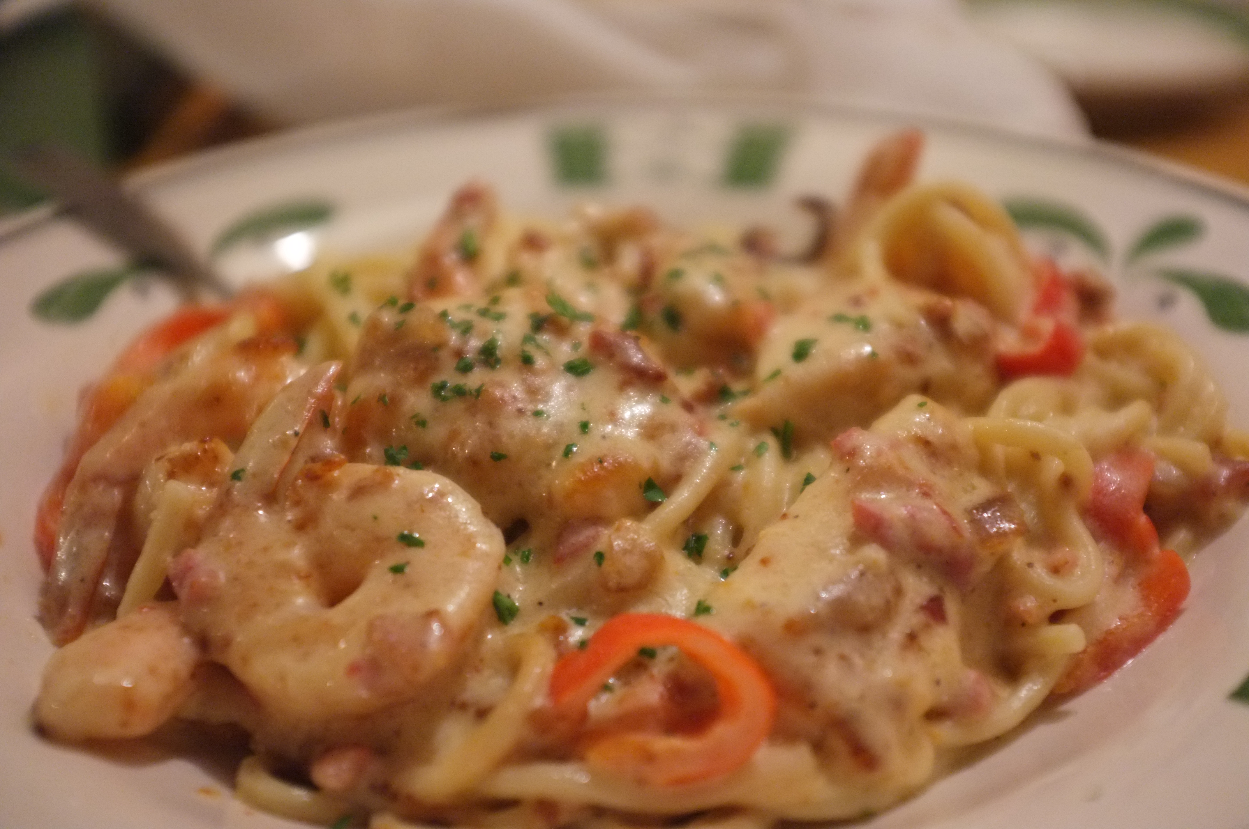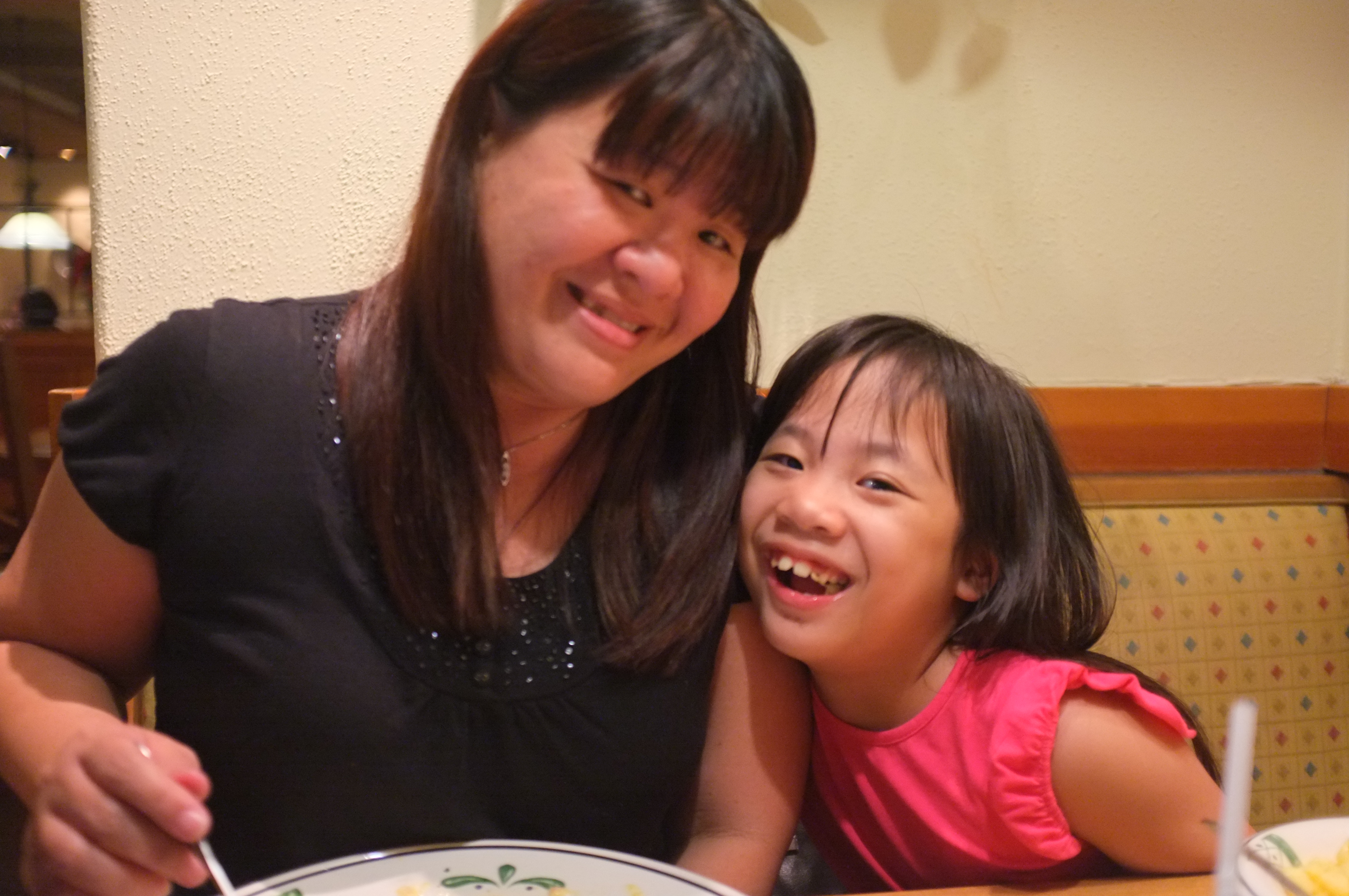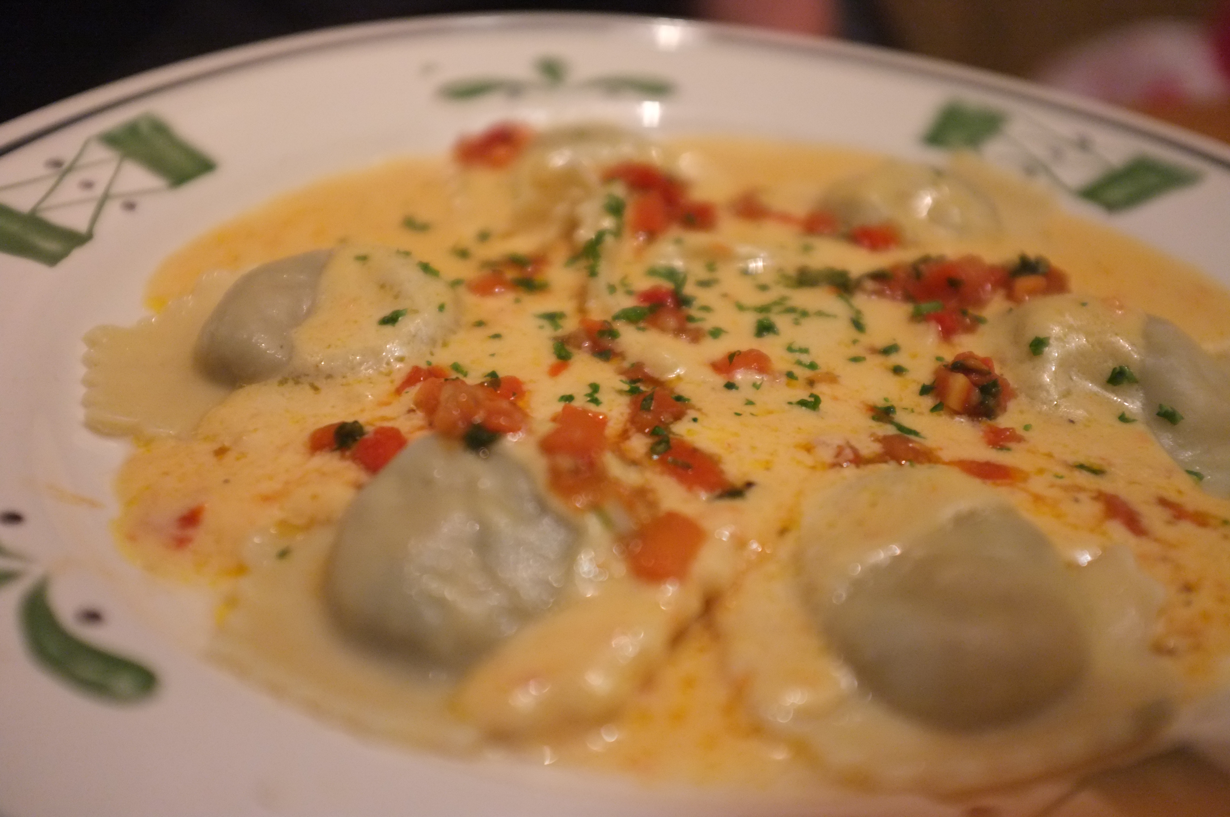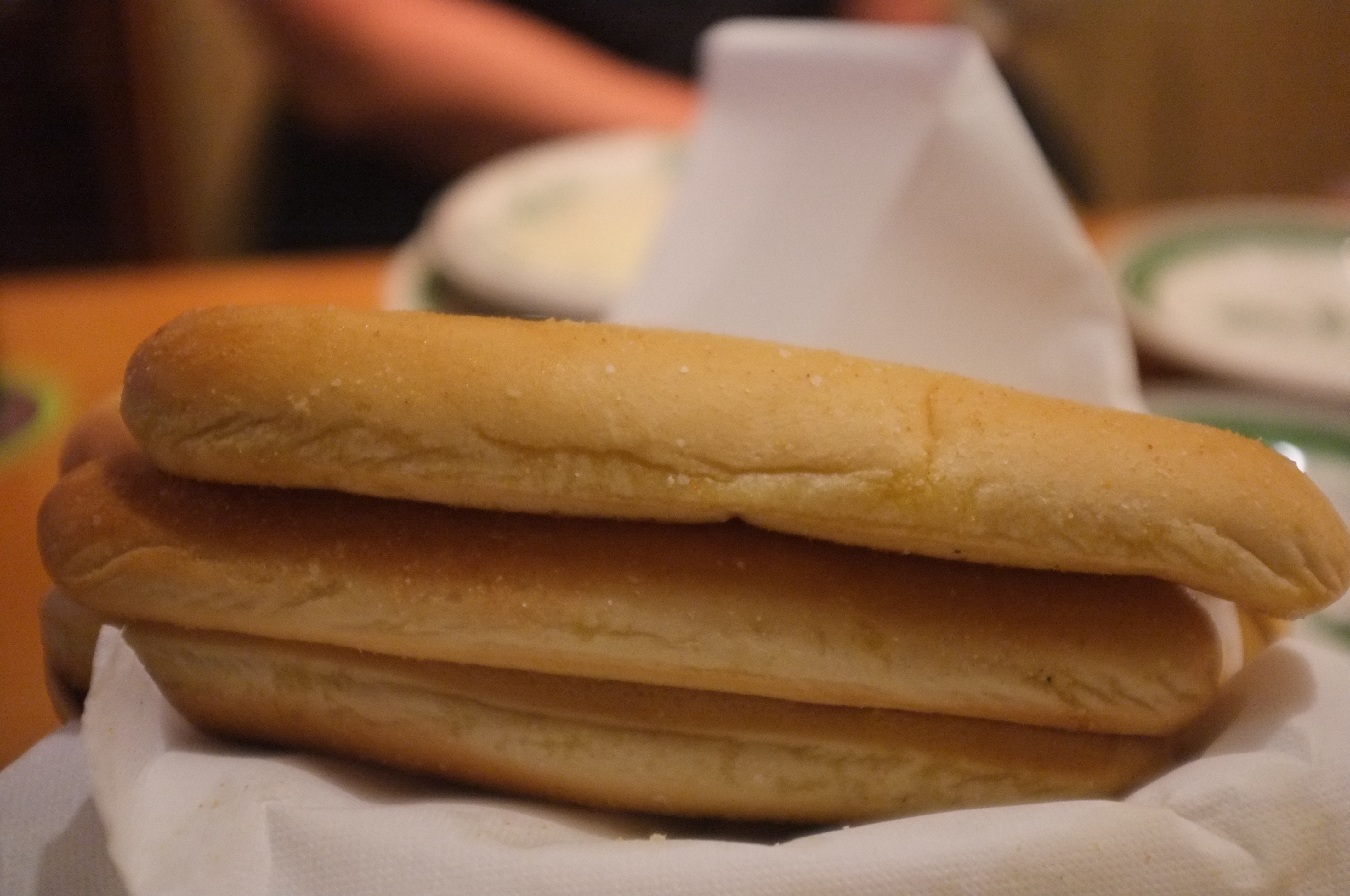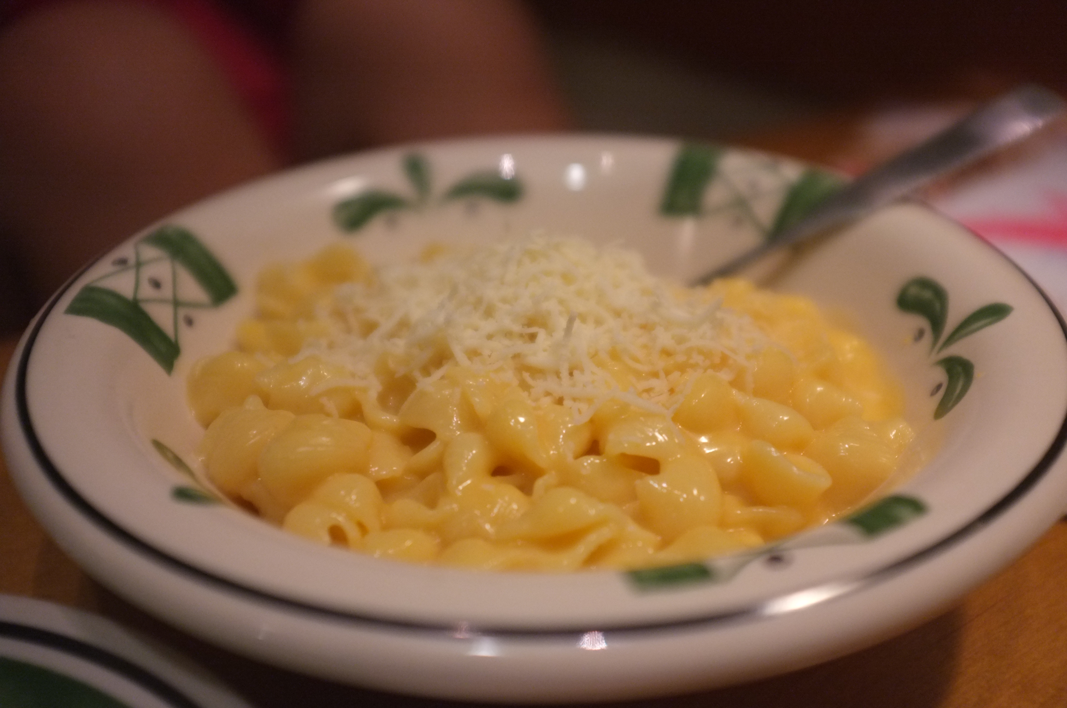 Again, we had a strange sense of Deja Vu, as we visited the same Olive Garden from last year, and were seated not far away from the table we originally sat at. We were greeted by complimentary Breadsticks and Salad (which my mom and I swapped to soup), before moving on to our main courses. I ordered the Eggplant Parmigiana, my Dad ordered Shrimp Carbonara, my Mom ordered the Ravioli di Portobello, and Ashley ordered Mac’N Cheese. The eggplant that I ordered are cutely shaped like cookies, and deep-fried, before serving with some pasta. It was lightly done, and still very flavourful. The Shrimp Carbonara was also well done, but the sauce was a little too heavy for my Dad’s taste. However, the star of the show was the Ravioli, which was done excellently. I never really liked Ravioli before, but this has certainly changed my mind. Ashley, as usual, loved her Mac’n Cheese. Sadly, since we wered so busy occupied eating our main meals, we did not have any space left for the breadsticks that were provided free of charge when we ordered our meals. They were really good and sadly a shame that we could not eat more of them. They were very flavourful and tasted strongly of Garlic. I was very satisfied with the meal today, and was glad that I agreed to go to Olive Garden for dinner.