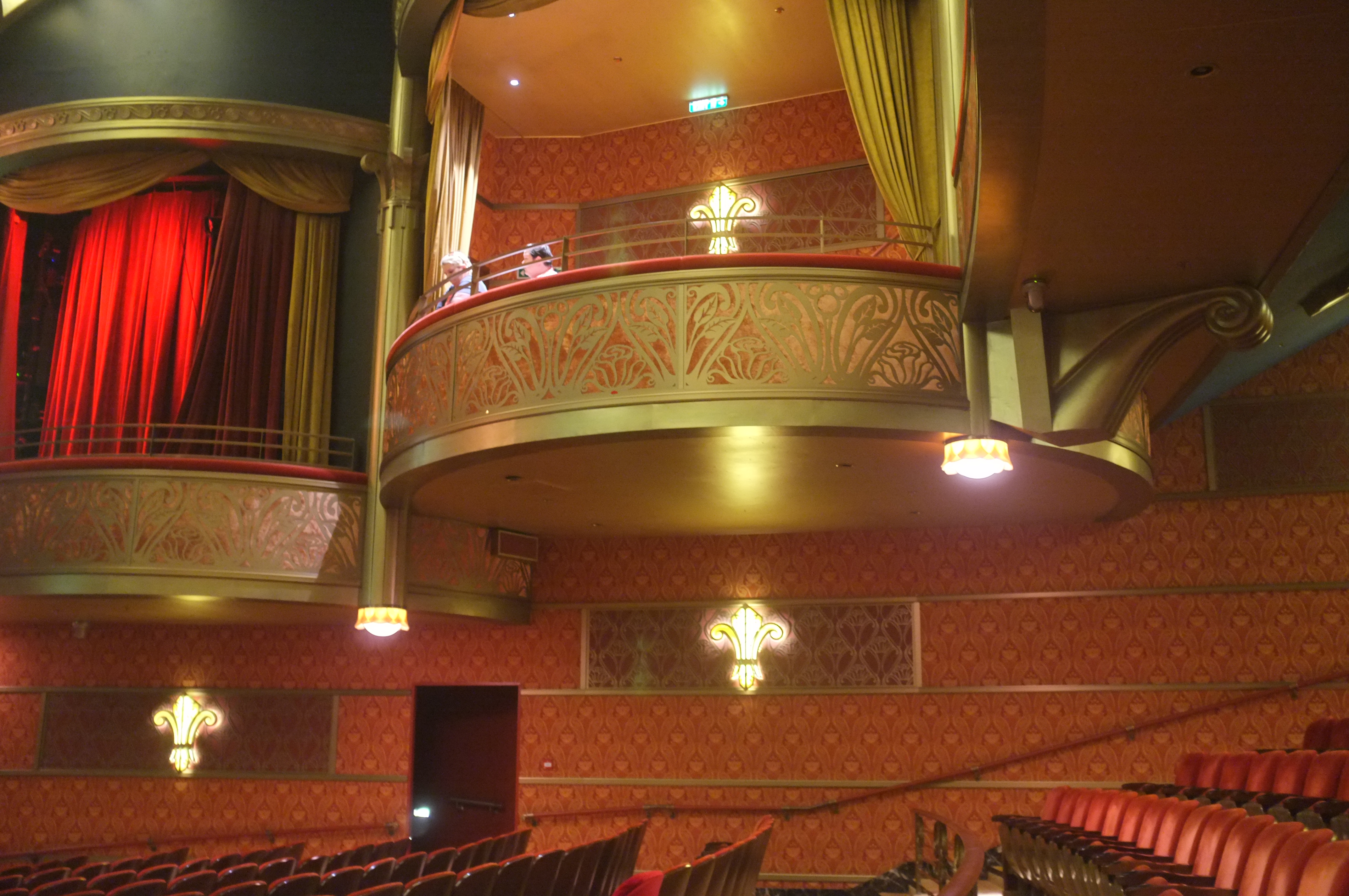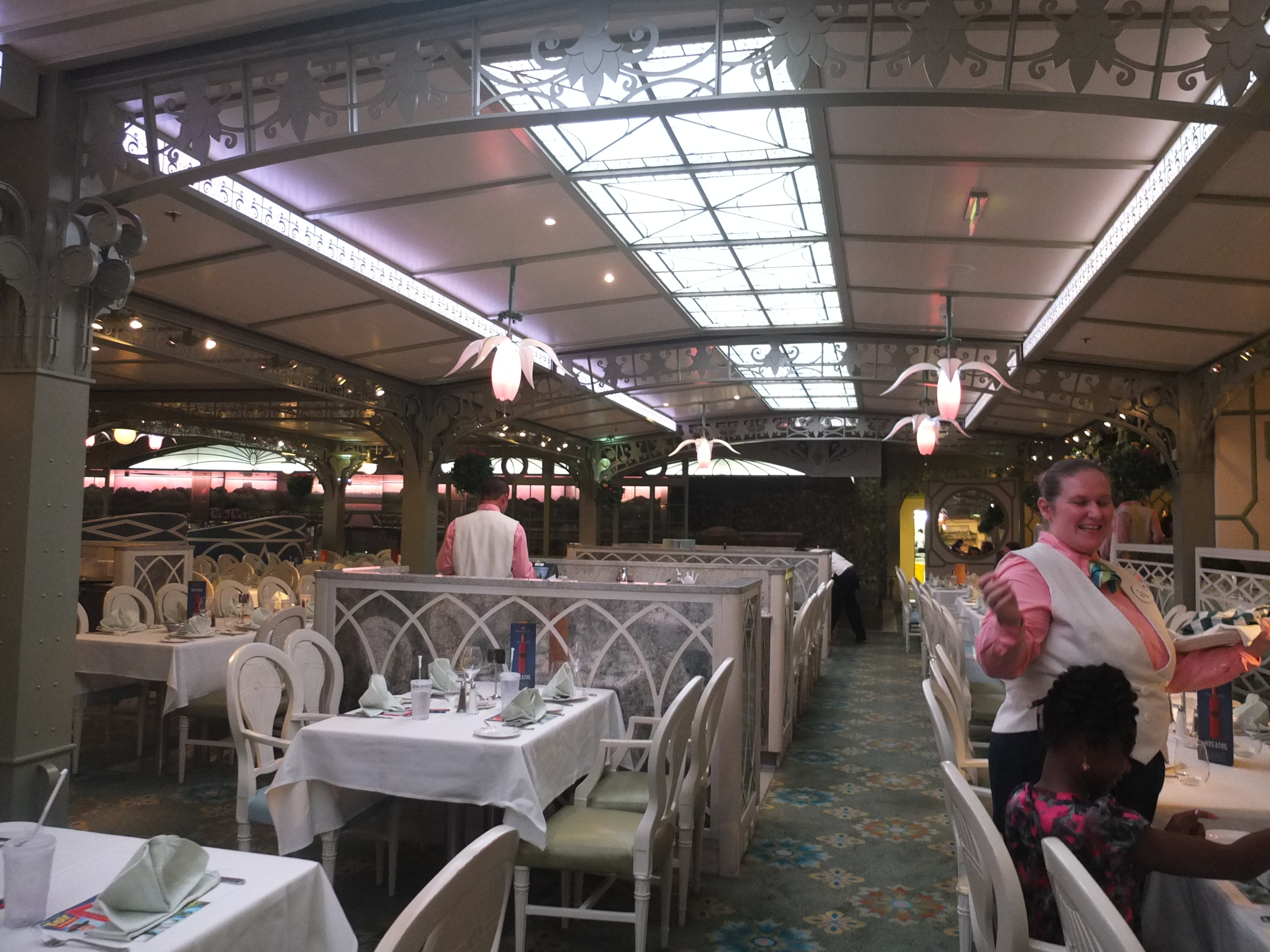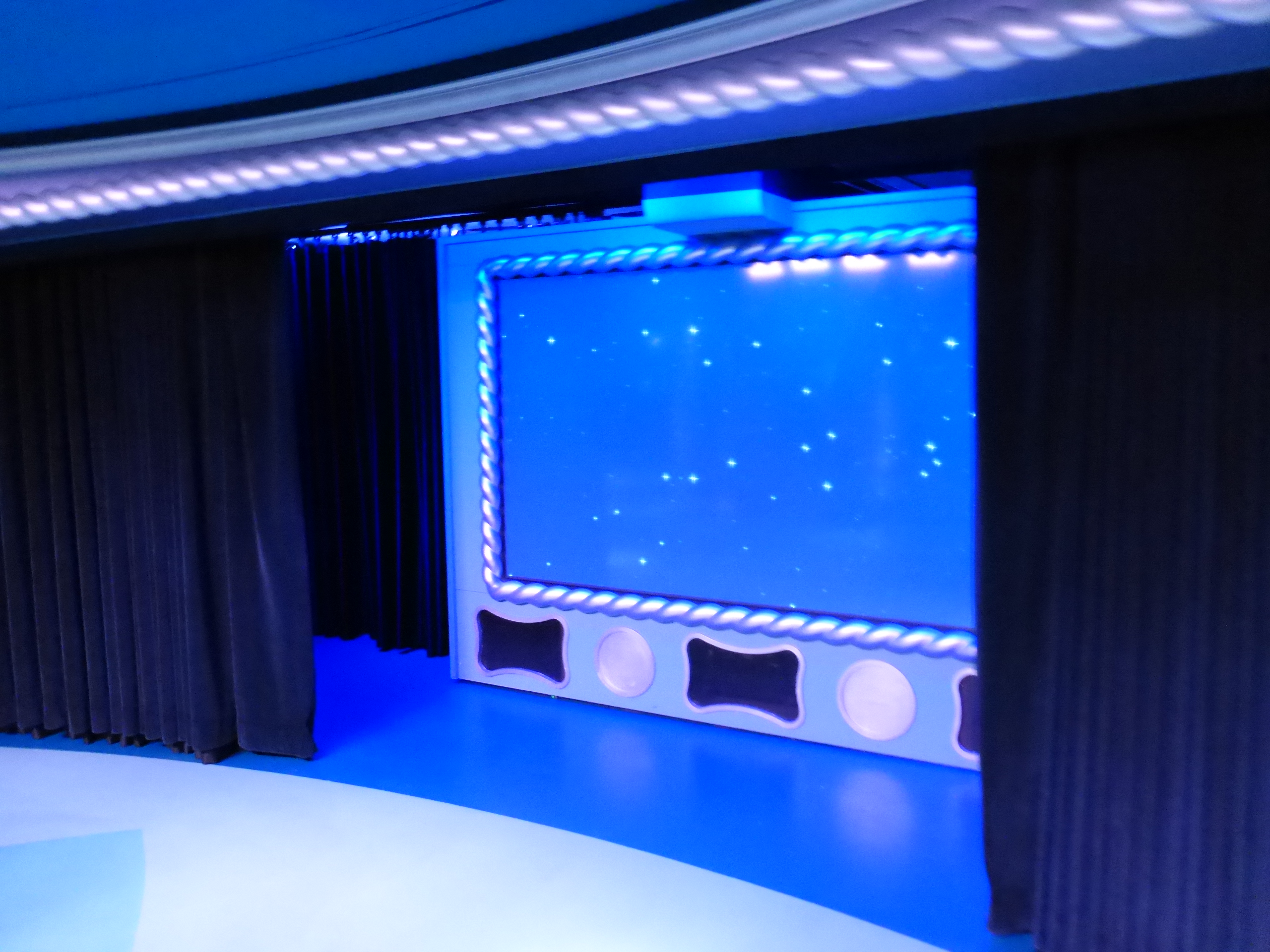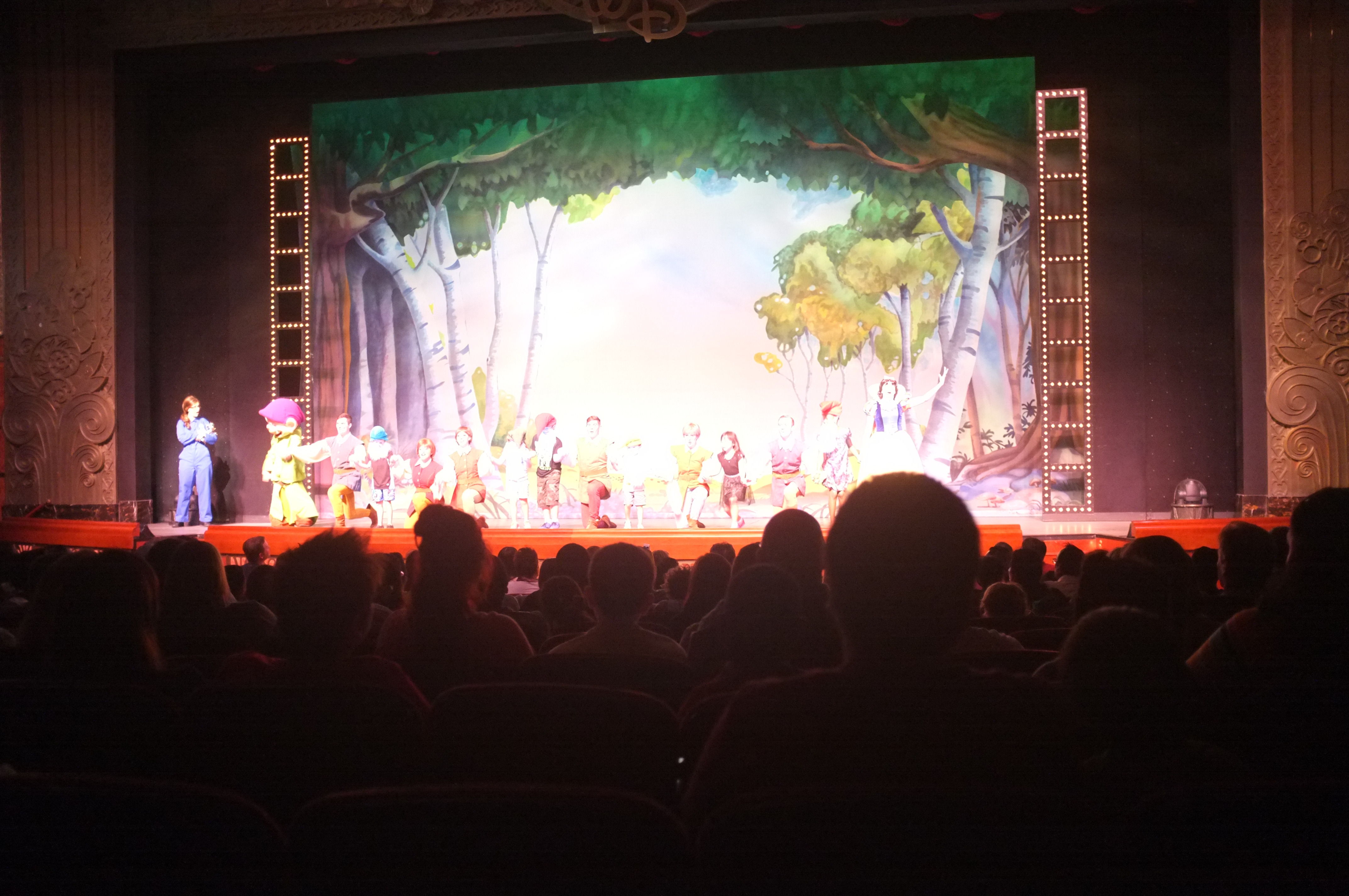 Soon after, the show started, and its all the blitz and glamour that you would expect from a Disney show. At this point, the ship was out of the port, and it had started listing from one side to another. This made my dad and I very nauseous, but besides the movement from the ship, you couldn’t tell that the theatre was on a ship, or you were on a ship at all! The decoration and ambiance was simply amazing. The show’s plot is simple but amazing. A cast member goes on an adventure, so that we can all believe, that when we try, anything is possible. The show had appearances from many Disney classics, like Cinderella and Snow White and the Seven Dwarfs. We couldn’t stop smiling when Ashley went on stage. She played the role of “Sneezy”, and she even faked a very believable sneeze, which threw my mom into worry. The show was amazing, and was far better than the one that we watched in Hong Kong Disneyland.