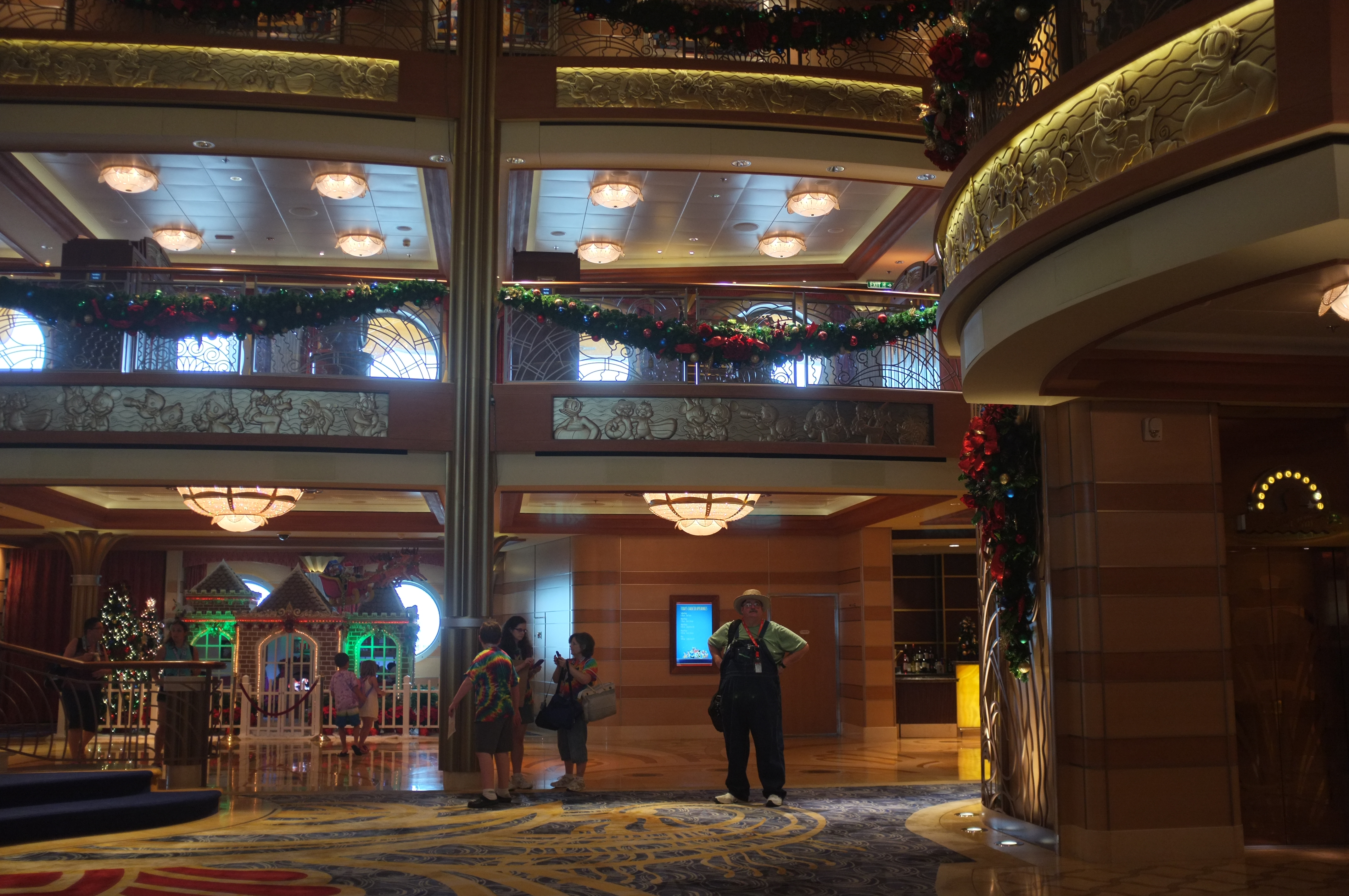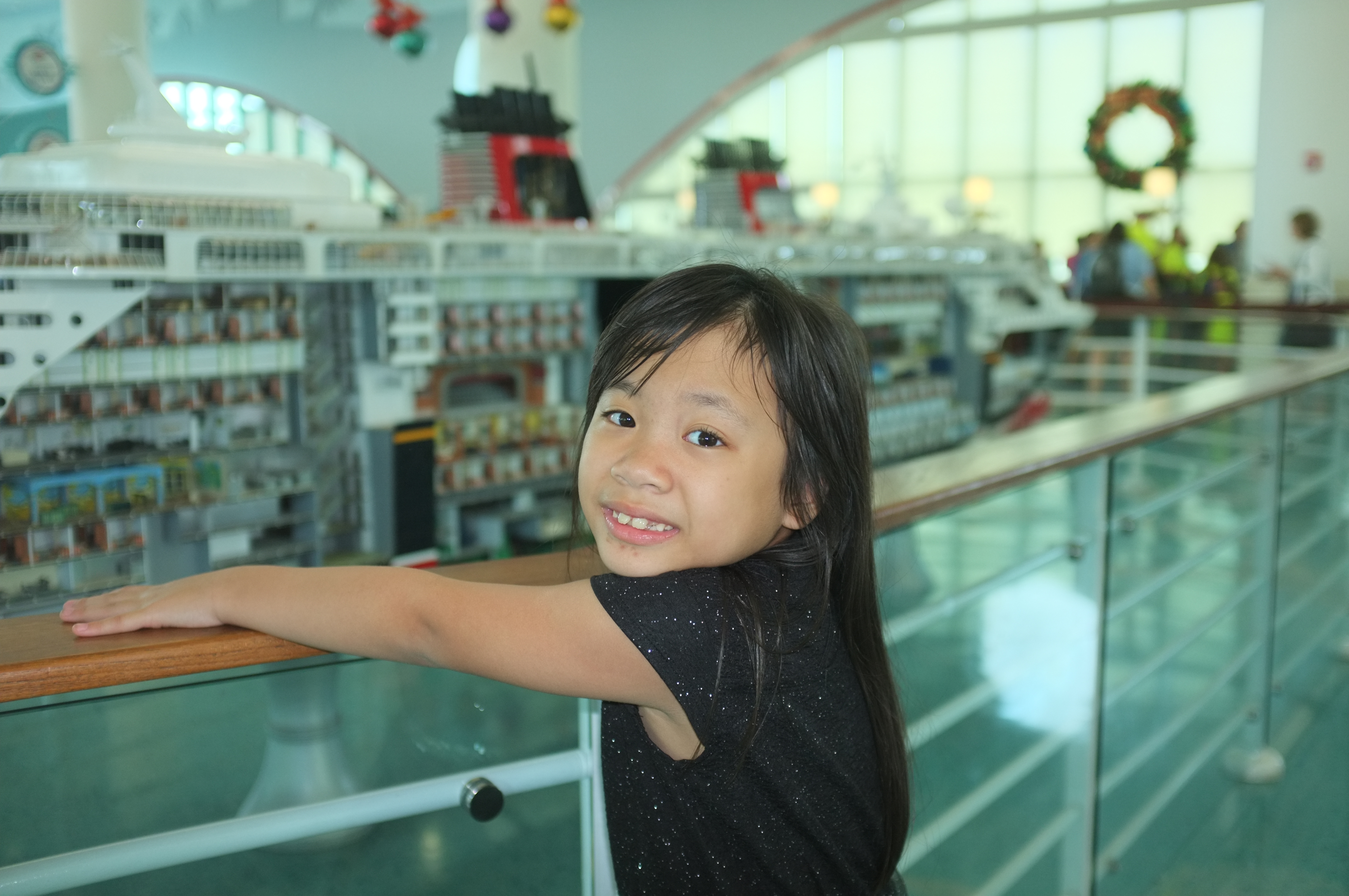 Soon, it was time to go off for the one hour drive towards Port Canaveral, where the Disney Dream cruise ship was docked. The Disney Cruise Line is a subsidiary of Disney itself, operating cruises all over the world, with locations spanning Europe and the Bahamas. The Disney Dream is a massive 122,000 tonne ship, with 1250 staterooms and 5 restaurants. We were awe-struck the moment our eyes caught sight of the magnificent Dream cruise liner. It is simply unlike any other ship we had seen prior to the trip. It was massive, and beyond that, majestic. It seemed to even exert off its own aura of magnificence. Deciding on parking our car overnight at the car park at Port Canaveral, we packed up our luggage and waited in line for boarding. Luckily, the boarding time was swift and unlike what we had expected. As we boarded the dream, we arrived the lobby, where there was an announcer calling our family name, and the entire crew cheering for us. It was a very special moment for all of us. Unfortunately, we were worn out from the early morning, and our staterooms were not to be ready until 1.30 in the afternoon, so we had a few hours to kill.