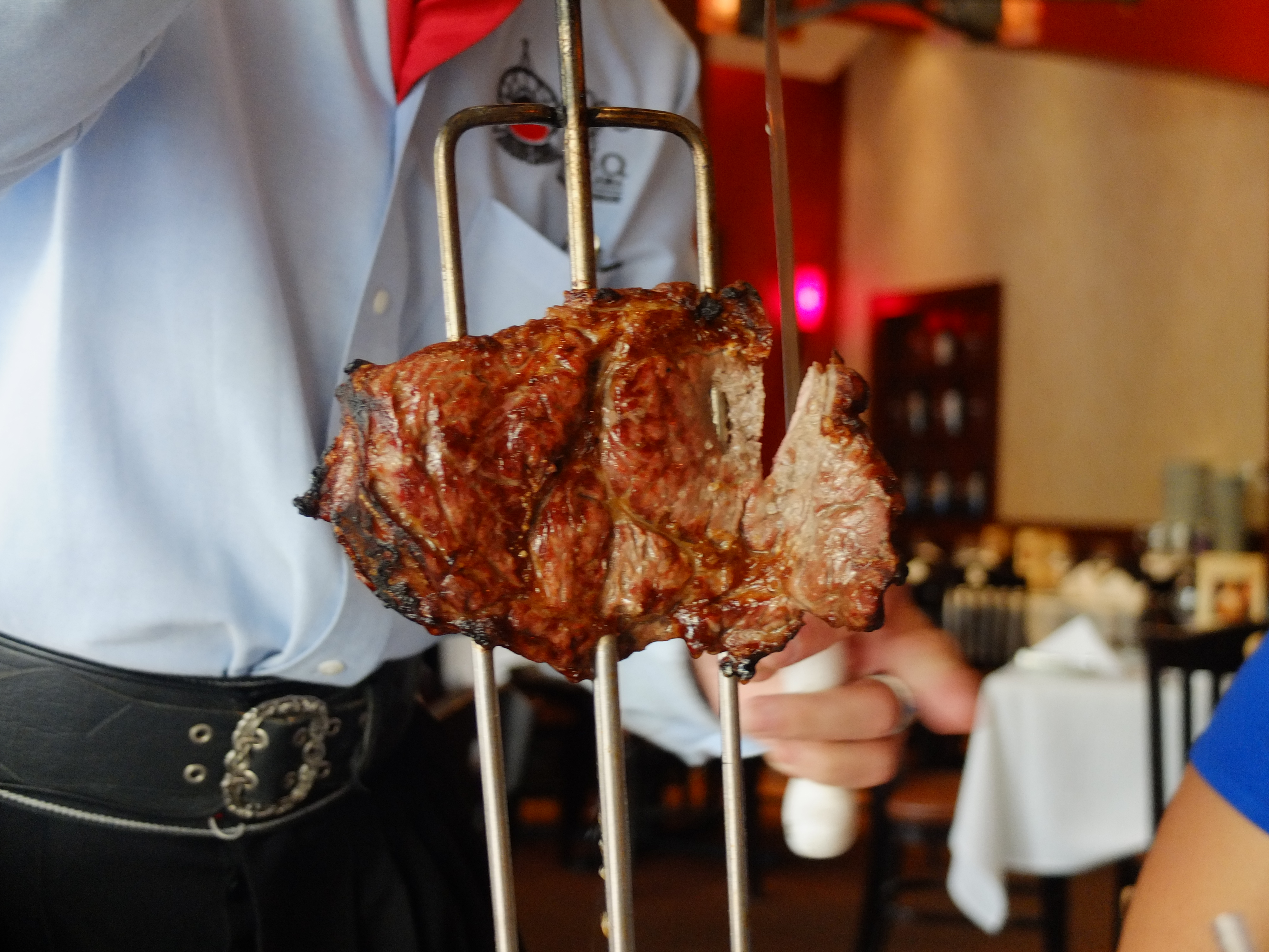 Basically, we had a circle card, that was green on one side and red on the other. If you flipped it green, the servers would come to you with various cuts of meat, whereas if you turned it red, they would not serve you. It was a really elegant solution for such a complicated matter, as each server would be serving a different cut of meat. There was also a Salad Bar, which was also excellent, with various salads, rice dishes and other miscellaneous items. Soon enough, the servers were out with skewers filled with meat. Our favorites would include the Sirloin, the Ribeye and the lamb. I also particularly liked the Chicken Heart, which had a unique taste to it.
