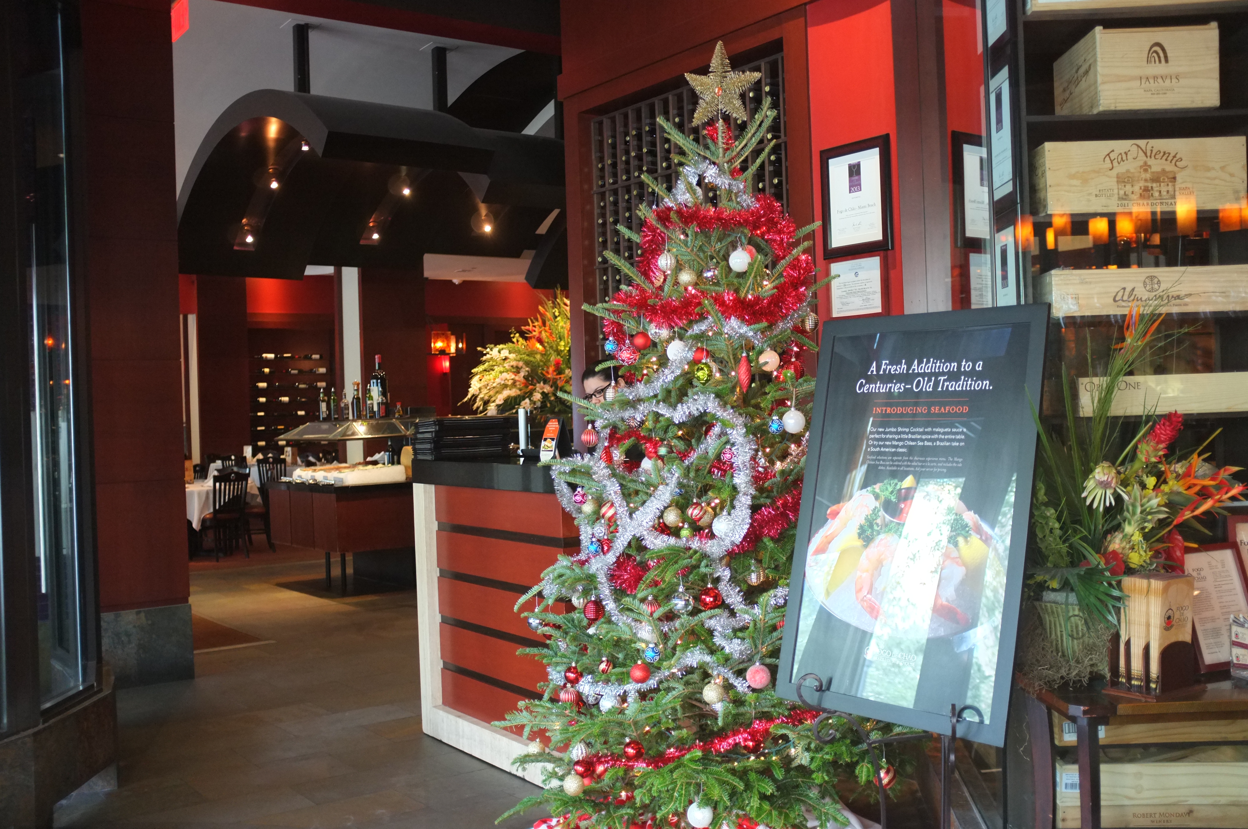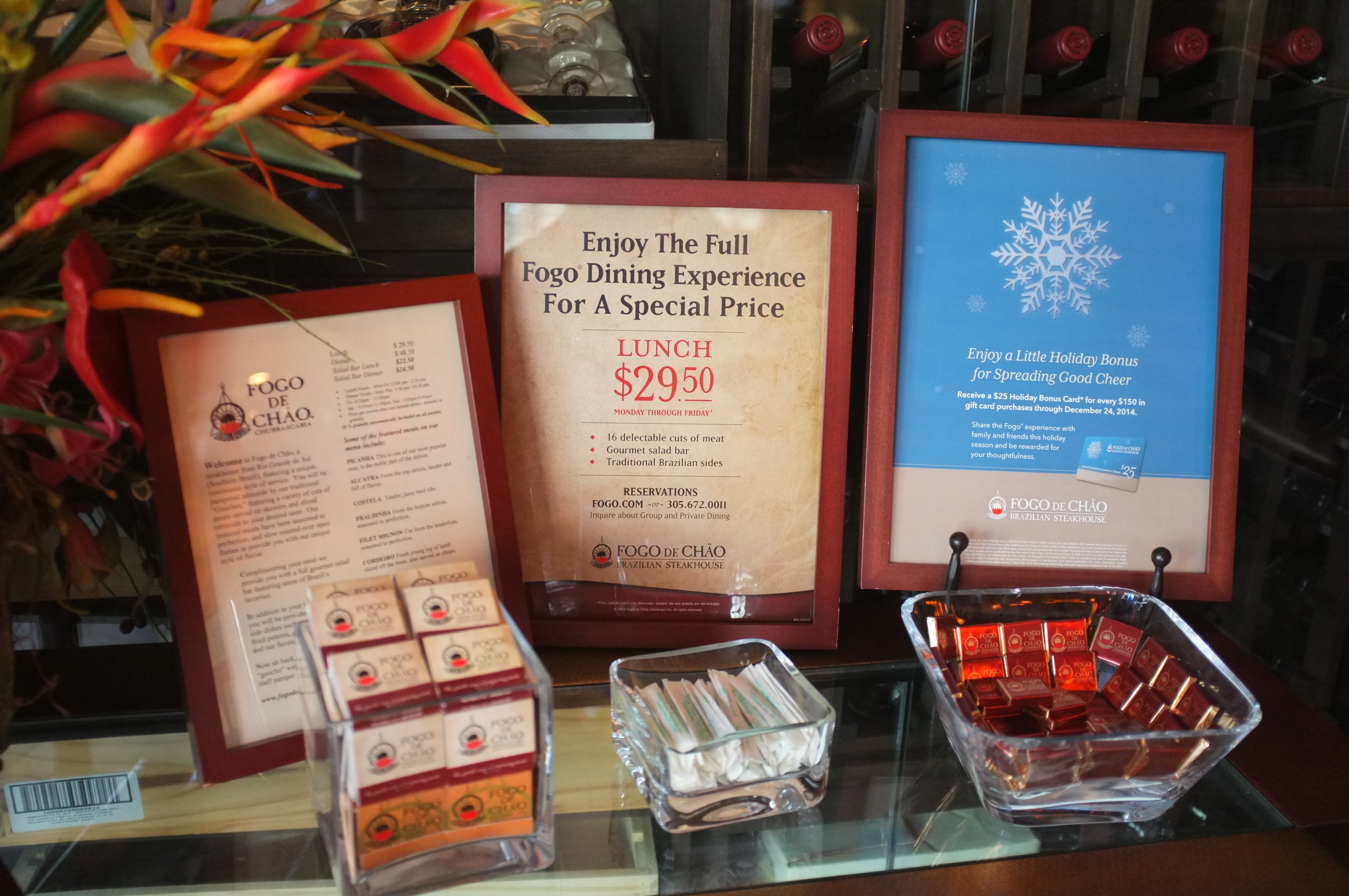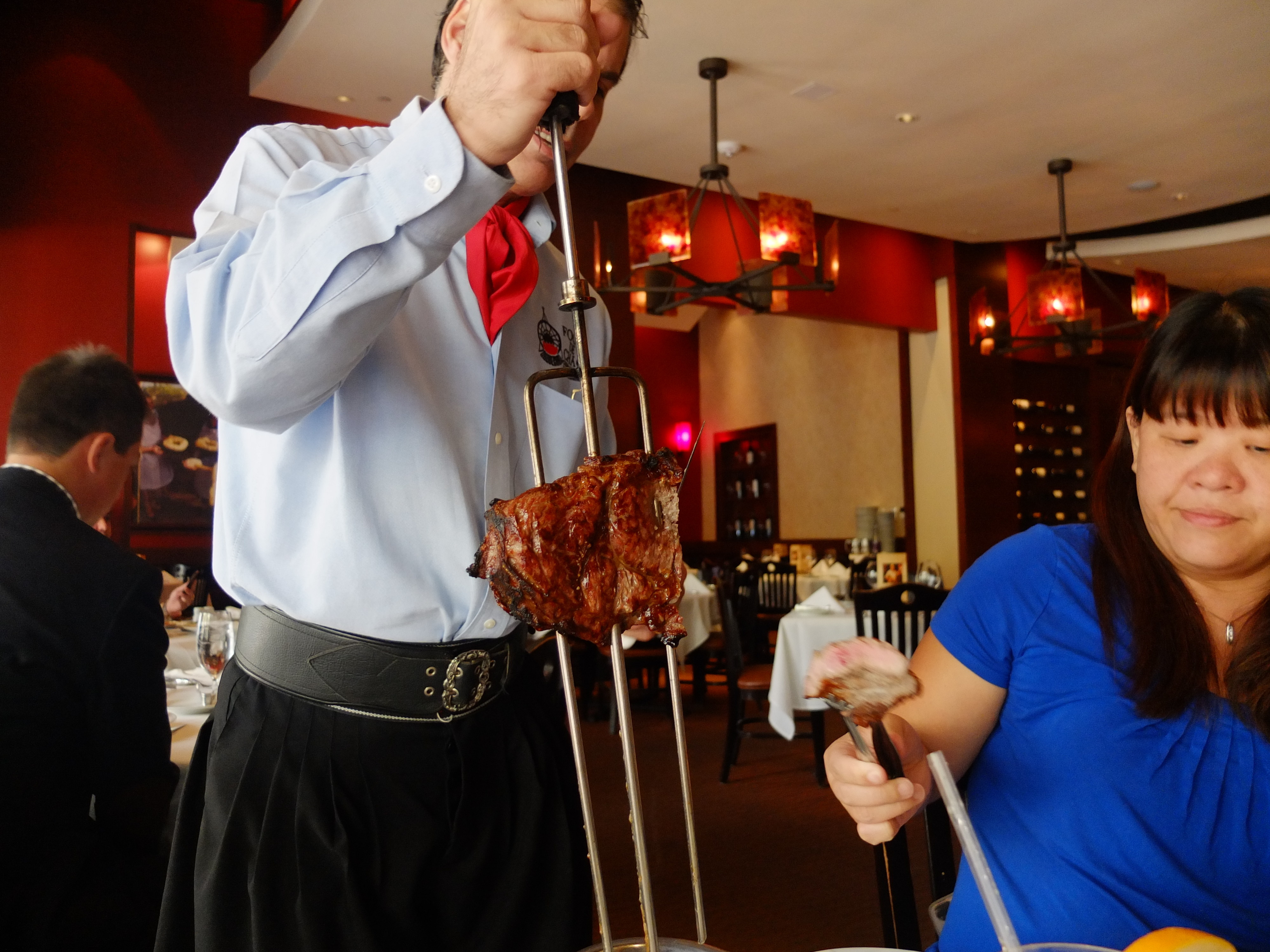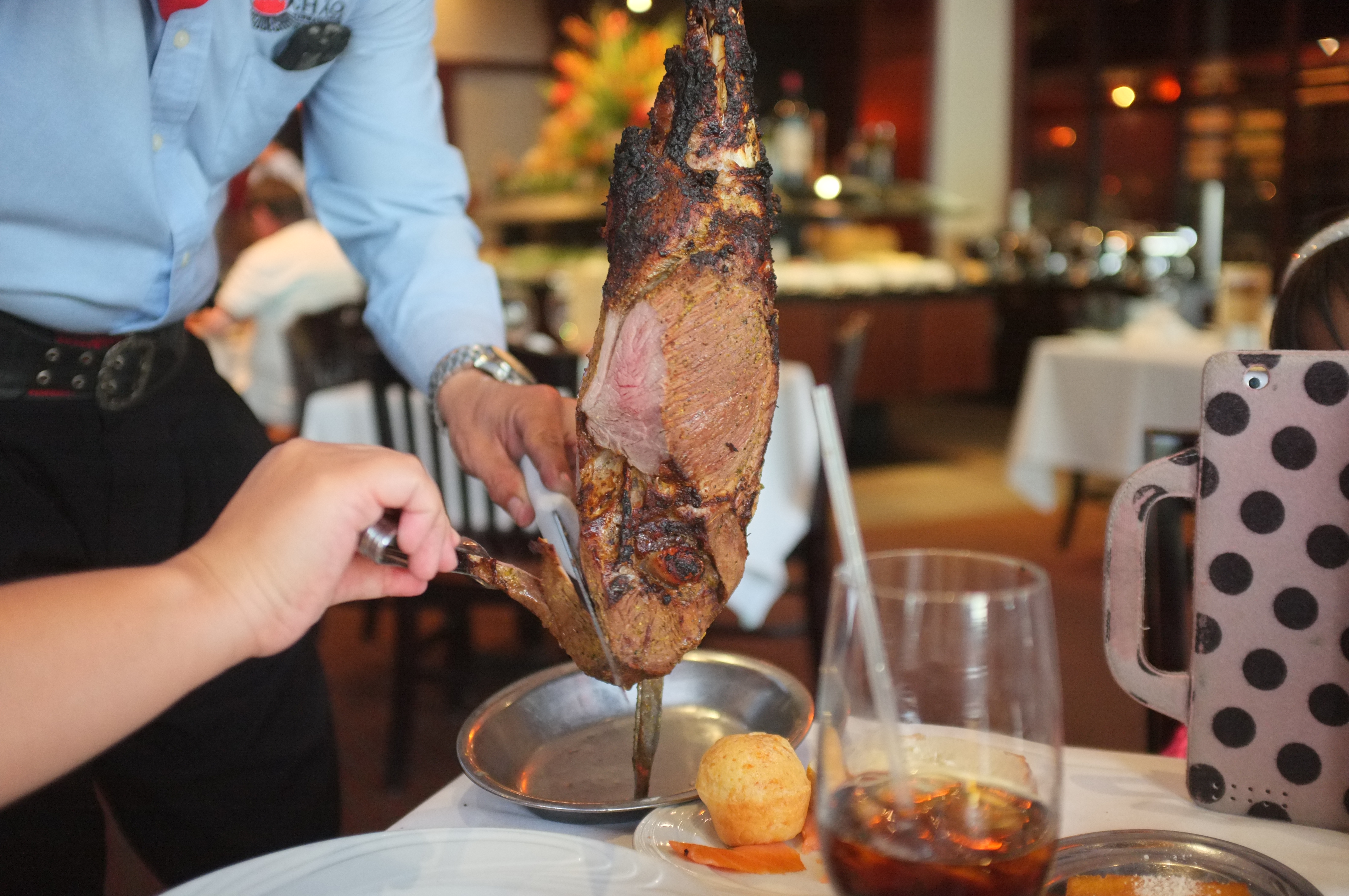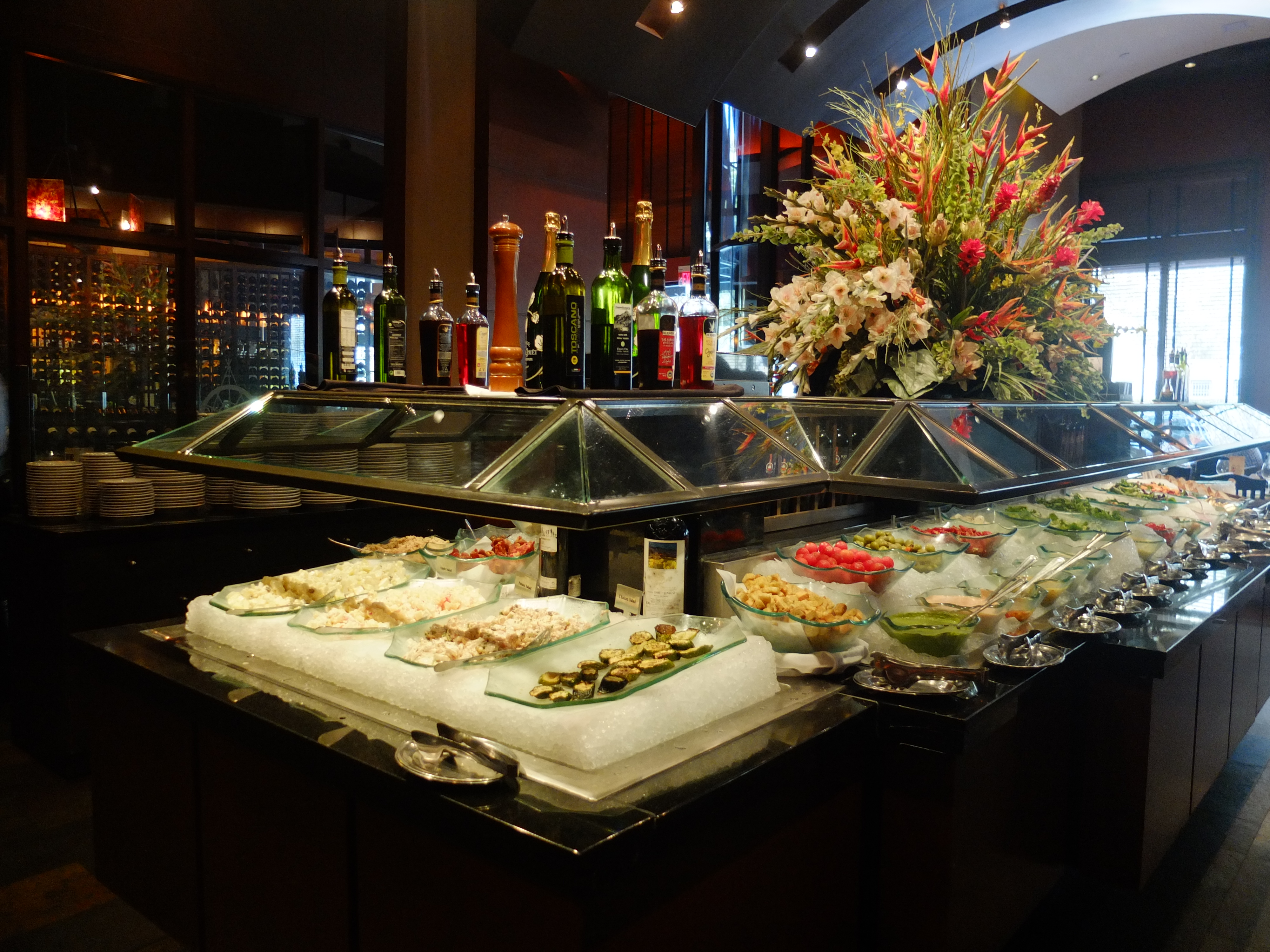 We headed to Fogo De Chao, a Brazillian Styled Chain, to have our lunch after exhausting most of our options. We decided that it would be a good comparison to Ohana, the Disney restaurant that we had dined at not long ago. Along the way, we pointed at houses and various places of residence that we could not help but ogle upon. Some of these houses were simply gorgeous, with some even on an island, linked only by a bridge to the mainland. When we finally arrived at Fogo De Chao, we were still early, but the manager allowed us to sit inside, instead of standing outside in the cold weather. This had been the coldest days since the beginning of our trip, and we lamented on the start of our vacation, seeing about how it was about to inevitably end. Soon enough, we were guided to our tables and shown the Salad Bar and the way the food system works, which was really unique.