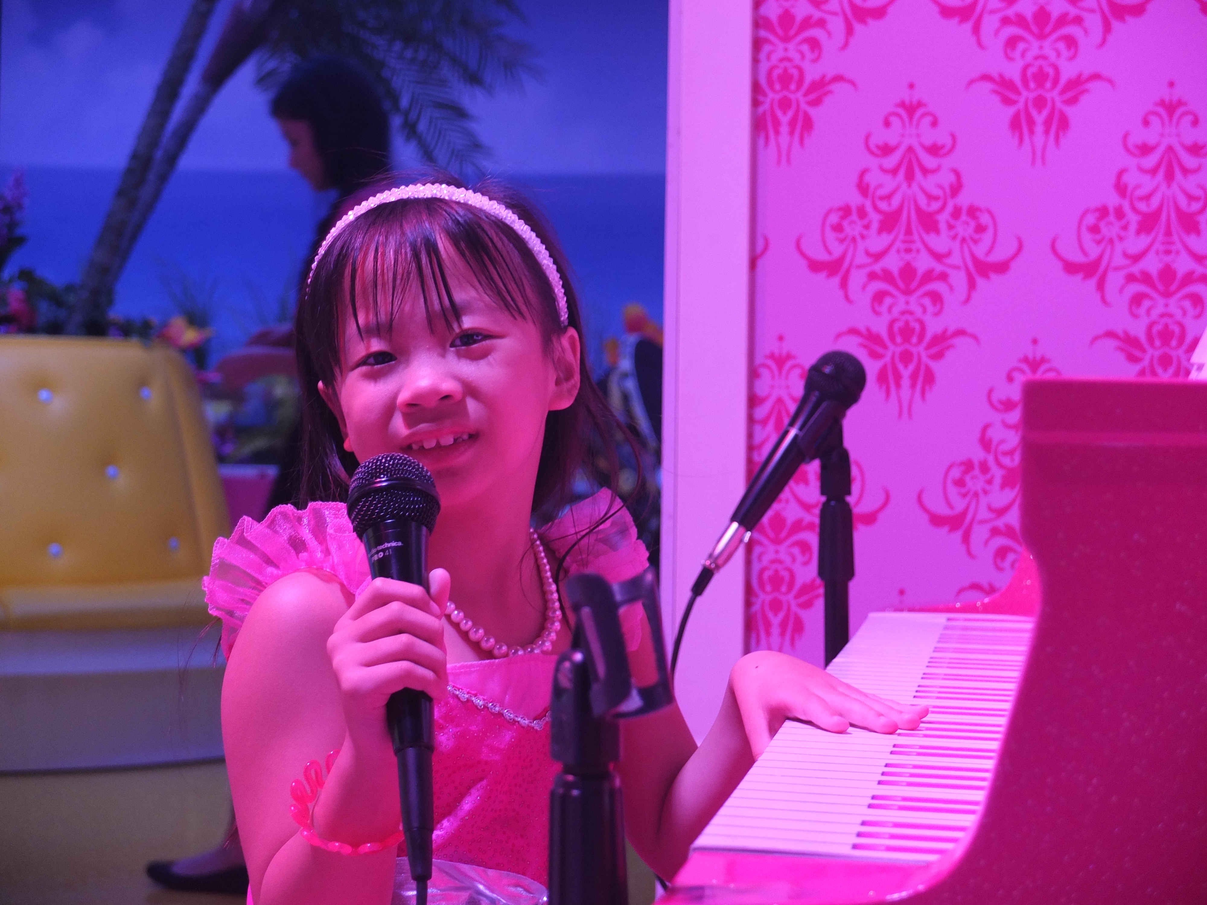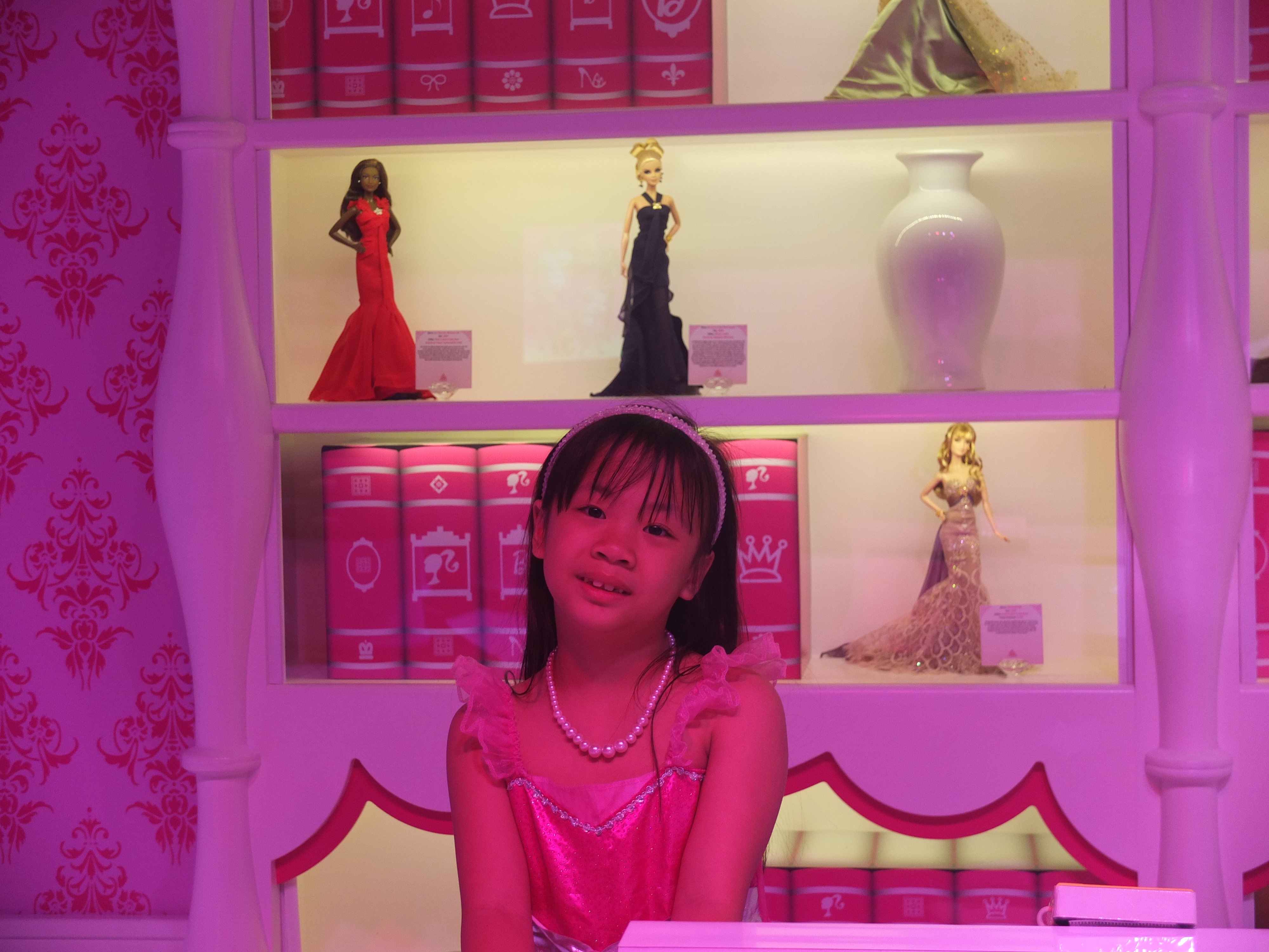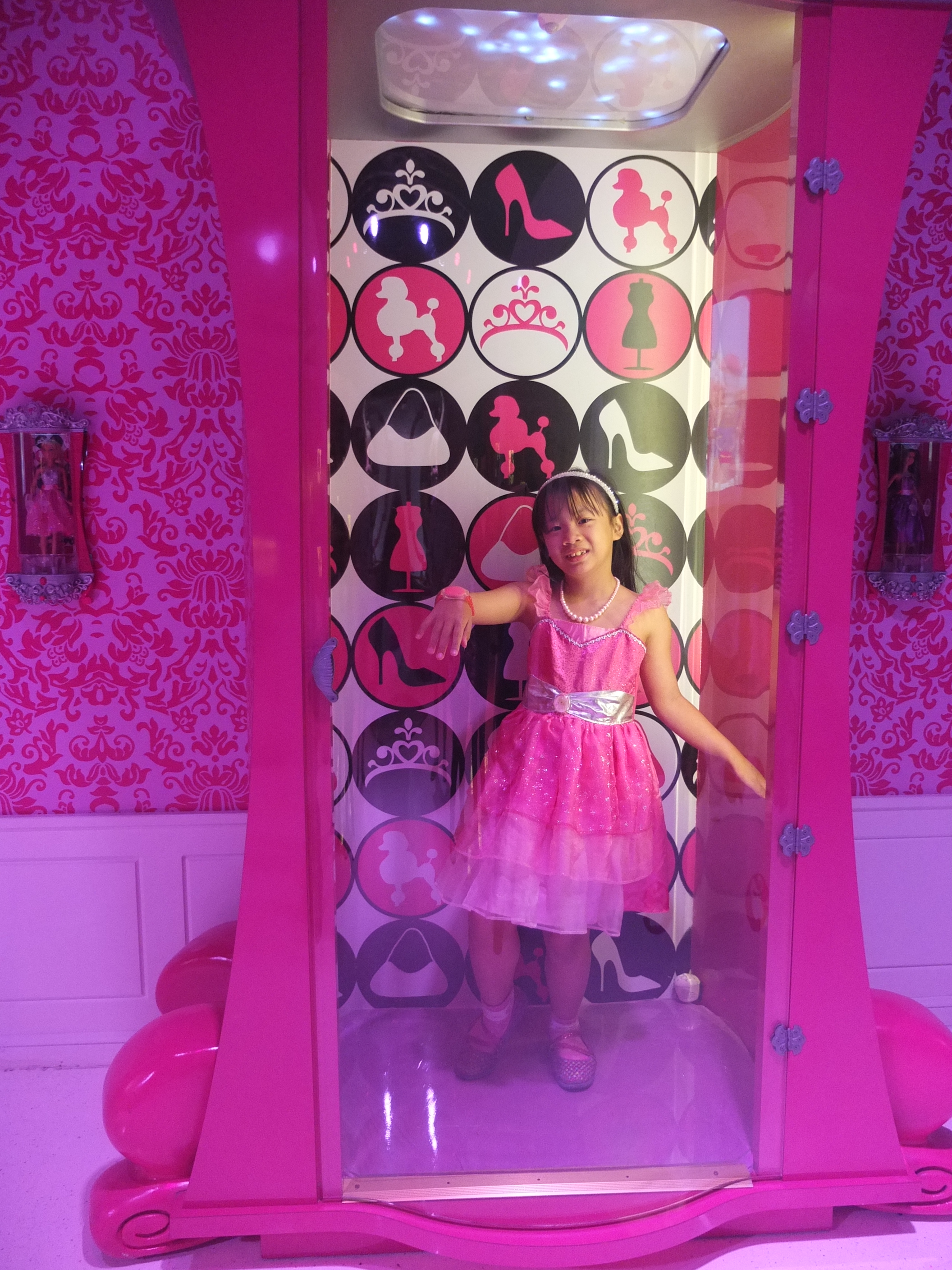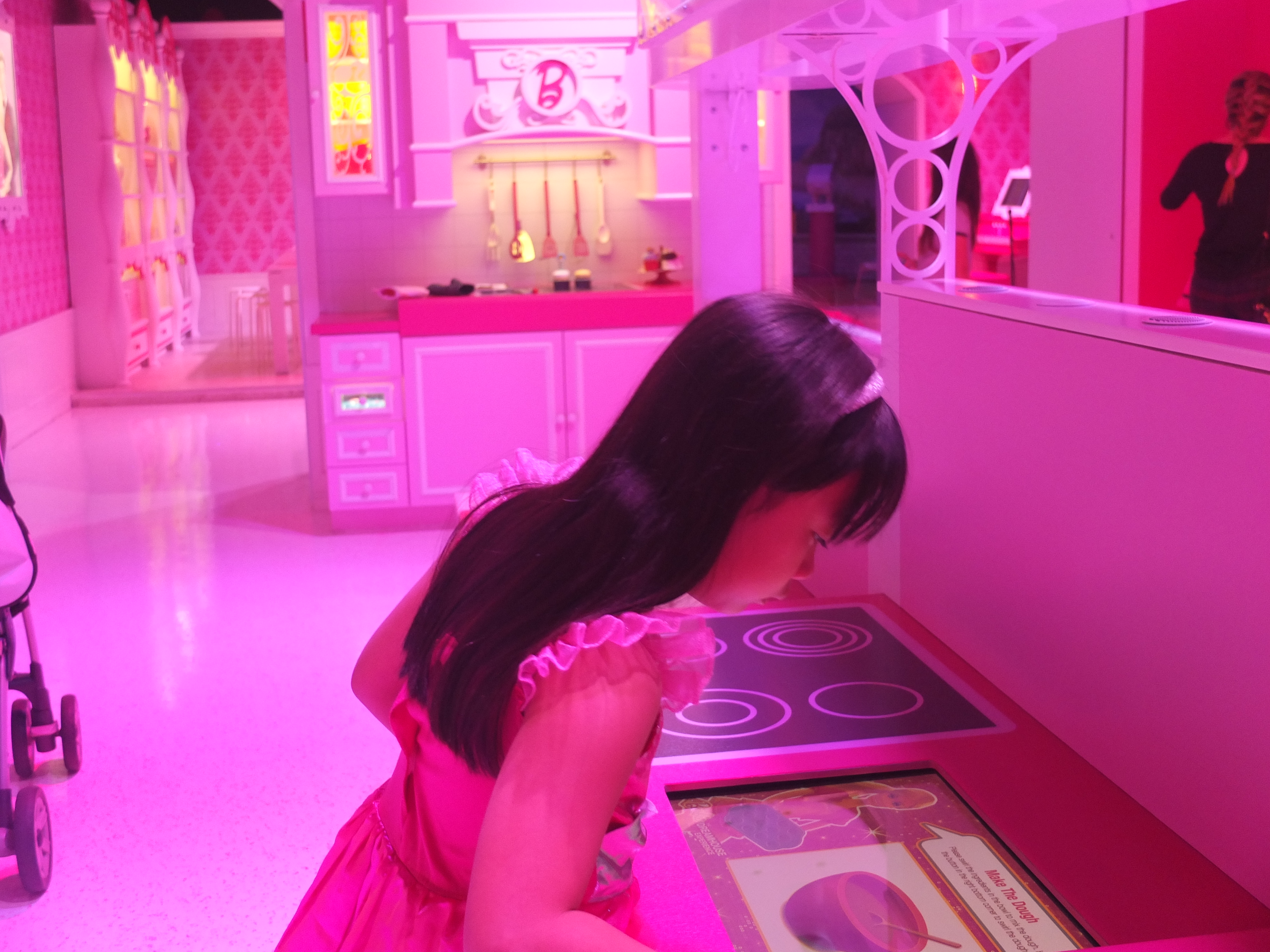 (SF: Barbie The Dreamhouse Experience is a 10,000 square foot pink paradise. It is a life-size replica’s of the iconic Barbie’s Dreamhouse toy. Upon checking Ashley in, she was given a pink bracelet that will personalise her tour and interactive experiences. She chose Barbie as her avartar as she would become ‘Barbie’ in this attraction. We meandered through the experience inspired by Barbie’s playhouse, which includes a living room, bedroom, closet, bathroom, kitchen, balcony and entertainment room. We were ‘transported’ to each floor of the house via a virtual elevator where surprises and interactive activities awaits in each room. Under the strong influence of pink, the furniture and decor pay homage to the girly hue, with a bright-pink baby grand piano among the furniture. The Dreamhouse also houses the best of Barbie – 350 dolls and collector memorabilia, Barbie’s friends, family and of course her love interest Ken. The tour ended by taking a private jet to visit Barbie’s workplace. Ashley had a fun time running around Barbie’s house, posing for pictures, making cupcakes, trying on Barbie’s outfit albeit virtually in her closet and lying down on Barbie’s enormous pink bed. As I purchased a VIP experience for her, she was ushered to a life-sized Barbie’s vanity where she got her make-up done. After which, she was brought backstage to change into her choice of outfit. As she was already dressed as Barbie, she decided to only add wings. Once she was ready, the fashion show began. Ashley had the opportunity to strut down the Fashion Runway and took home a photograph. She thoroughly enjoyed this experience.)