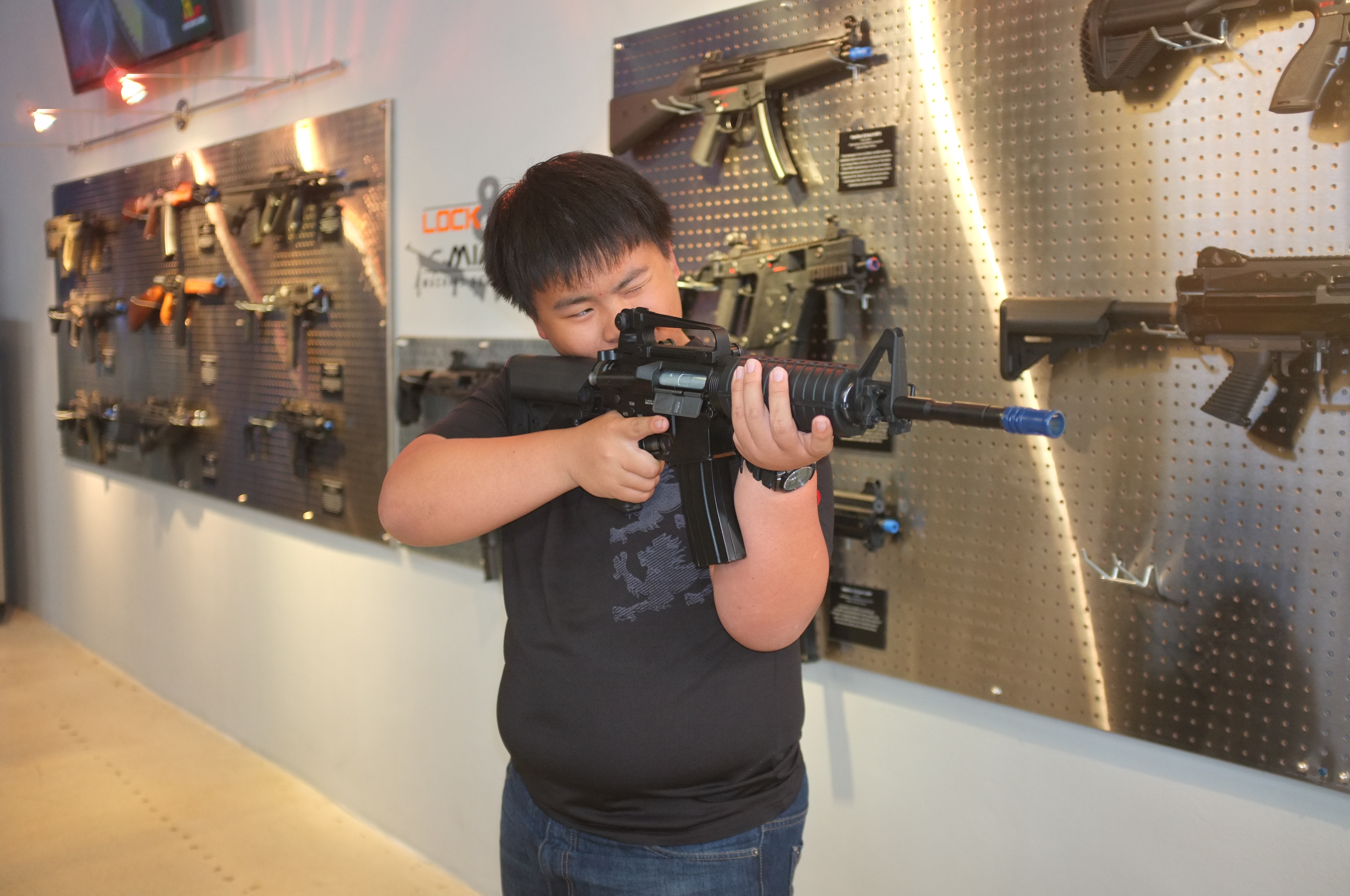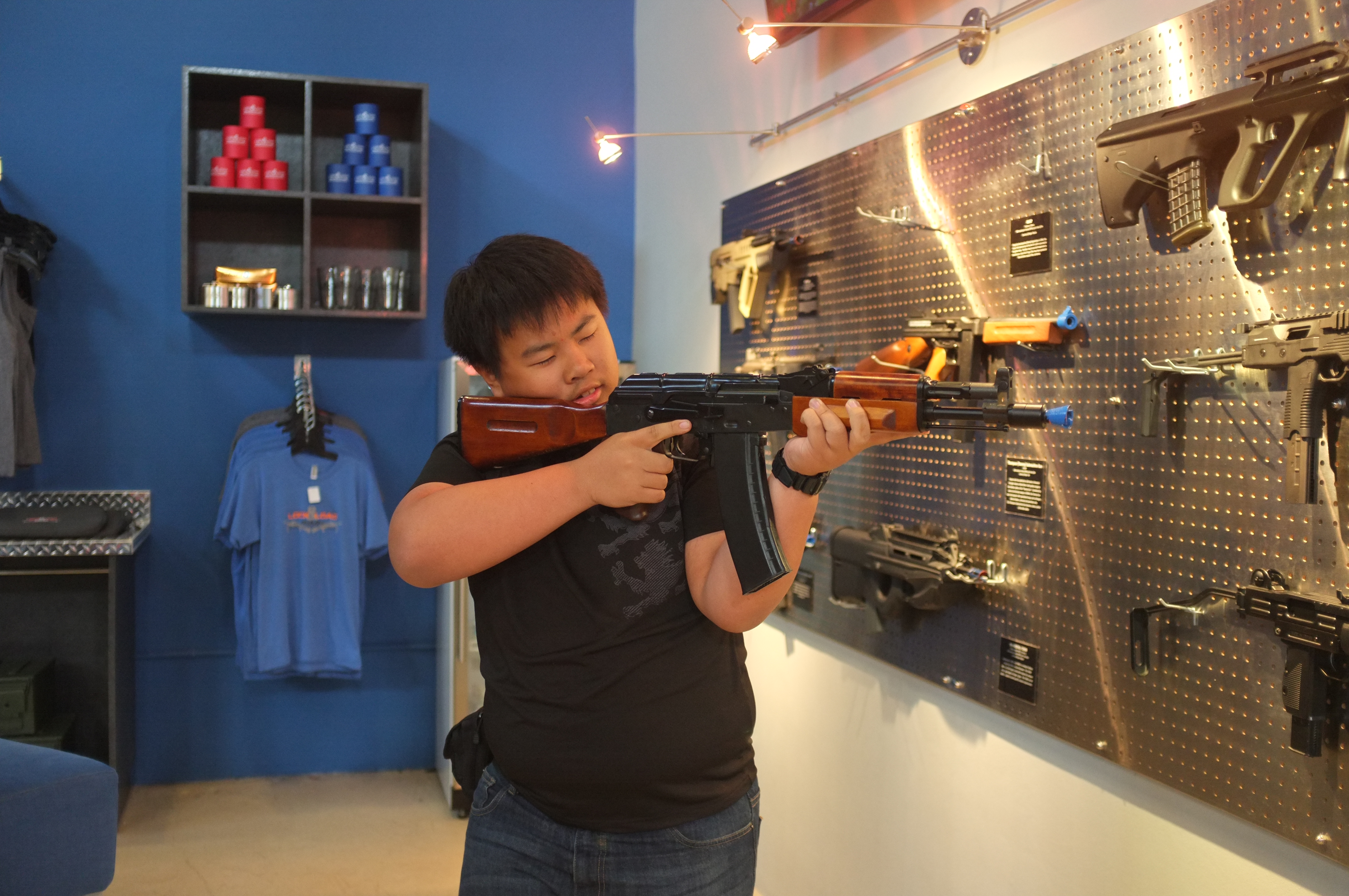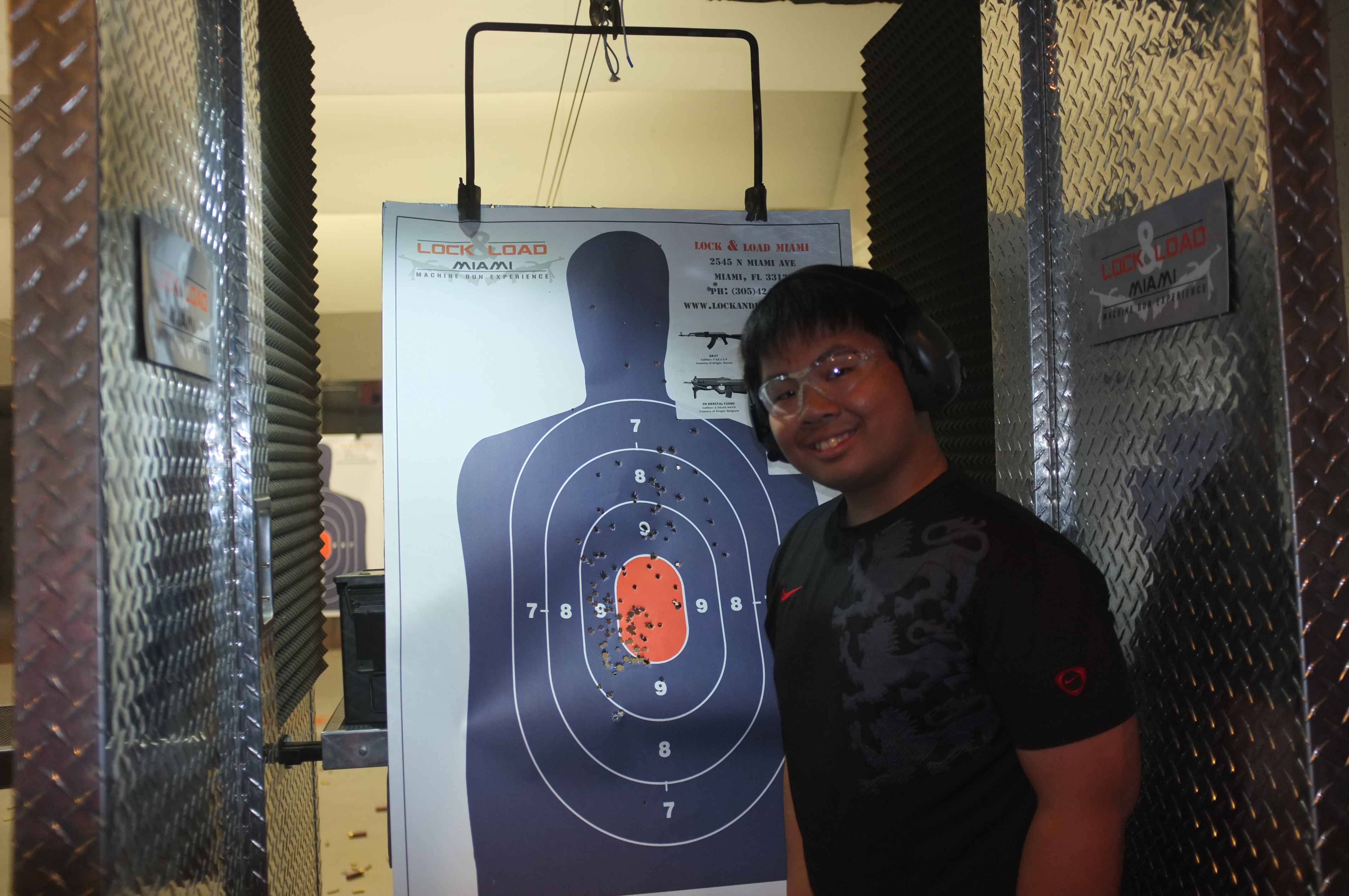 We left lunch satisfied, and finally had a chance to visit Lock N Load Miami. This was a live firing shooting range, with various packages dedicated to first time shooters and people who wanted to shoot high-power assualt rifles. As I had been acquainted in various military simulations such as Arma 2 and 3, I already knew most of the guns on offer and what I wanted to fire. I picked the Mission Impossible package, which included the H&K UMP, the Glock 18, the SCAR-L, and the F2000. I also could not resist adding an AK-47 to the table, just to spice things up a little. Afterwards, I was introduced to my instructor, who was ex-military and was eager to show me the guns on offer, and even told me that I picked the few best guns on offer. Before he let me fire each gun, he gave me a quick preview on each, and showed me how to properly load each gun (Unfortunately I could not do the HK-Slap on anything. Would have loved to do that!).