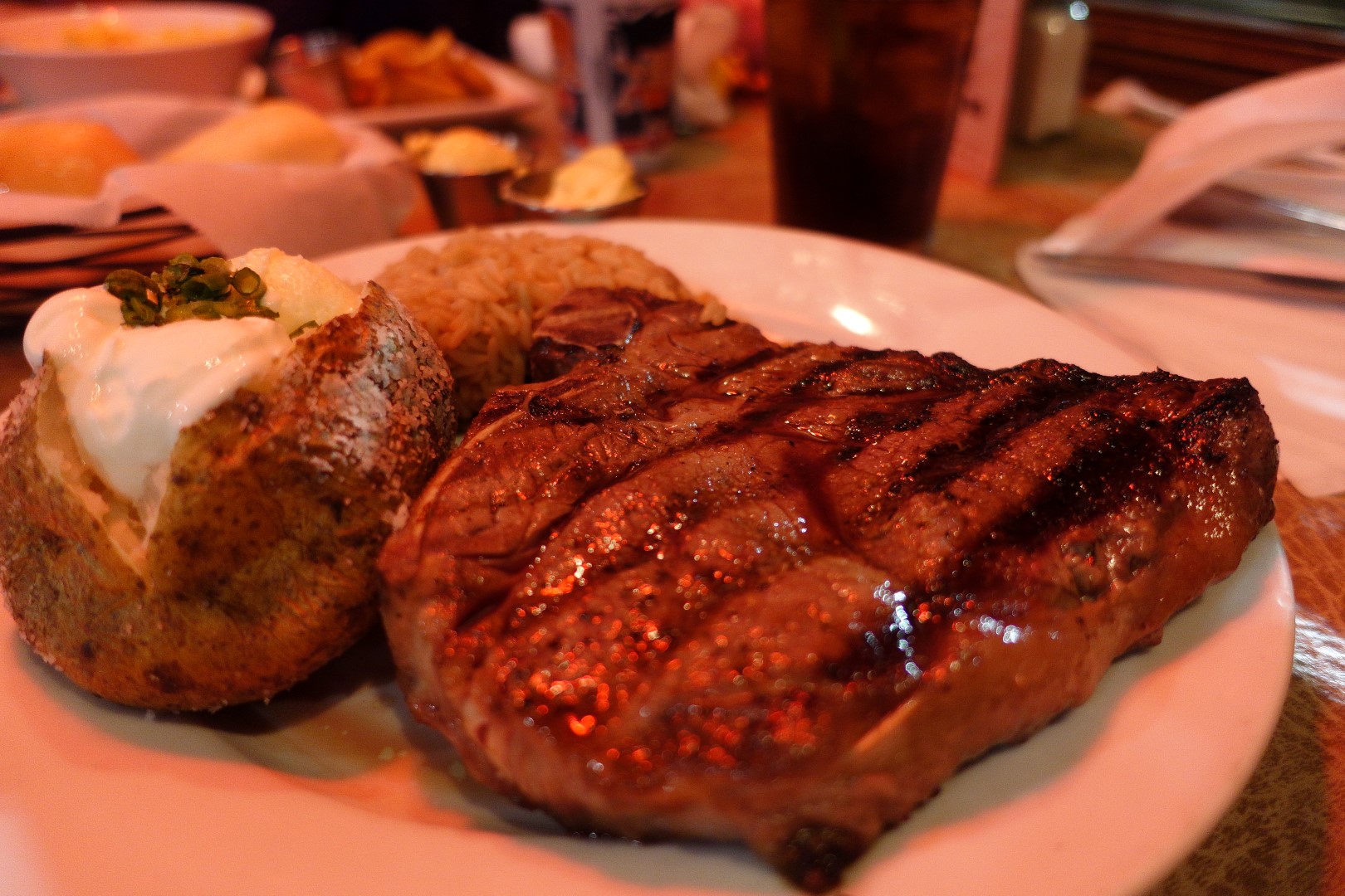 We ordered different kinds of Steak. My mom had the Delmonico, my dad had the Texas Ribeye, and I took the Potterhouse. They were all of various sizes and flavours, and we enjoyed all three of them. Ashley, as usual opted for some Mac N Cheese. The steaks were succulent and well cooked. We found it to be of higher quality than that of Texas Roadhouse, the steakhouse that we visited the last time we visited the United States.