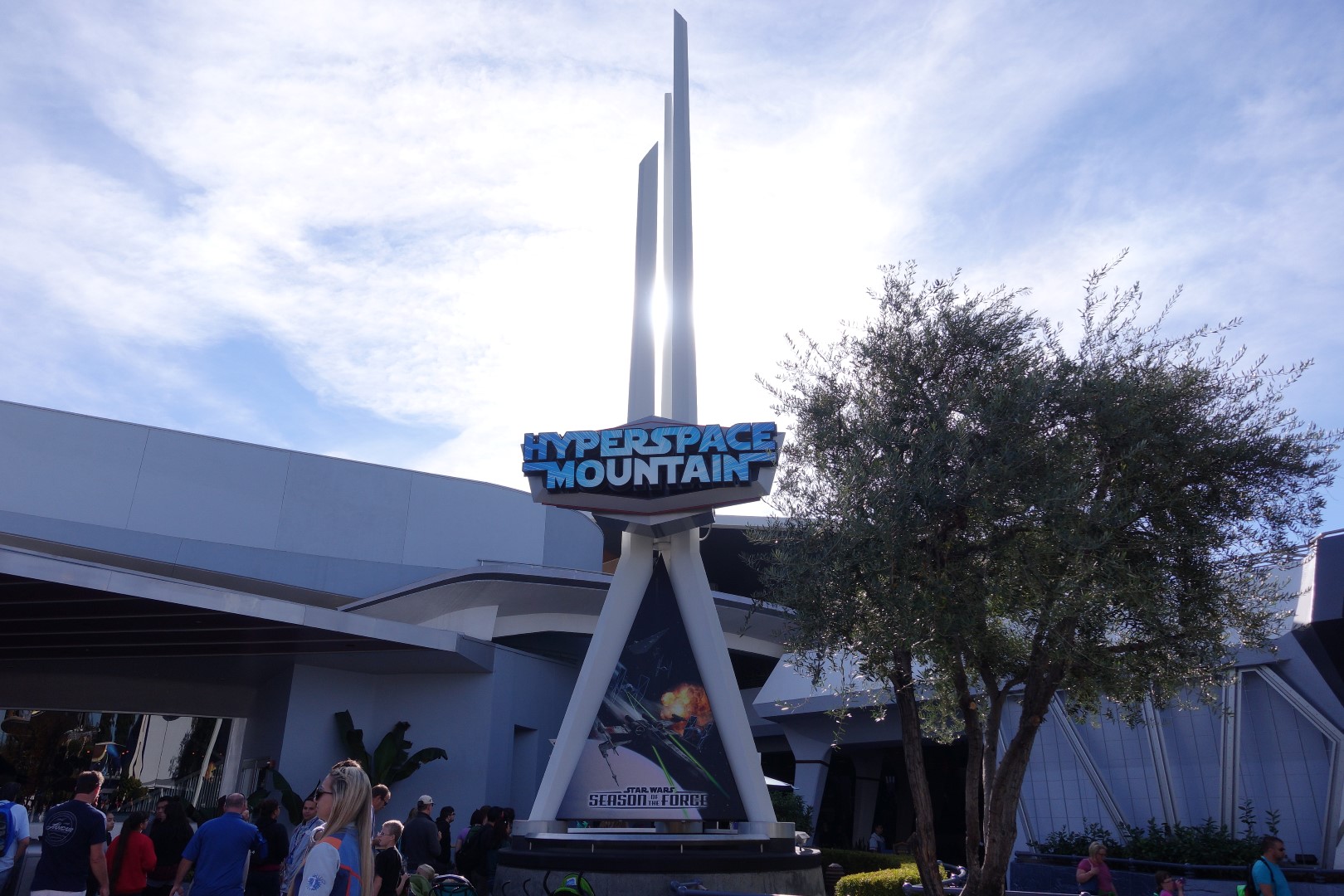 After a few days break from Disney, we bravely woke up today with the intention of going back to Disneyland Park. We woke up to another breakfast, consisting still of the same spread. We weren’t quite sick of it yet, but decided that the breakfast from Drury’s was probably still better. We packed up our belongings and headed back off towards Disneyland. This time, however, we were lucky enough to park nearer to the park, in the Toy Story lots. This wasn’t a parking lot that Disney took over, but rather a designated parking lot for Disneyland. We hopped up a bus, decorated with Toy Story decals and headed towards Disneyland yet again. This would be the second time we were going, but we still had some rides to cover, namely the recently re-done Hyperspace Mountain. Disneyland has taken the normal Space Mountain, a familiar favorite among Disney regulars, and given it a makeover during the Season of the Force.