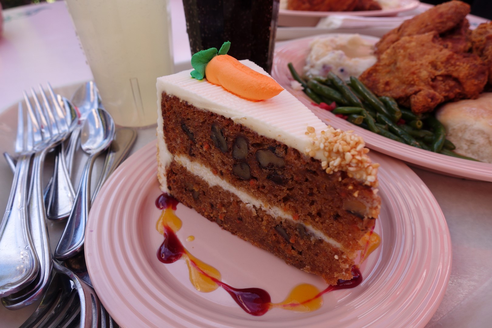 After this, we headed for lunch. We picked up a Turkey leg for sharing, and headed back to Plaza inn for some of the Fried Chicken that we enjoyed very much from the last time. We also tried out their Carrot Cake, which was placed at an awkward position that made me wonder if it was simply a dummy. Fortunately our meal was very enjoyable, but I think that the Turkey leg was still better at Orlando.