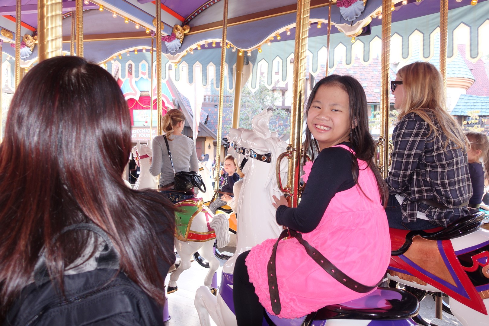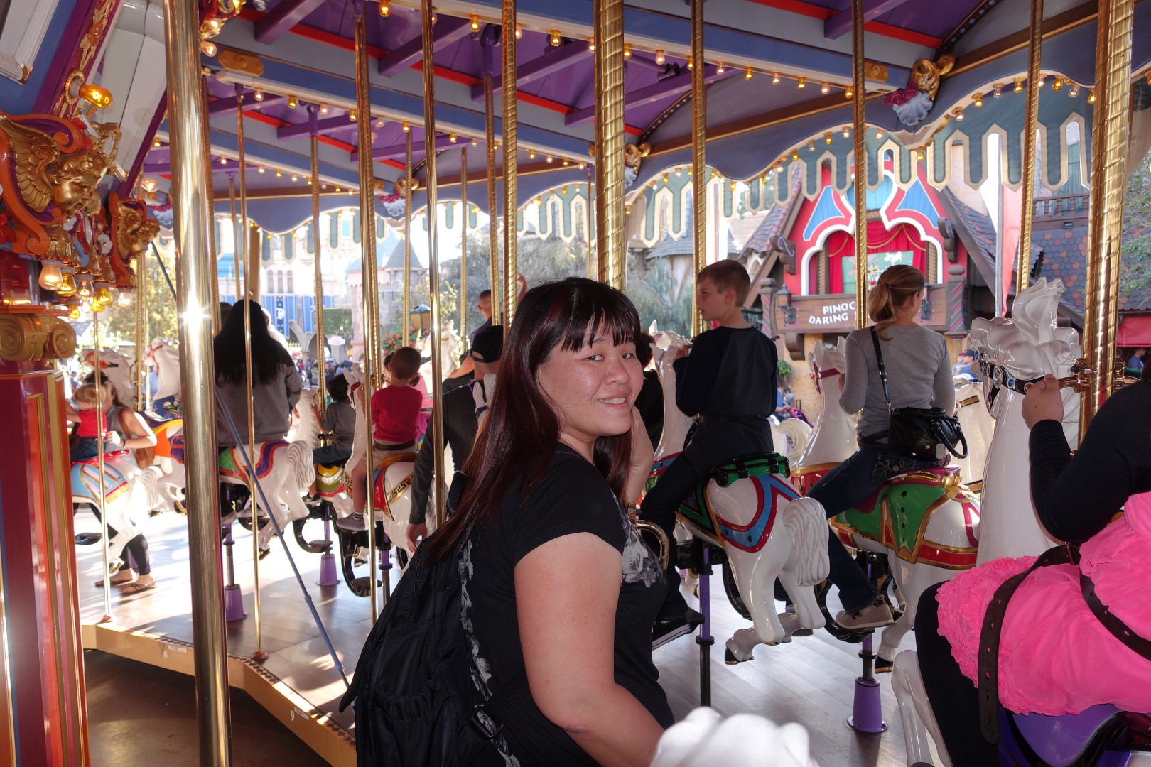 After lunch, we took the opportunity to head towards Fantasyland. We didn’t have the opportunity to explore this portion of Disneyland the last time we had visited, so we were excited about visiting Fantasyland. Walking towards it, we were greeted by the majestic sight of the carousel. The carousel was gigantic and very well decorated. But before we got distracted, we decided to head to some of the rides that we did not take the first time we were at Disney. First up was Pinocchio’s Daring Journey. This was a slow ride that retold the adventures of Pinocchio. It was similar to Winnie The Pooh’s ride, and we enjoyed this one very much, especially since Pinocchio isn’t a Disney character that we commonly see, so it was refreshing to see a ride specifically made for him.