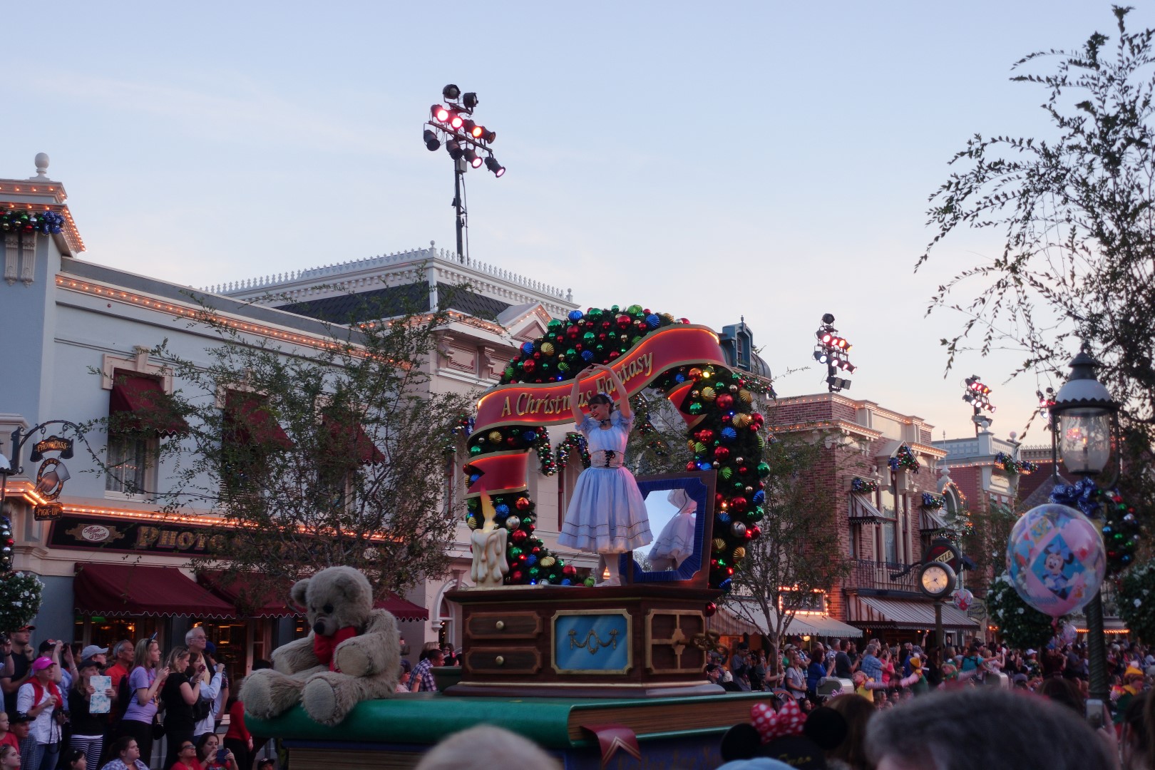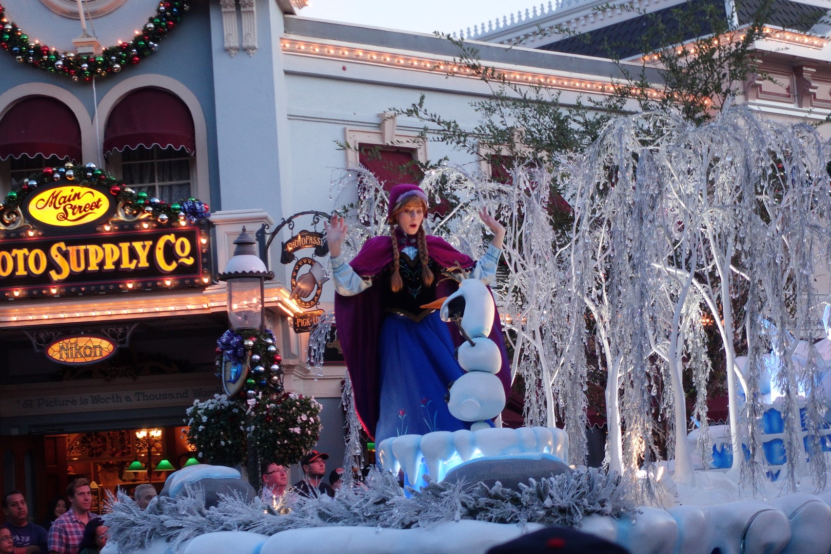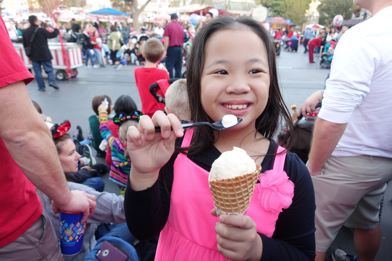 Moving on, we headed to Main Street to catch the Disney Christmas parade. We went to grab some Ice-Cream and we headed towards the Parade. It was similar to all other Disney Parades, that is, grand and magical with all our favourite characters. This parade was a little shorter than the others, but Ashley still enjoyed it as much as the others.