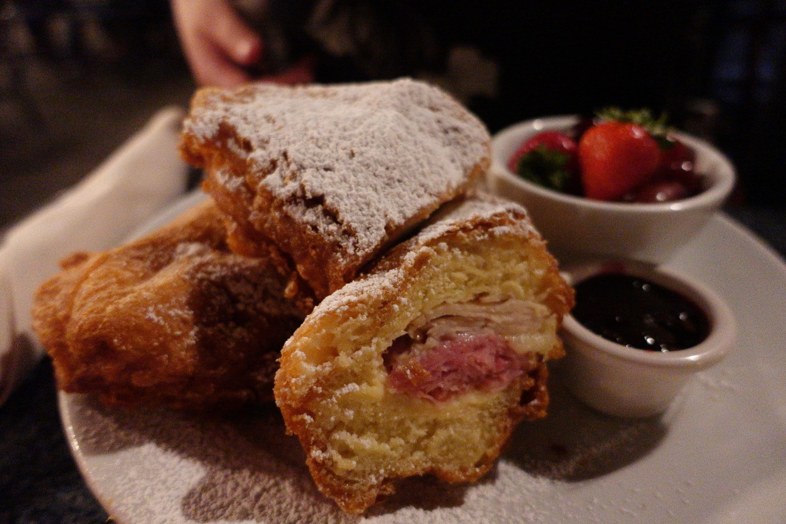 We ordered only 2 of their Monte Cristo sandwiches, one with cheese, and another with ham. We couldn’t even finish 2 of them, and Ashley still ordered the same Mac N Cheese. We left extremely full, and felt lucky we only ordered 2 entrees.