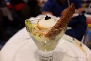 For lunch, we allll decided to have a lighter fare as we were not very hungry. The menu for the day was called “Till we meet again”, and it was to reflect that today would be our final full day aboard the Disney Magic. We had 2 lobster bisques, and for our main course, I had the Veal Schnitzel, while we also had the Trenette Pasta and the Roasted Fillet of Salmon Lakesty.