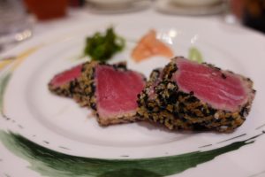 Soon, it was time for dinner again, this time at Carioca’s where our server, Juan, surprised us again by serving us Banana Bread, which was unavailable anywhere else on the ship. It was simply amazing, and we were able to enjoy the bread once again before we headed off the ship. We had the Sesame Crusted Tuna Sashimi, and the Skagenrora, while for the main course, I had the Beef Wellington, while Pasta was also ordered, similarly, the Lamb Duo.