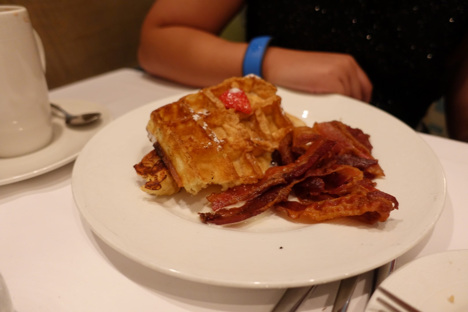 Afterwards, of course, we headed for our first meal of the day, breakfast! We once again headed to Lumiere’s for our breakfast fare before truly starting our day. We had a selection of the meals available, with me choosing The Big Breakfast, while Ashley had the Mickey’s Special Breakfast Platter, while ZA and SF both had the Express.