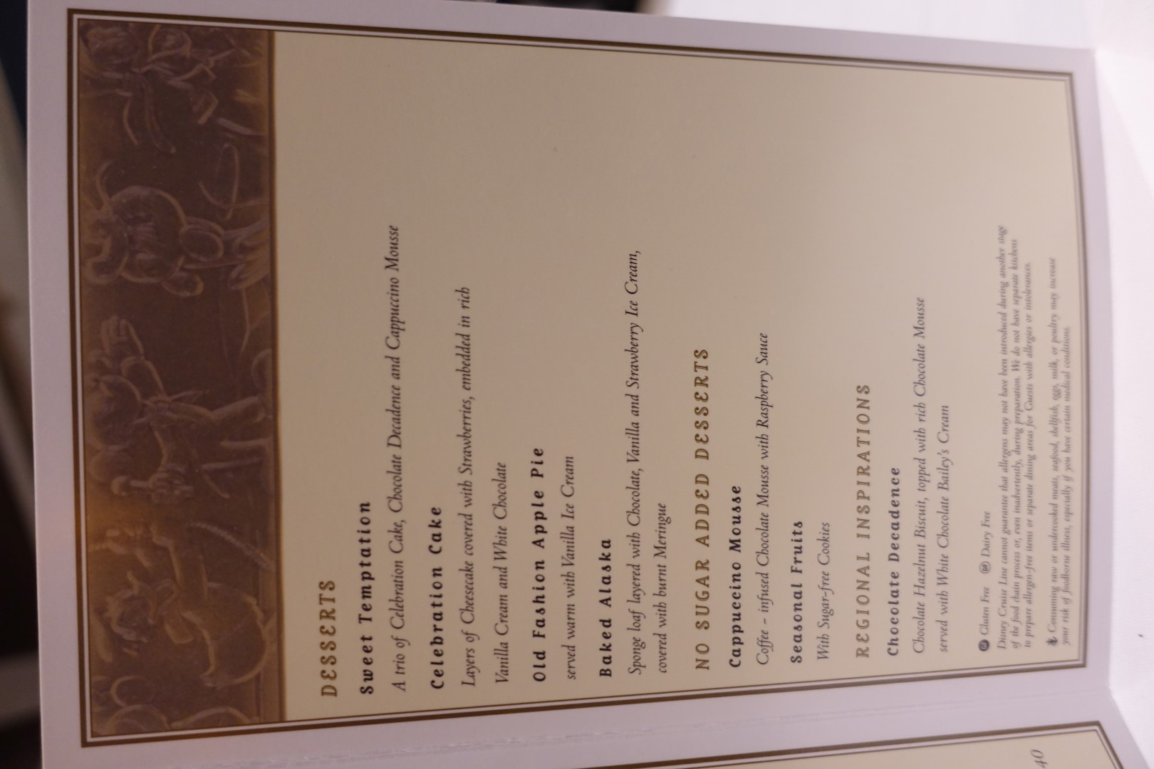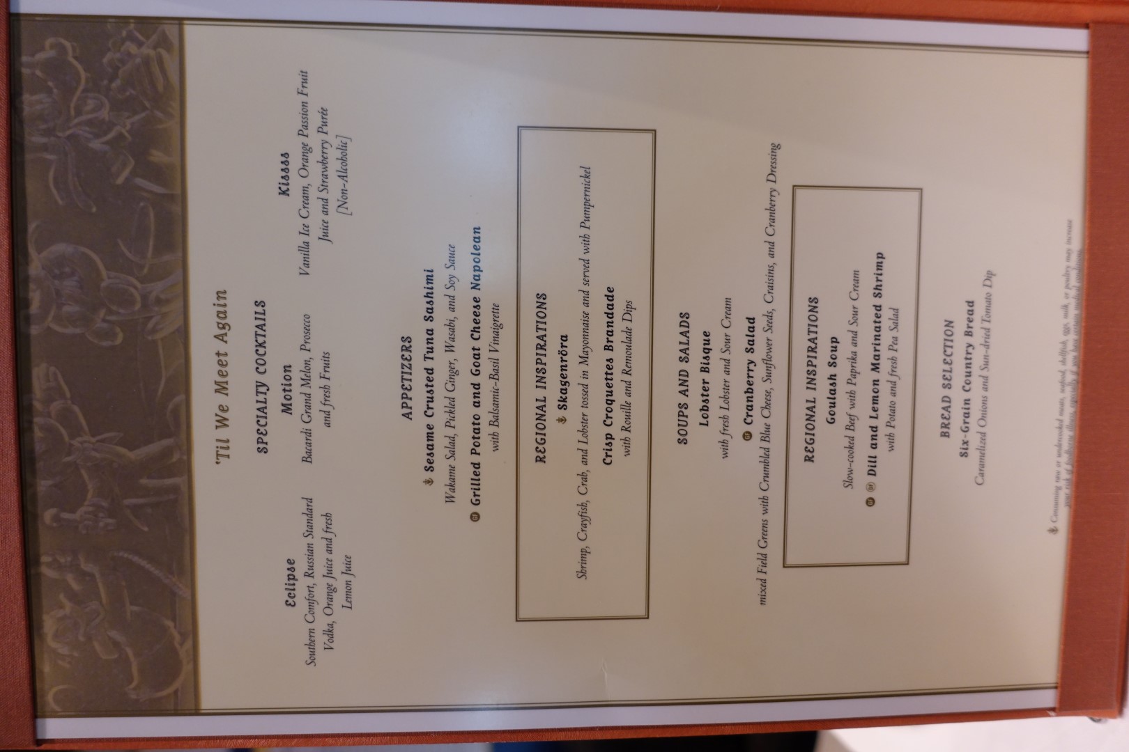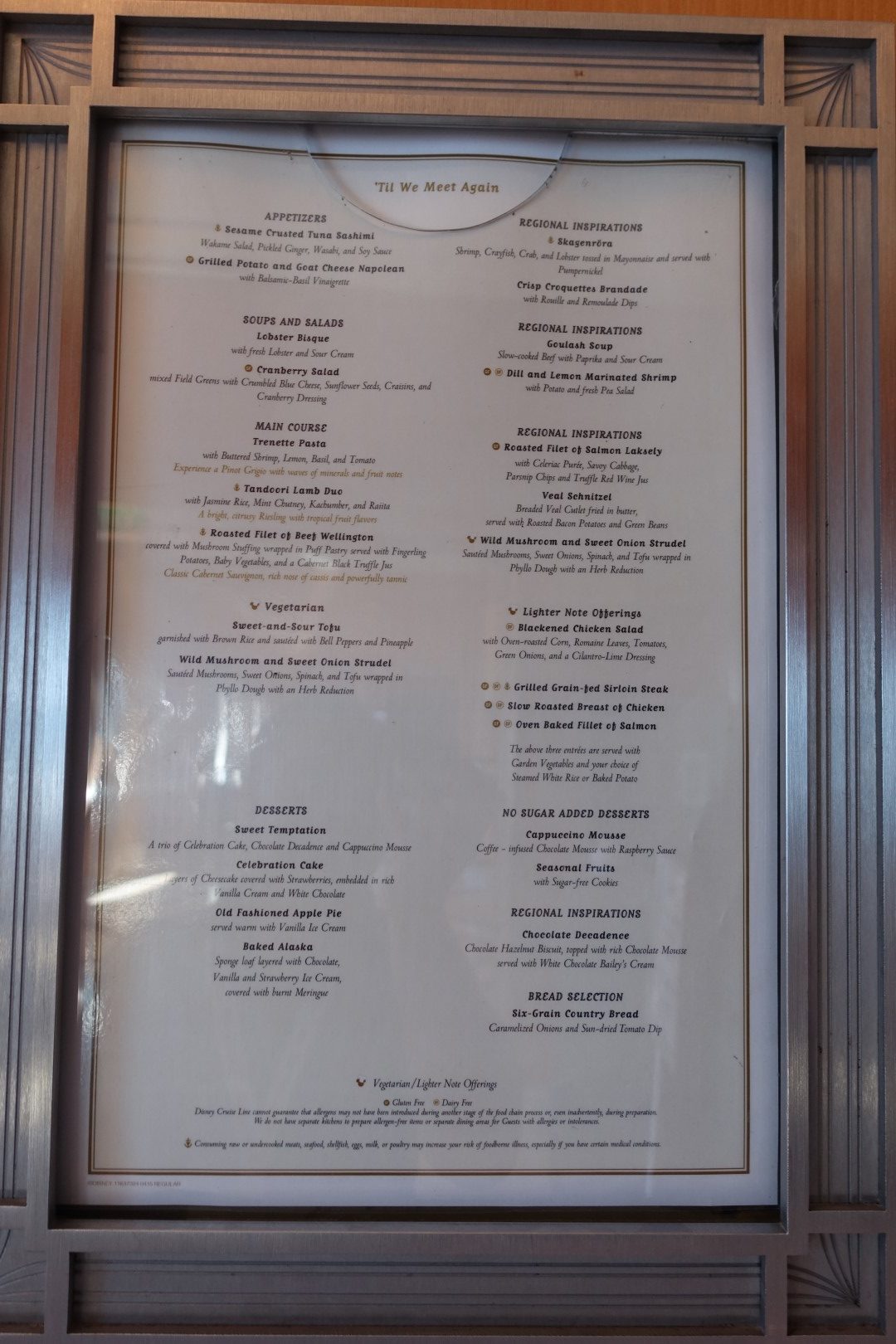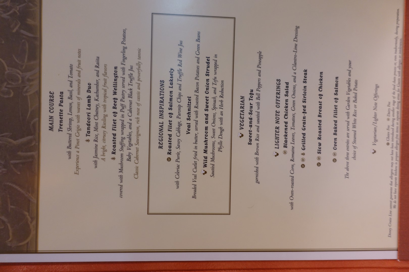 For lunch, we allll decided to have a lighter fare as we were not very hungry. The menu for the day was called “Till we meet again”, and it was to reflect that today would be our final full day aboard the Disney Magic. We had 2 lobster bisques, and for our main course, I had the Veal Schnitzel, while we also had the Trenette Pasta and the Roasted Fillet of Salmon Lakesty.