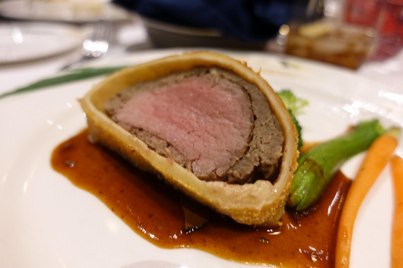 Soon, it was time for dinner again, this time at Carioca’s where our server, Juan, surprised us again by serving us Banana Bread, which was unavailable anywhere else on the ship. It was simply amazing, and we were able to enjoy the bread once again before we headed off the ship. We had the Sesame Crusted Tuna Sashimi, and the Skagenrora, while for the main course, I had the Beef Wellington, while Pasta was also ordered, similarly, the Lamb Duo.